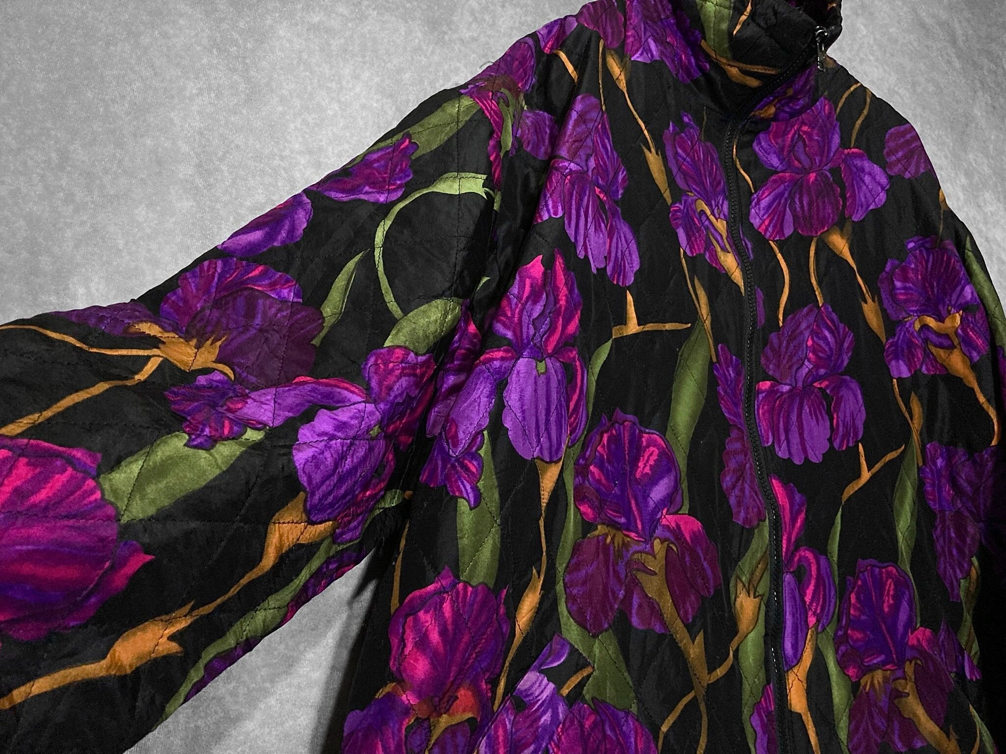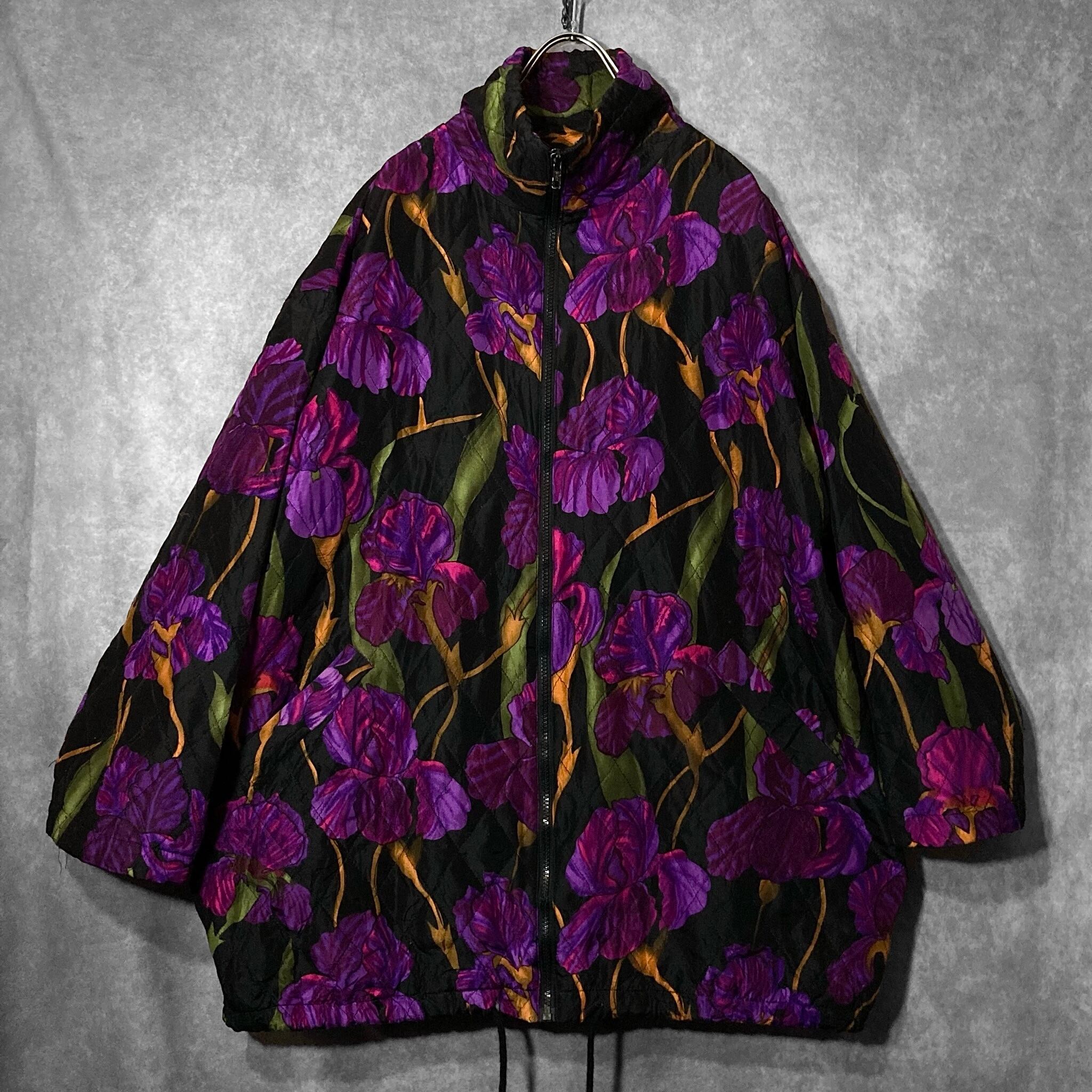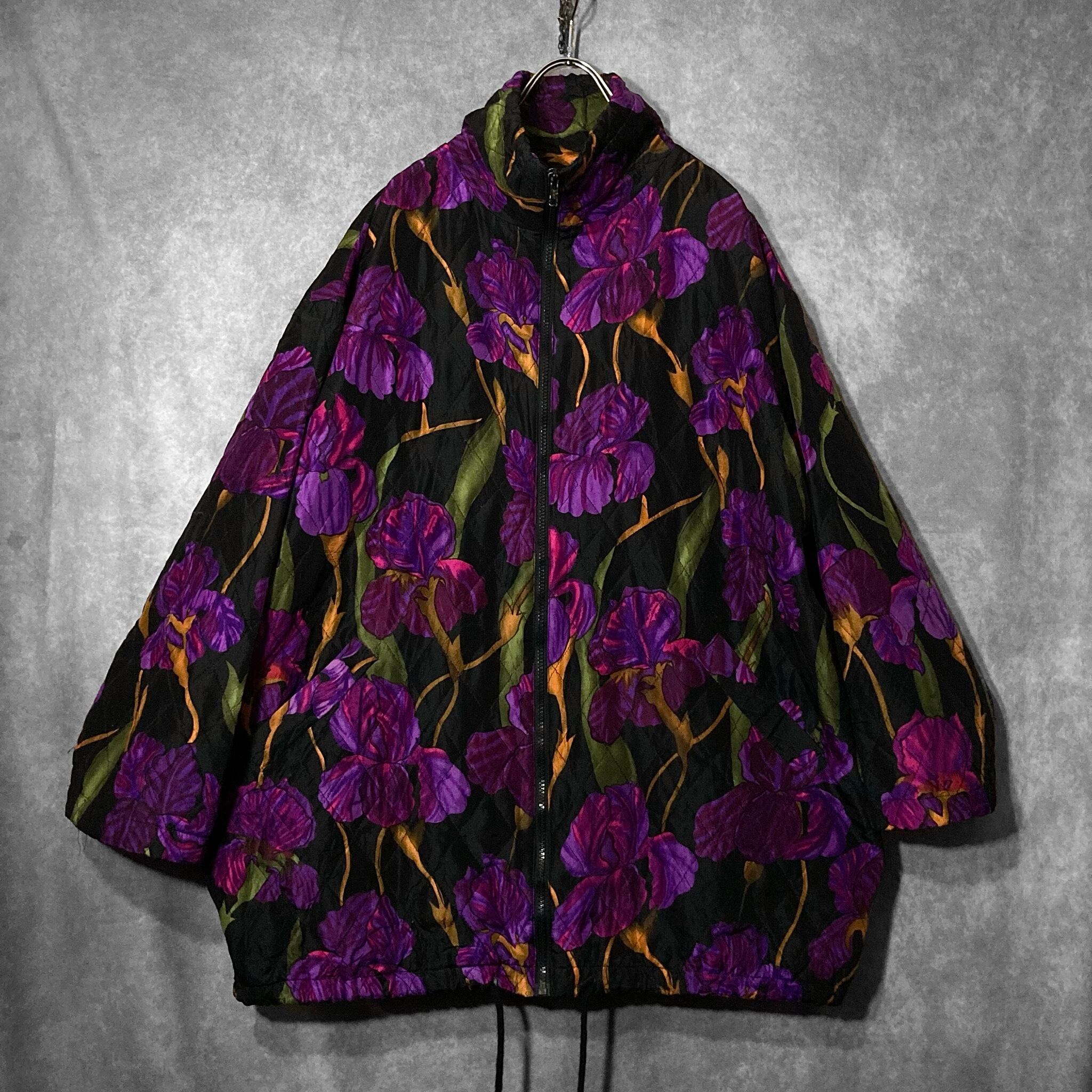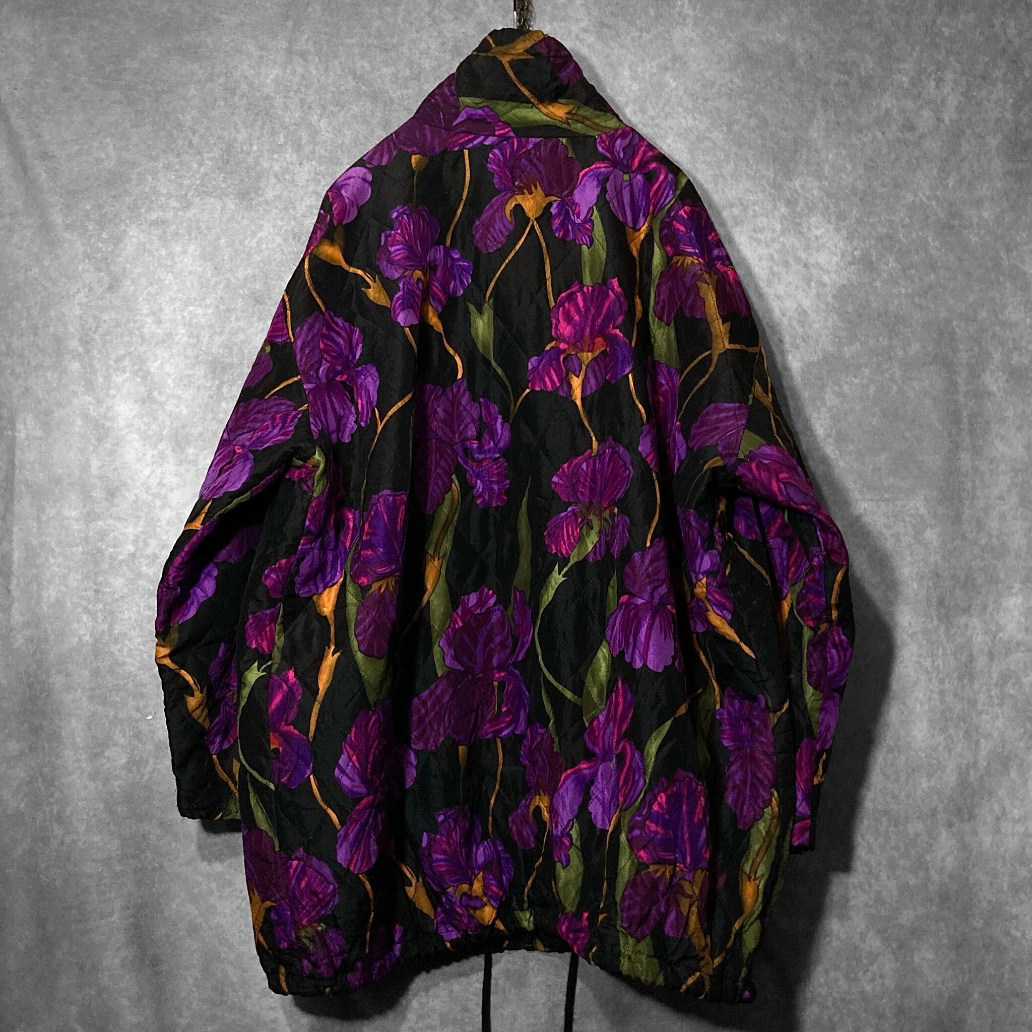 妖艶 XXXL Silk fabric Bewitching Floral all over pattern Quilting design Full-zip jacket
