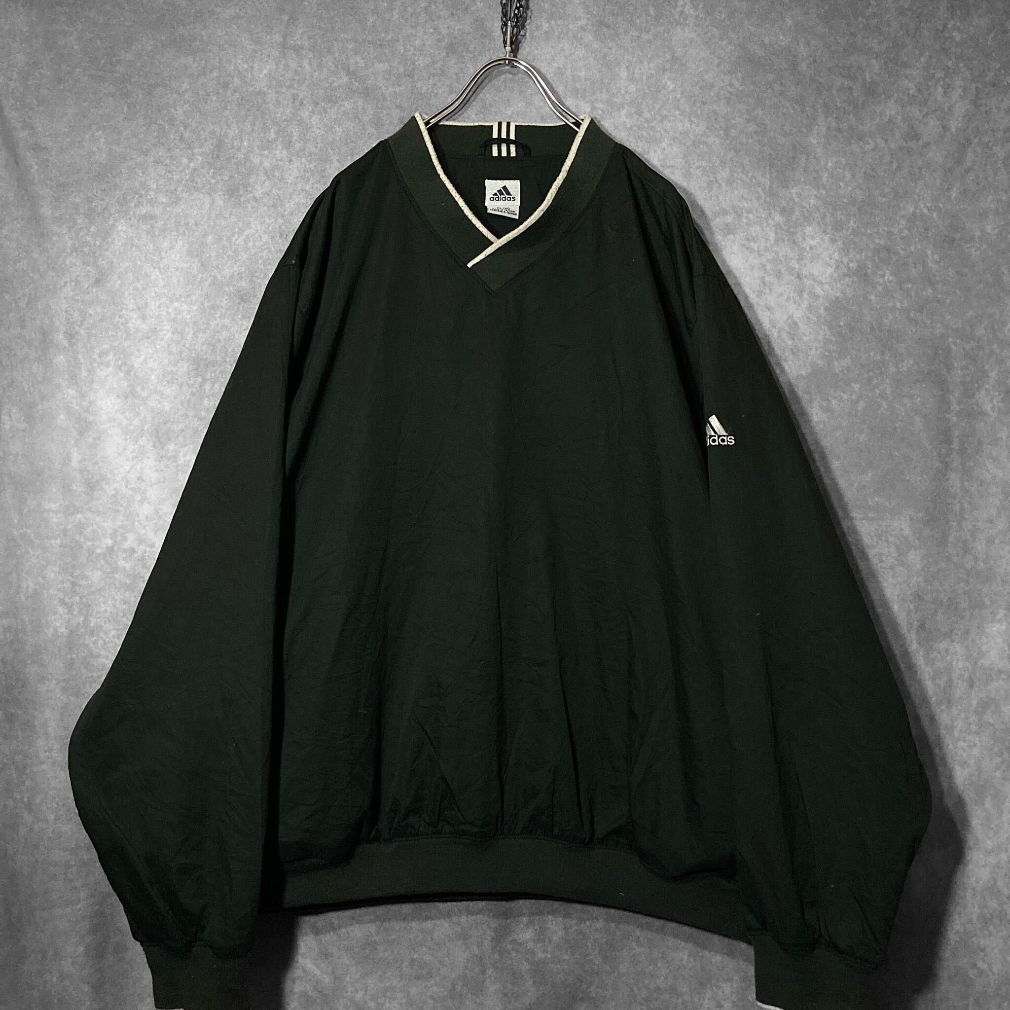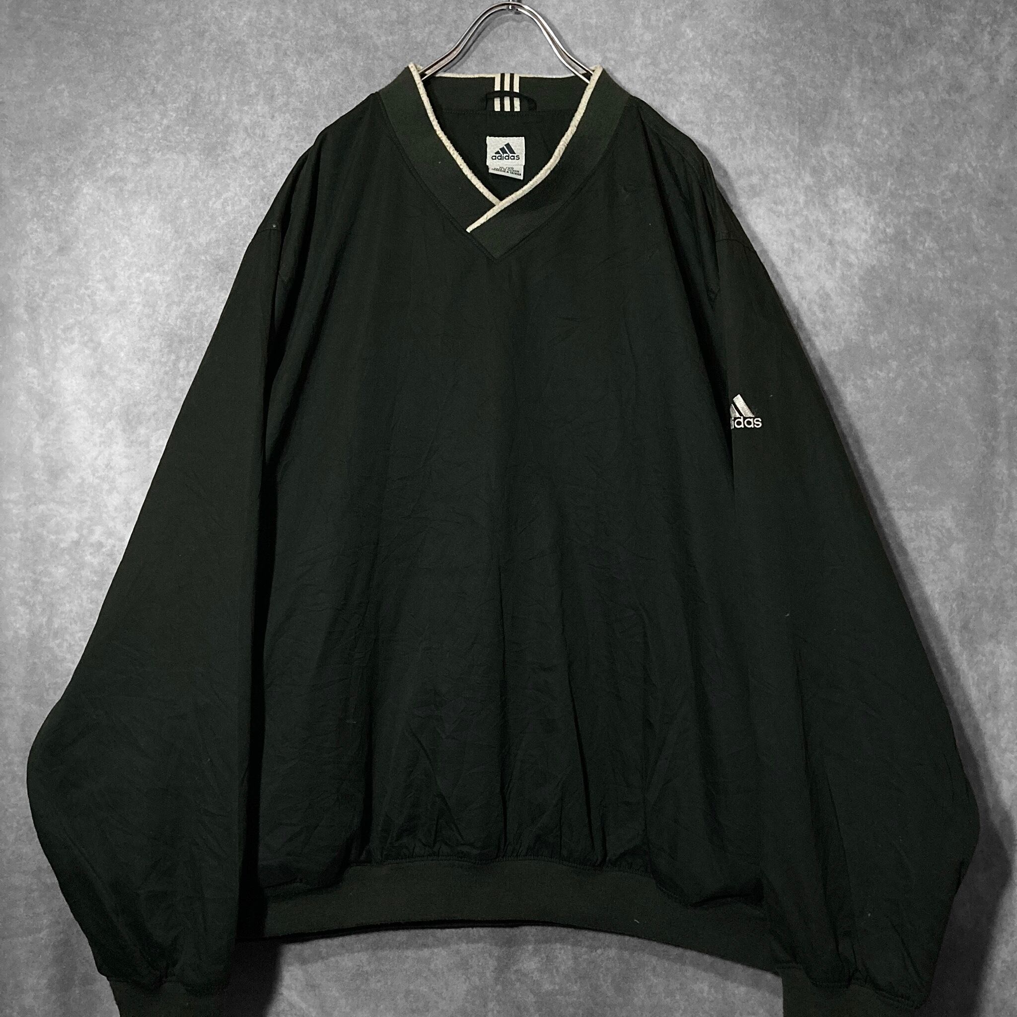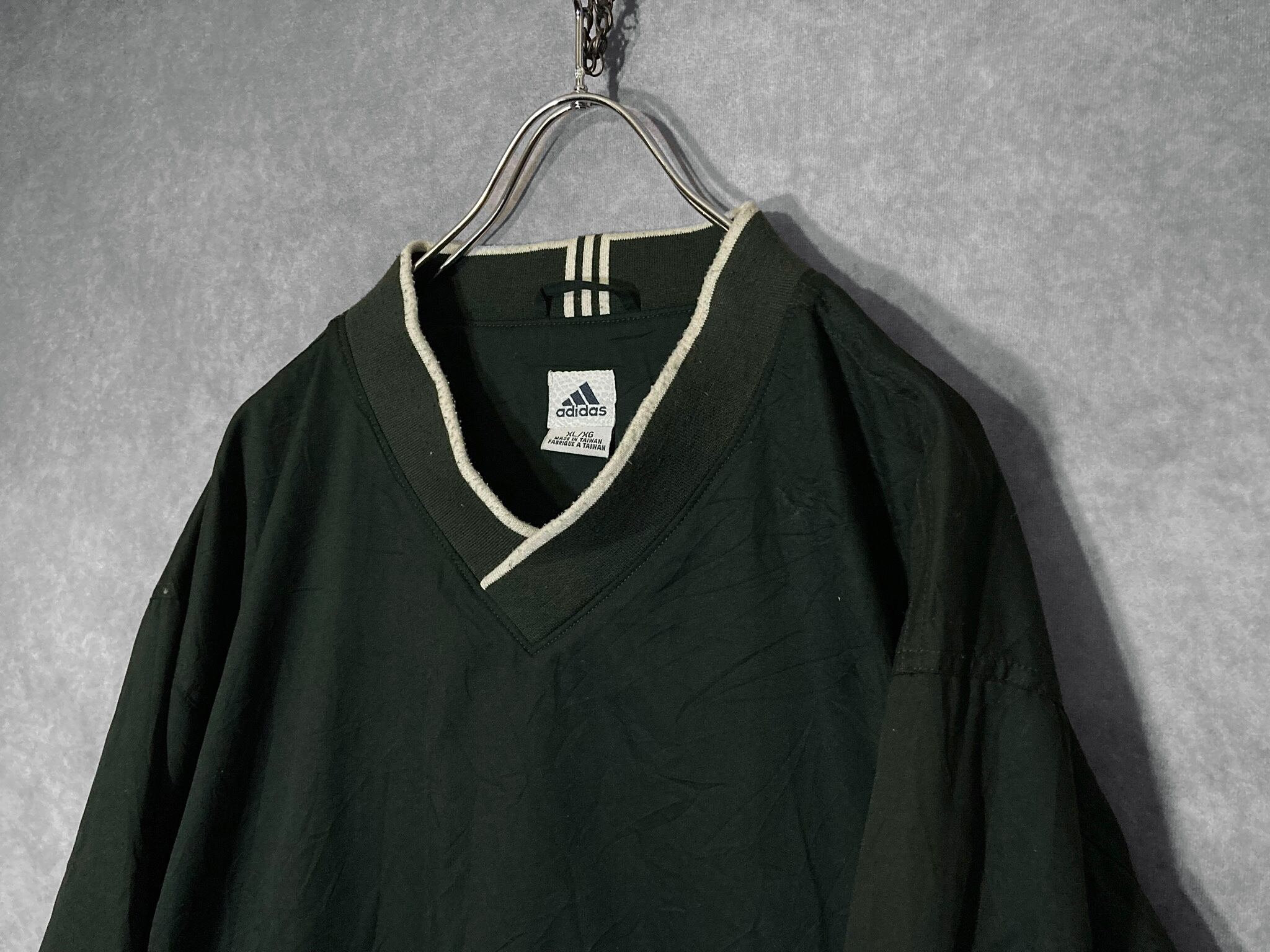 【adidas】XL Logo embroidery × Dark green color design Nylon Pull-over