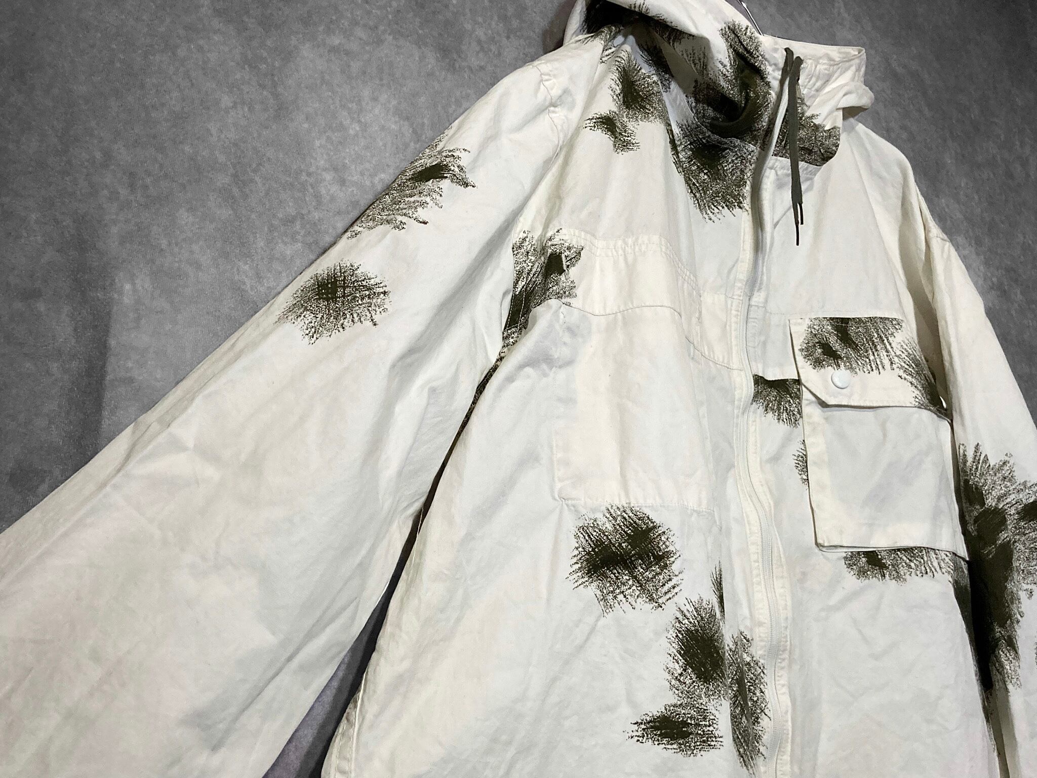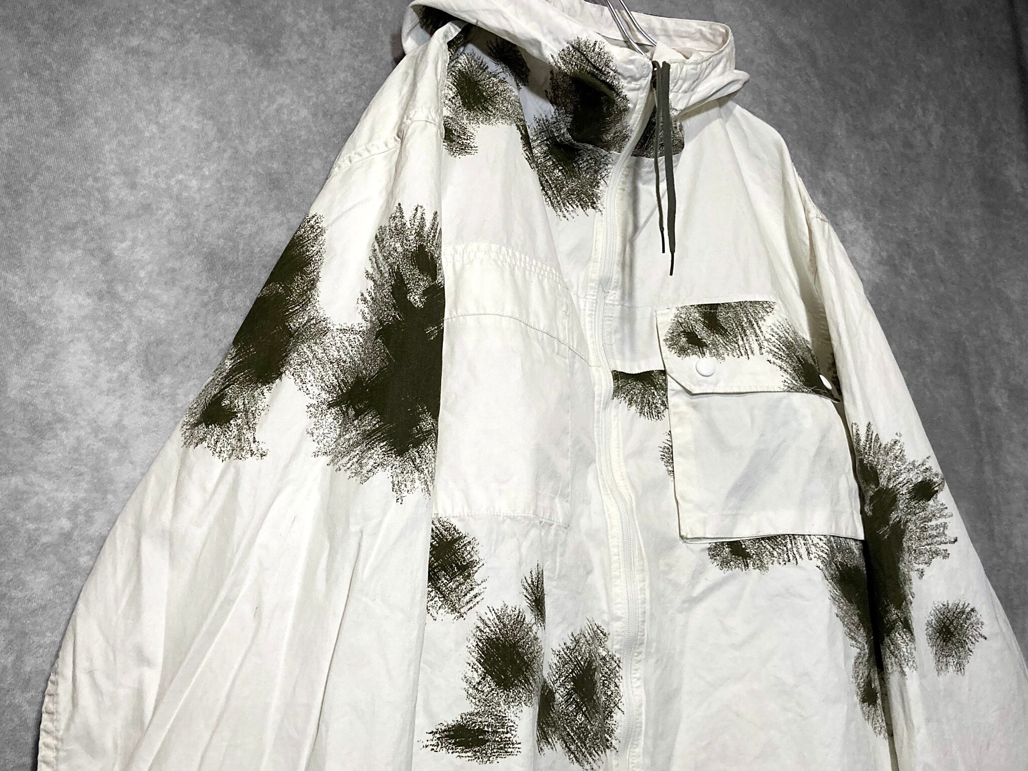 漫画の技法でよく見かけるカケアミのような幻影グラフィックデザインがイケすぎな雰囲気ムンムンのスノーホワイトモッズパーカーの入荷です。