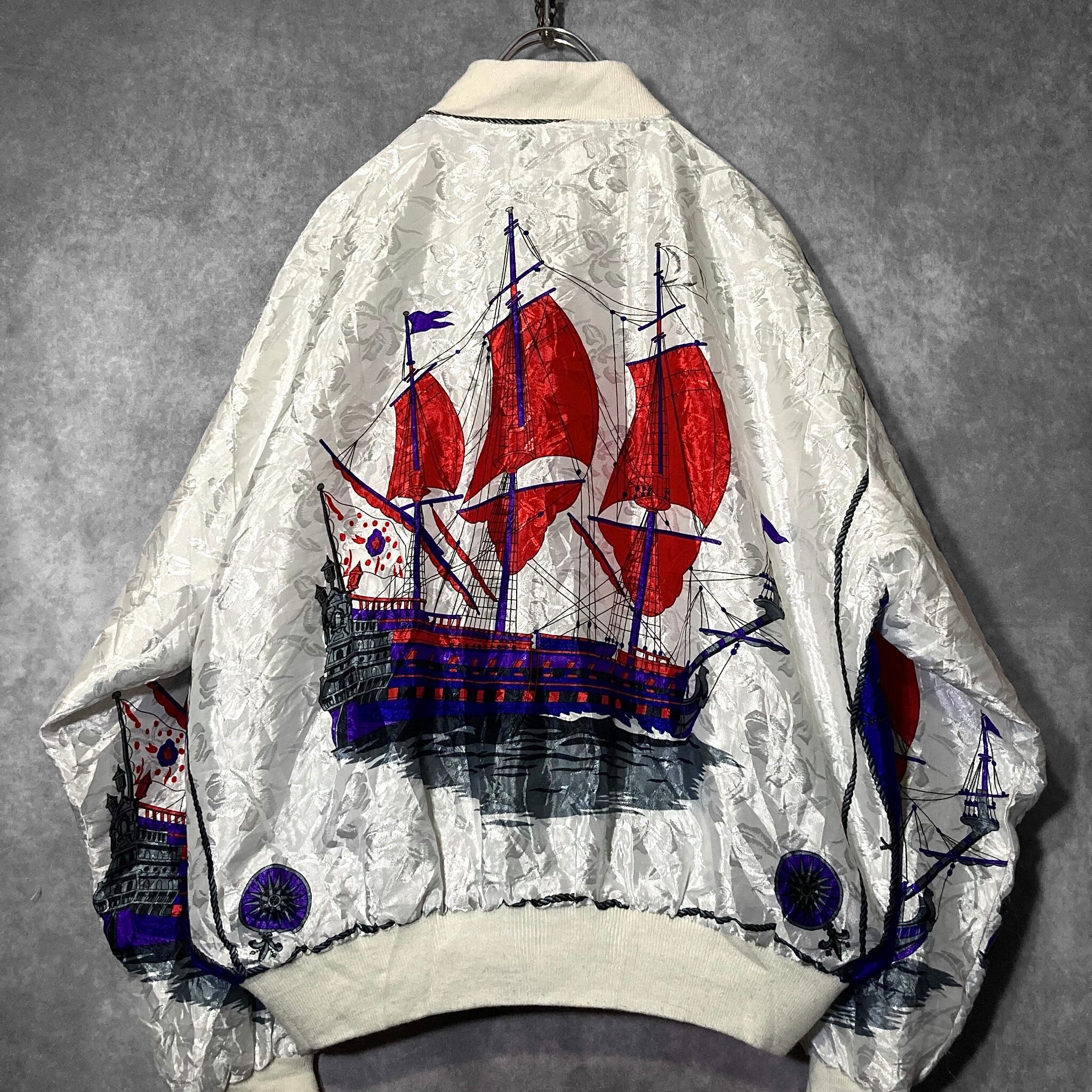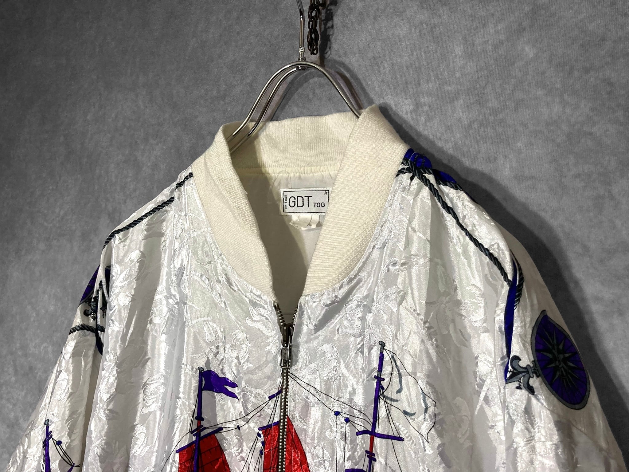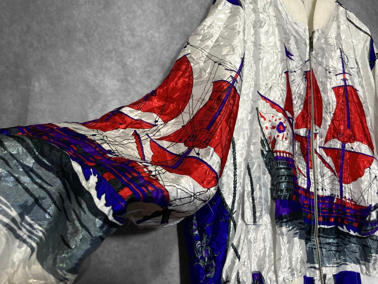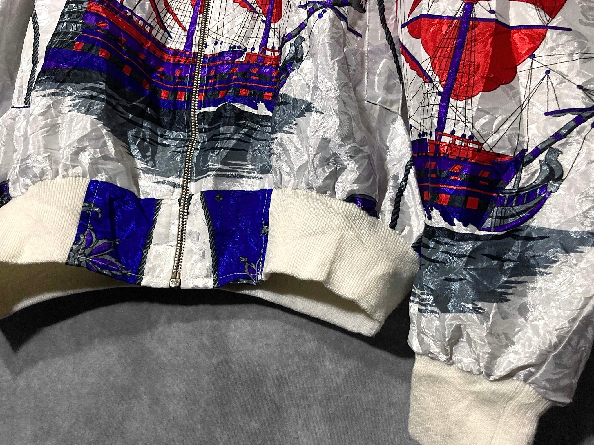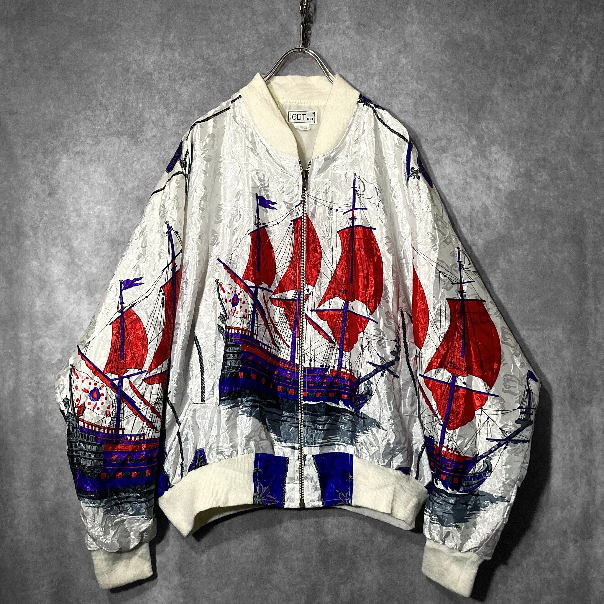 Hidden Glossy Floral pattern × Sailing ship pattern Combination design Full-zip Bomber jacket
