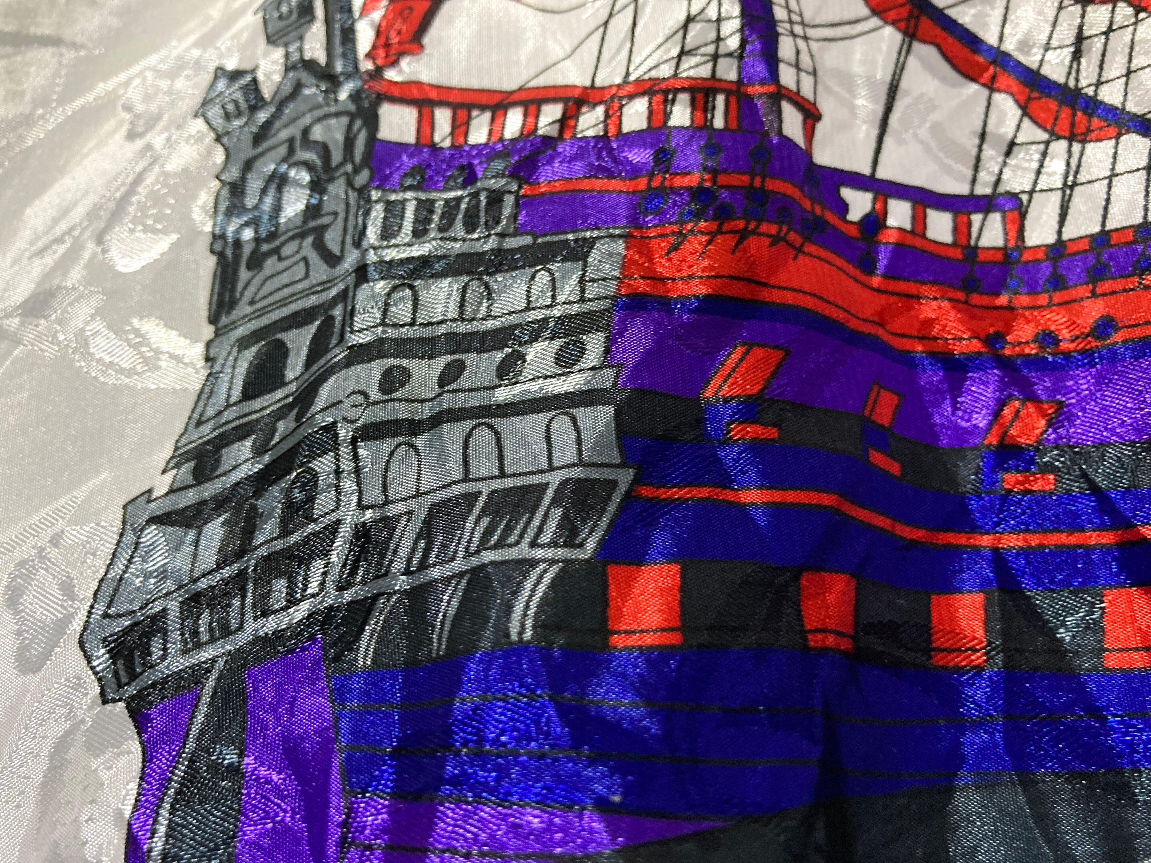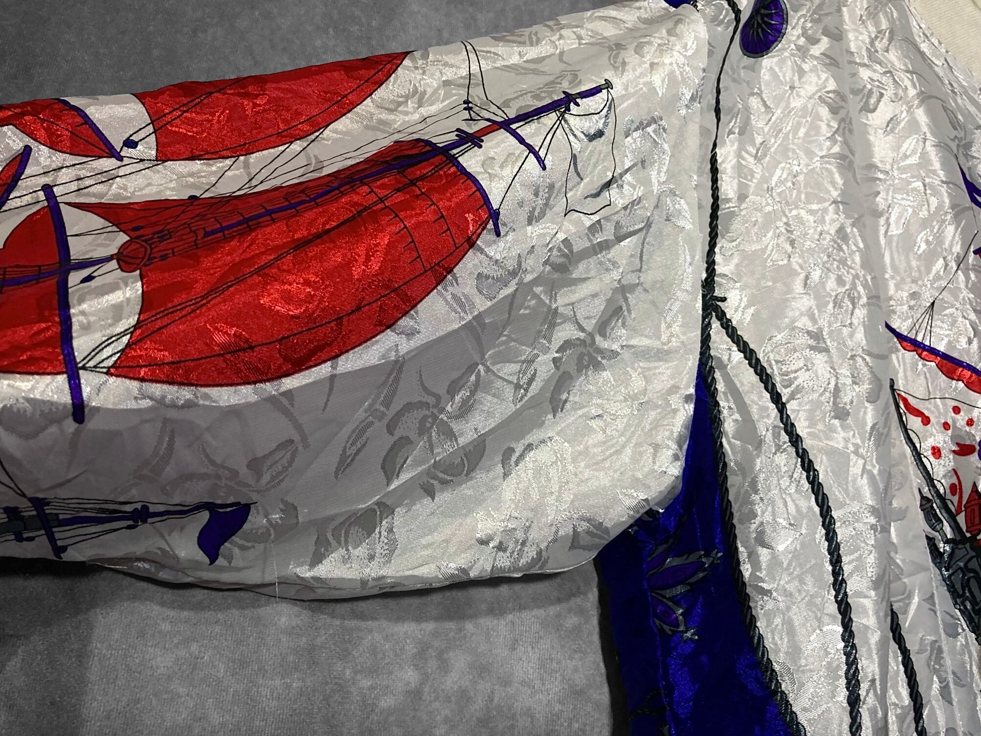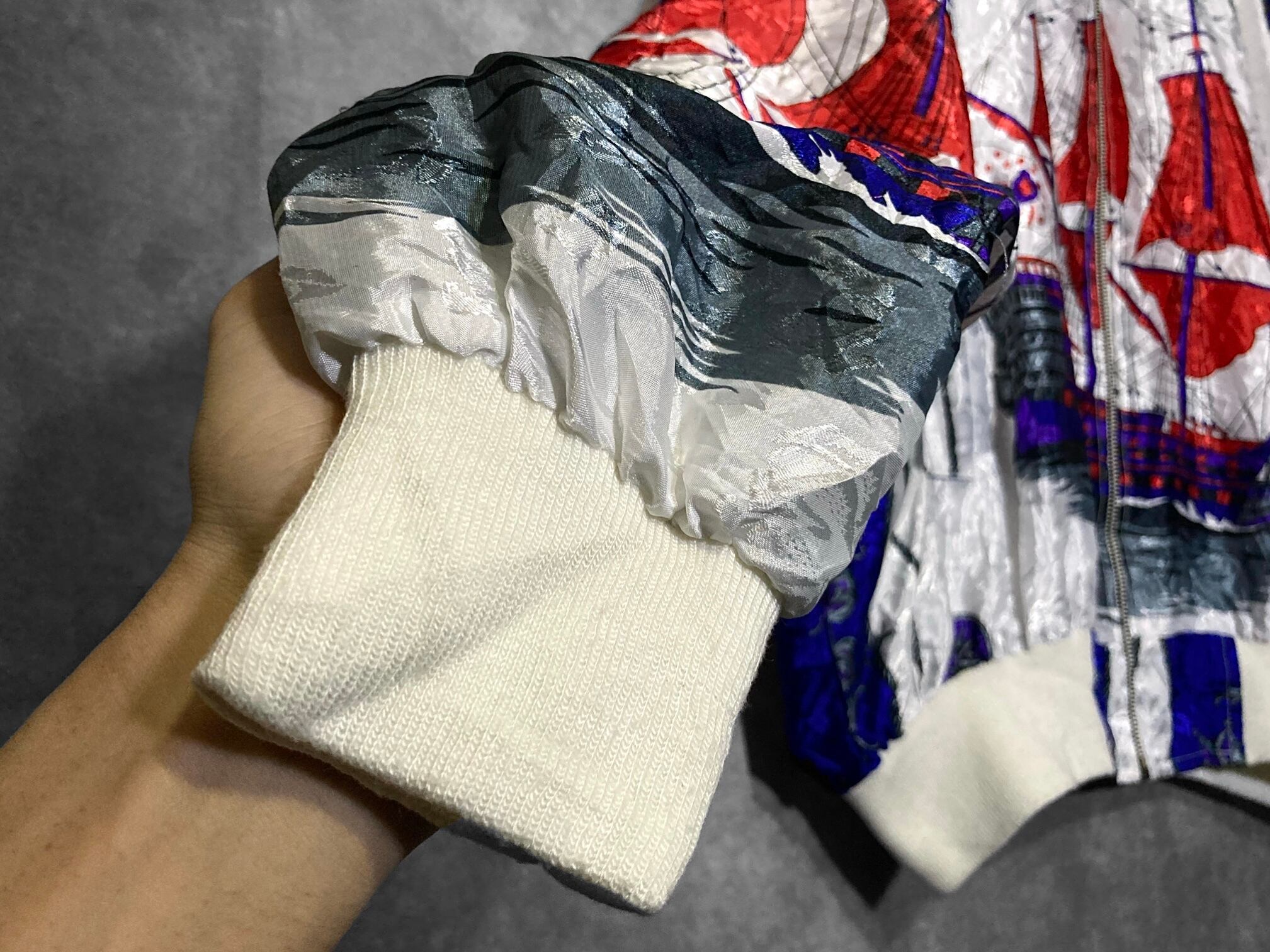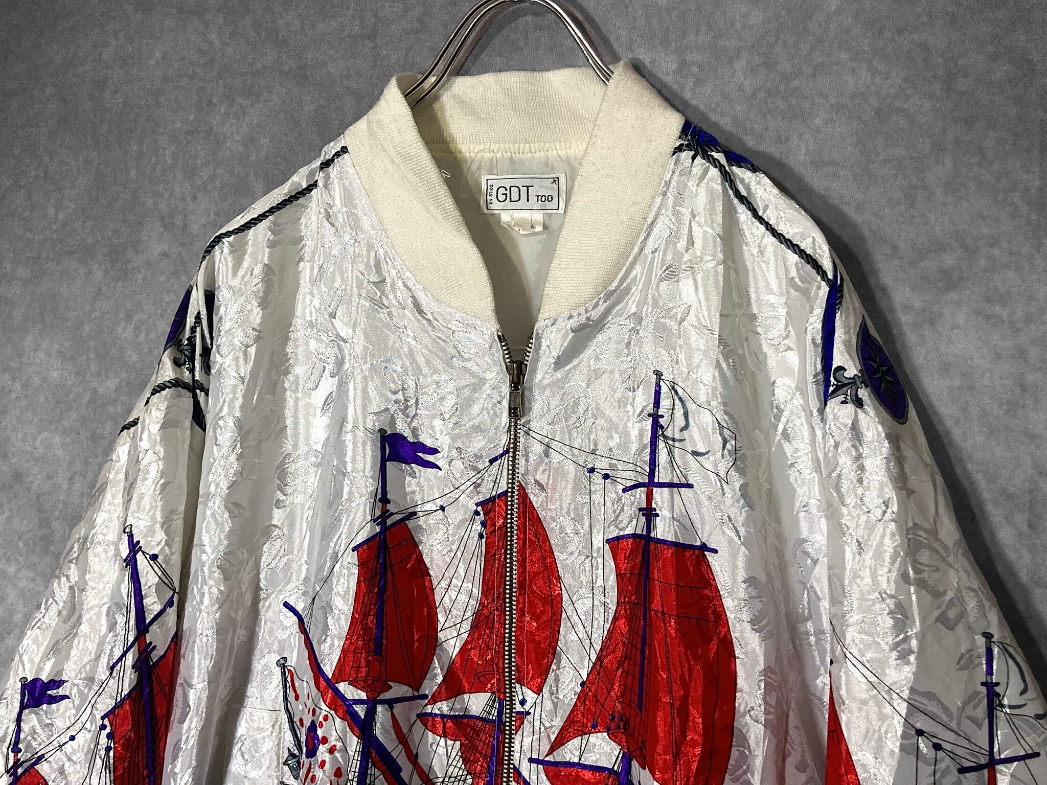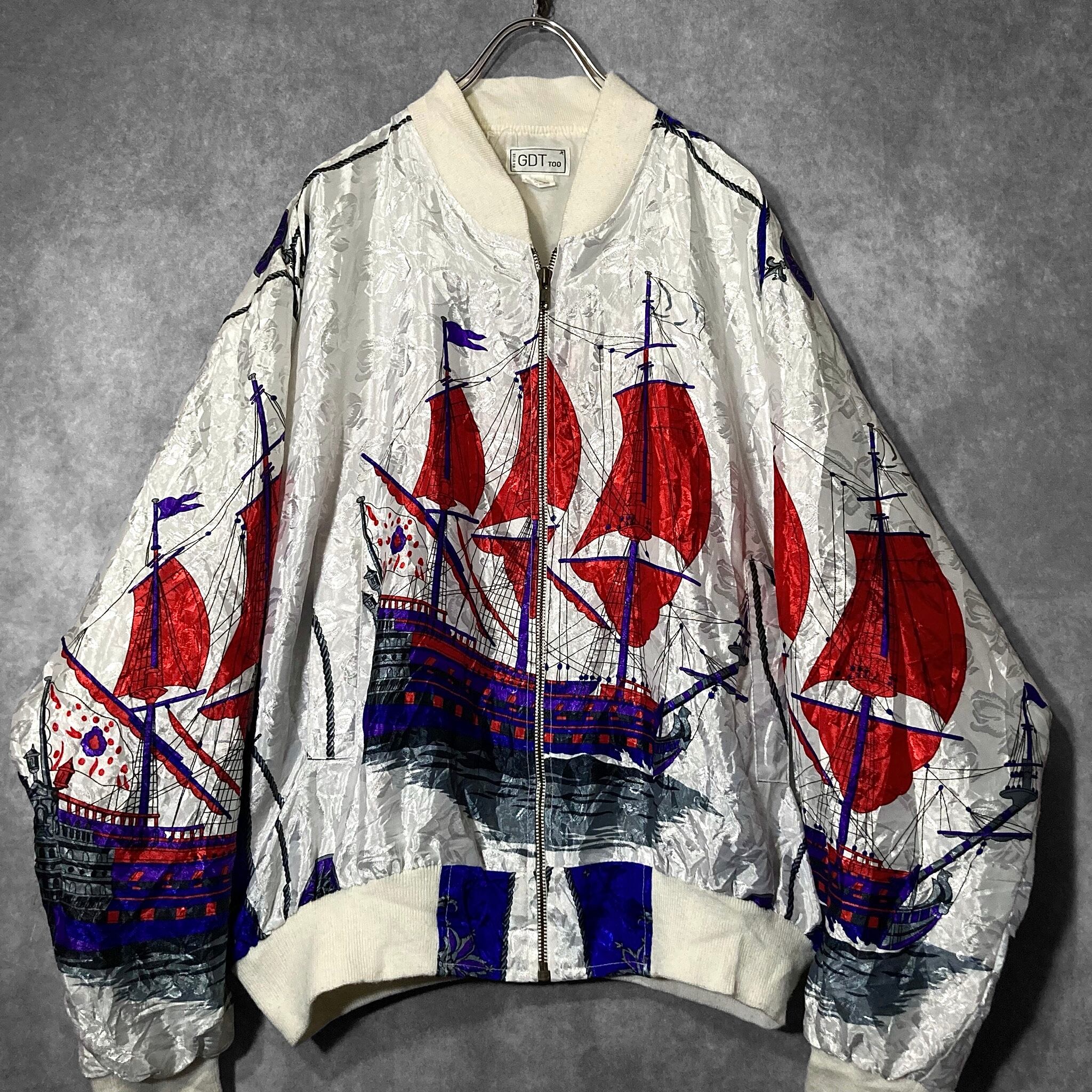 Hidden Glossy Floral pattern × Sailing ship pattern Combination design Full-zip Bomber jacket