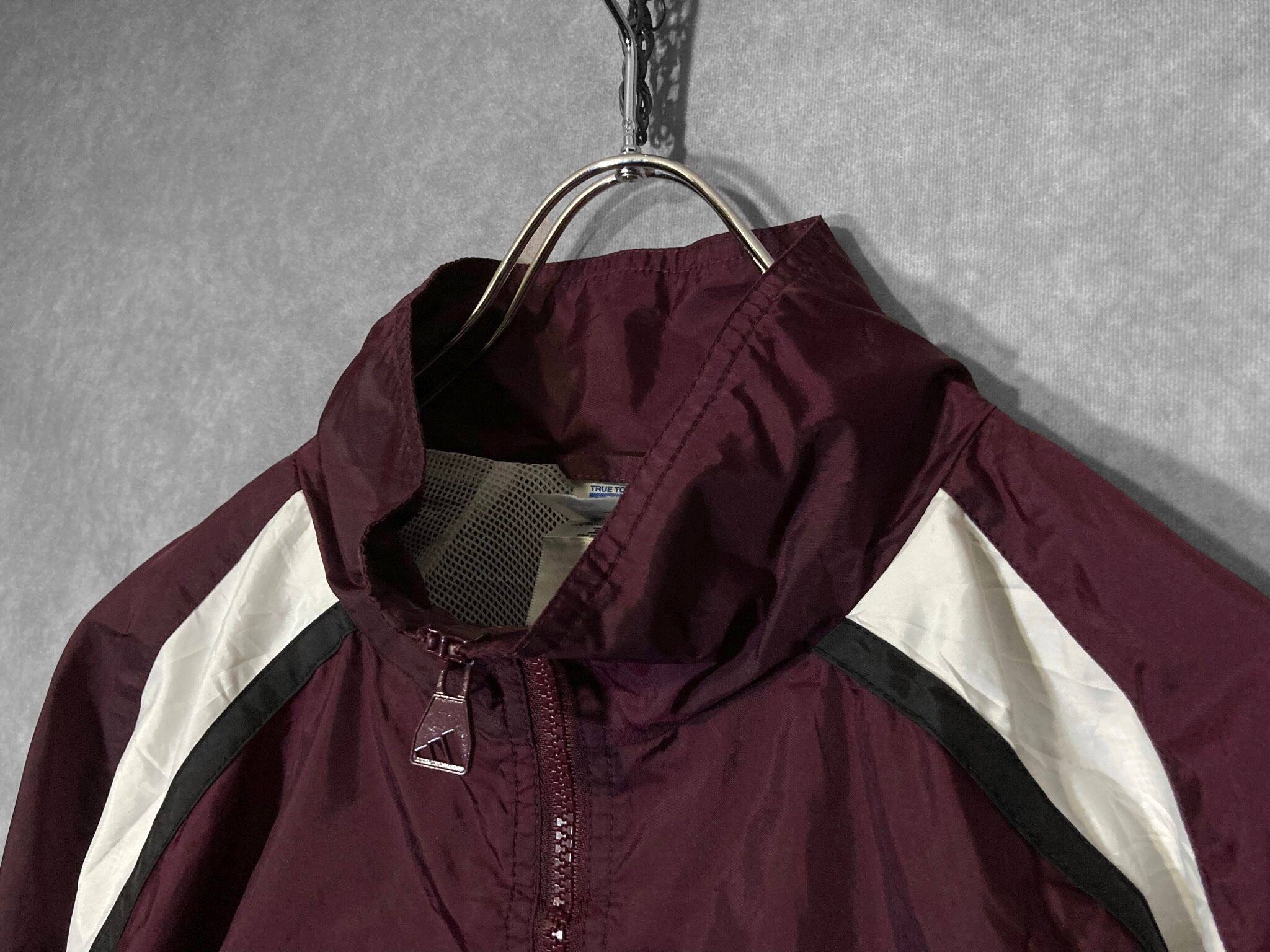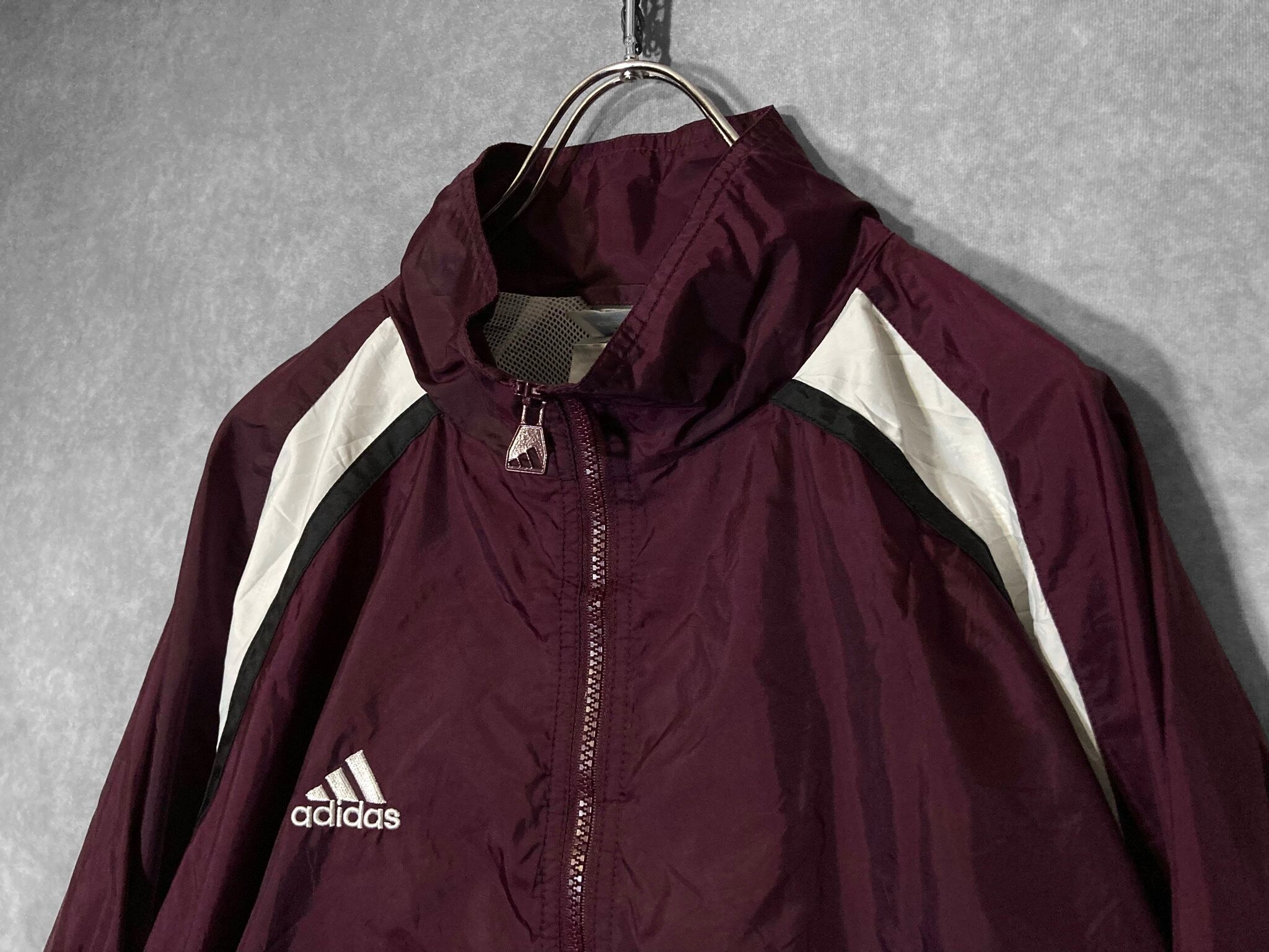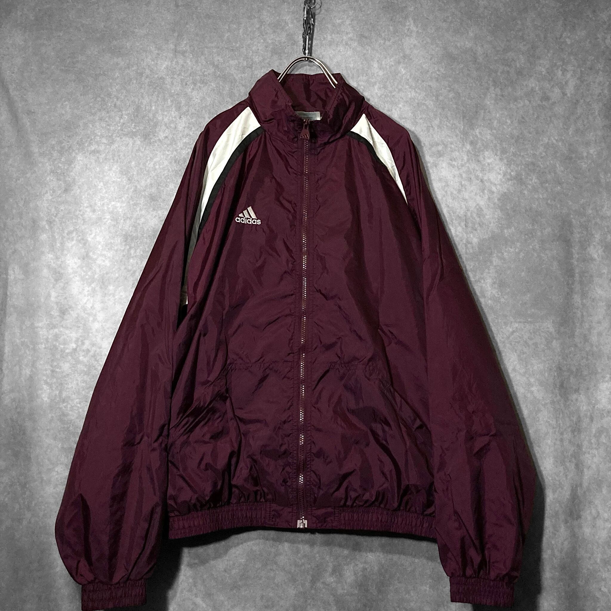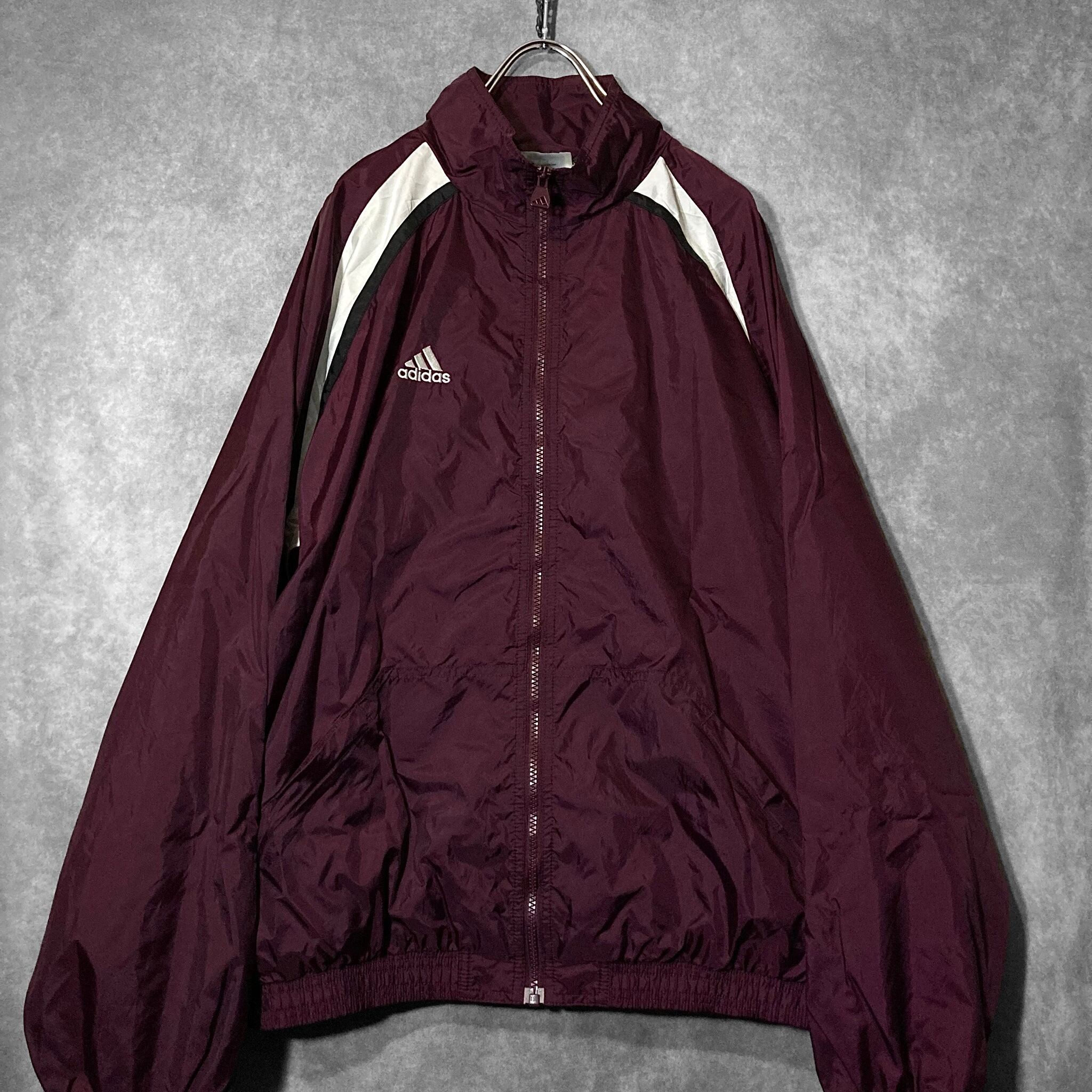 【adidas】Wine red color × Logo embroidery design Full-zip Nylon jacket