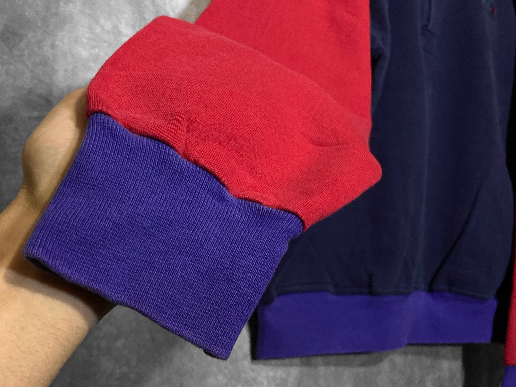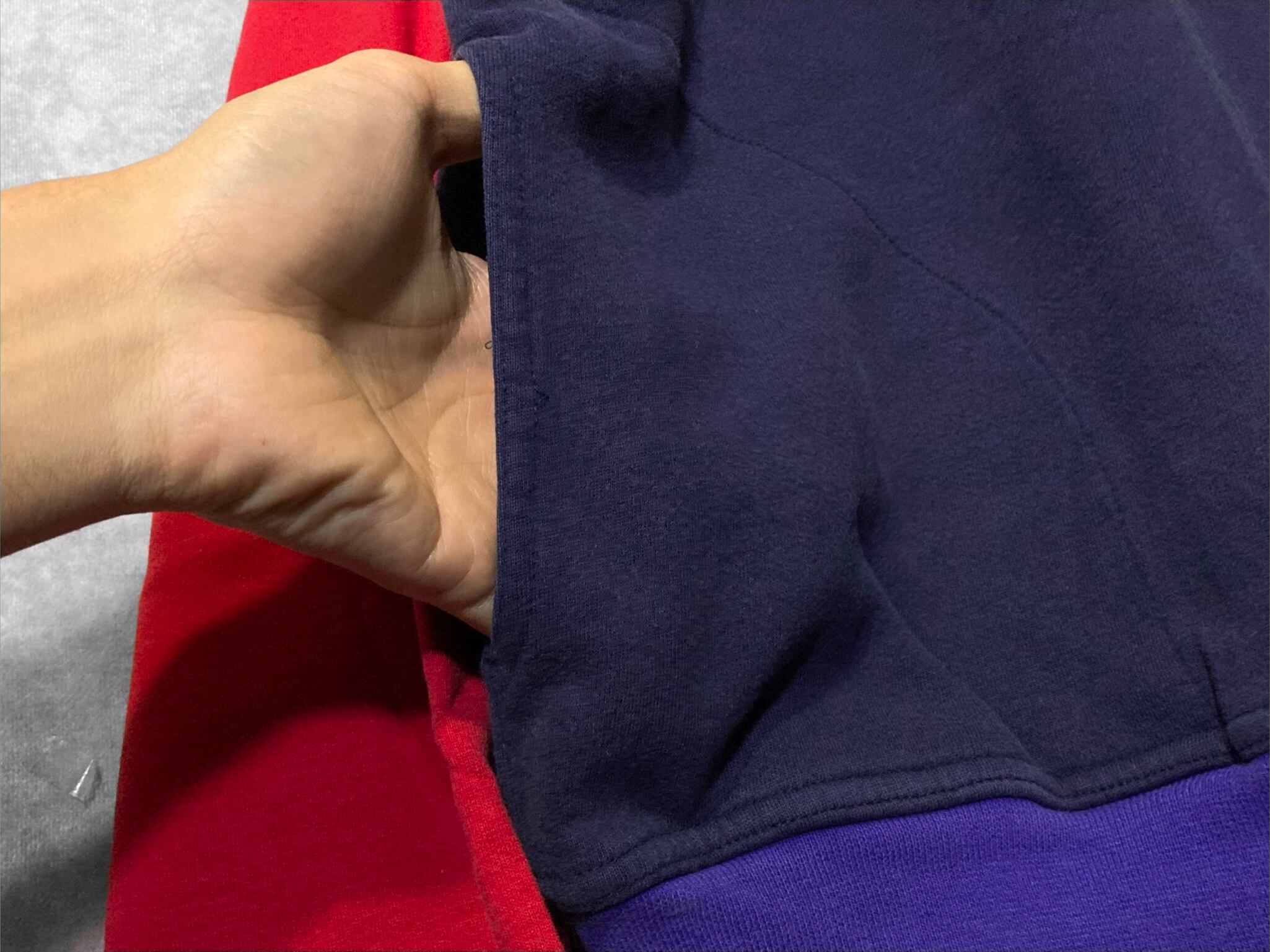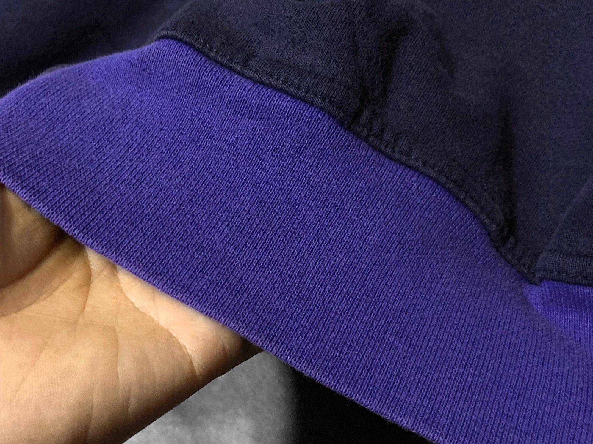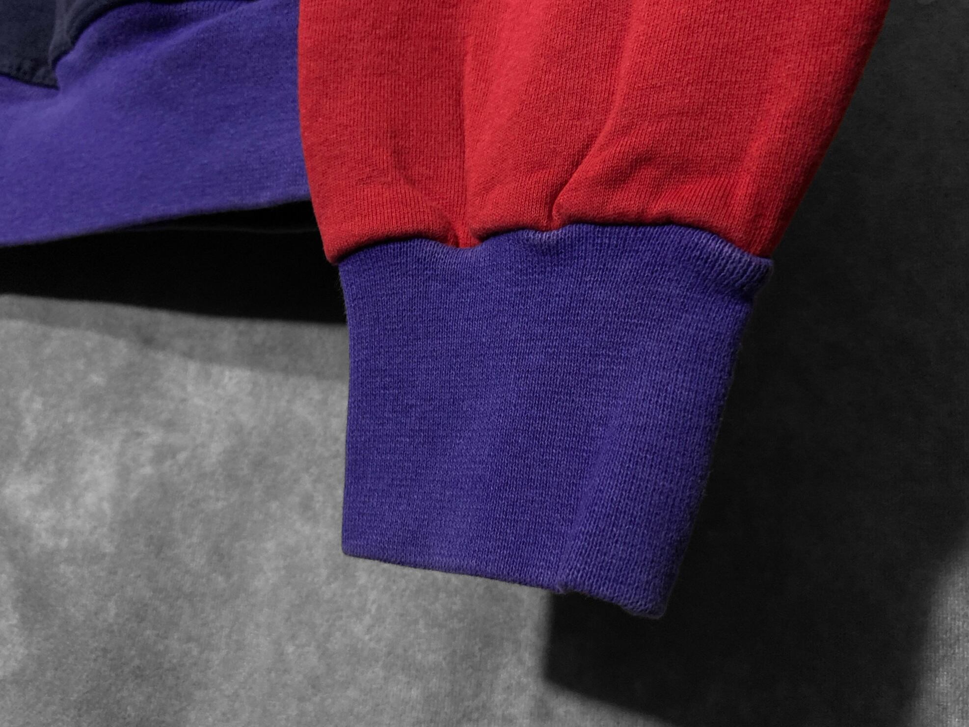 パープルと赤の配色の切り替えがかわかわなスウェットプルオーバーの入荷です。