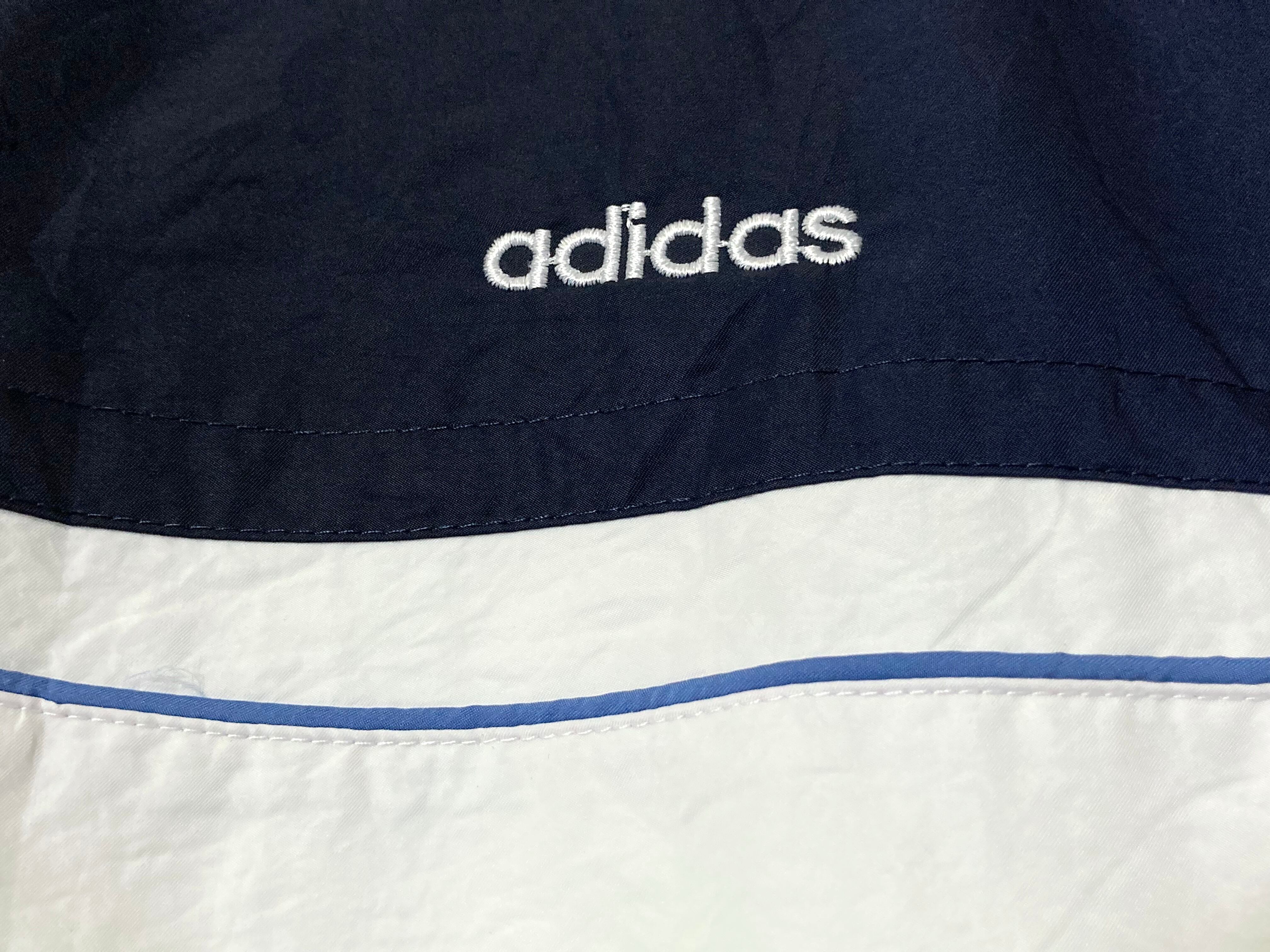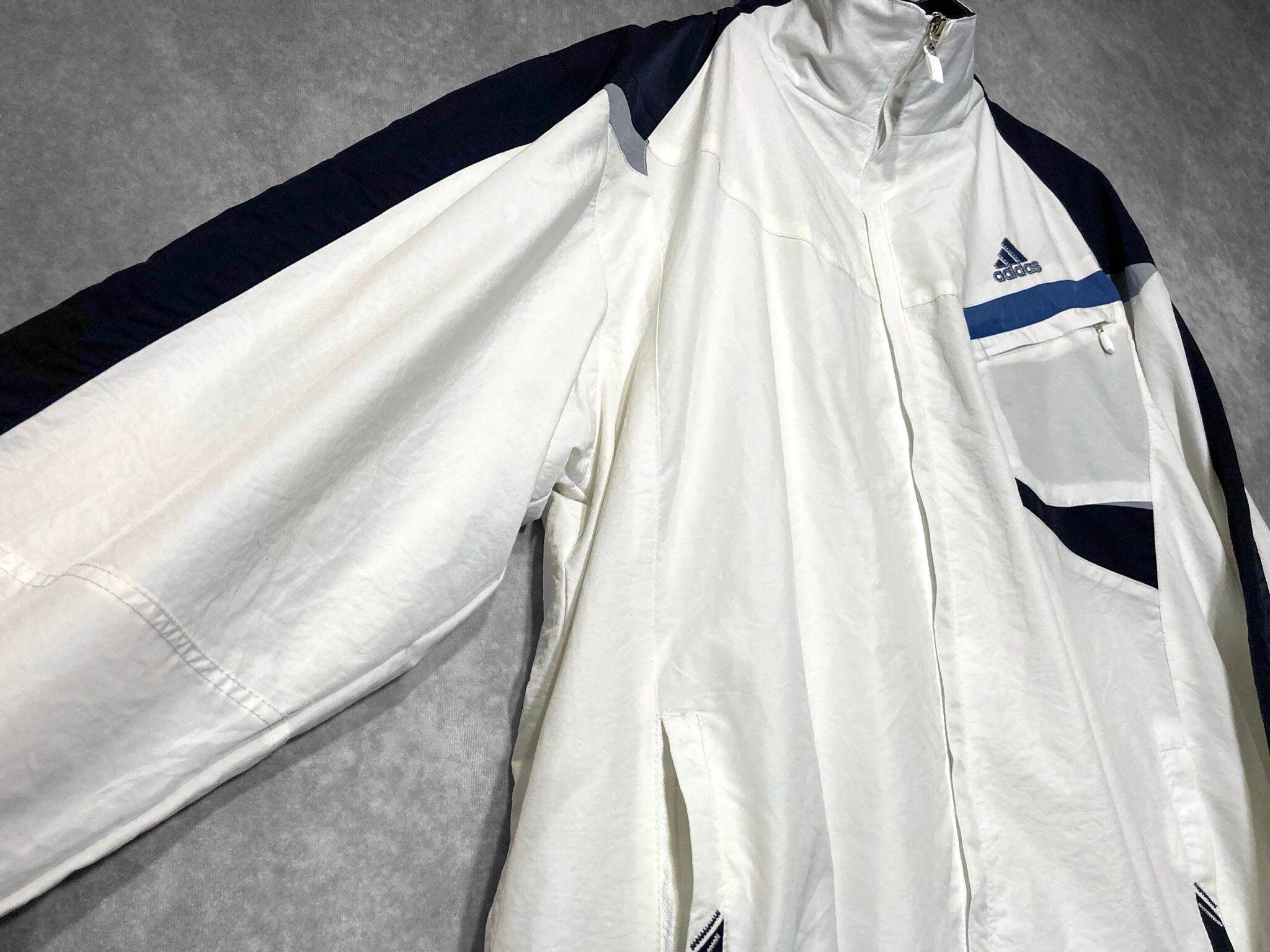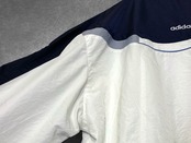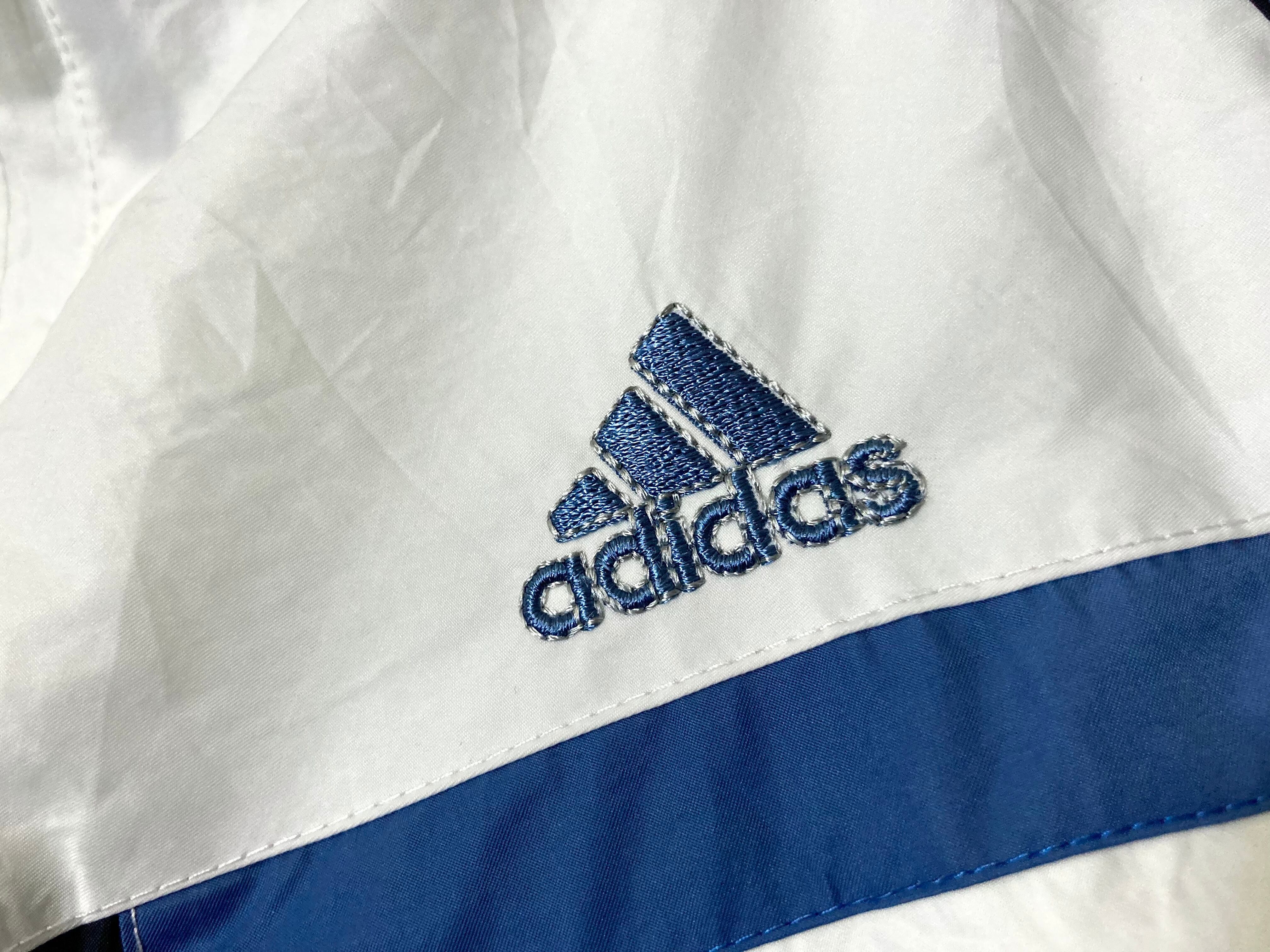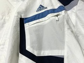 adidasのアイコンでもあるスリーストライプ(3本線)やカラーモノが多い中、変わったデザインのトラックジャケットの入荷です。