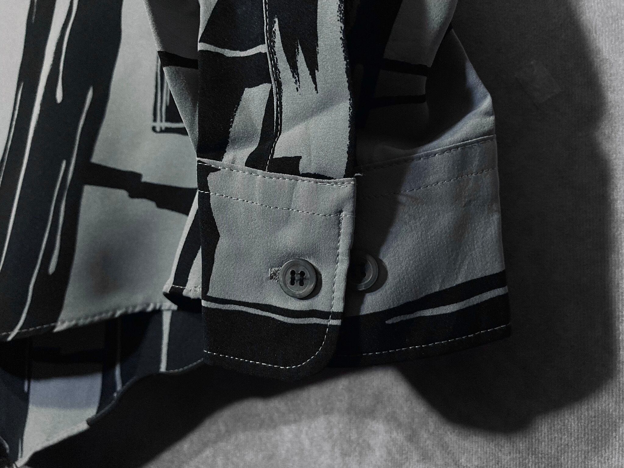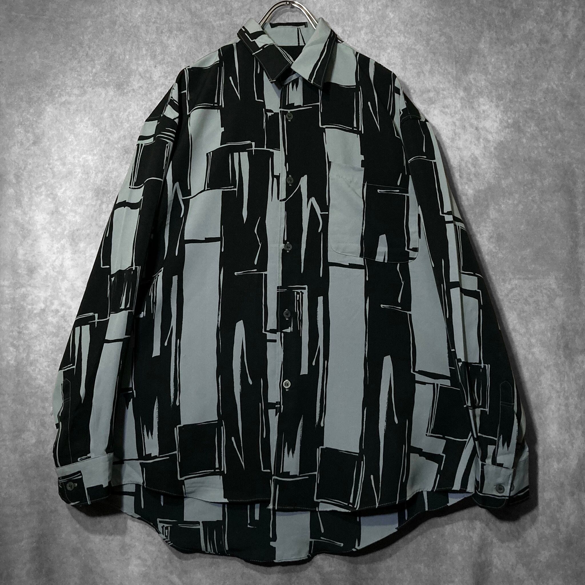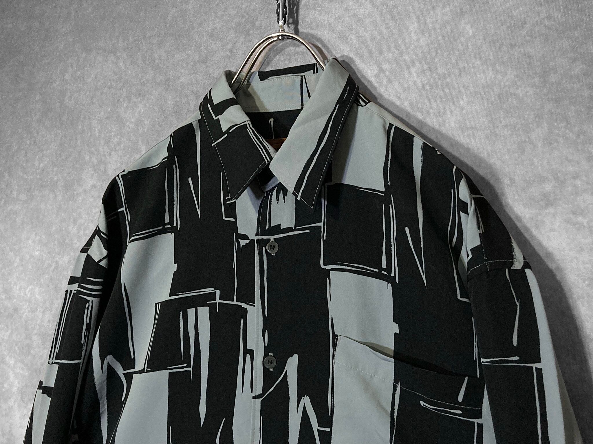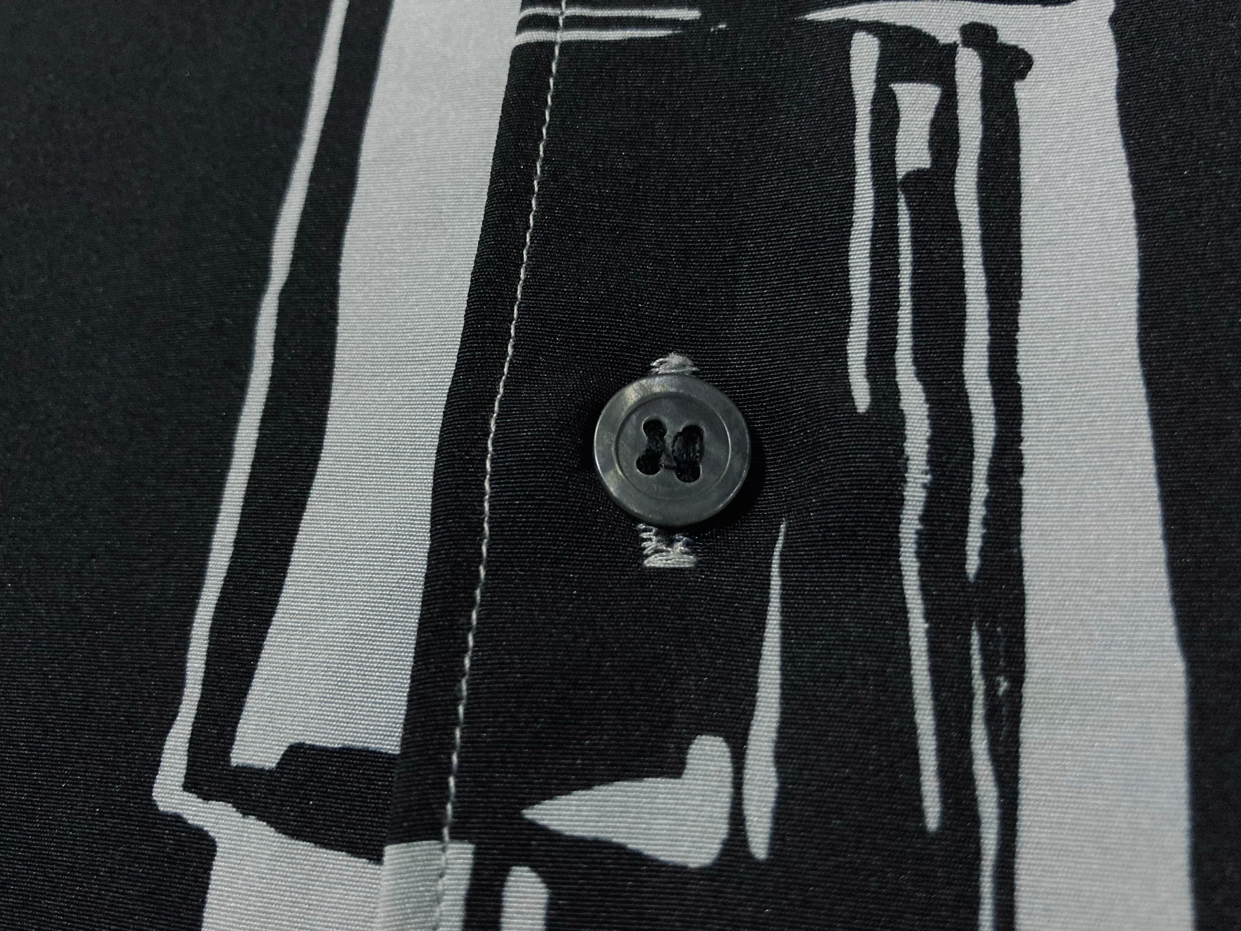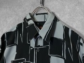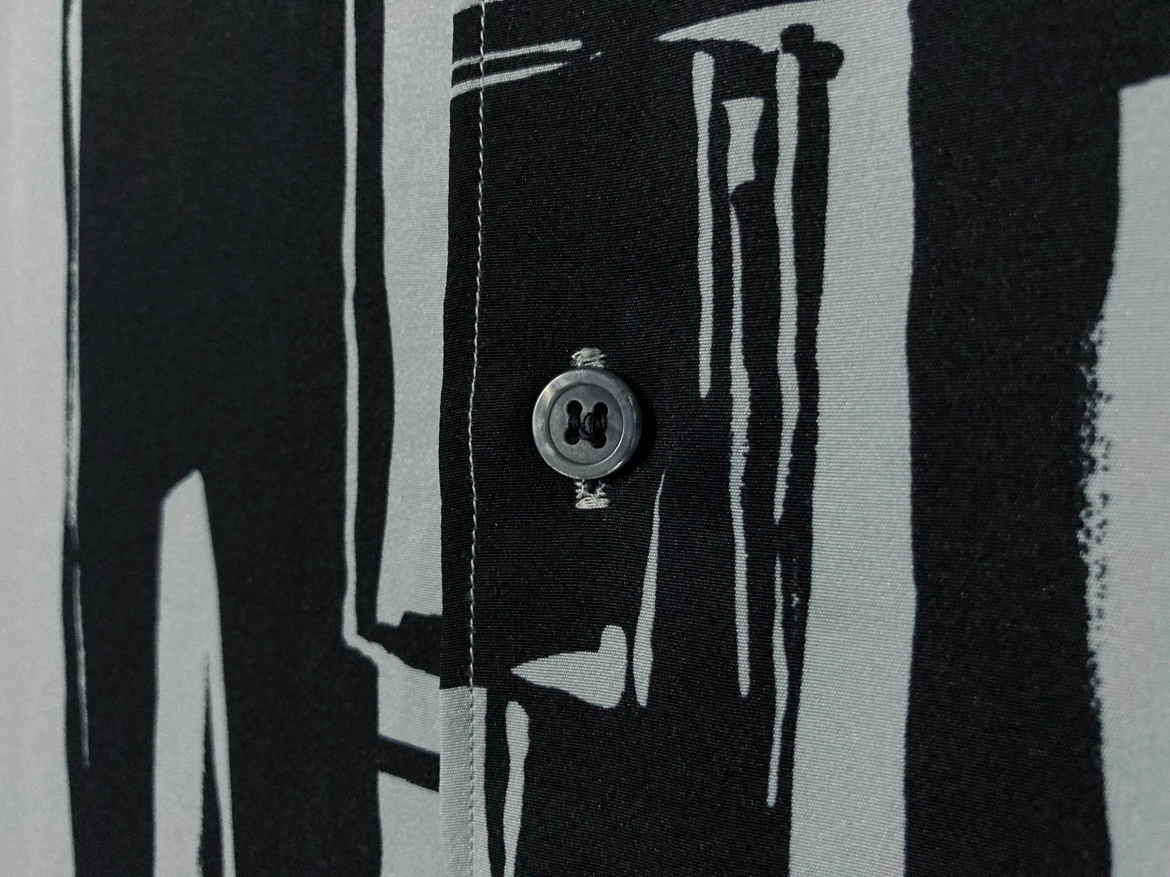 影が落ちた裏路地のようなモノトーンデザインの総柄が雰囲気ムンムンのデザインシャツの入荷です。