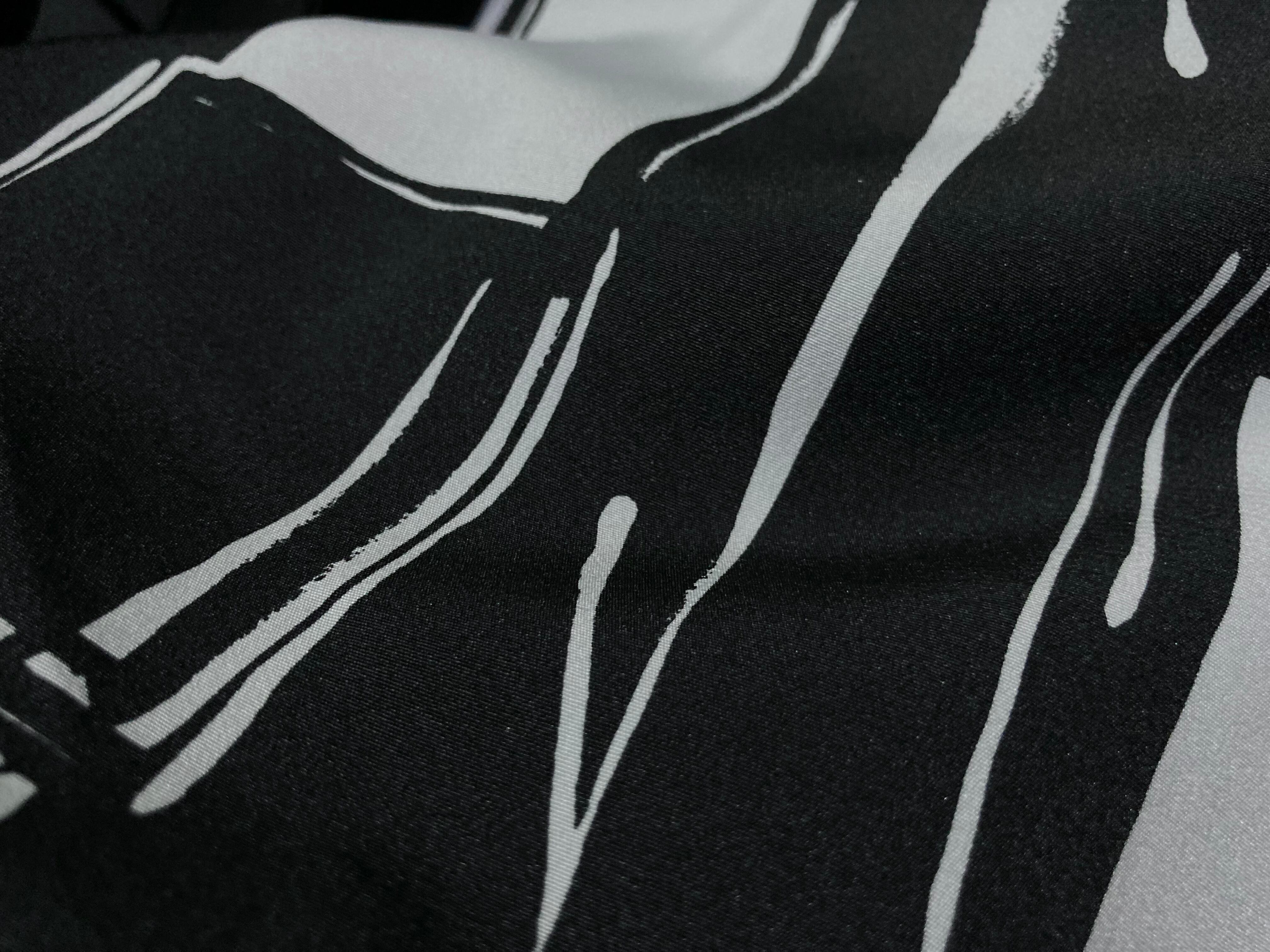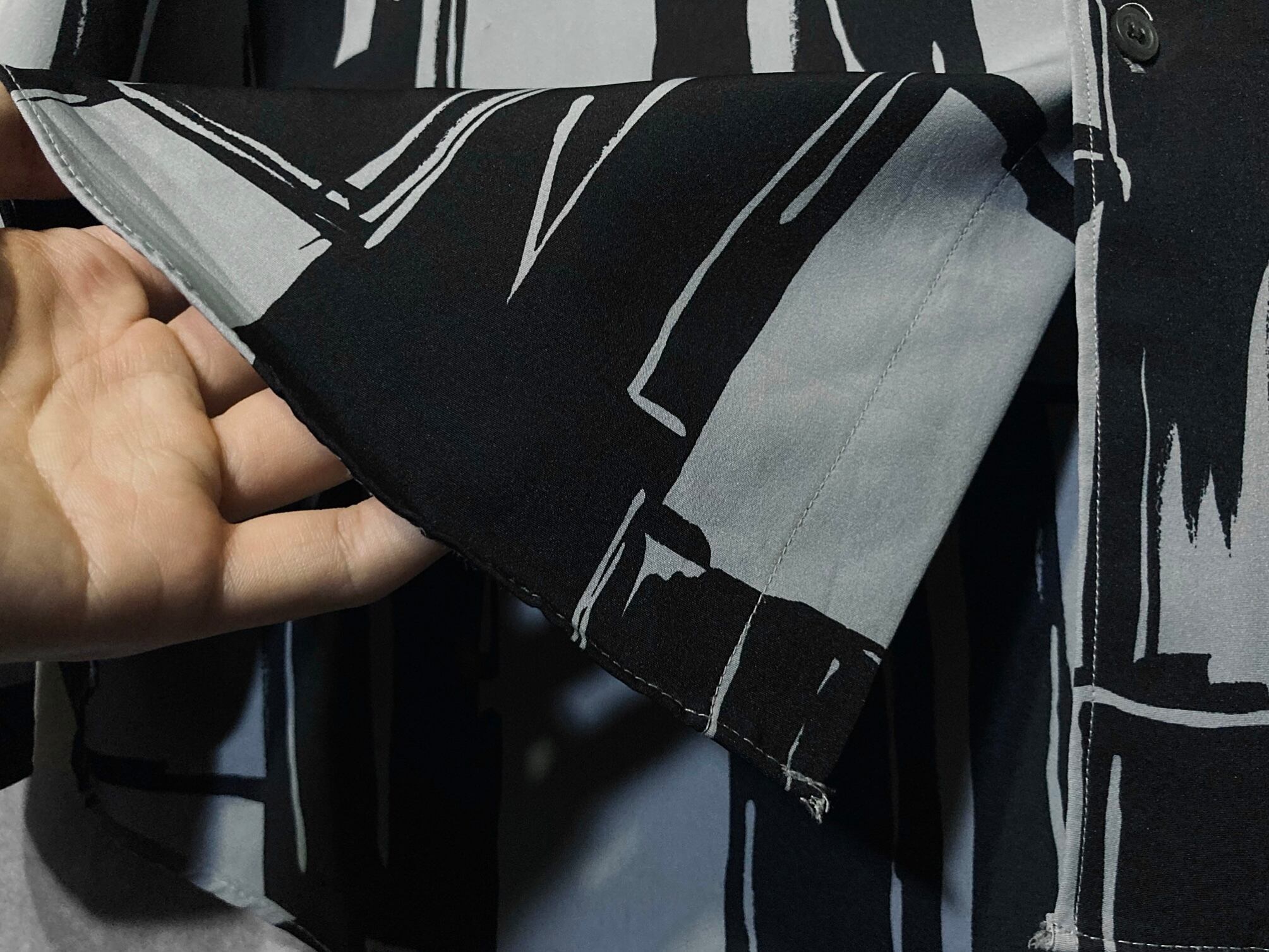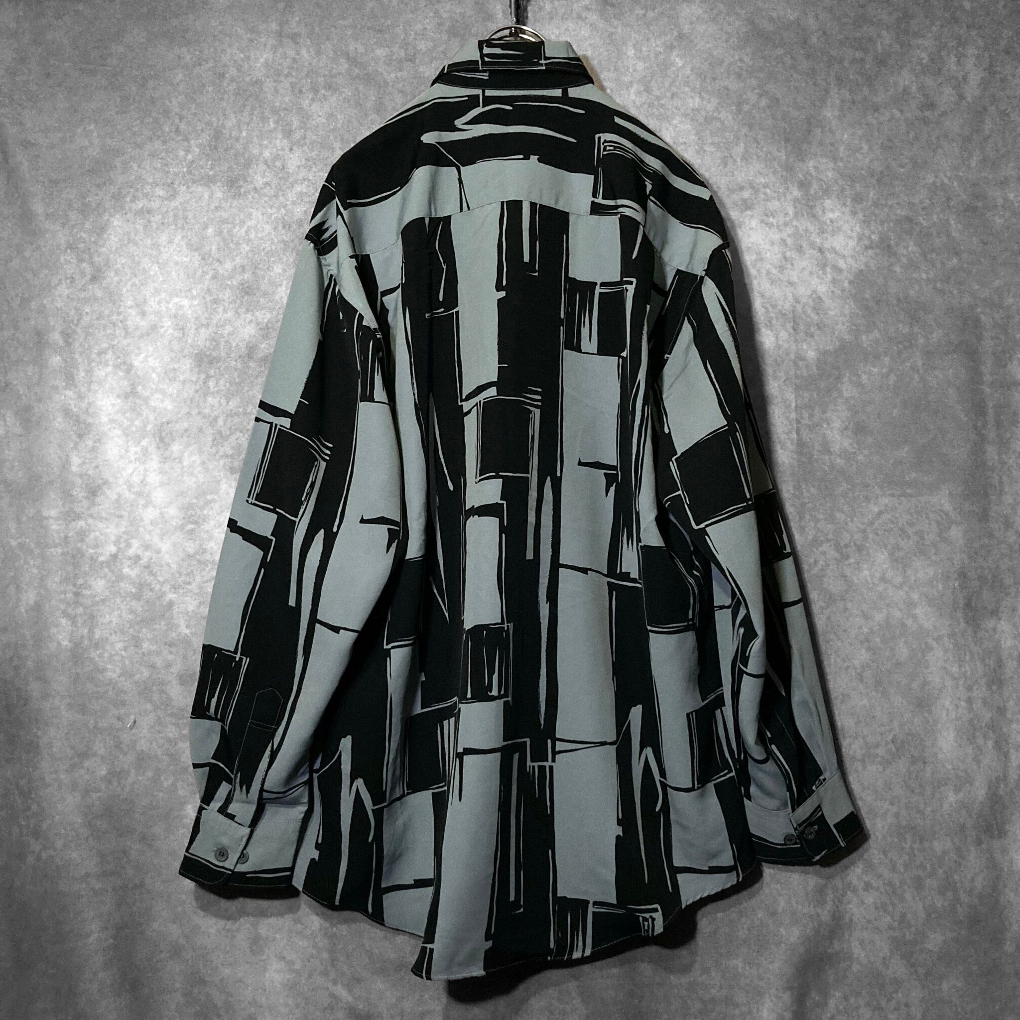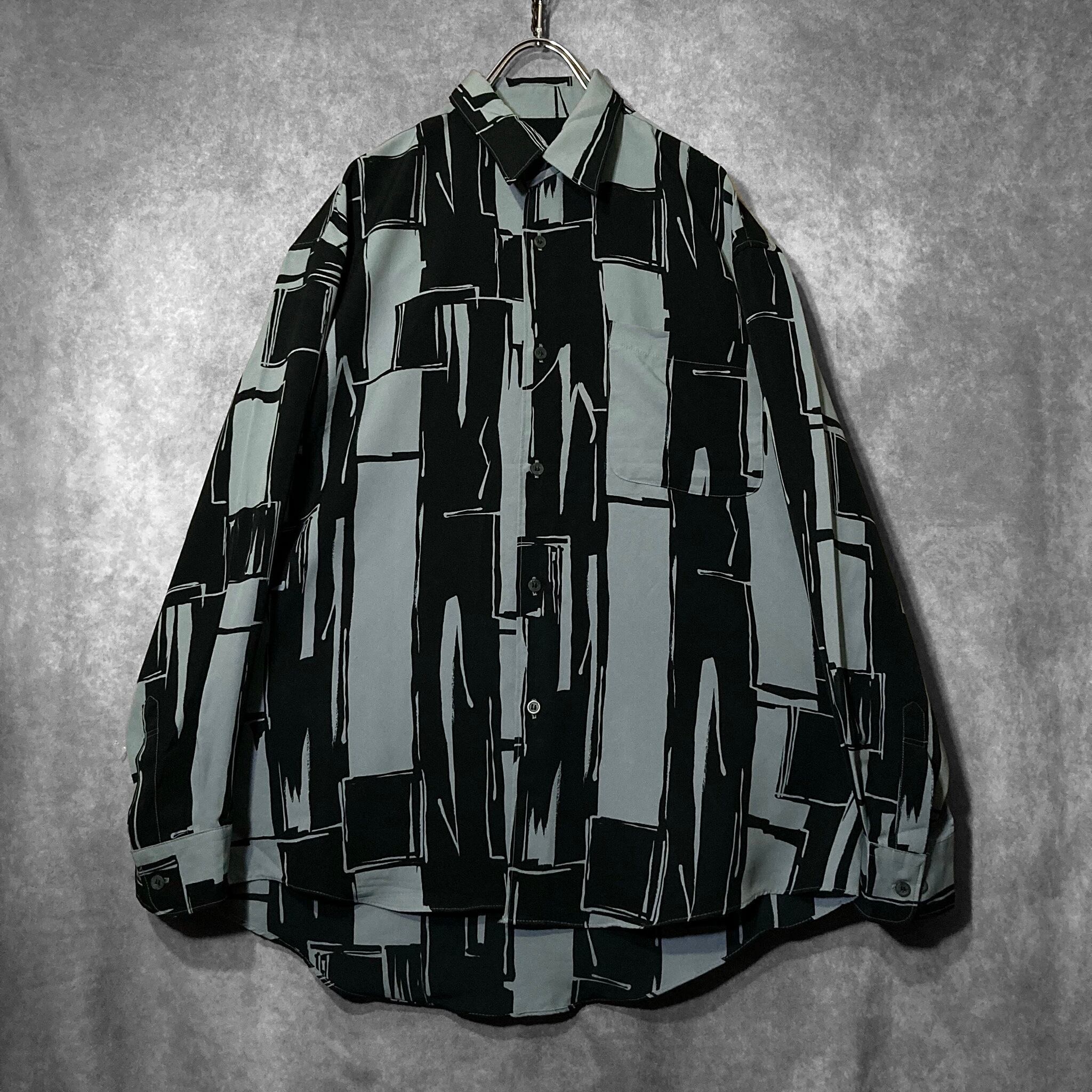影が落ちた裏路地のようなモノトーンデザインの総柄が雰囲気ムンムンのデザインシャツの入荷です。