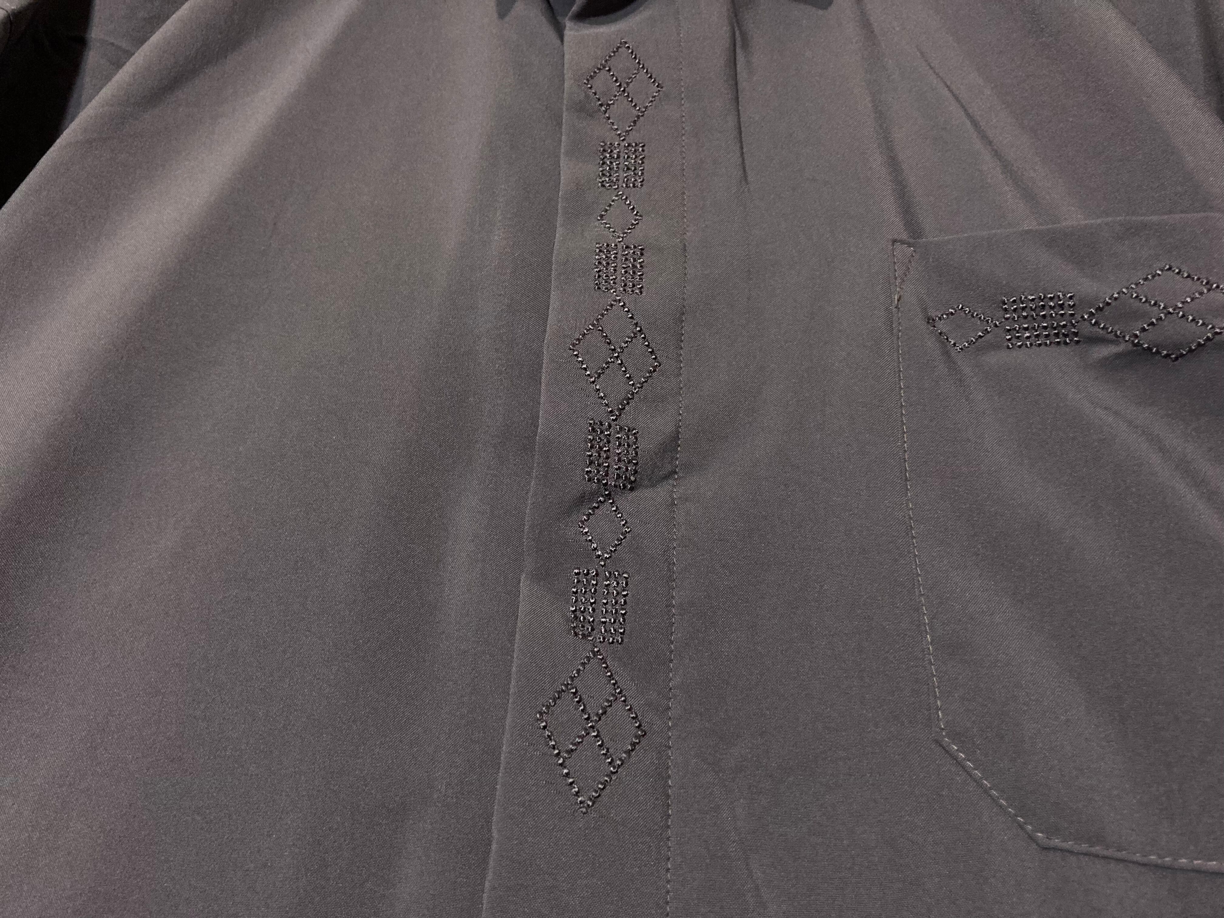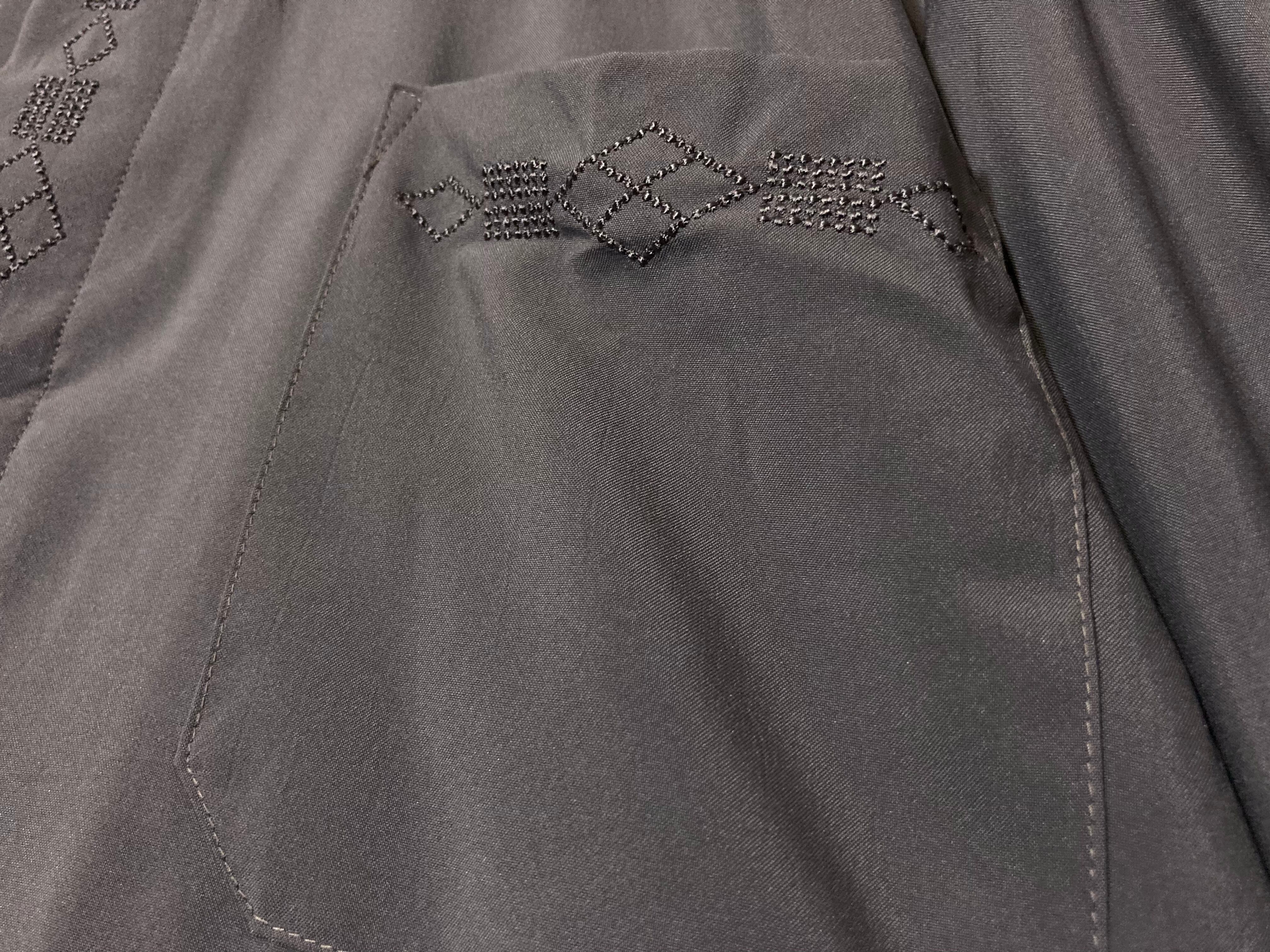 シャツはフロントのボタンラインとポケットに同色の刺繍が配されており、単体としてもデザイン性を感じる1着。