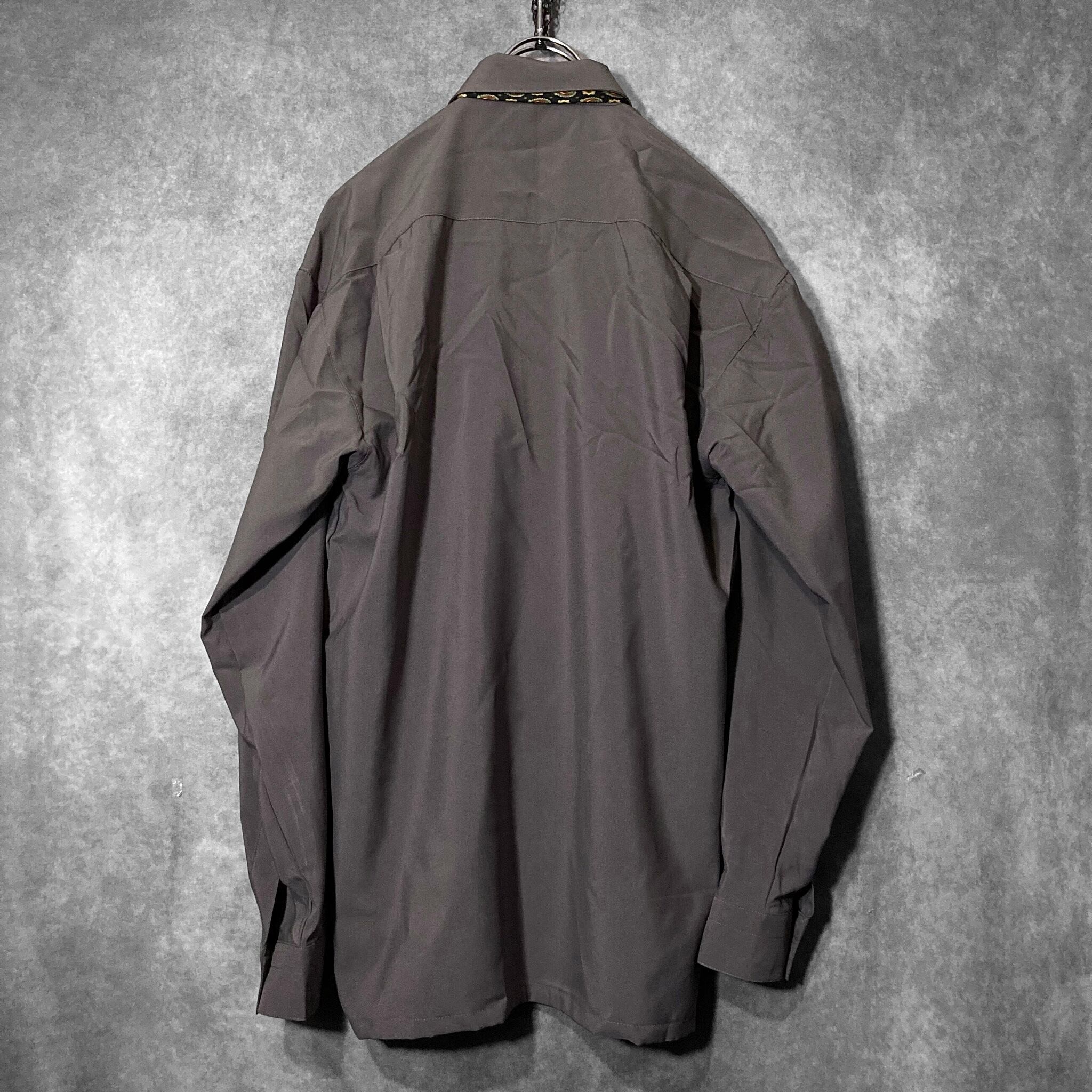 テロんとした生地感のパープルカラーシャツにさりげなく主張するペイズリーが絶妙に合います。