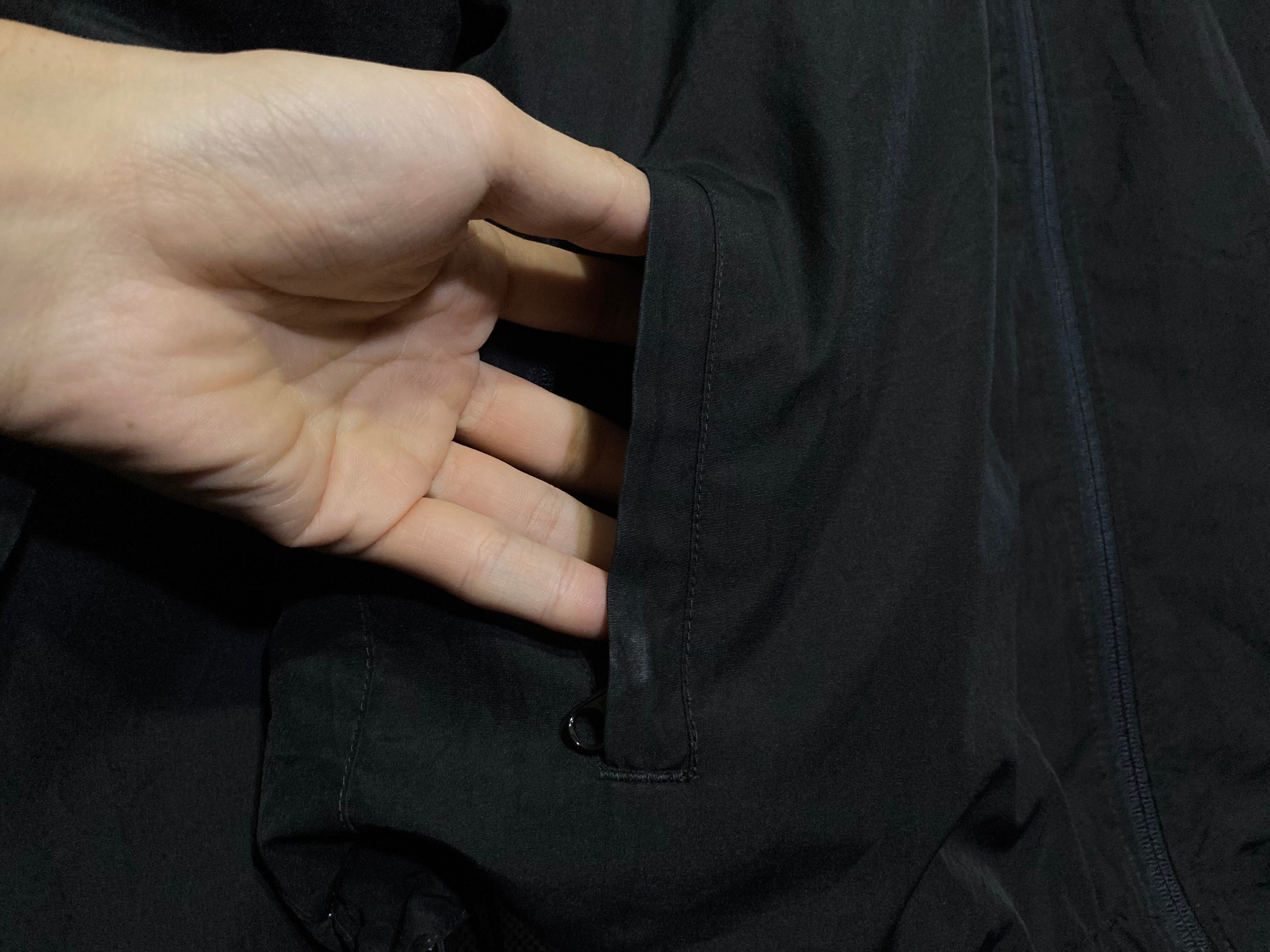 シャカシャカとしたナイロンではなく高密度のポリエステル素材の生地になっているので、いい意味で古着っぽさがなくスポーティかつ都会的な佇まいを感じるディテール。