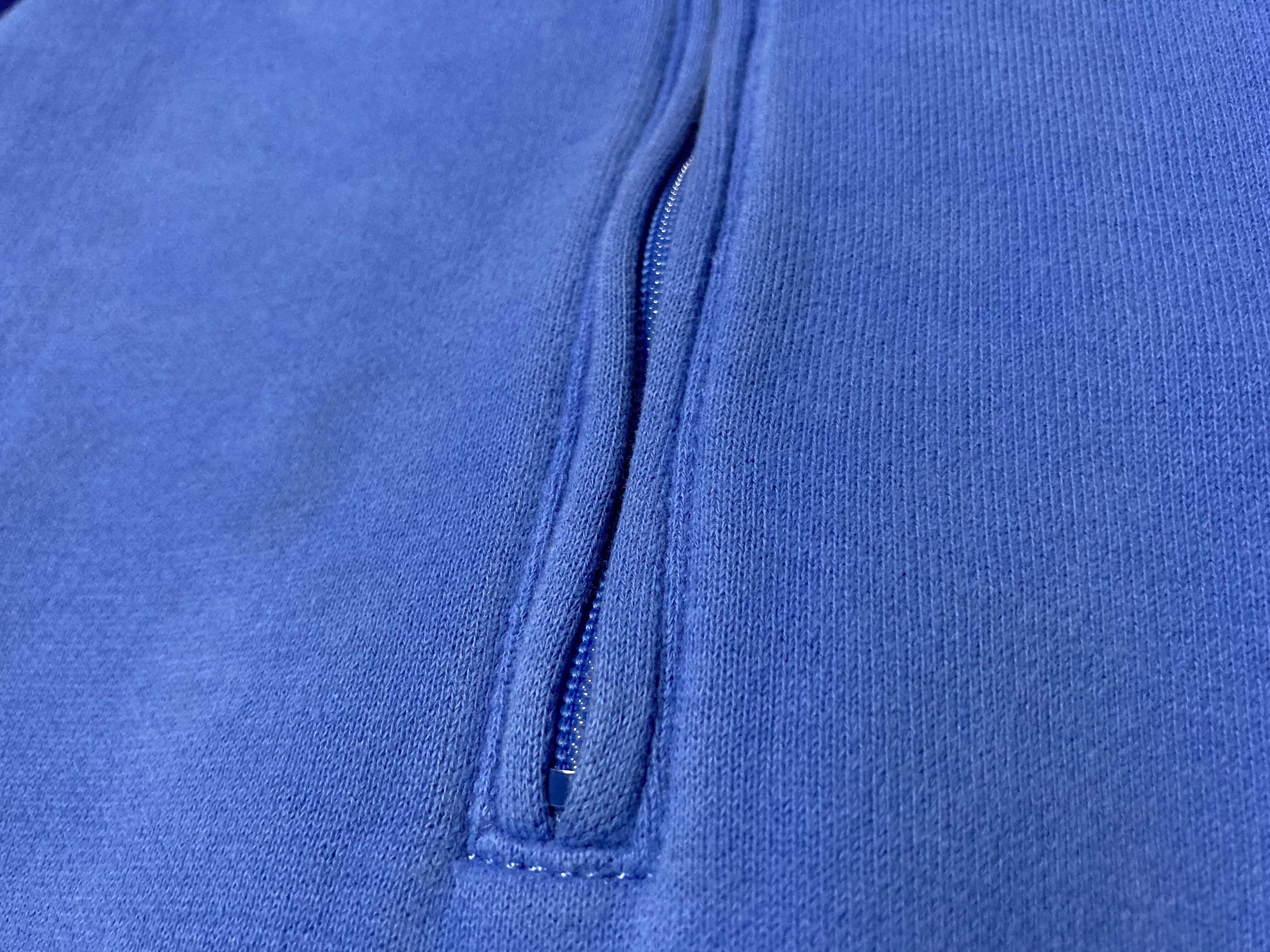 トレンドでもあるハーフジップで頭からガバッと被ってラクに着ていただけます。