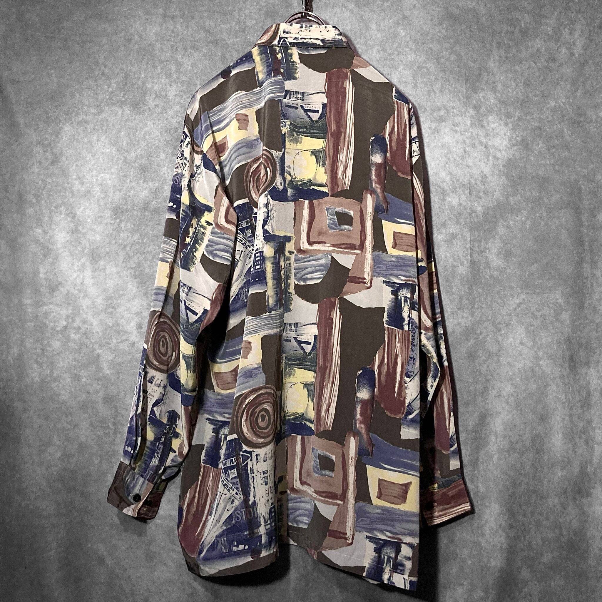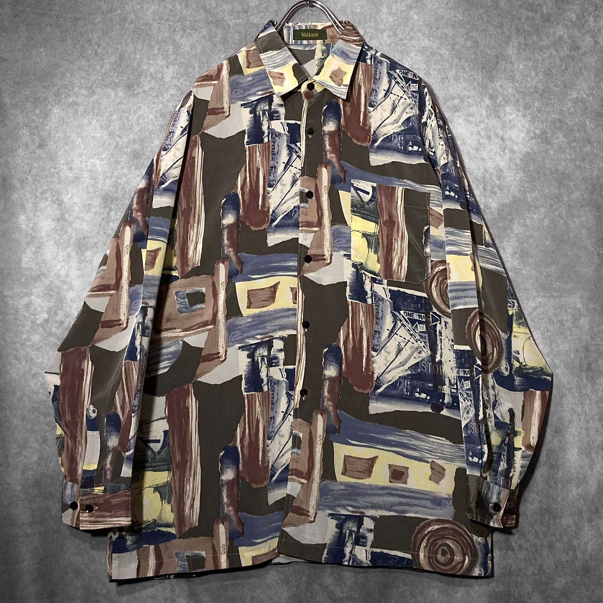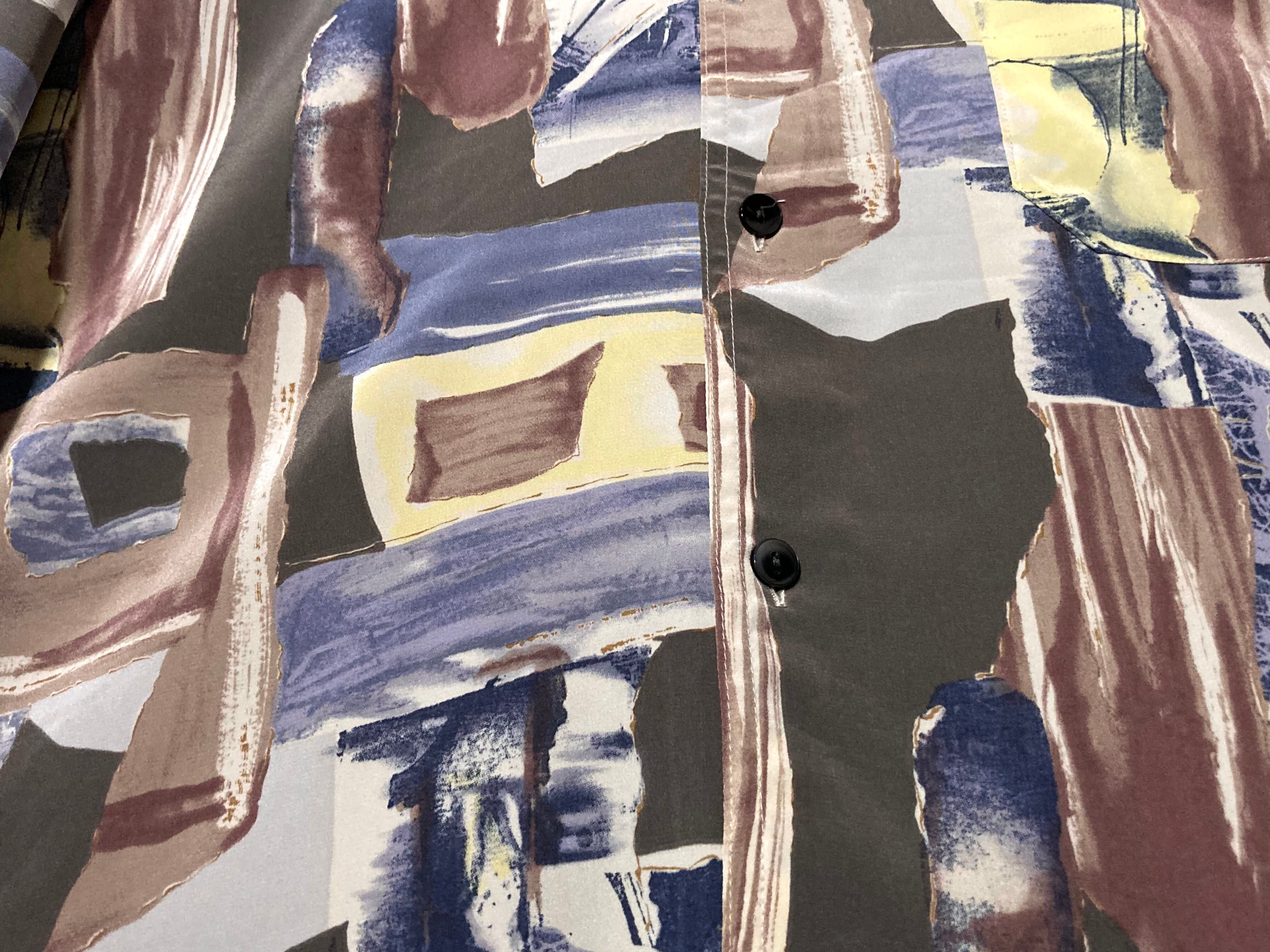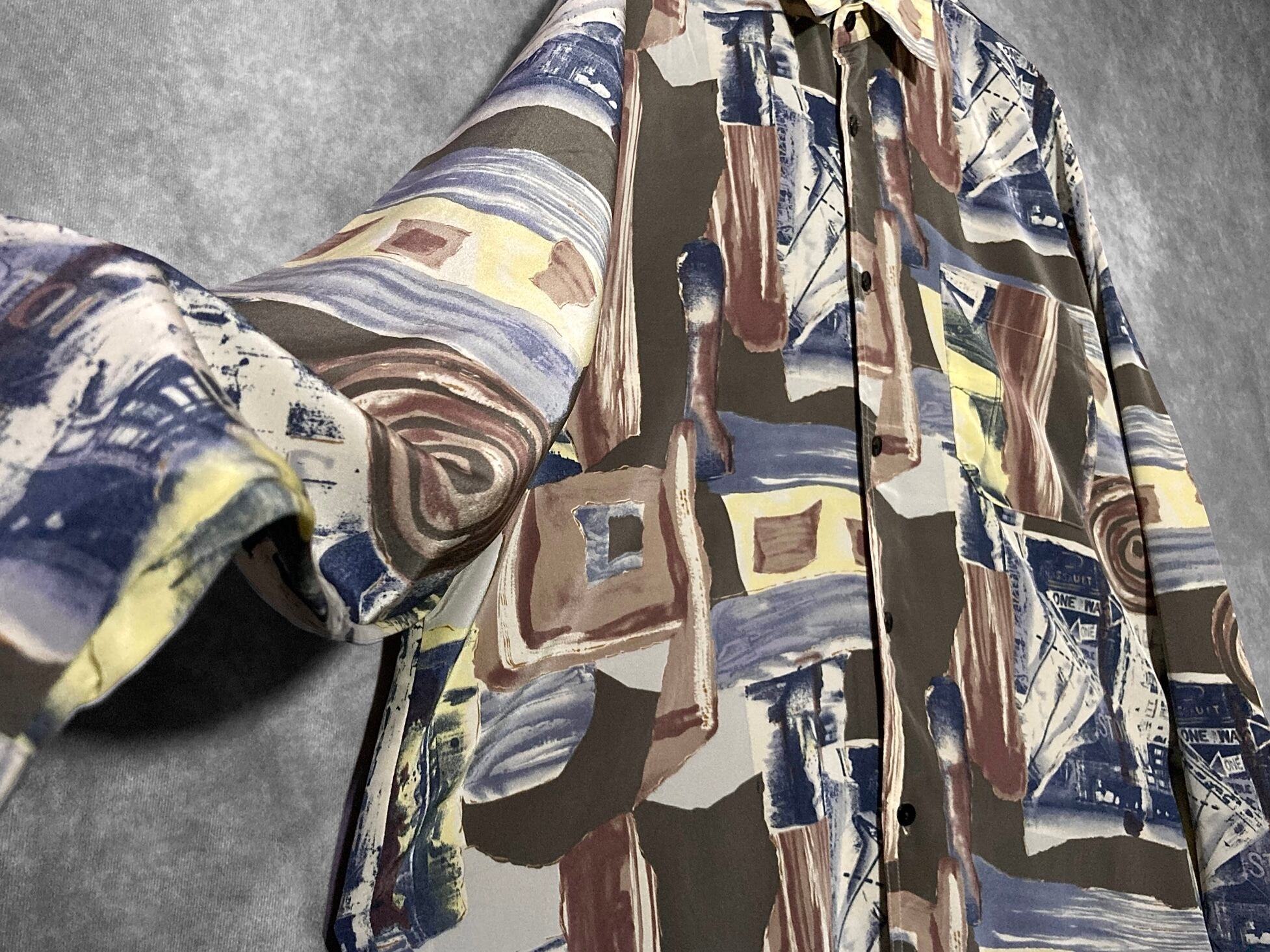 大胆に描かれたストリートの街並みのグラフィックやアーティスティックな擦れたペイントデザインが雰囲気ムンムンな総柄シャツ。