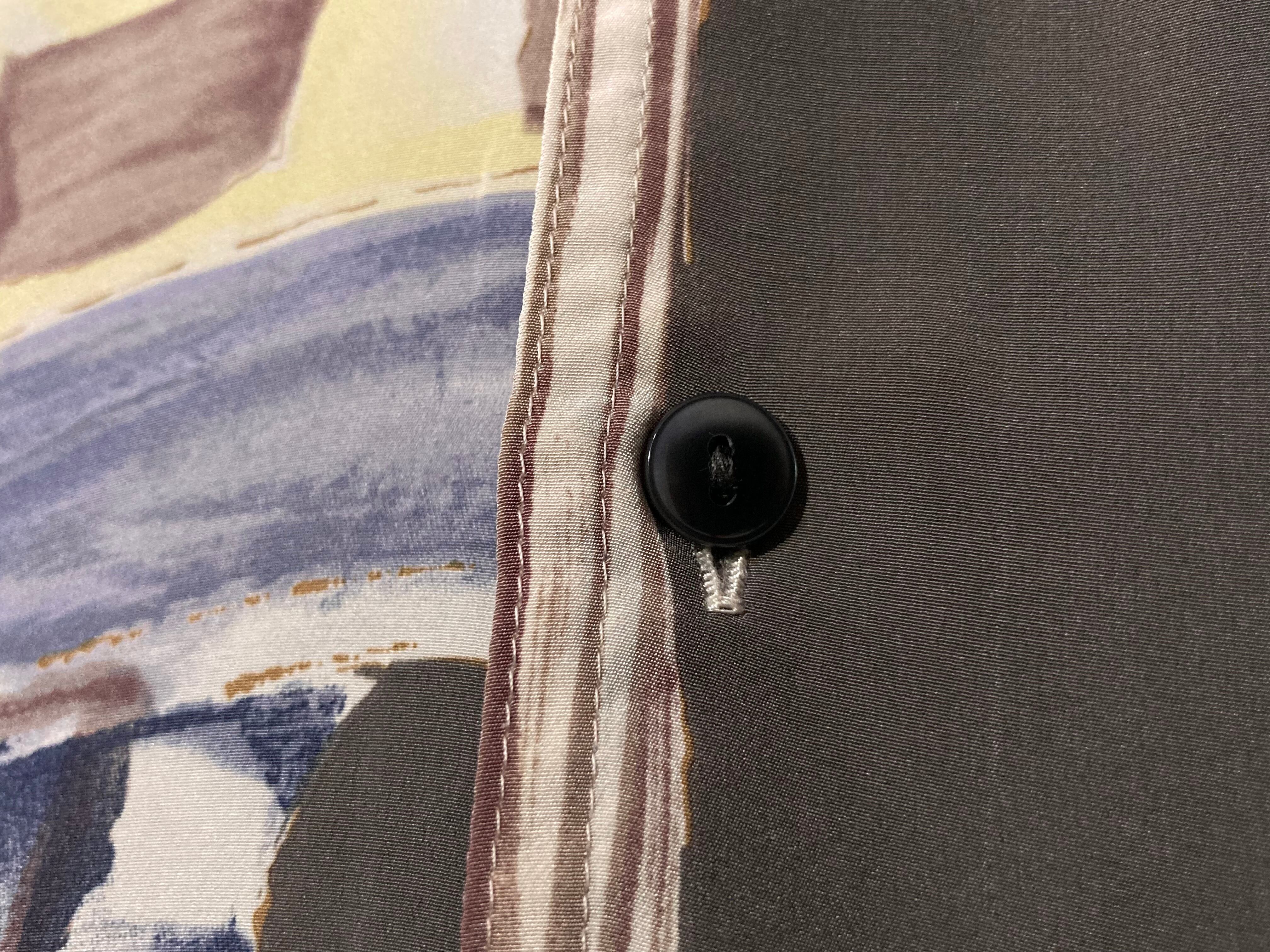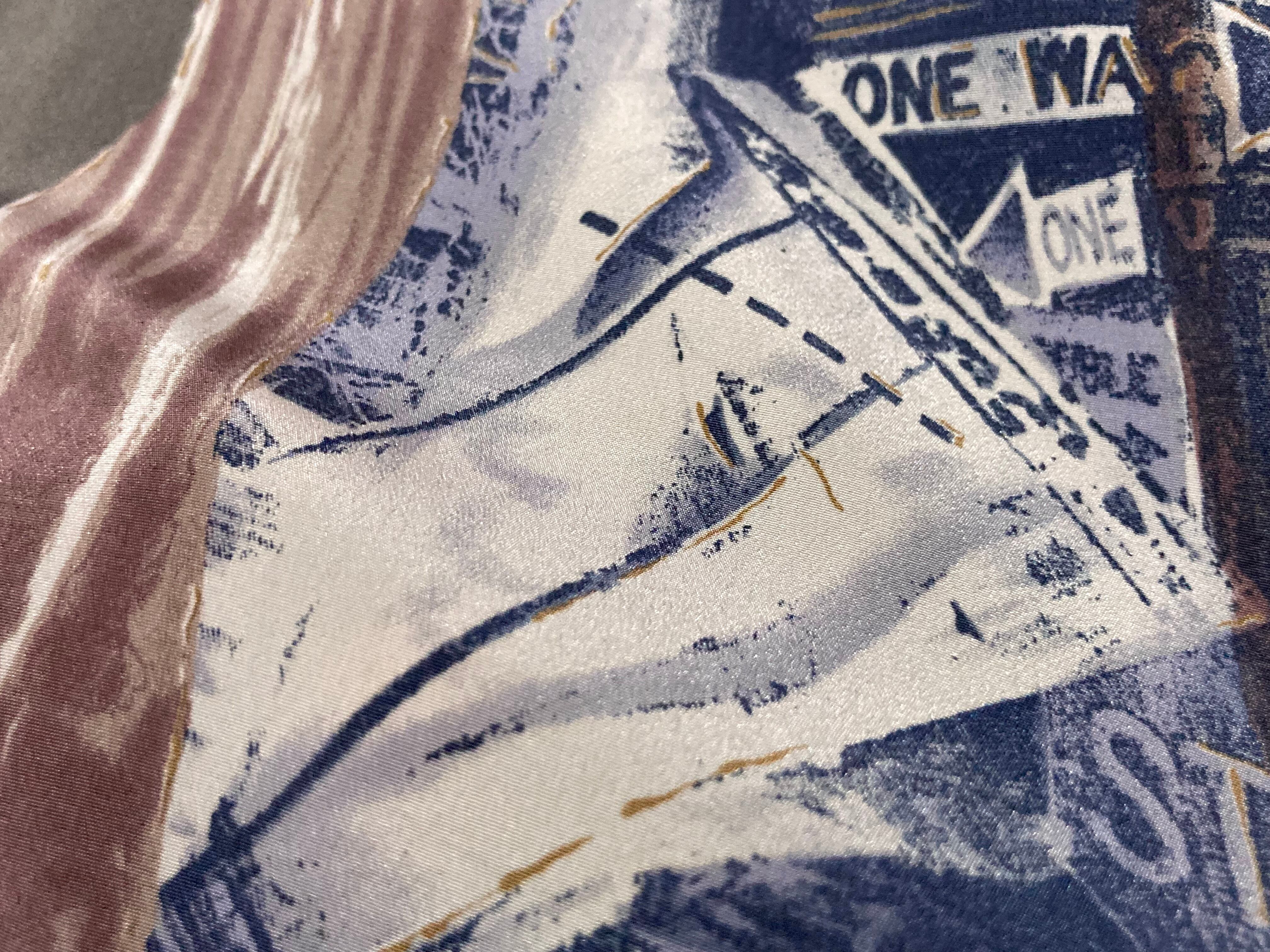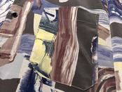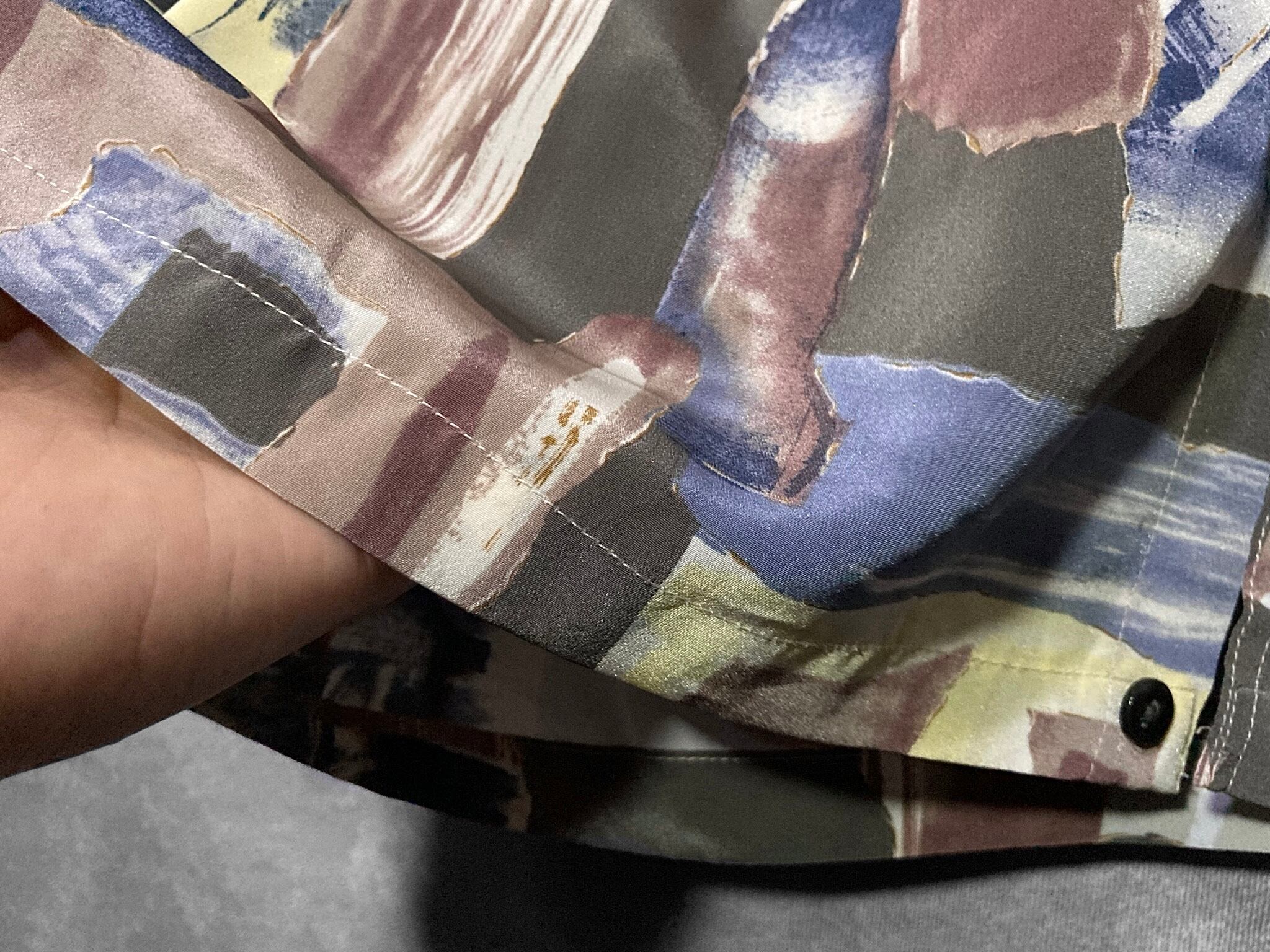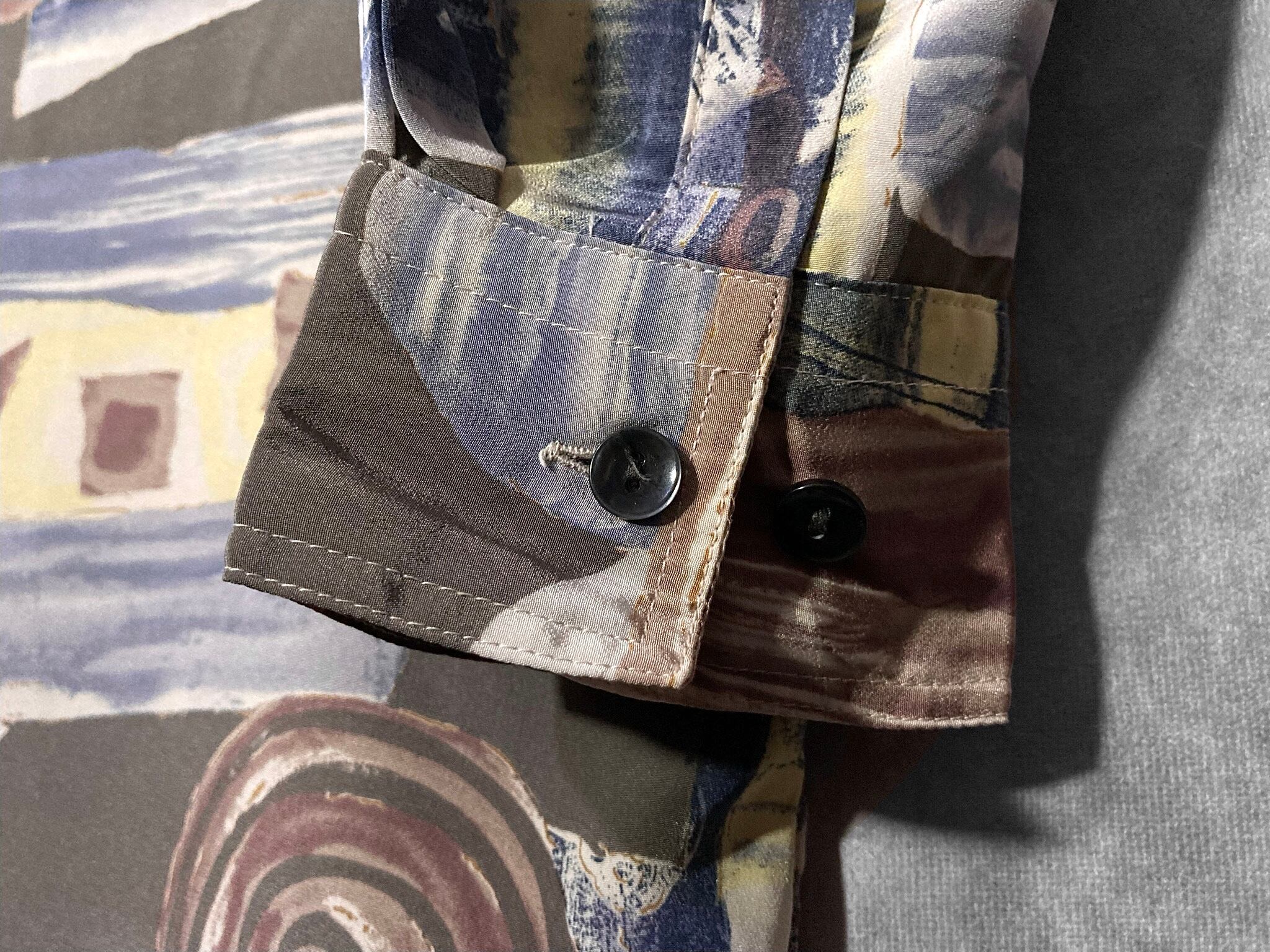 大胆に描かれたストリートの街並みのグラフィックやアーティスティックな擦れたペイントデザインが雰囲気ムンムンな総柄シャツ。