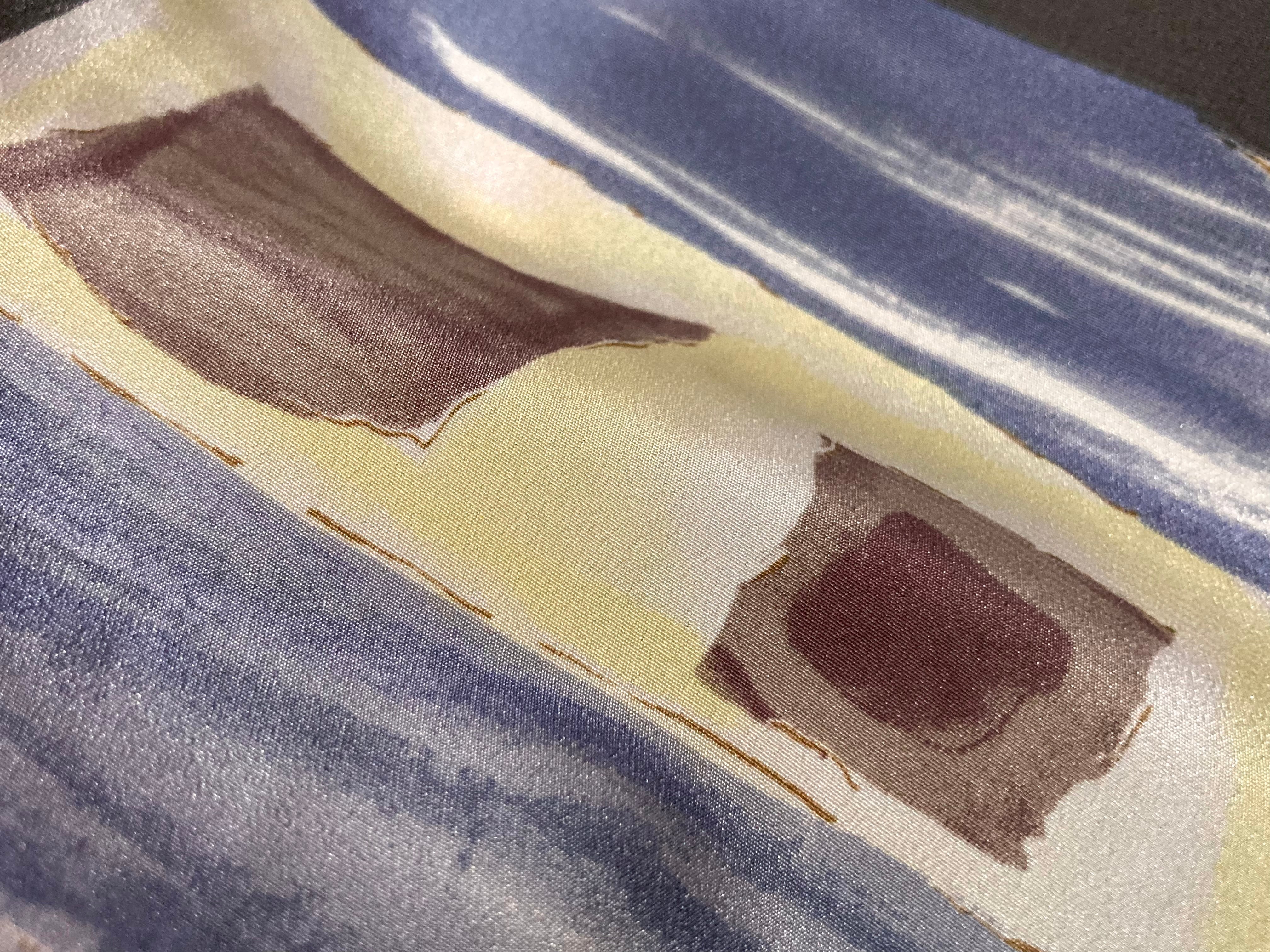 ブラウンやネイビー、レモンイエローの色味の配色で調和され、部屋に飾りたくなる1枚のアートのような存在感のあるアイテム。
