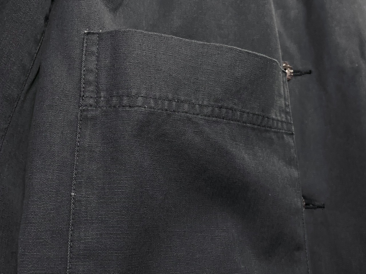 ジーンズのデニム素材ではなくステンカラーコートと同じ質感ですので着こむほどに体に馴染み持ち主の体型に合わせてクタクタ感が出てきます。