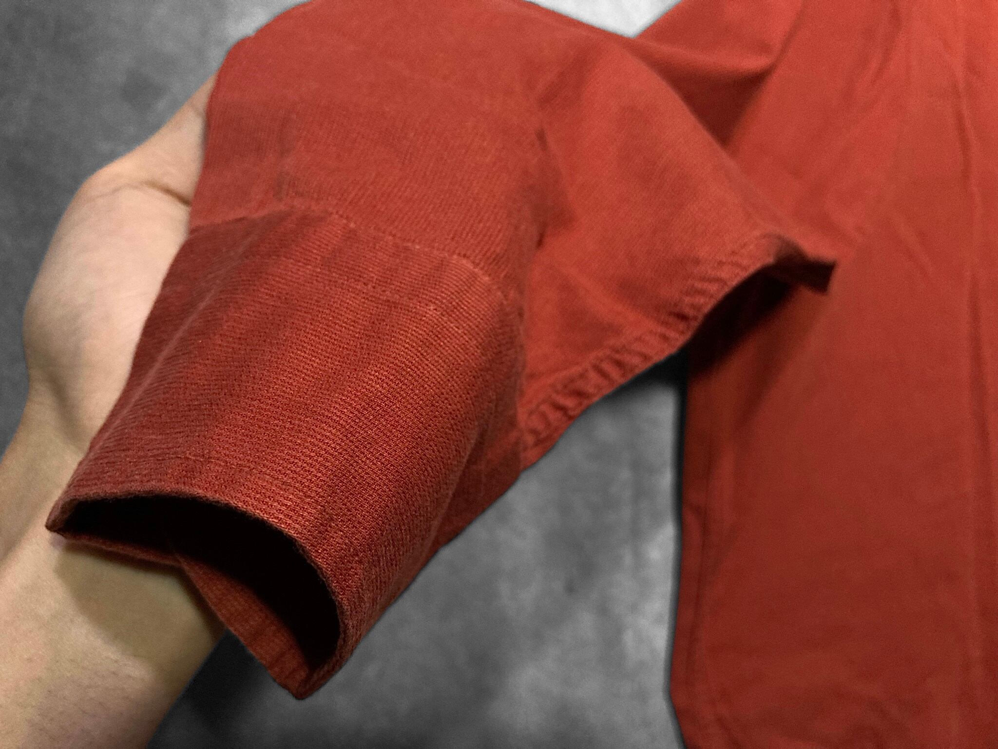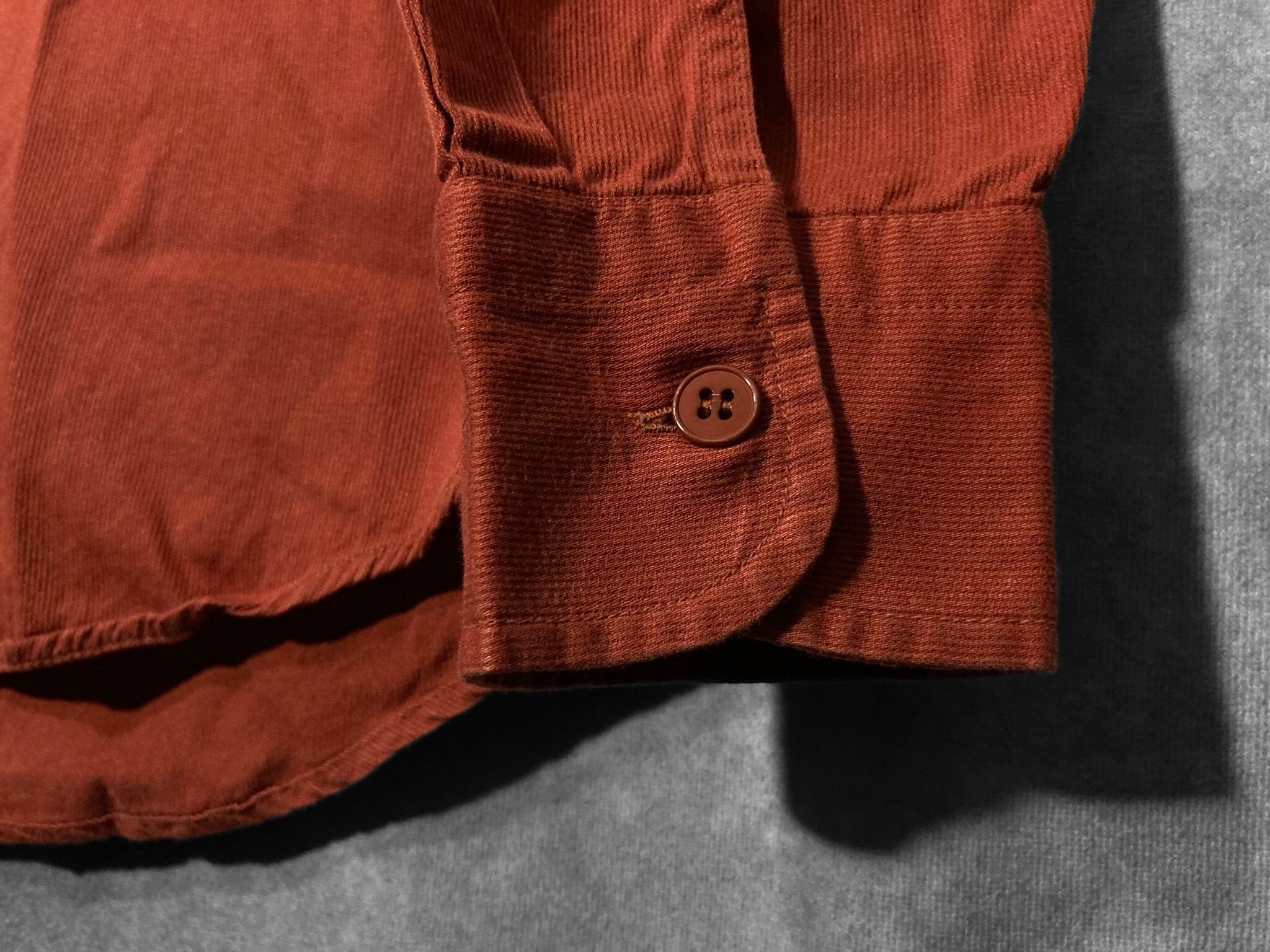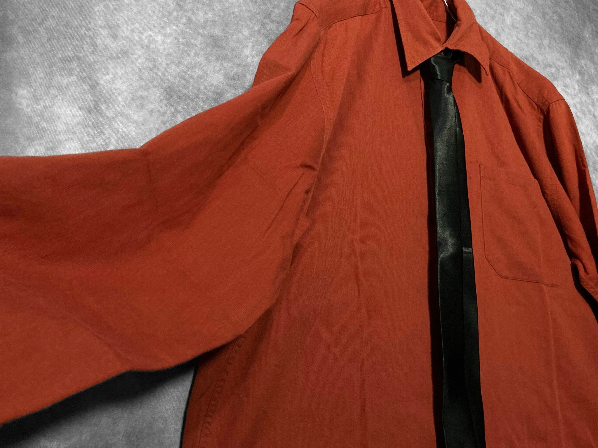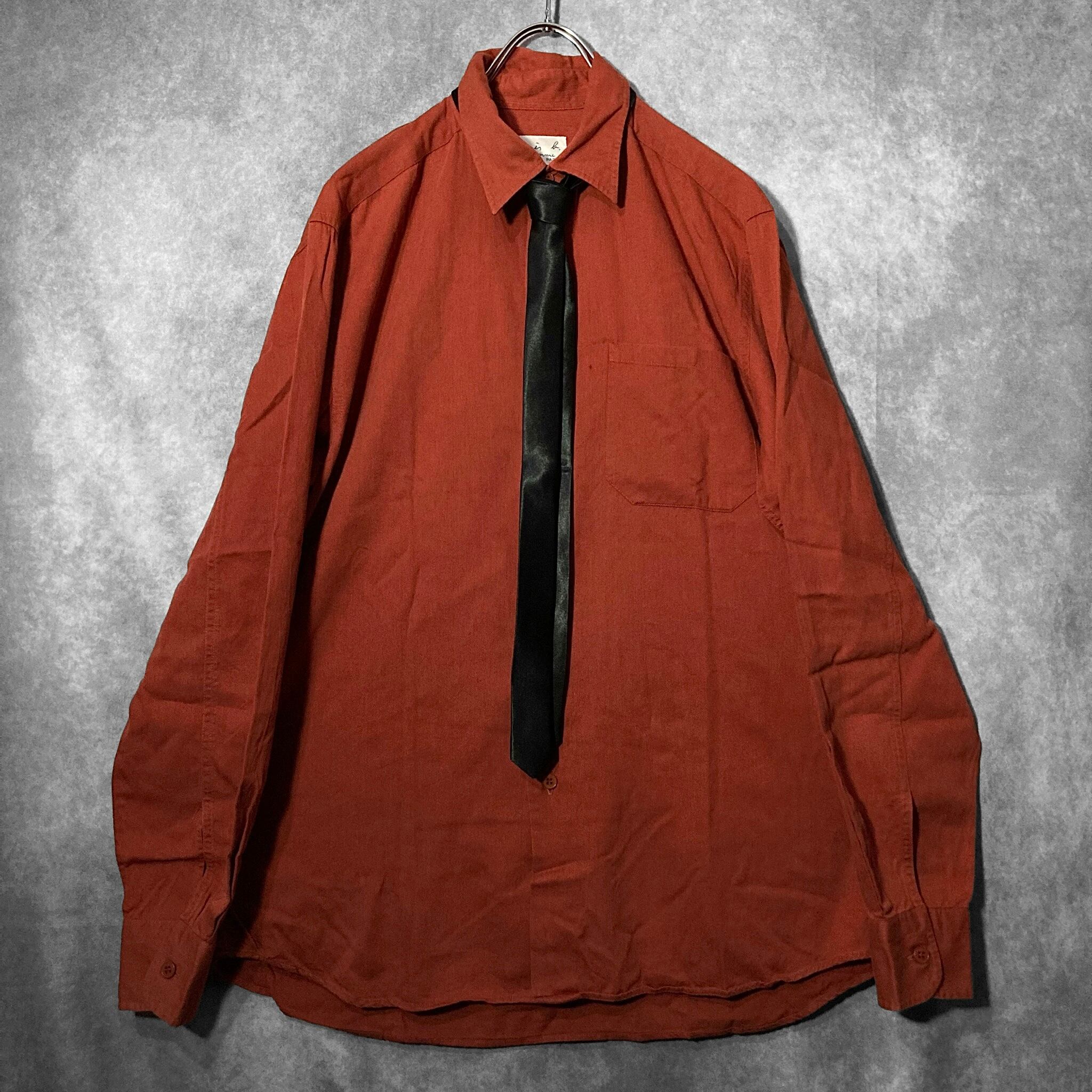 【agnes b】Corduroy fabric Orange color design L/S shirt and Glossy Black color Necktie coordinate set