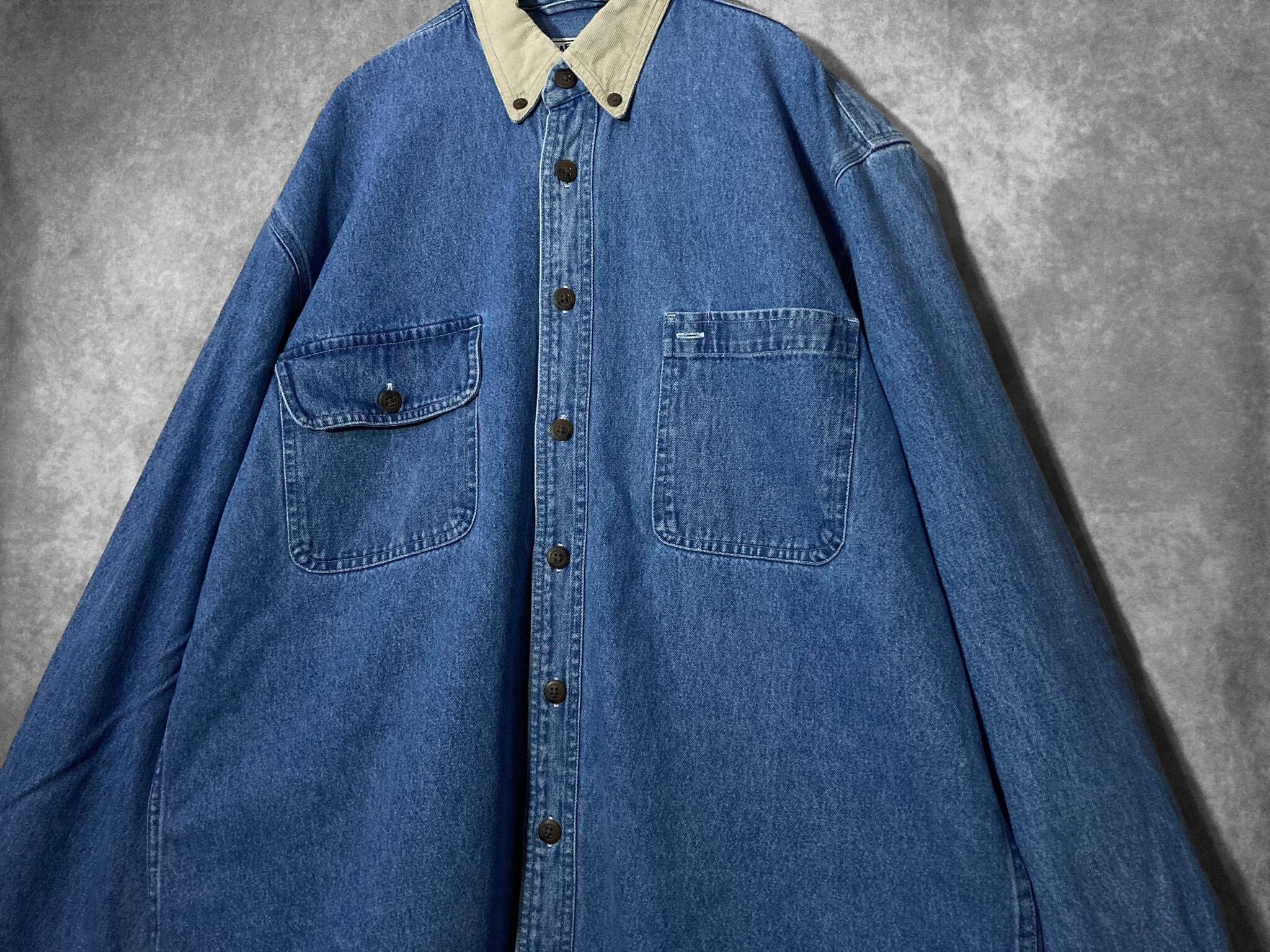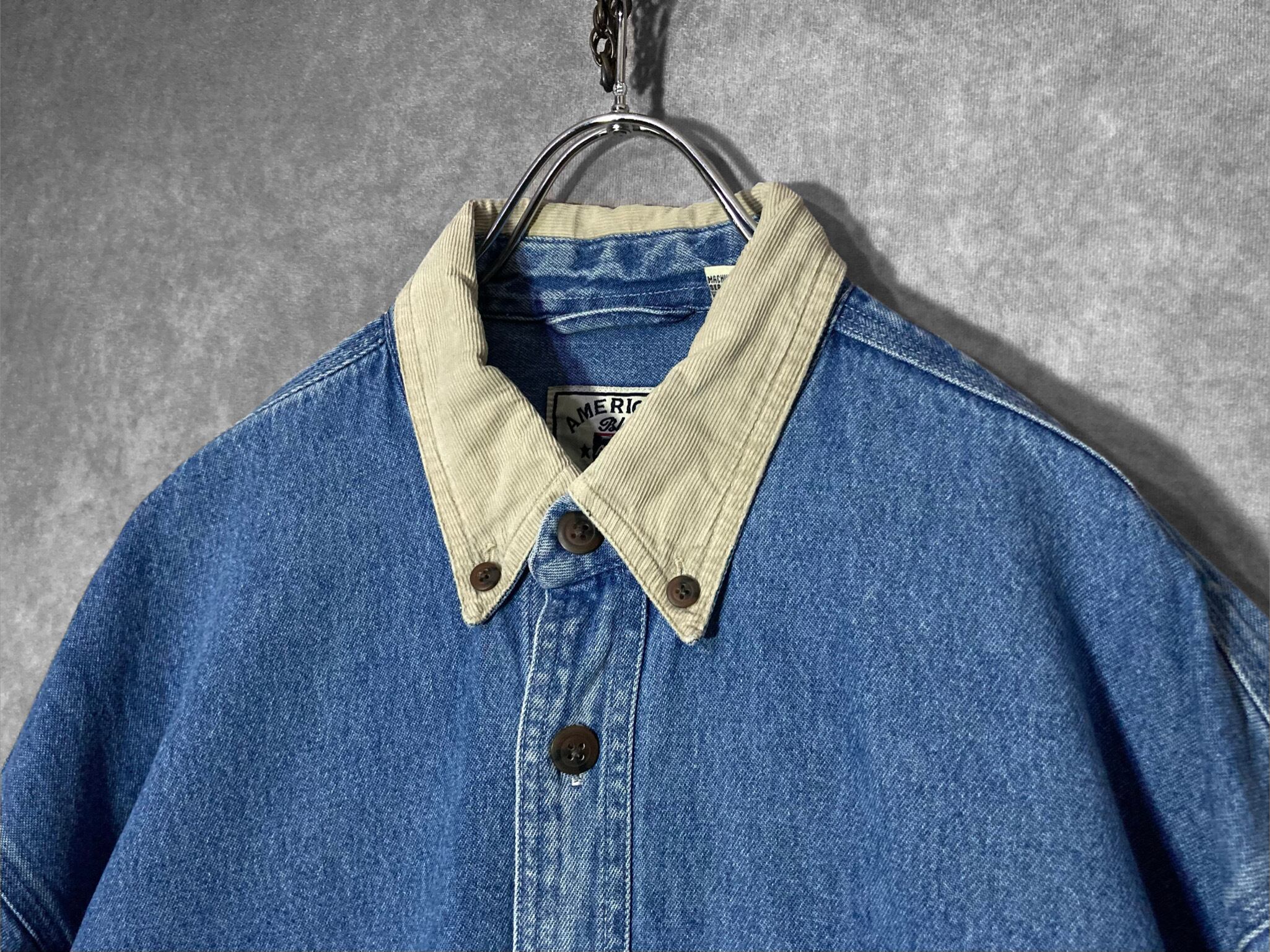 XXL Different material Denim and Corduroy fabric Switching design Shirt jacket