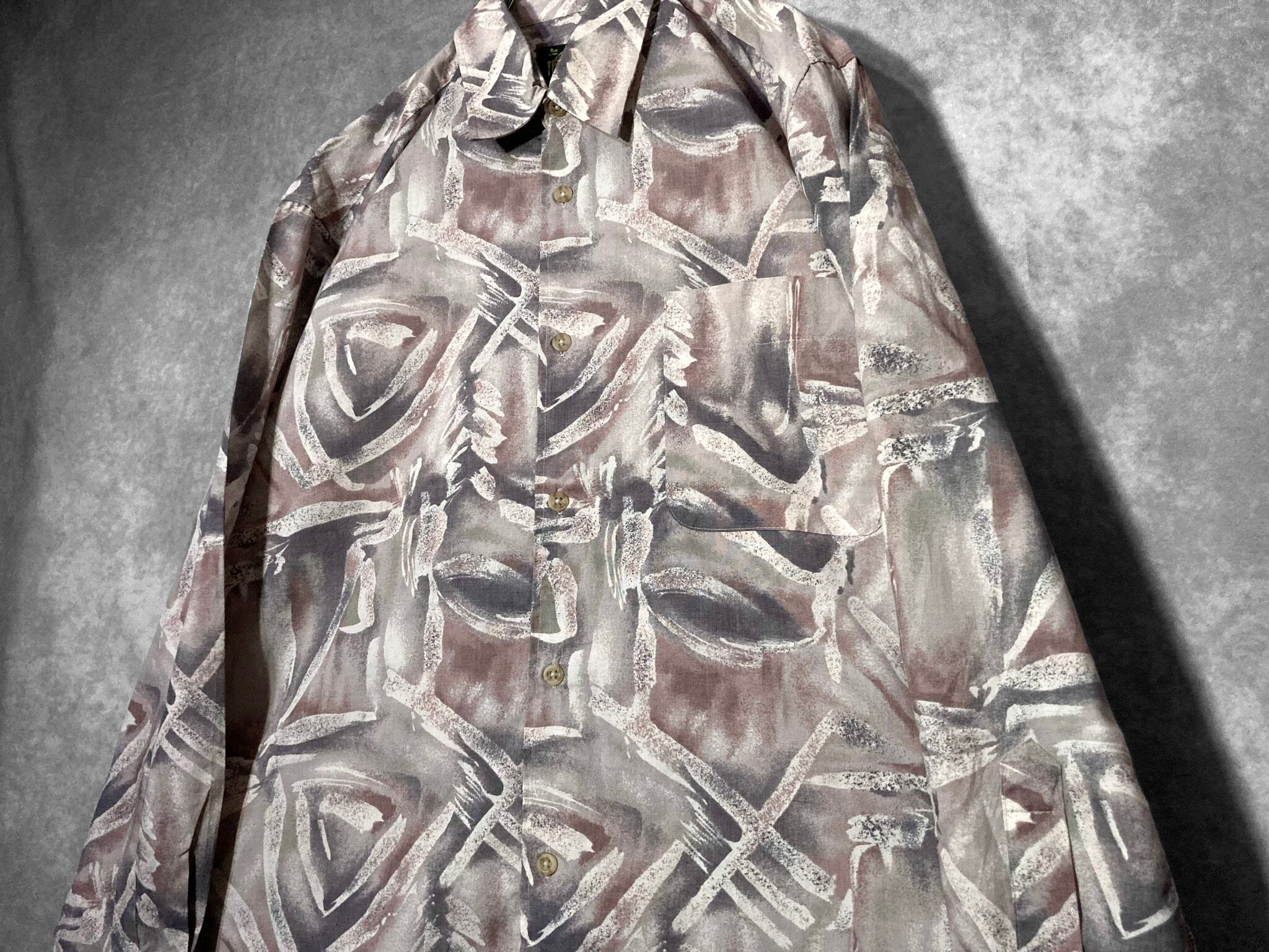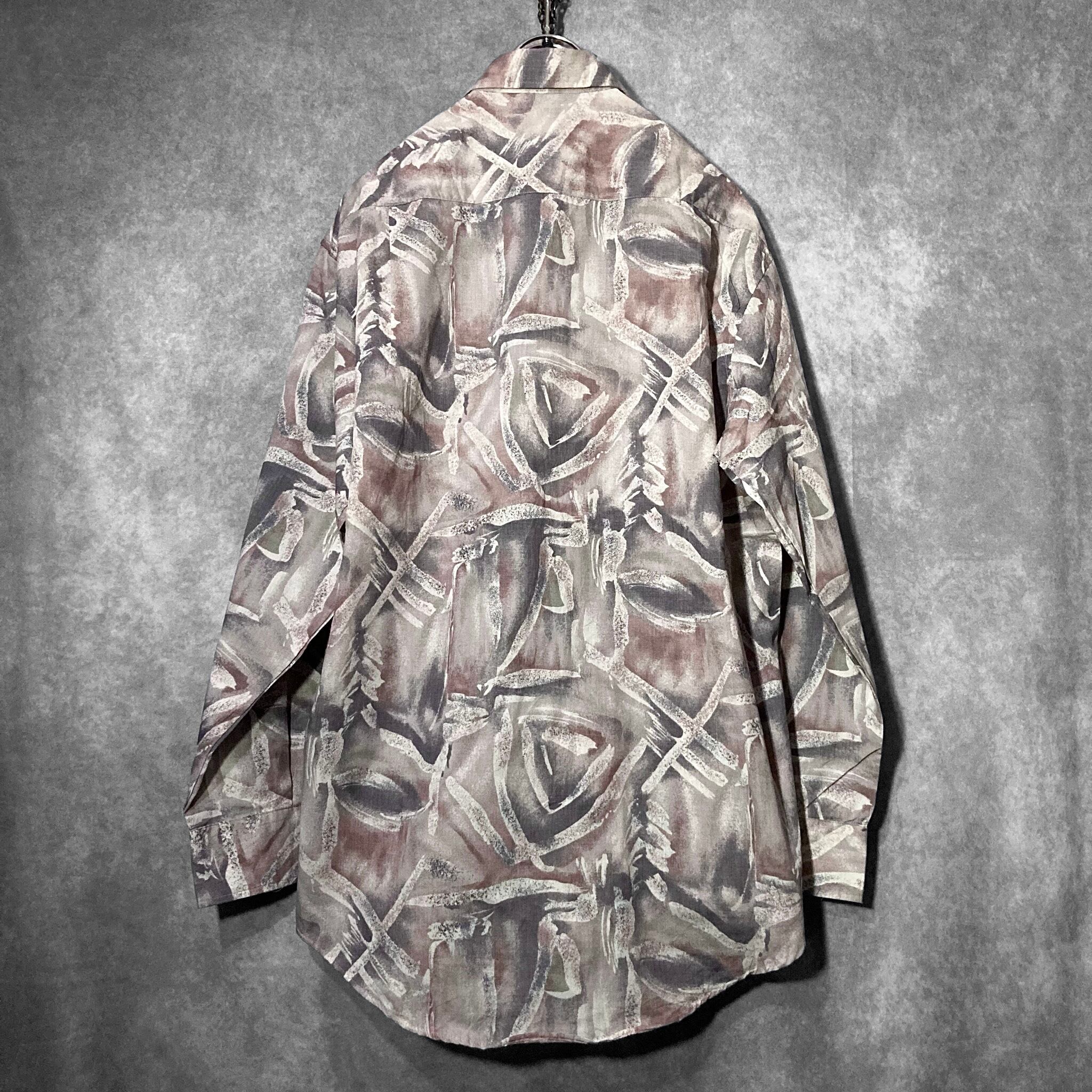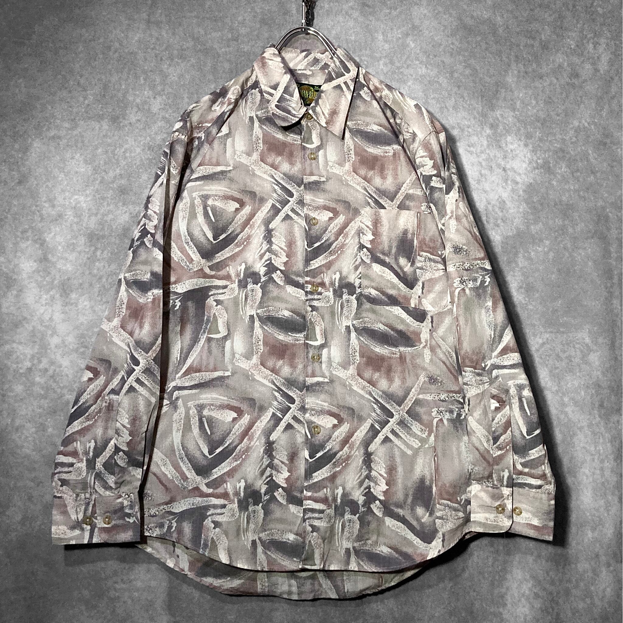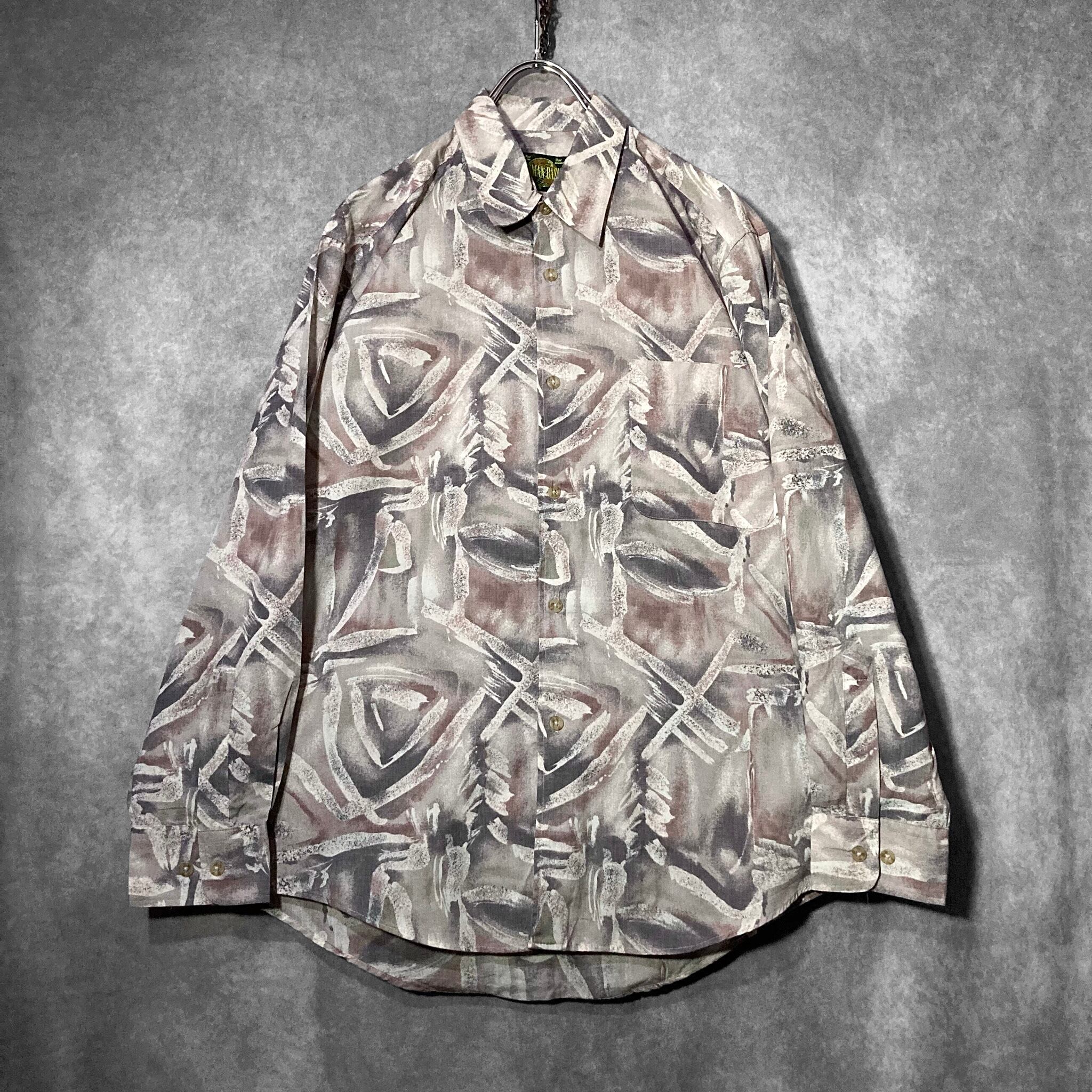 淡く滲む Hand drawn pattern all over Modern art design L/S shirt
