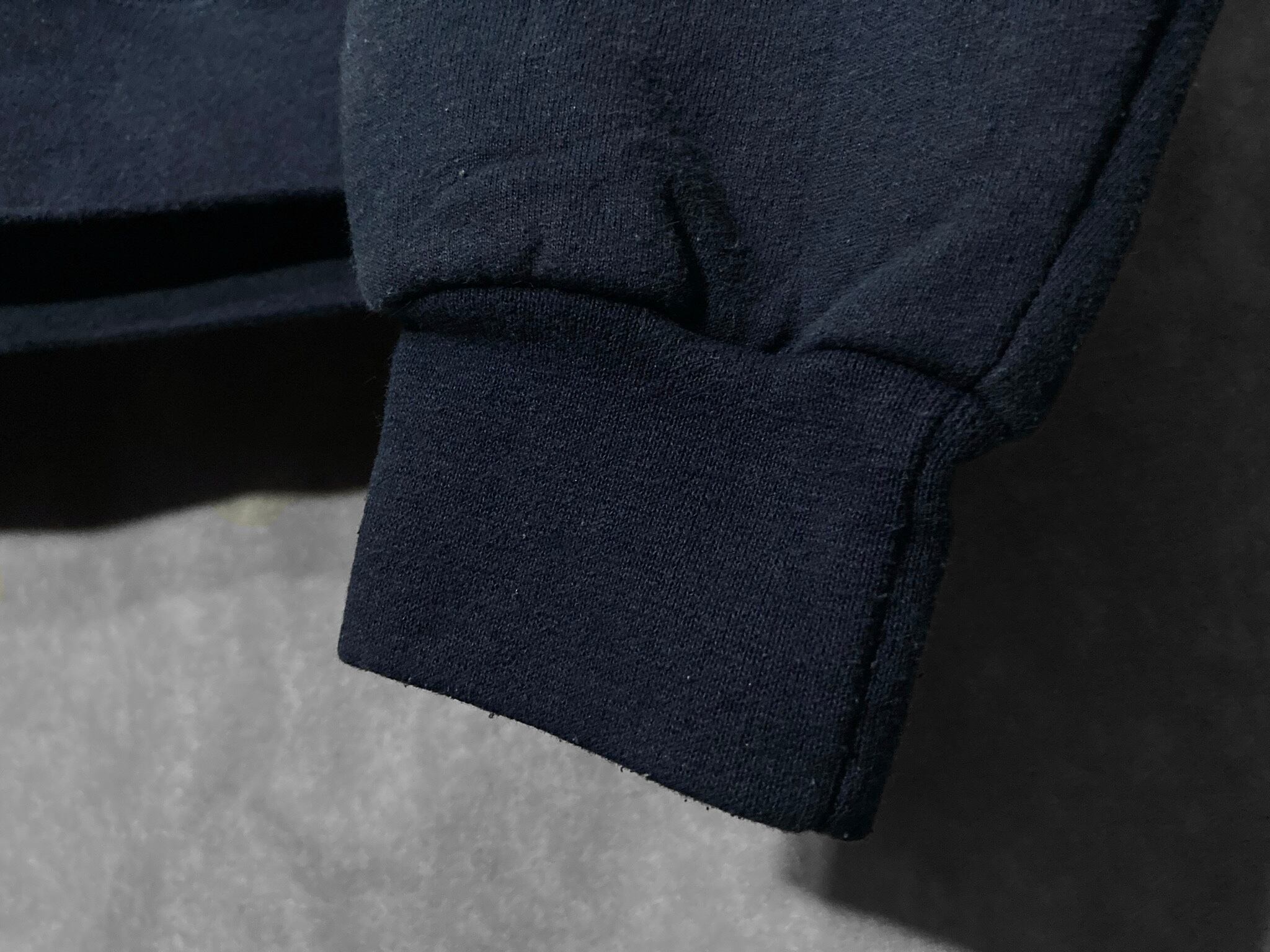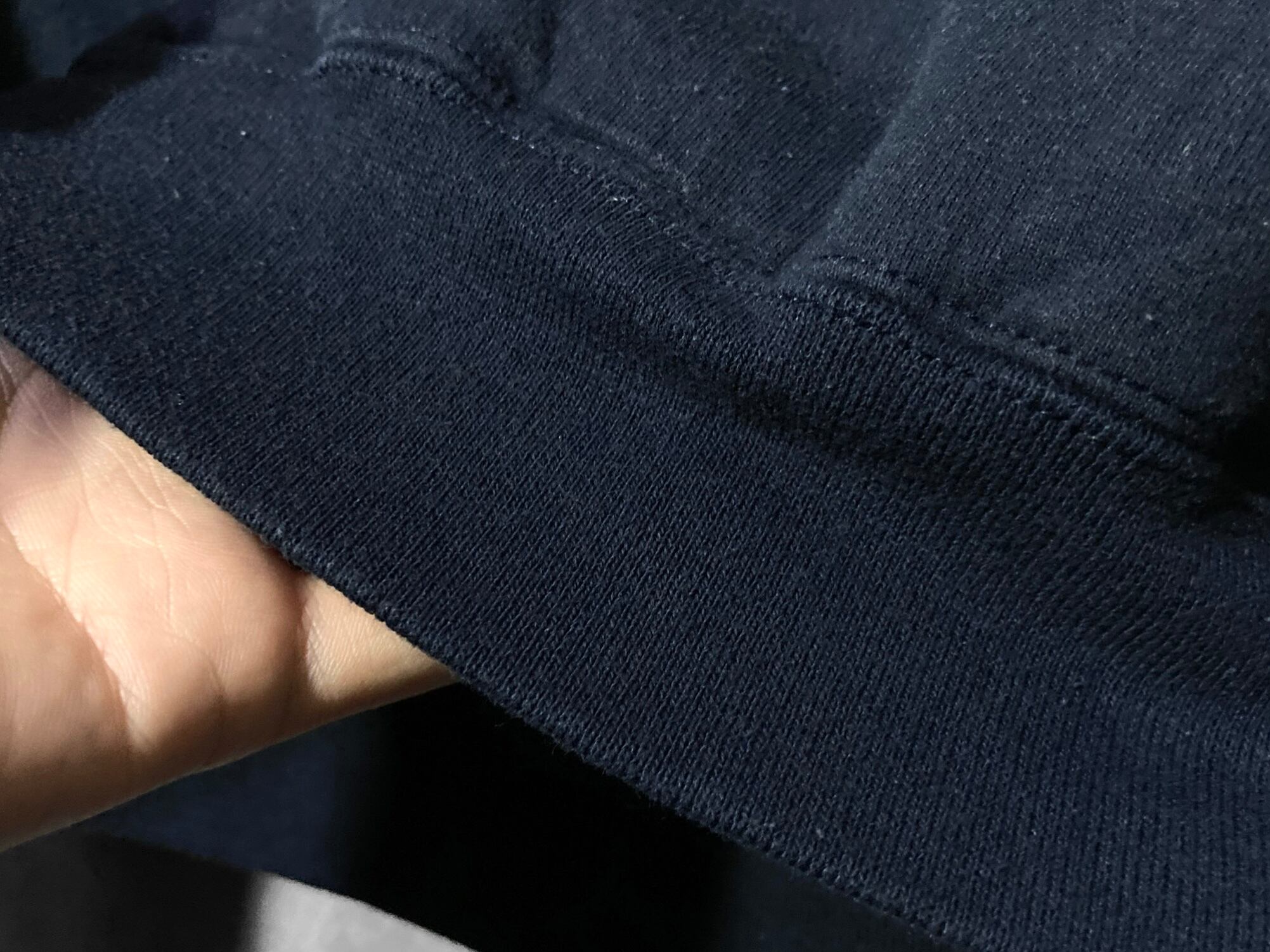 スウェットの定番、リバースウィーブと全く同じ柔らかく肉厚なUSコットン(綿)素材100%の生地を採用しており、着こむほどに着る人の体になじんでいき長く着ていただけます。