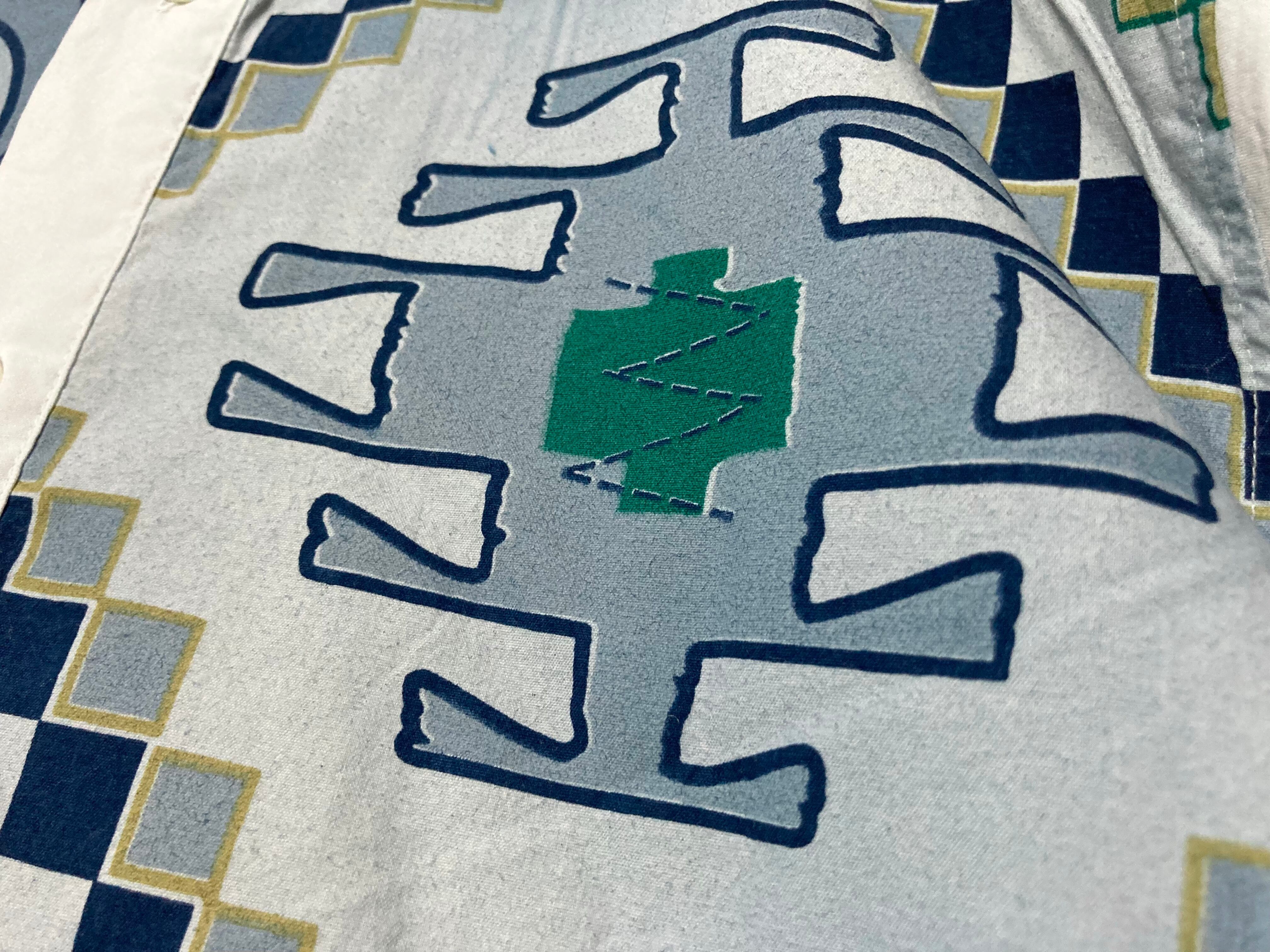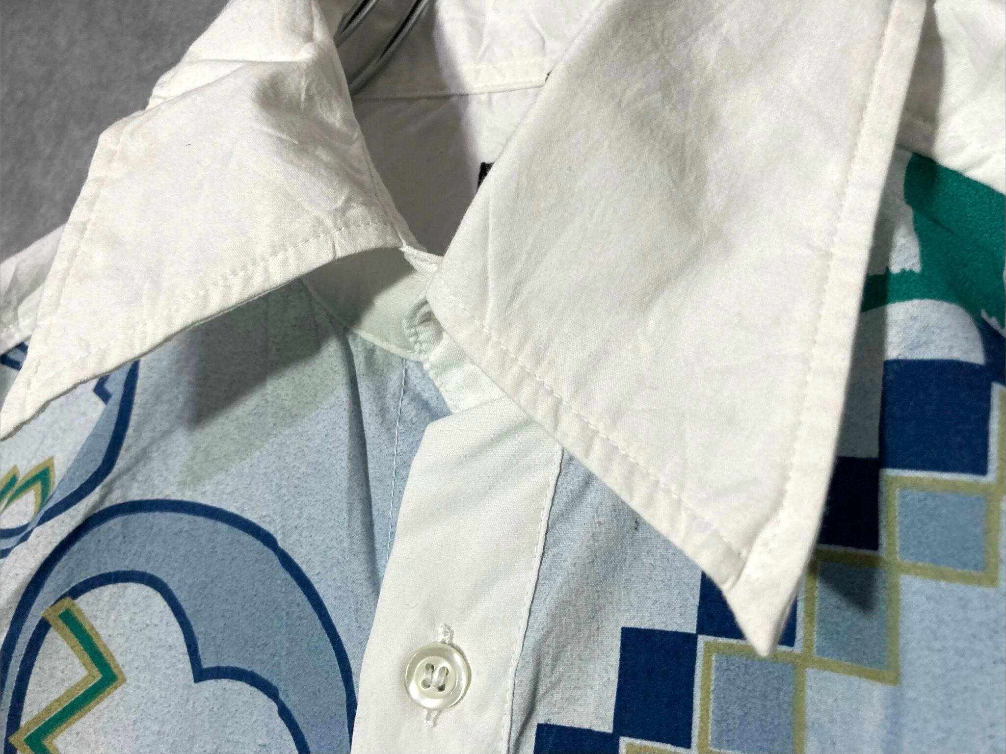 摩訶不思議なパターン柄の切り替えがかわいいデザインシャツ。