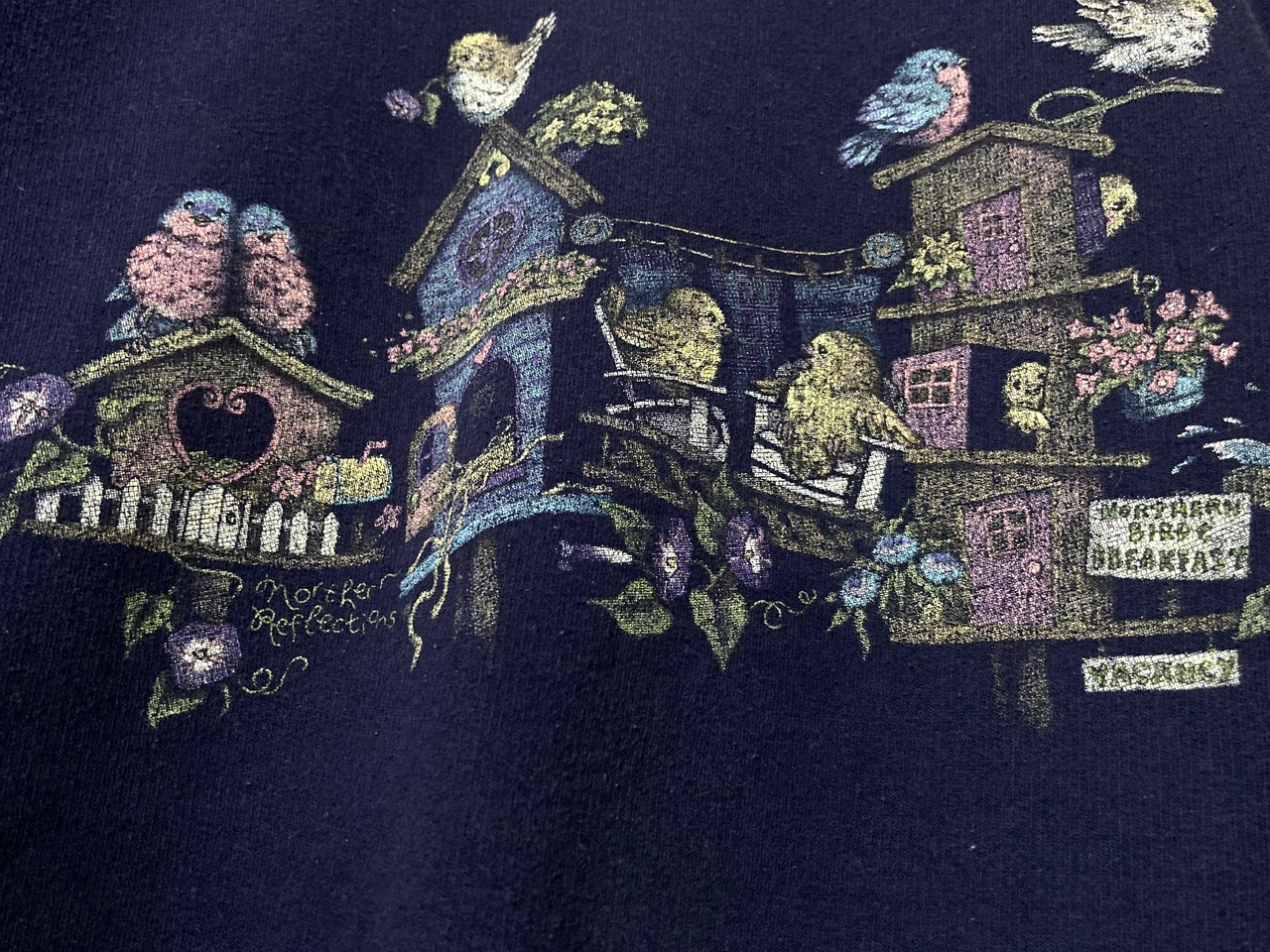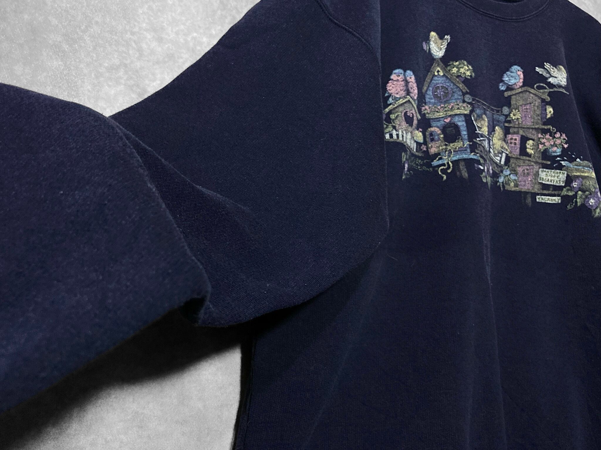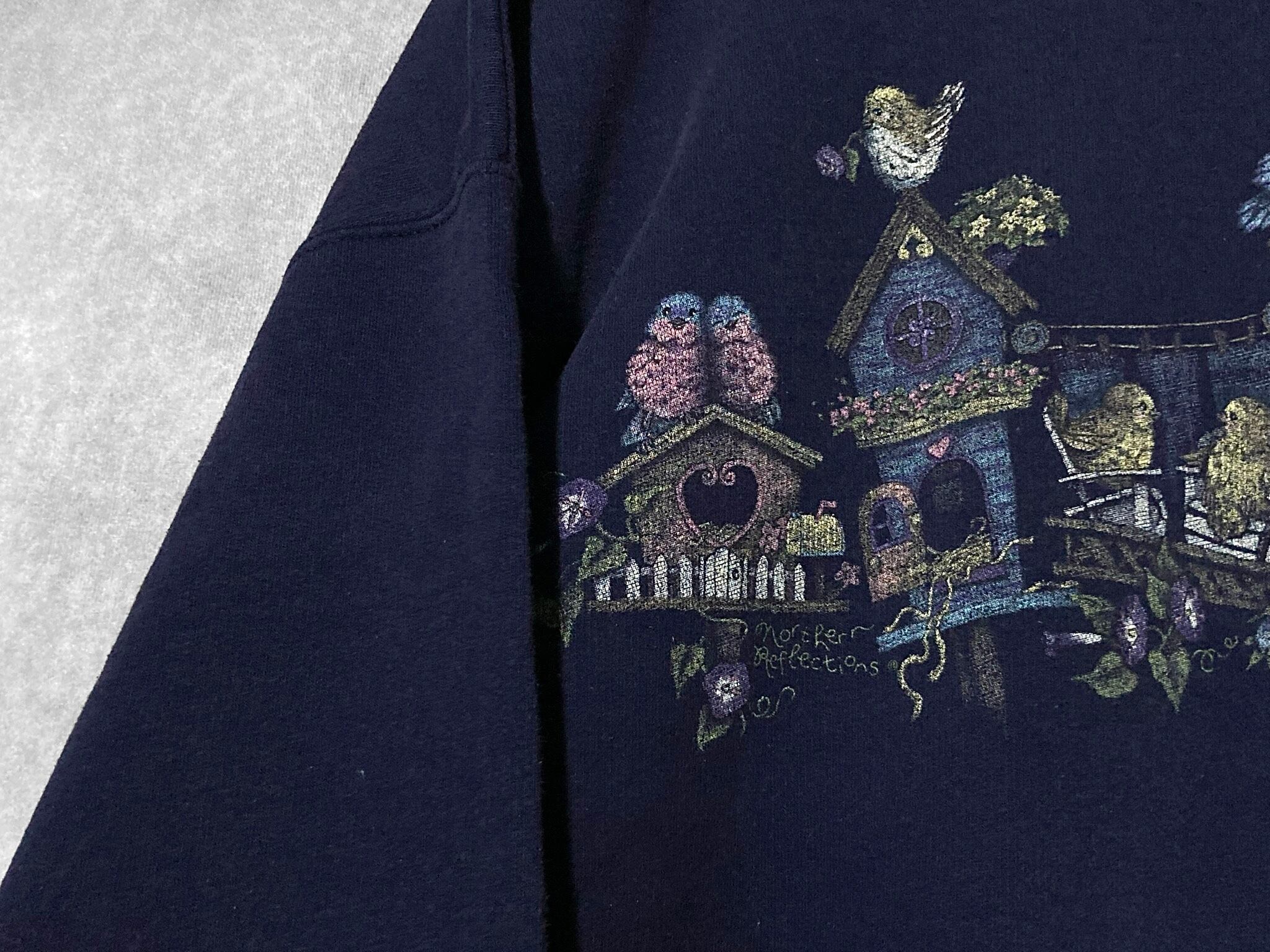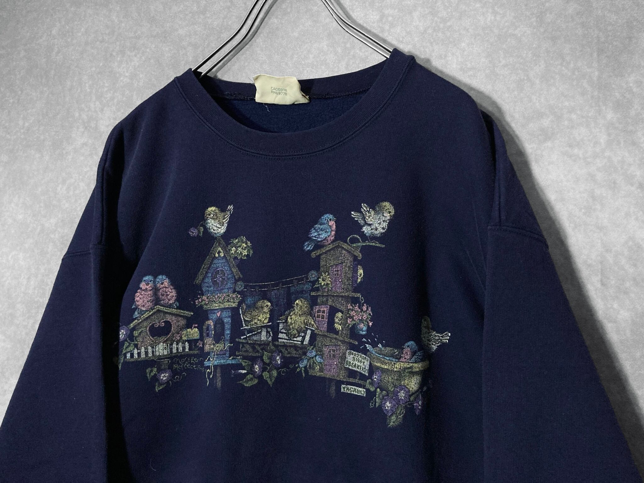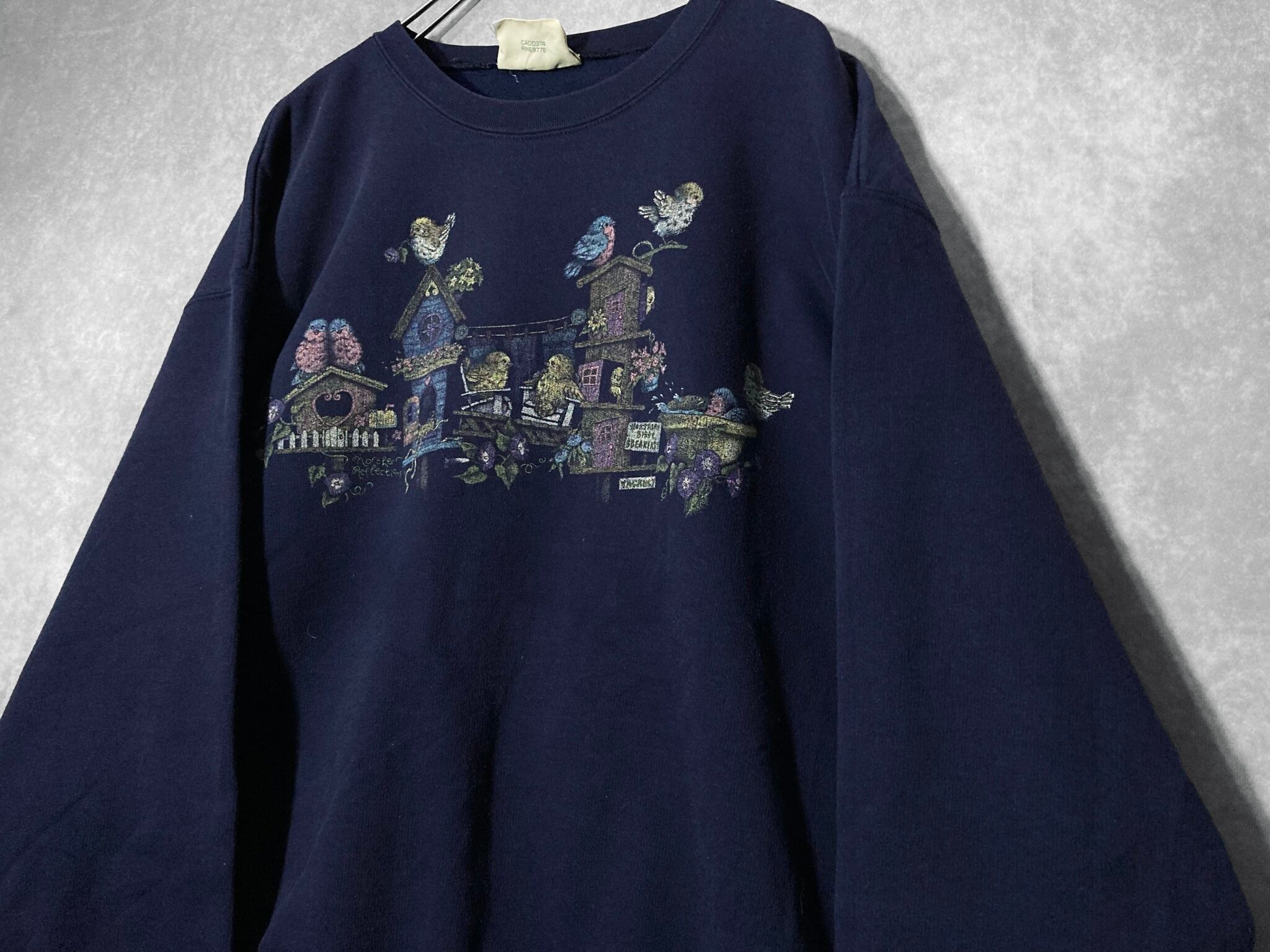 戯れる小鳥たちのプリントデザインがかわいいスウェットシャツの入荷です。