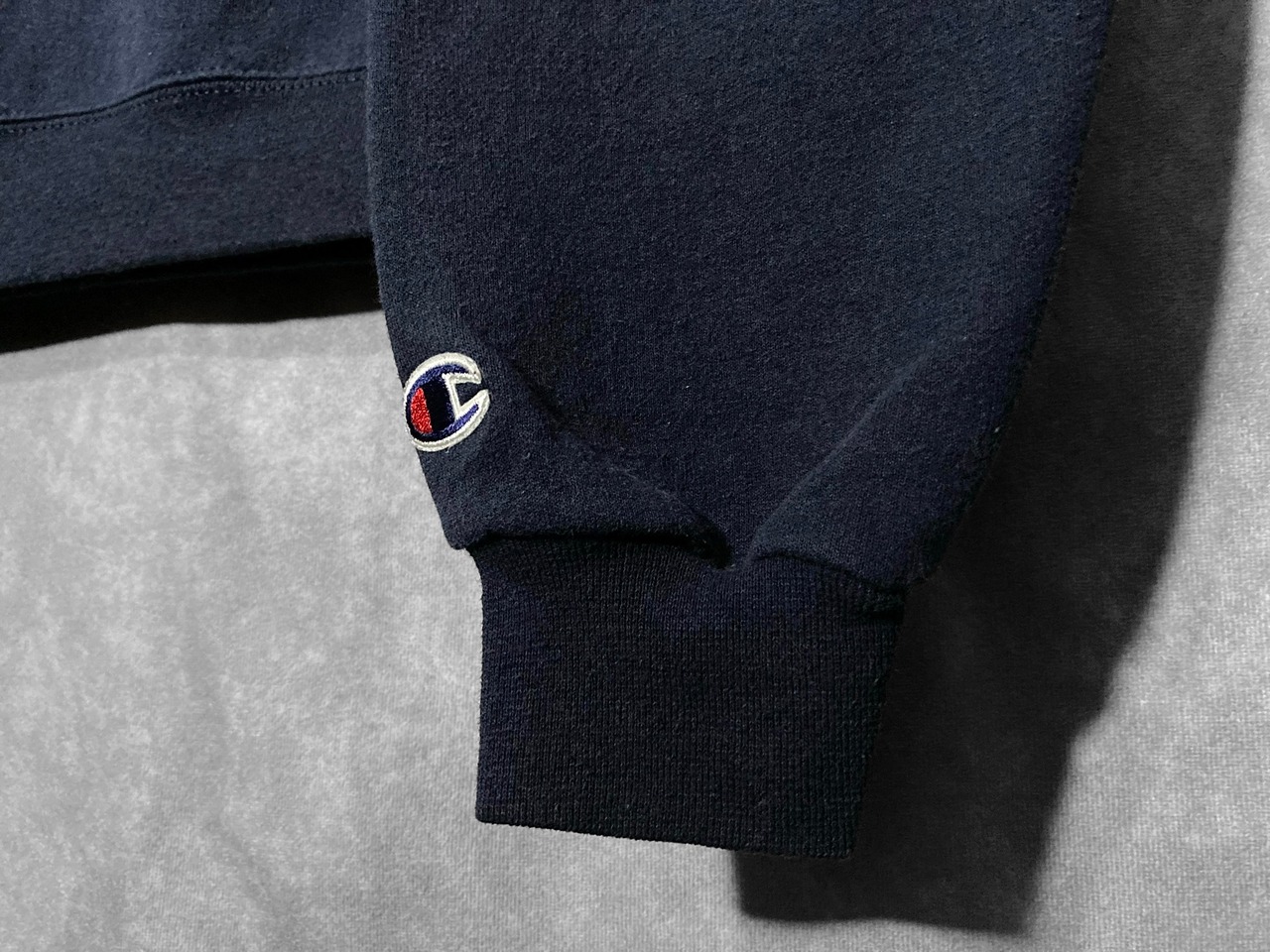 袖口にはChampionのアイコンでもある " C " の刺繍パッチワークが配されており、Championブランド特有のかわいい雰囲気があります。