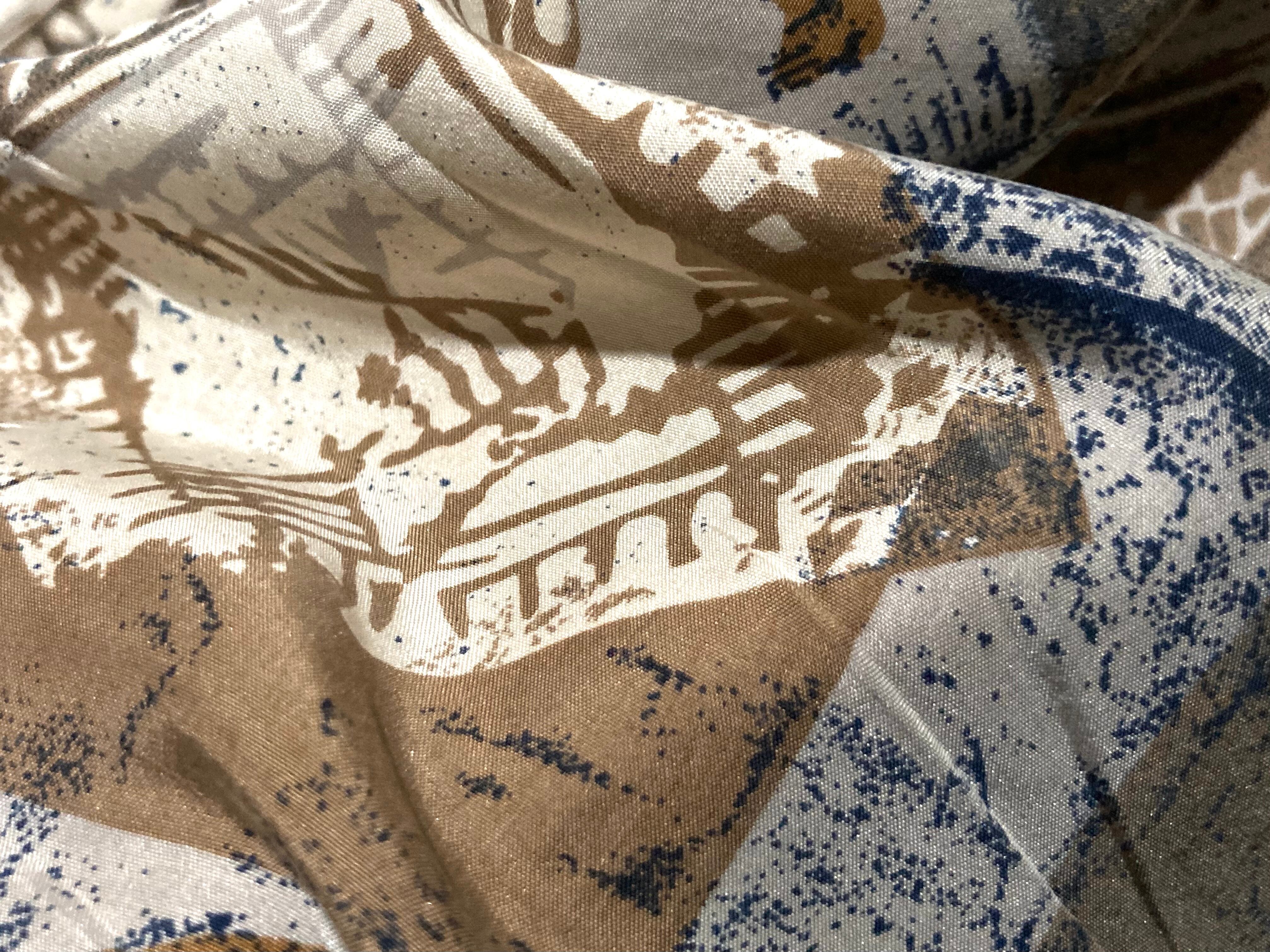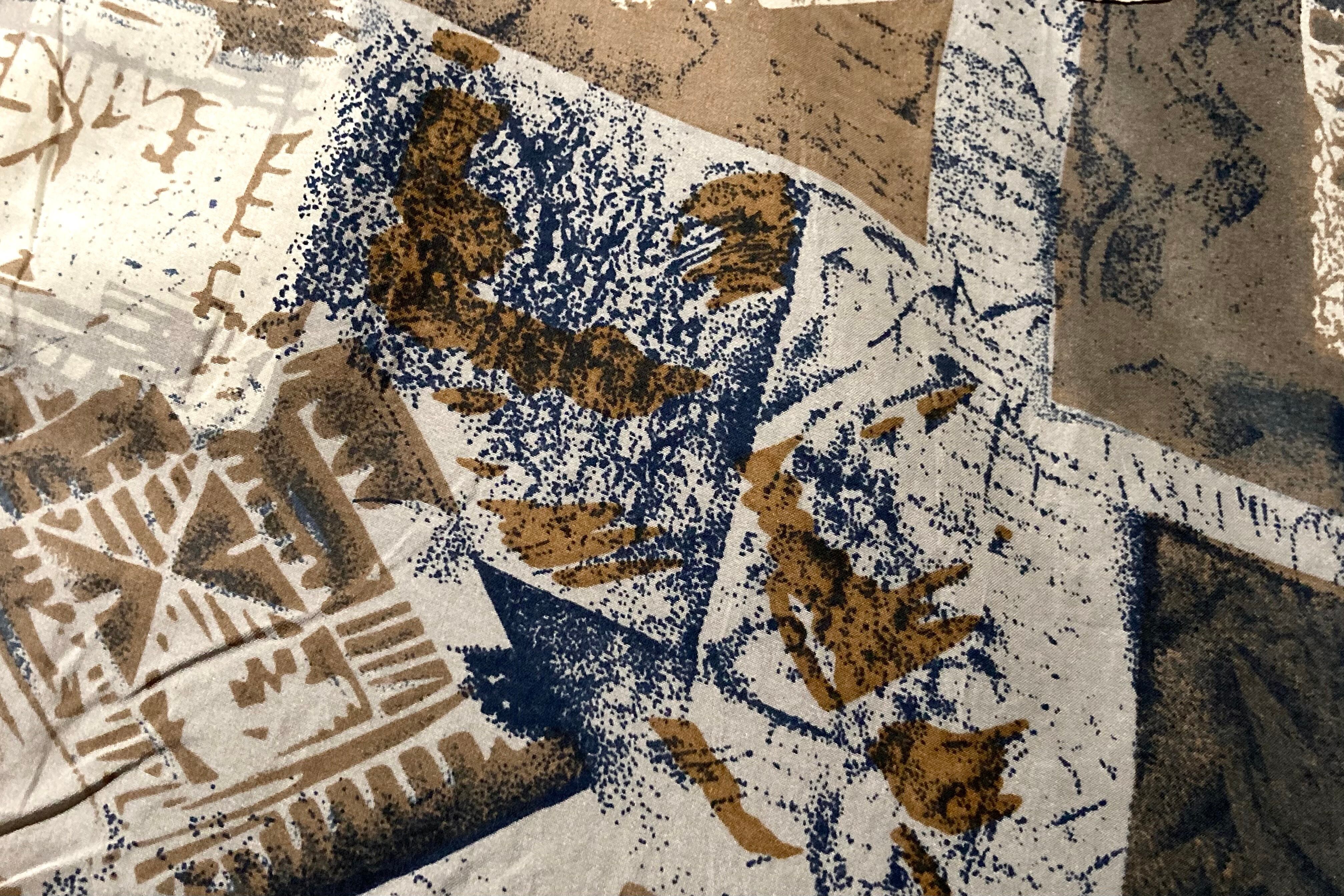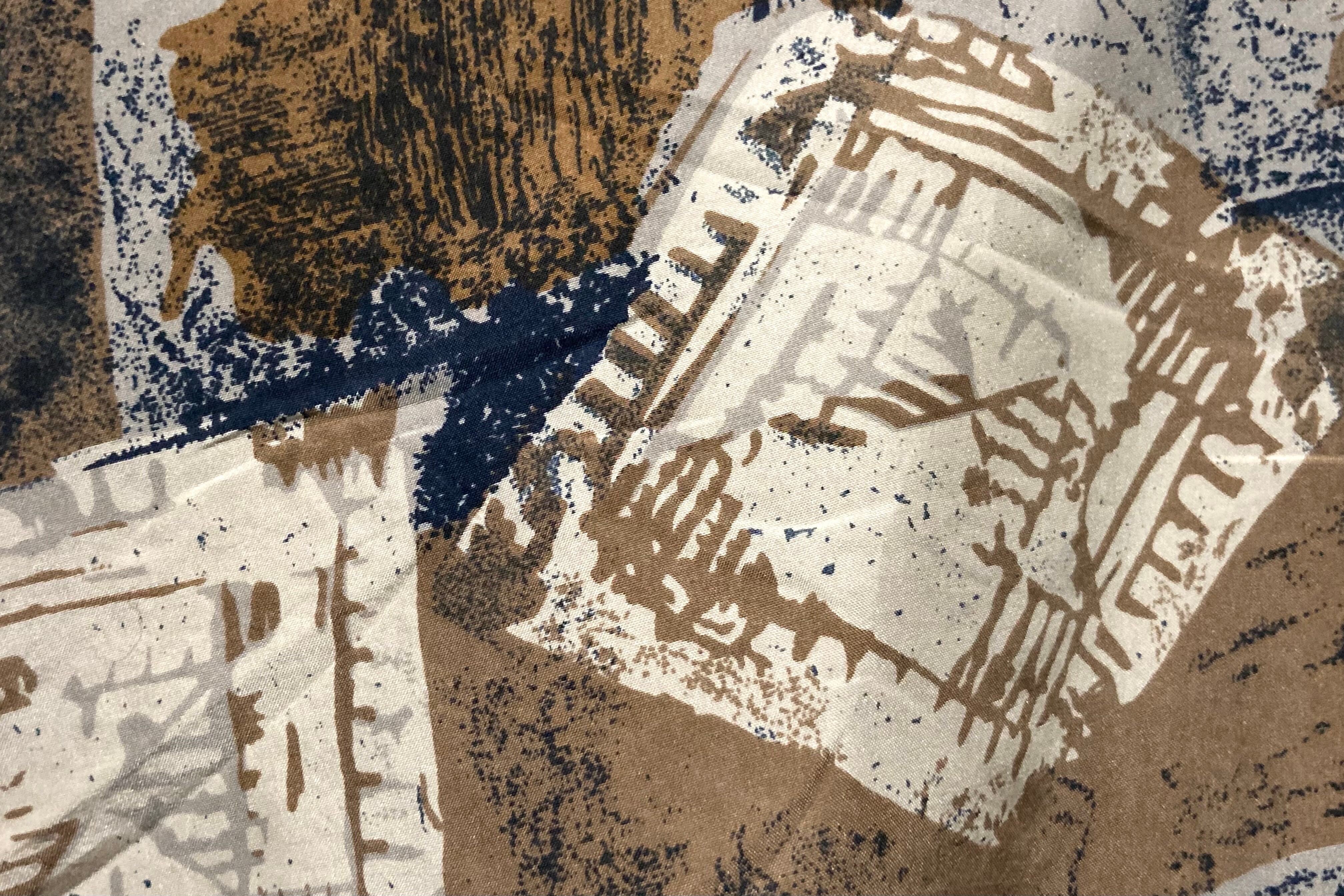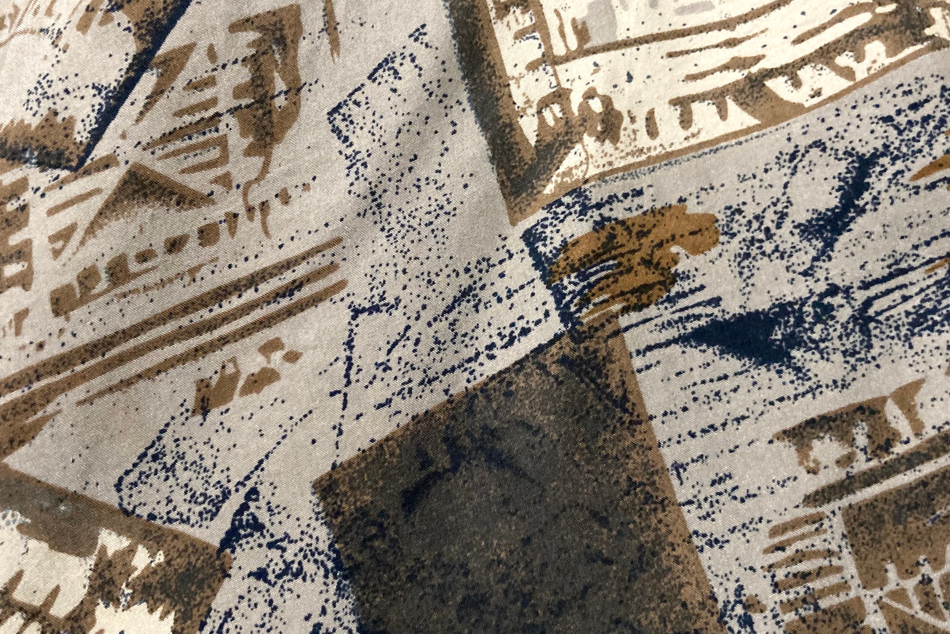 Caffè Latte color Hand drawn patterned all over art design silk S/S shirt