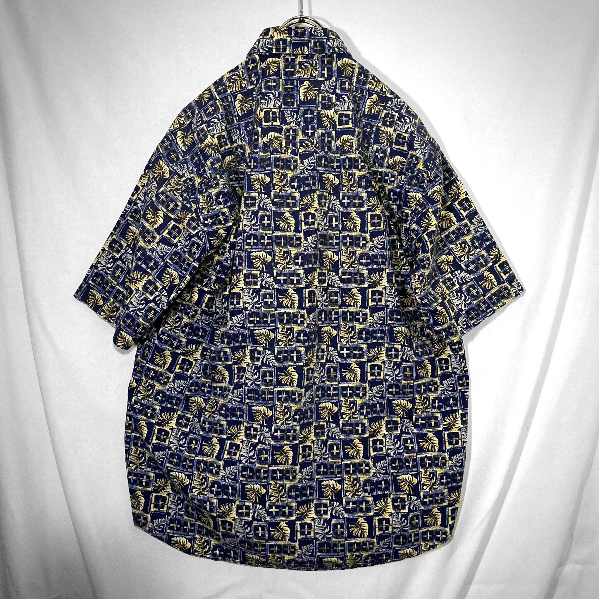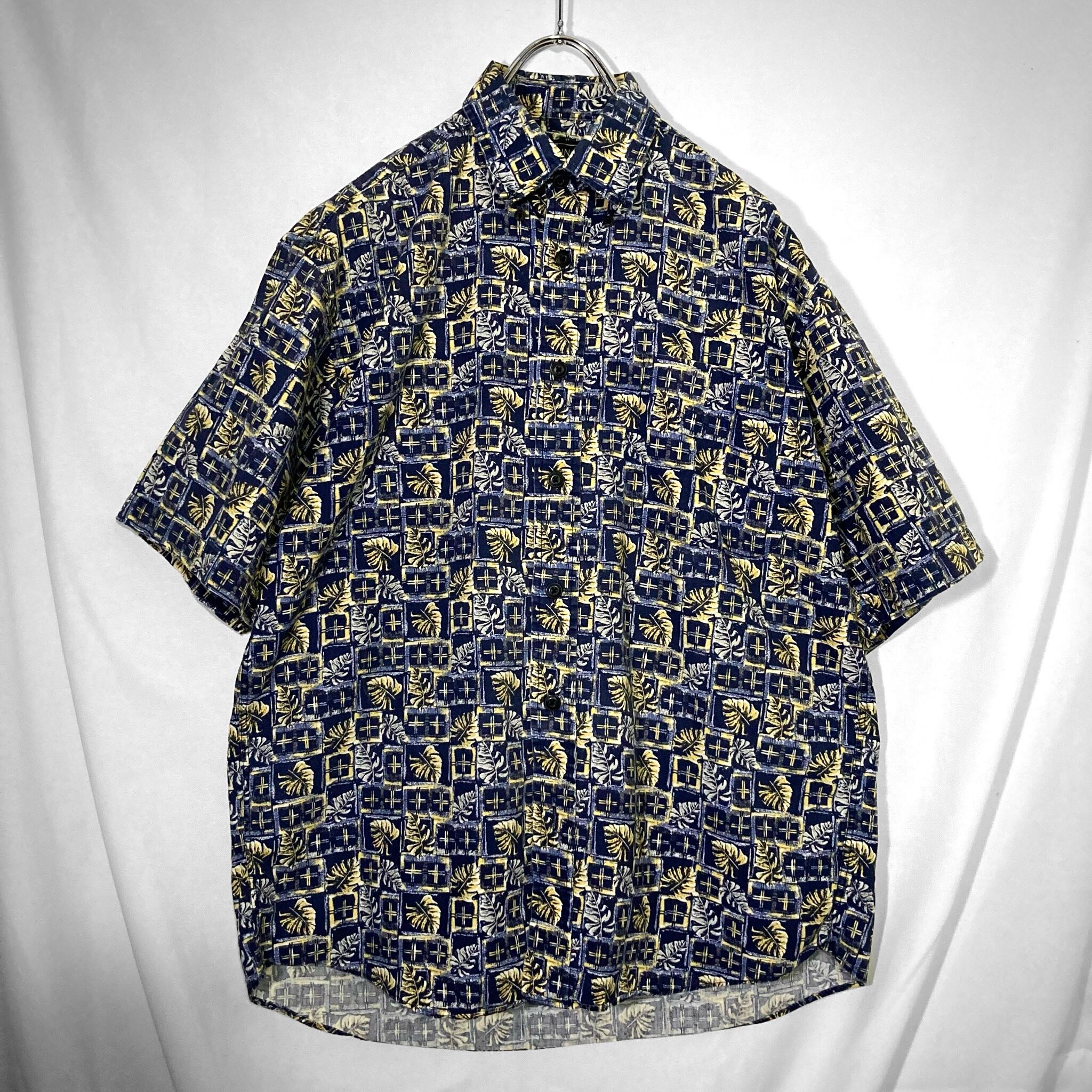 劇画 Leaf × Geometric all over pattern design S/S shirt