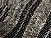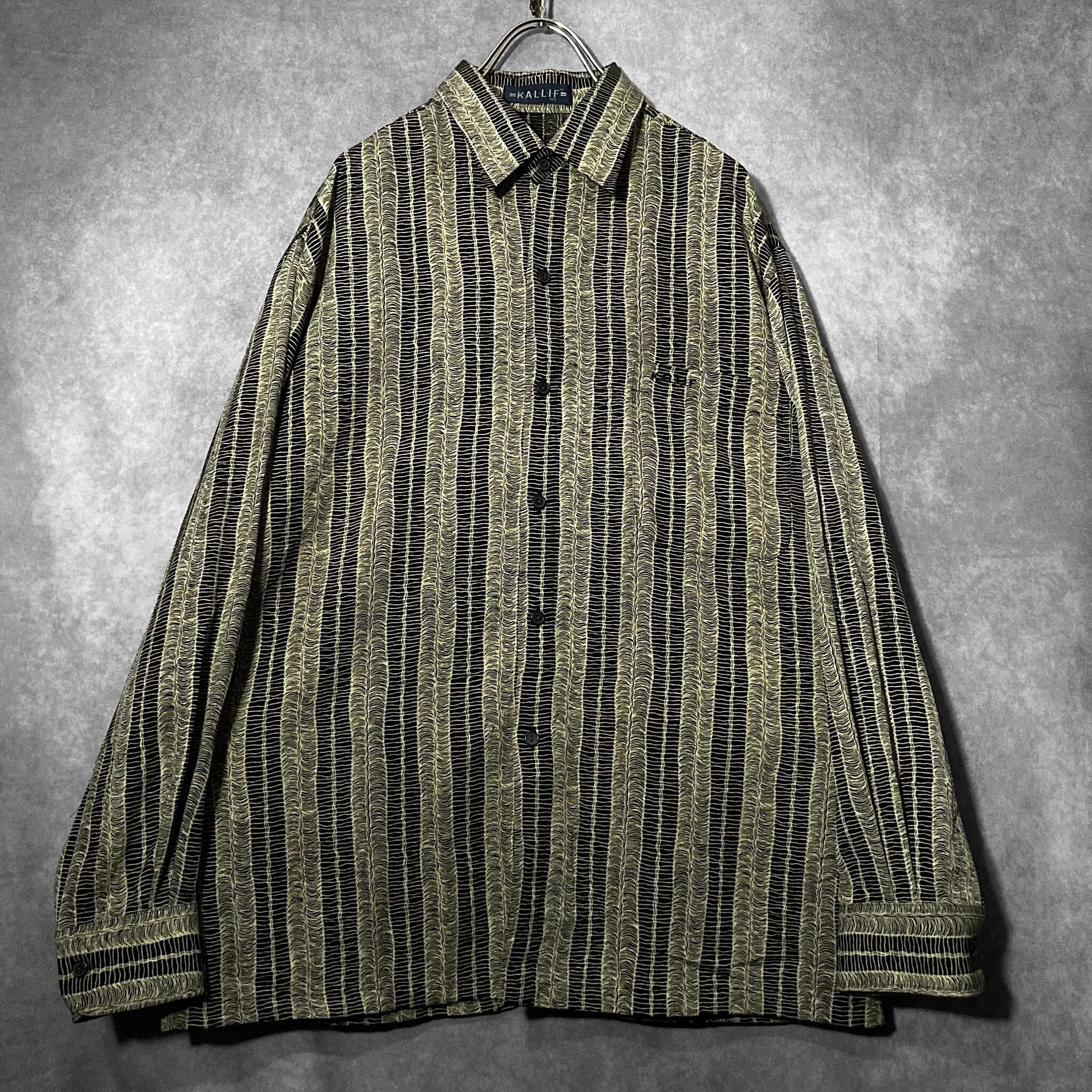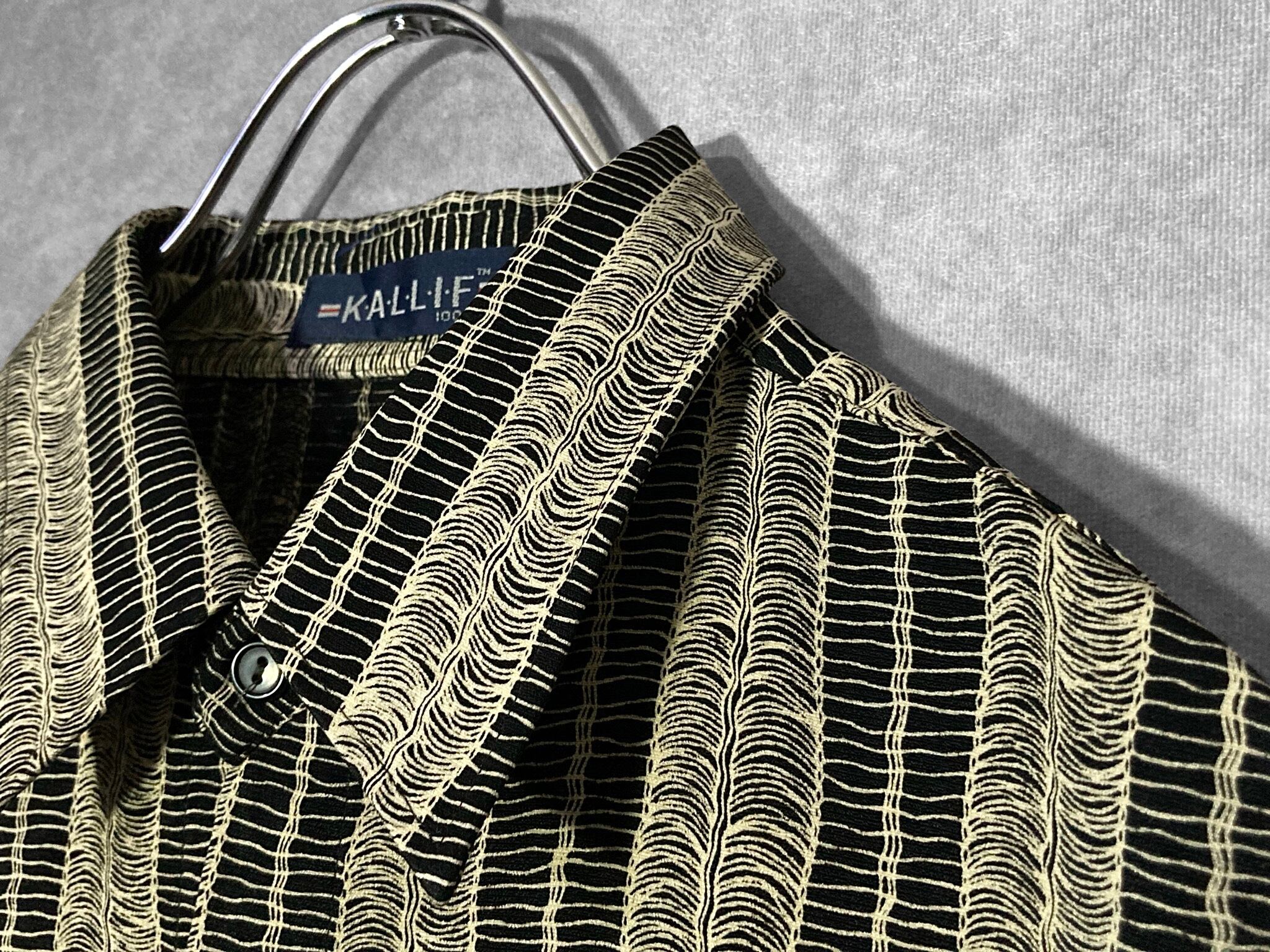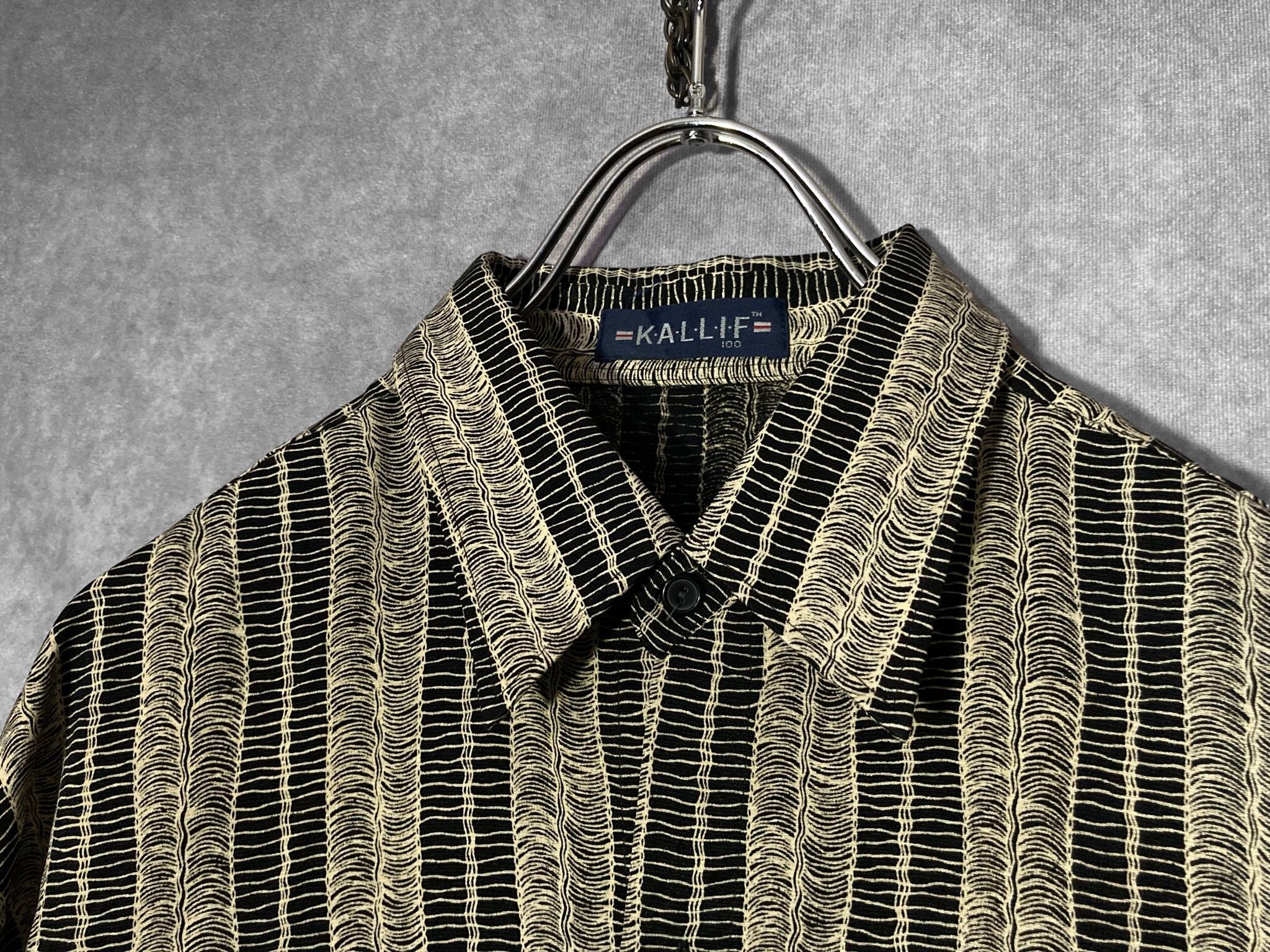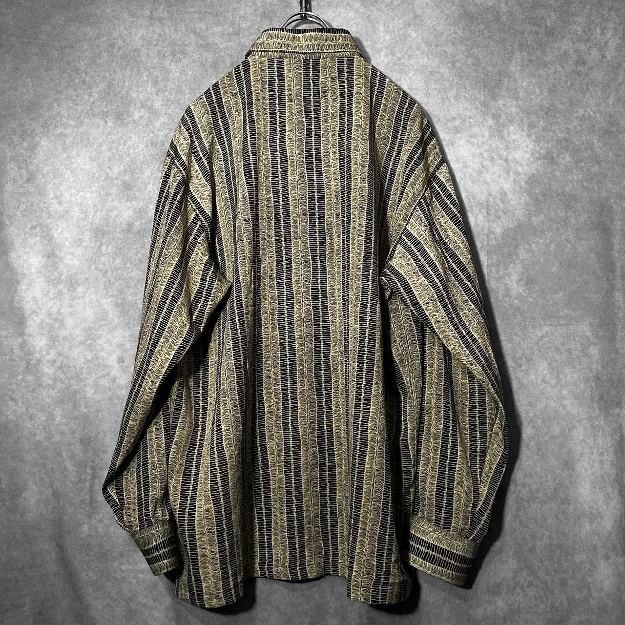 生地の編み目をほどいたような個性的なパターンの総柄シャツ。