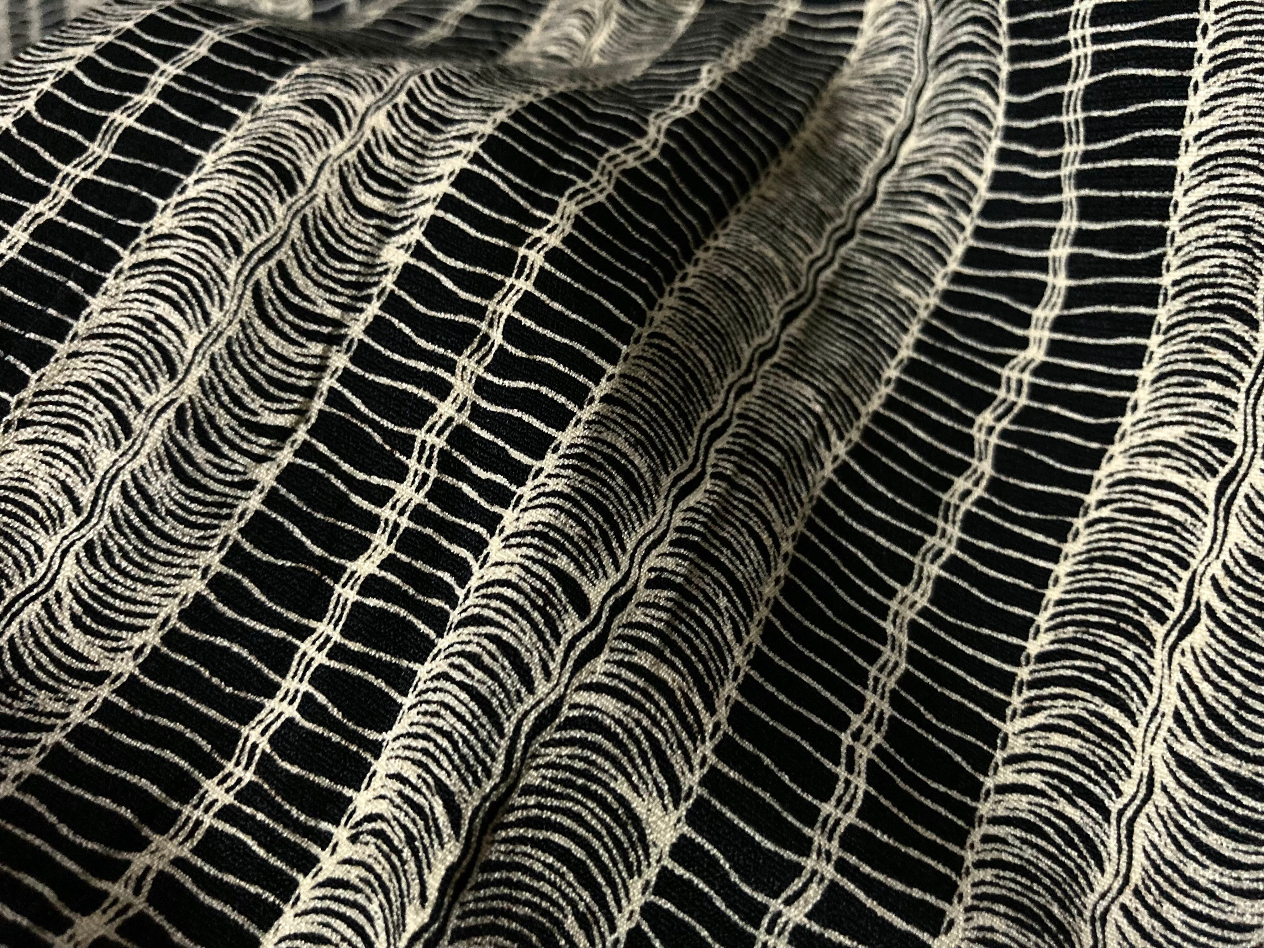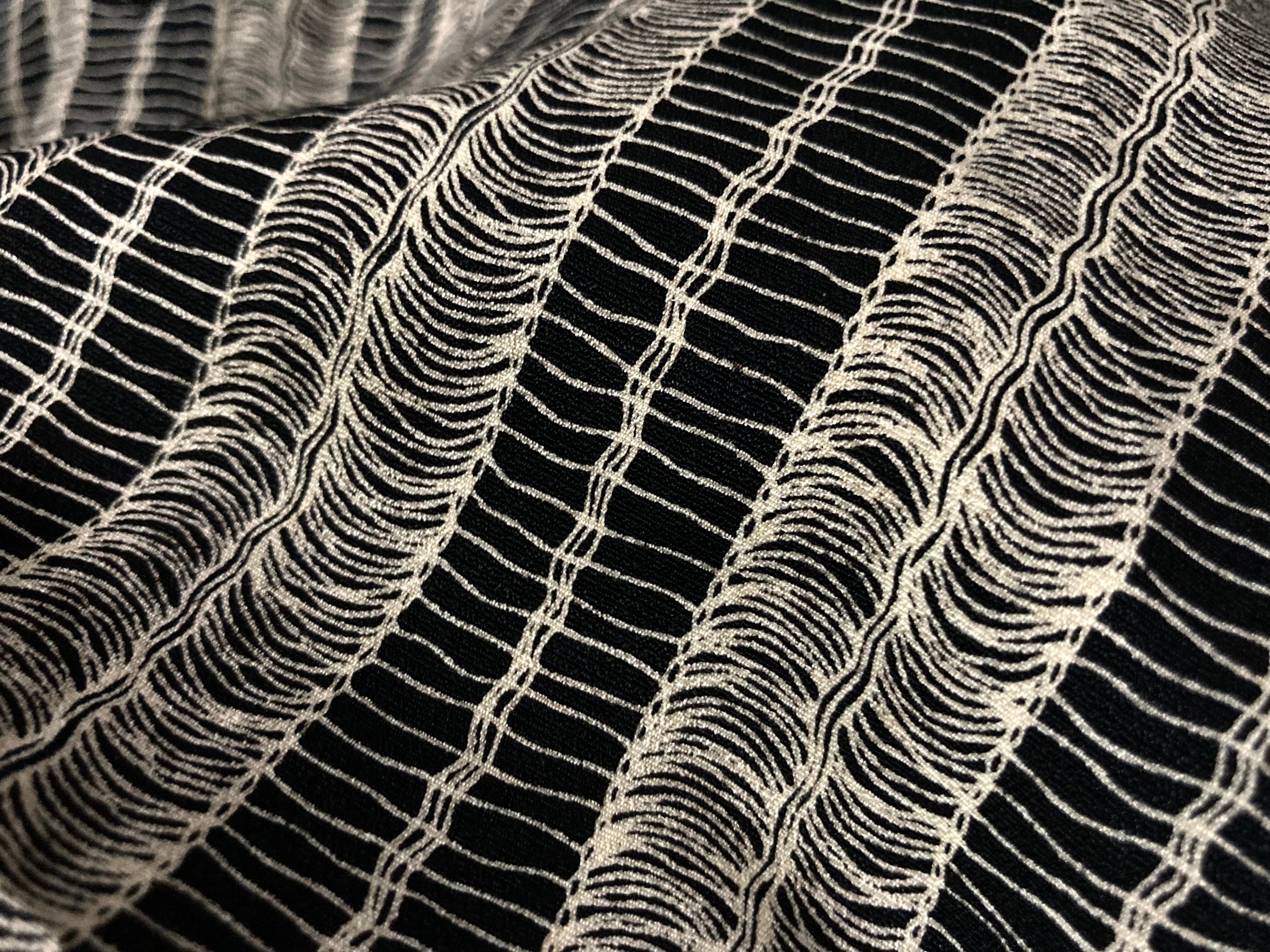 ぽっかりと隙間の空いた部分がストライプのようにも見えてモードな雰囲気ムンムンの1着。