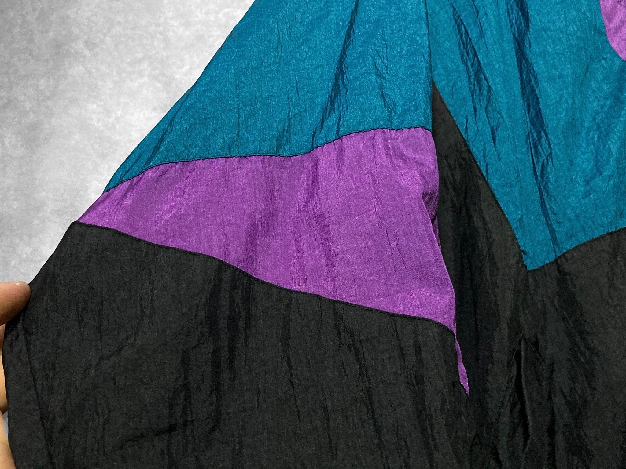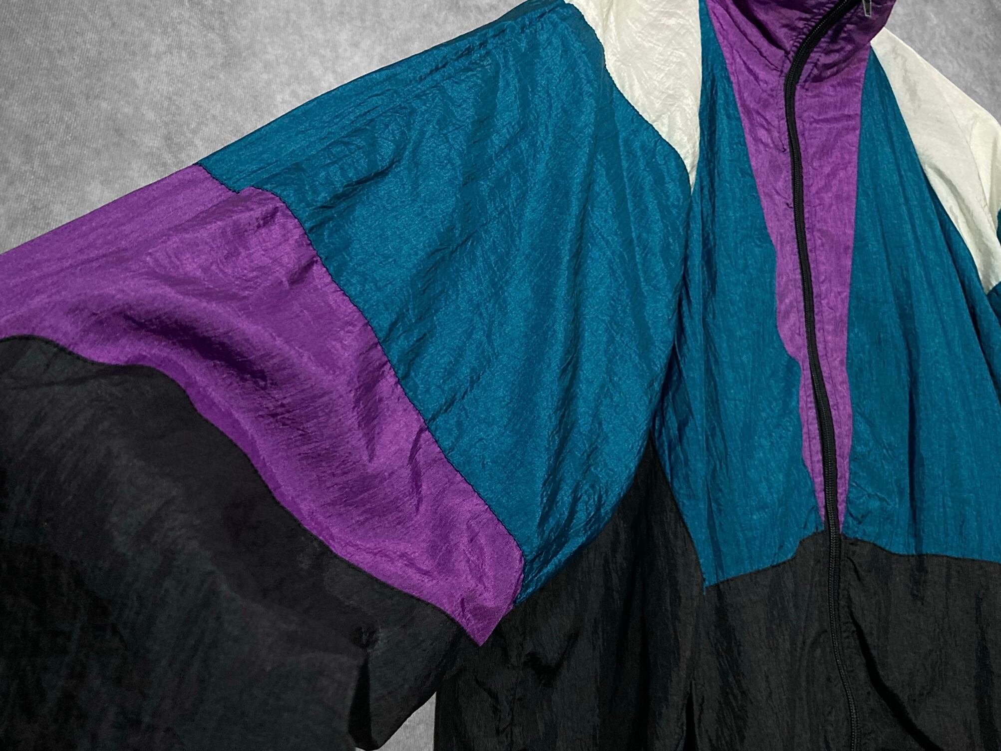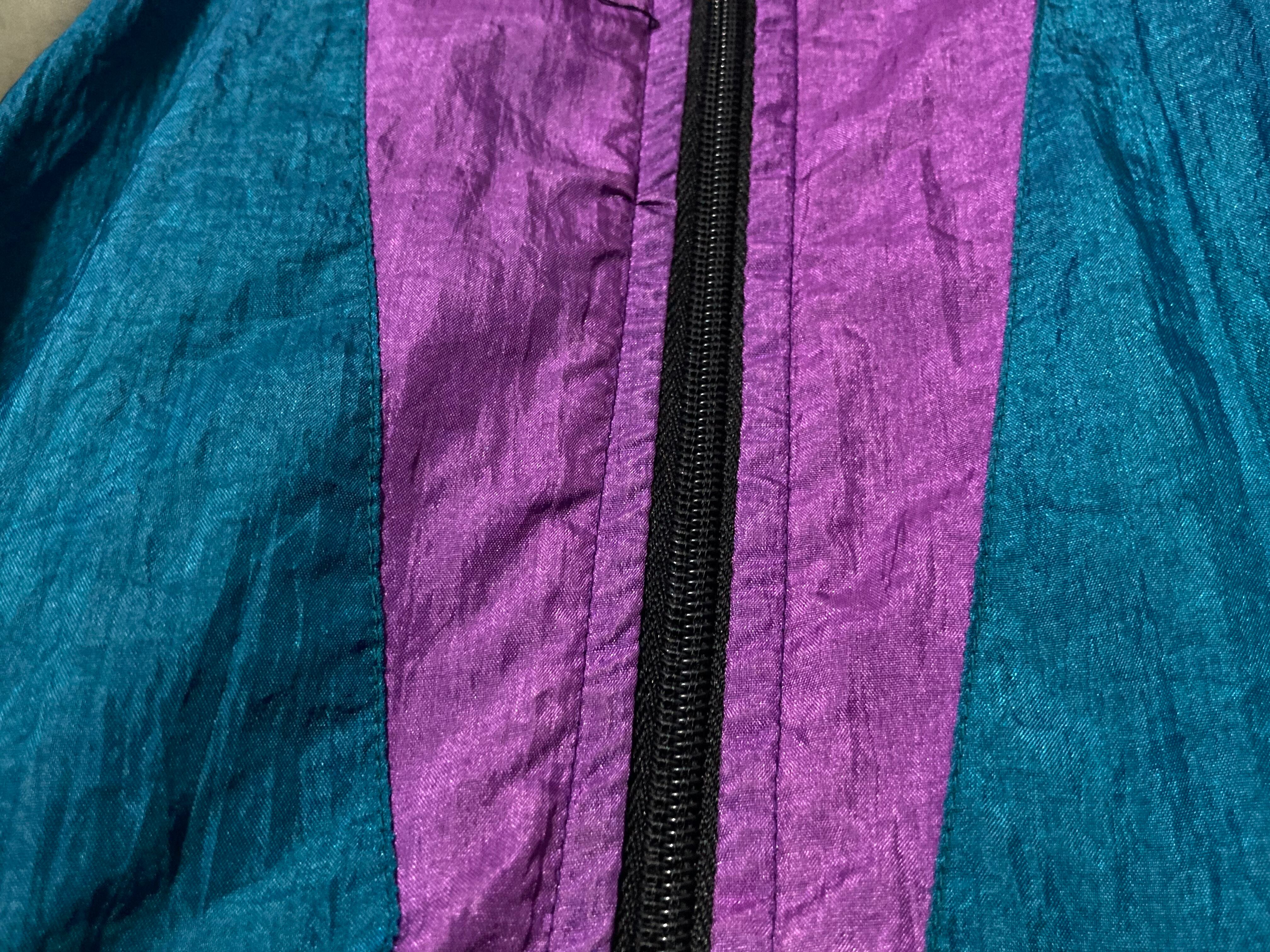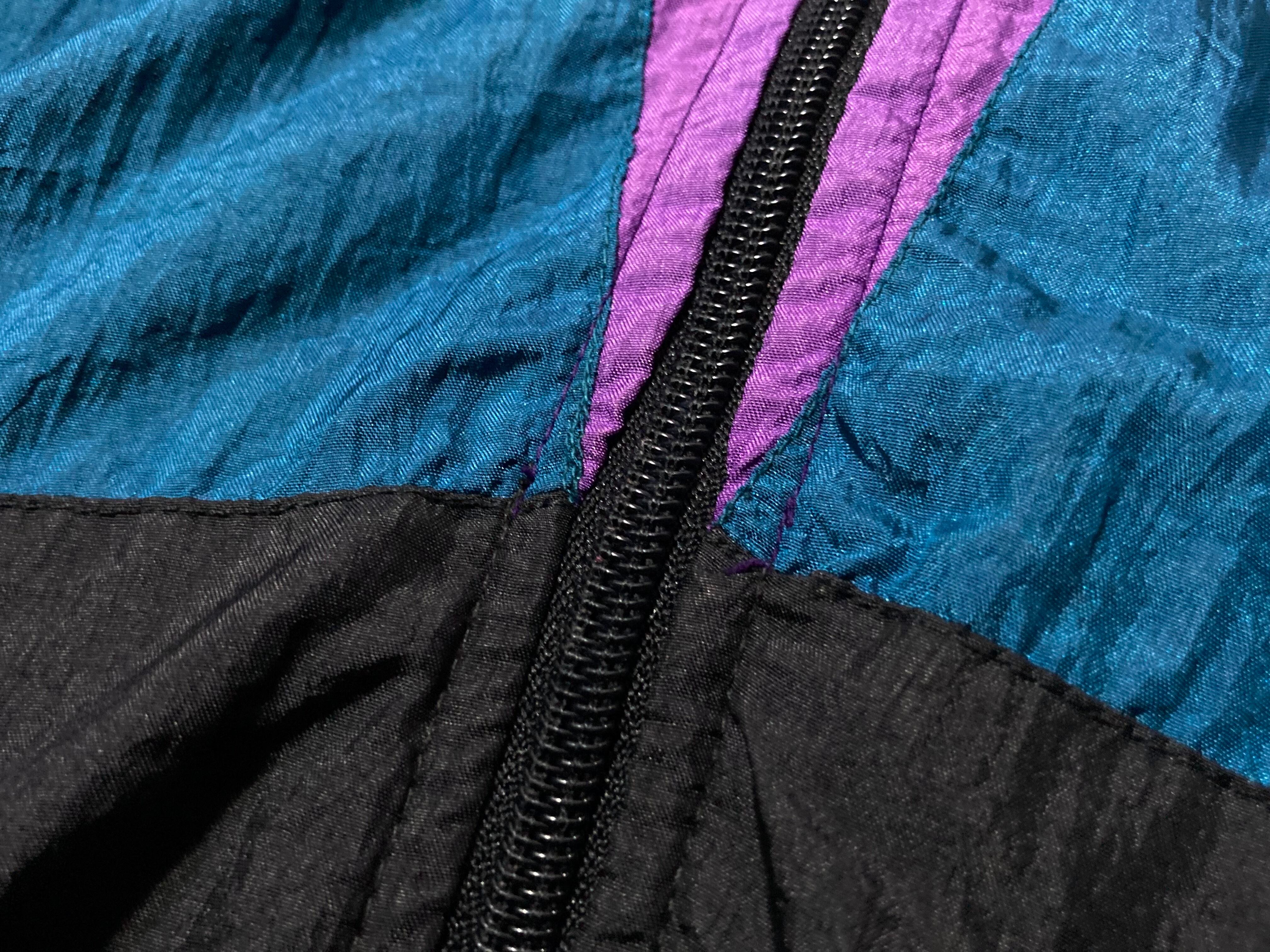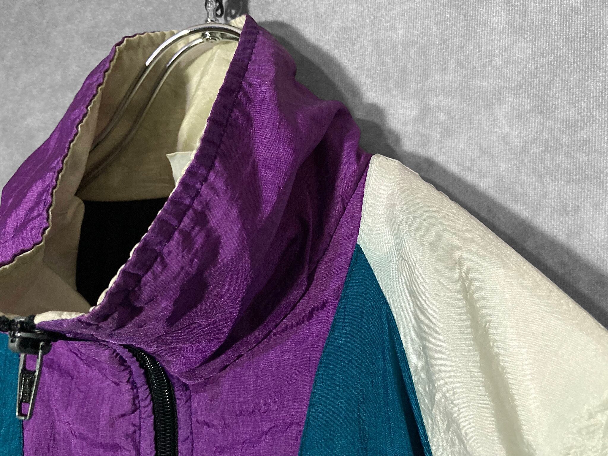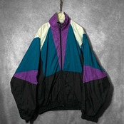 Peacock blue × Pink purple color design Switching Nylon blouson