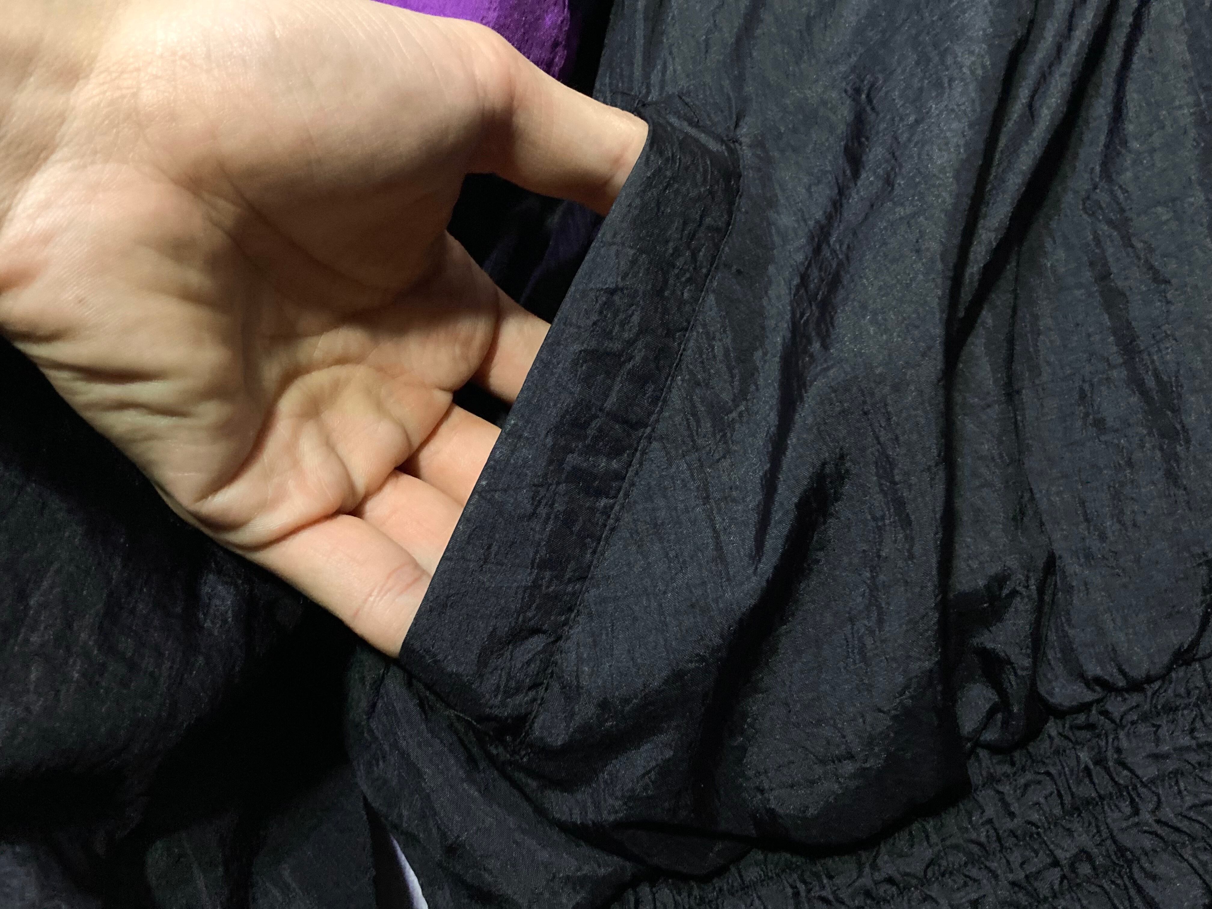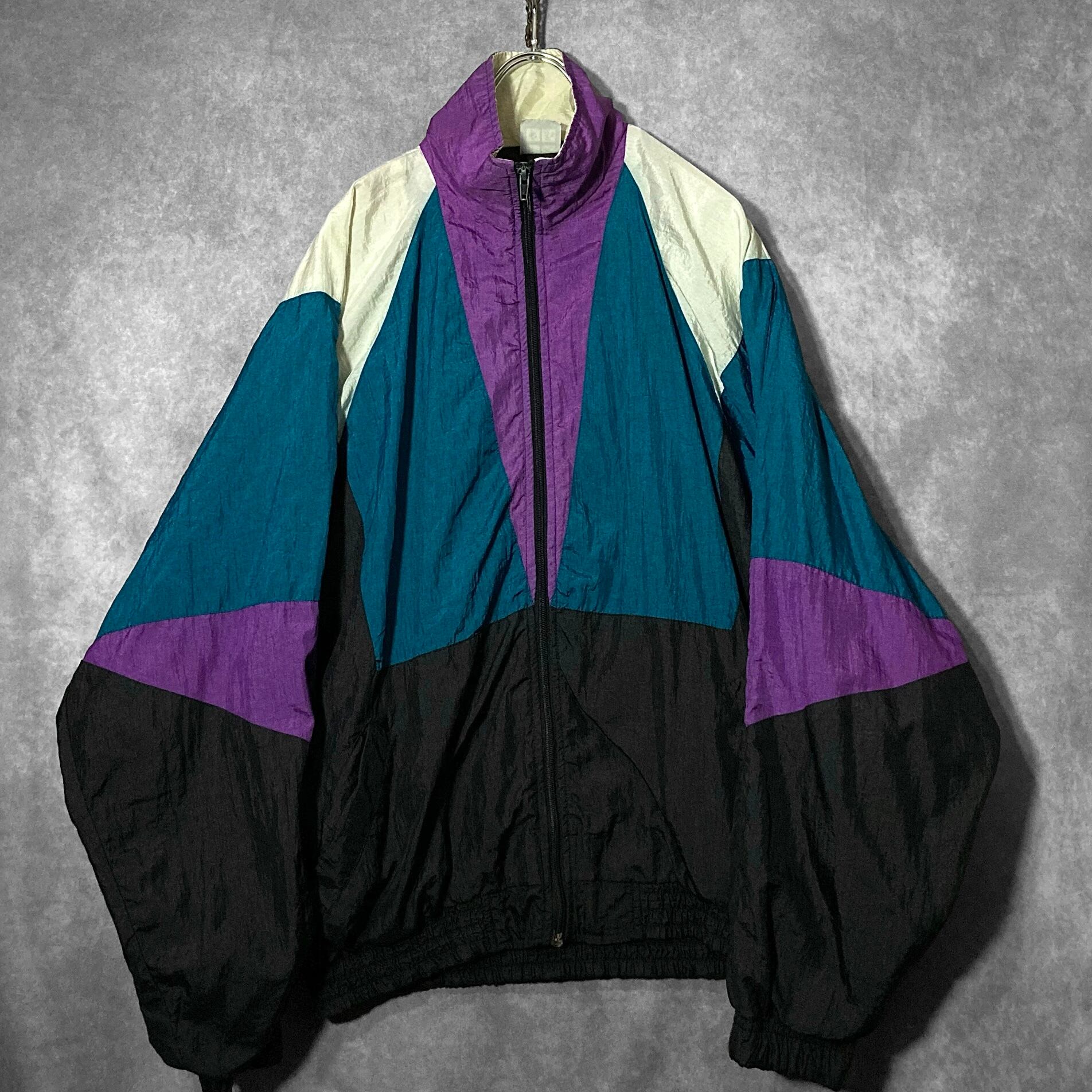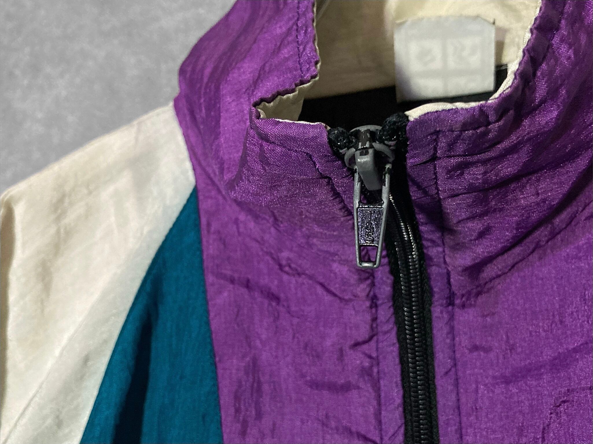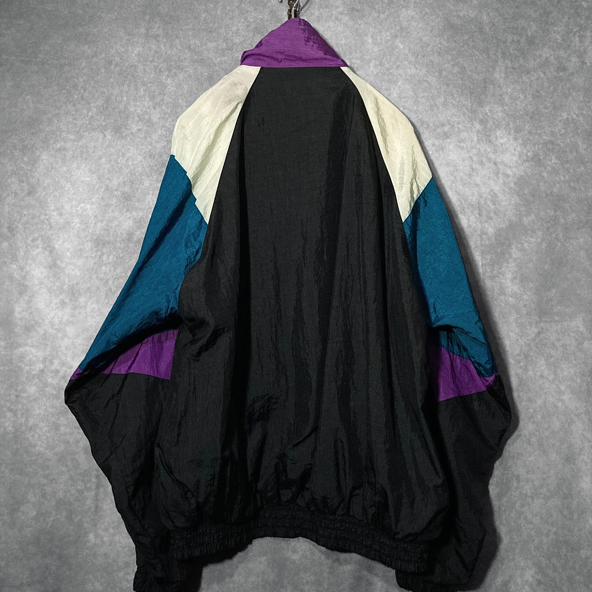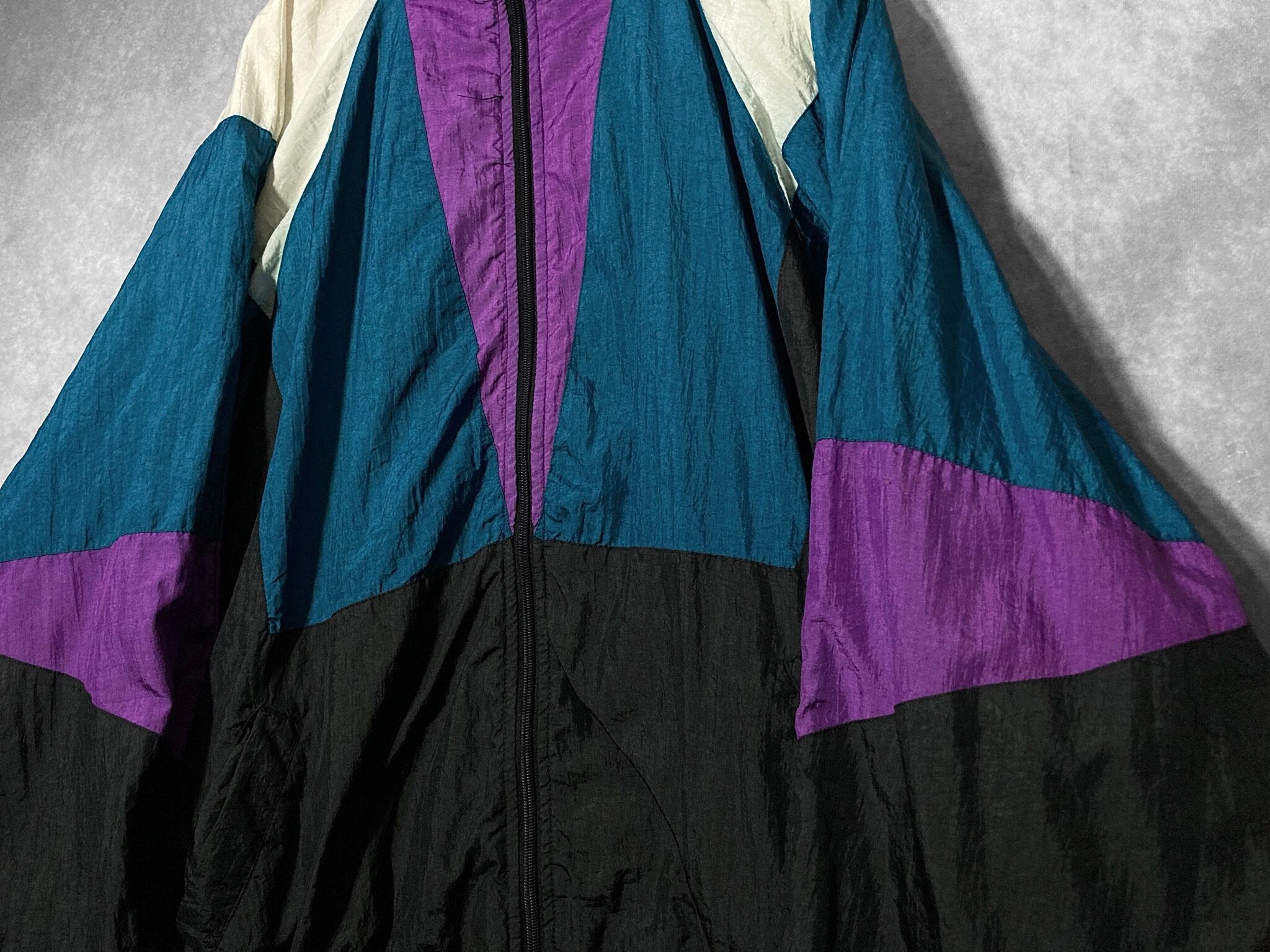 Peacock blue × Pink purple color design Switching Nylon blouson