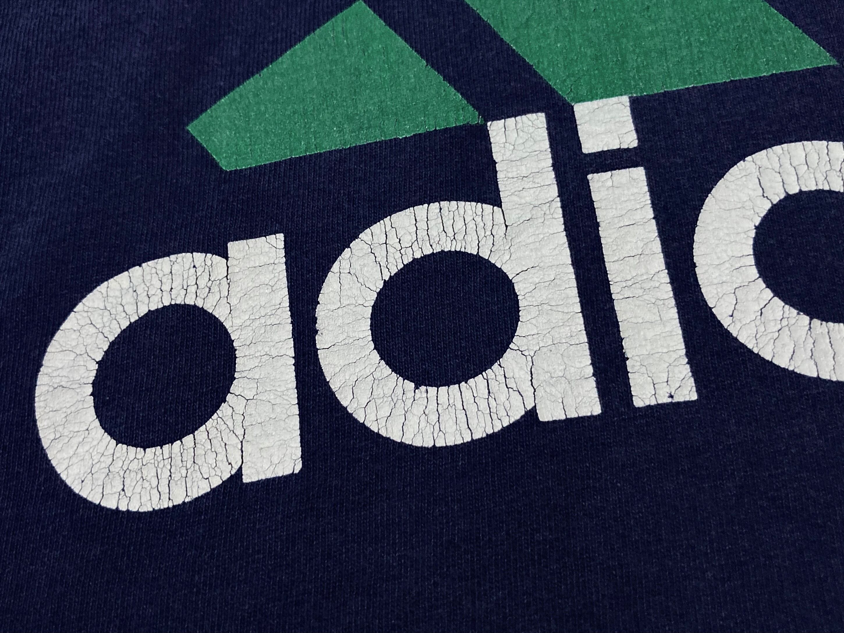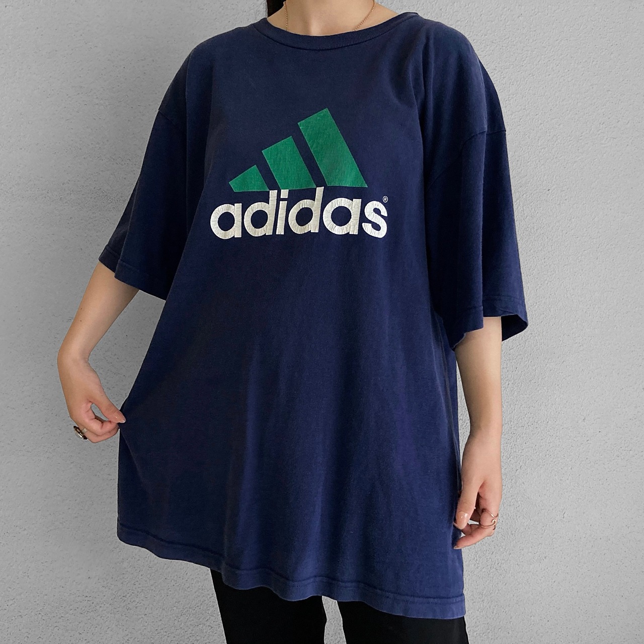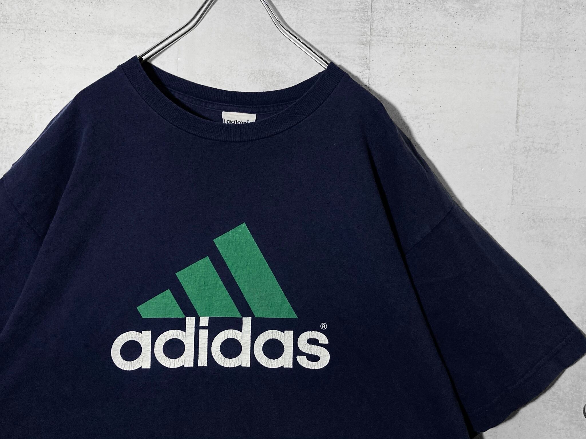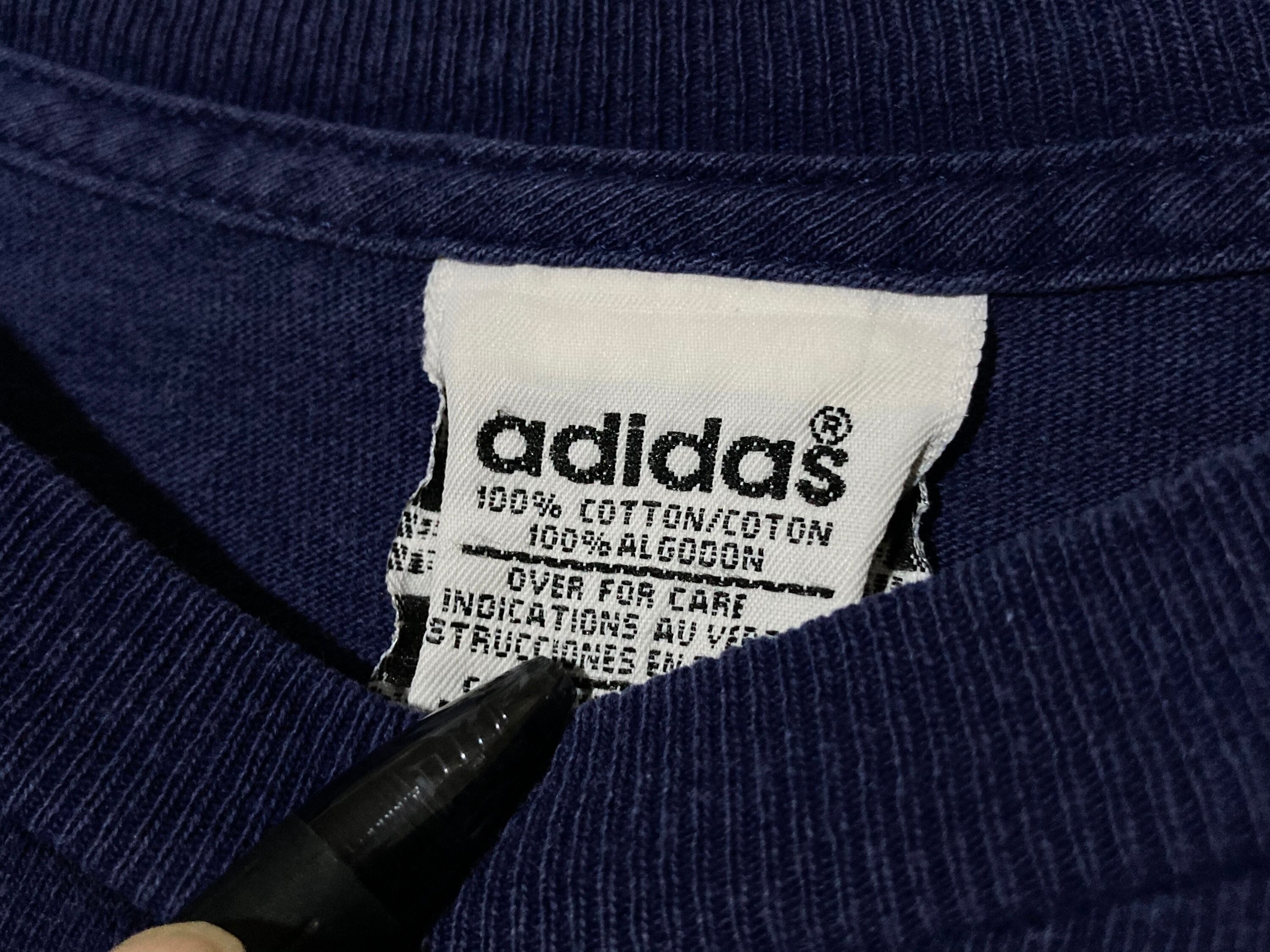 adidas XL 90's Logo print pattern design S/S Tee Navy