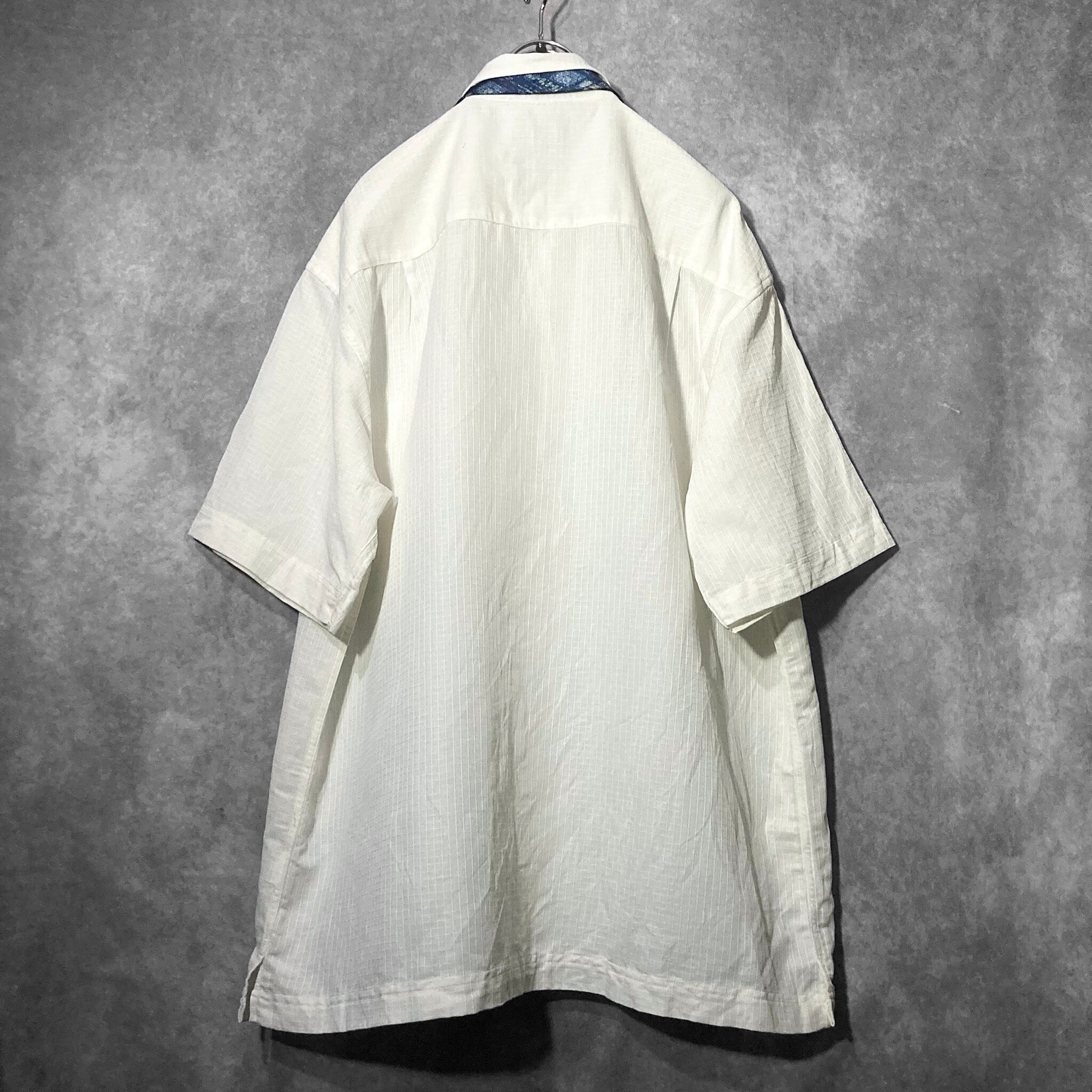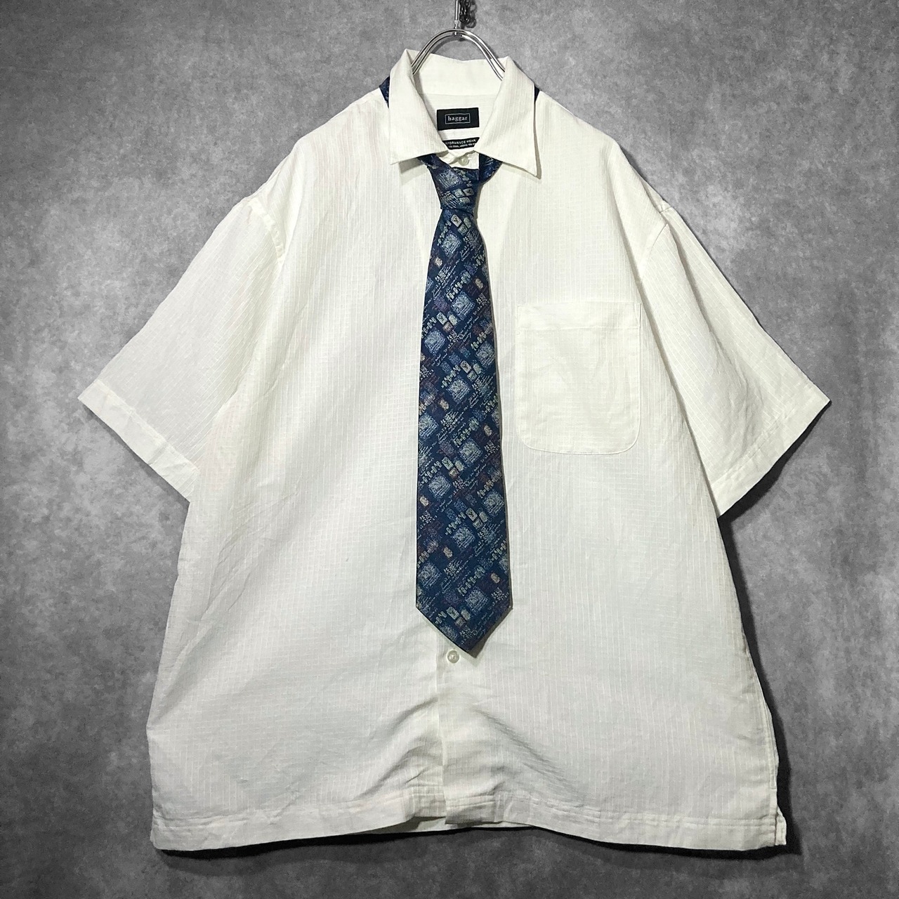 XL Hagger Hidden lattice pattern design White color SS shirt & Cold color Hand drawn art all over pattern design Necktie set