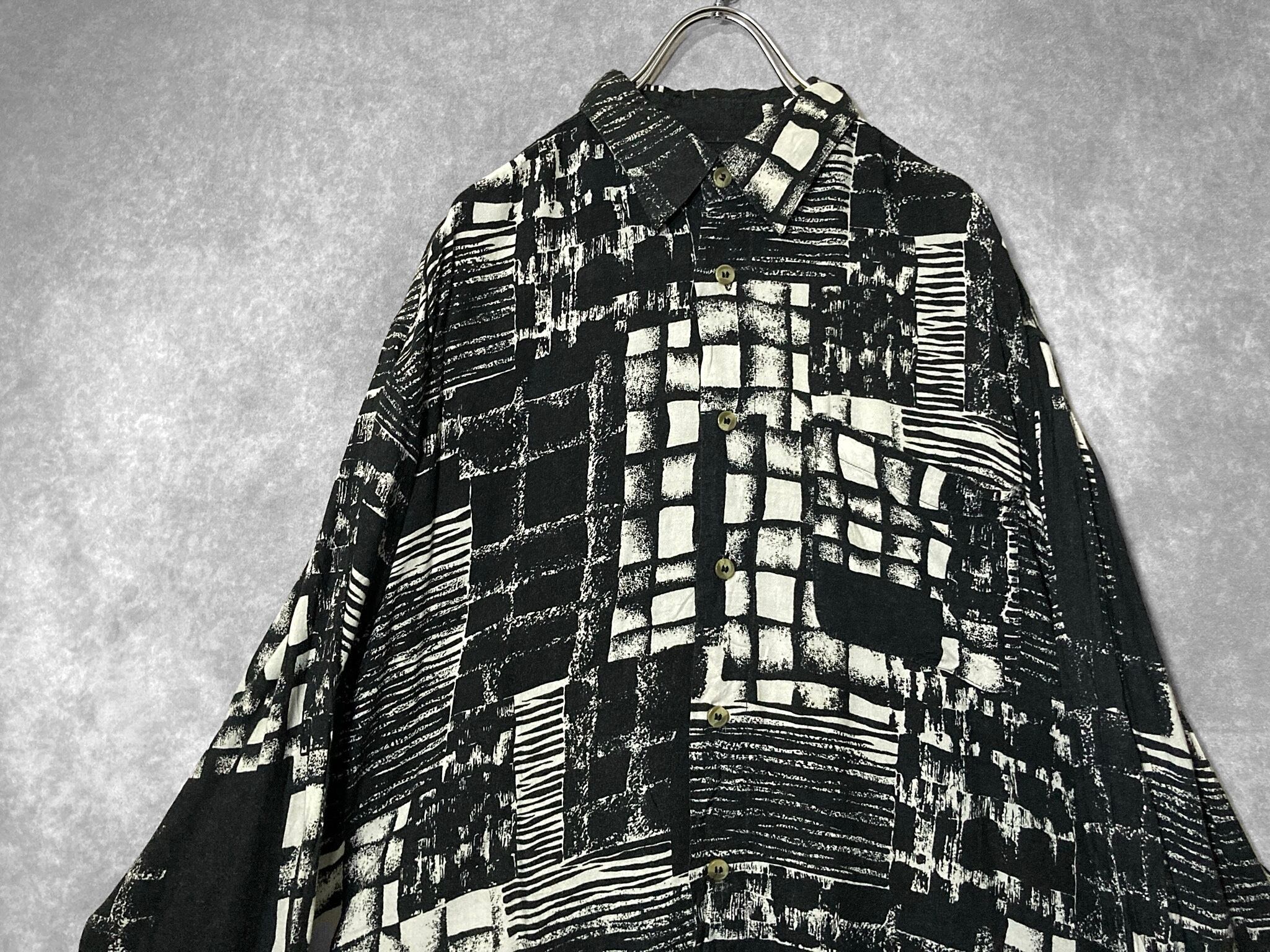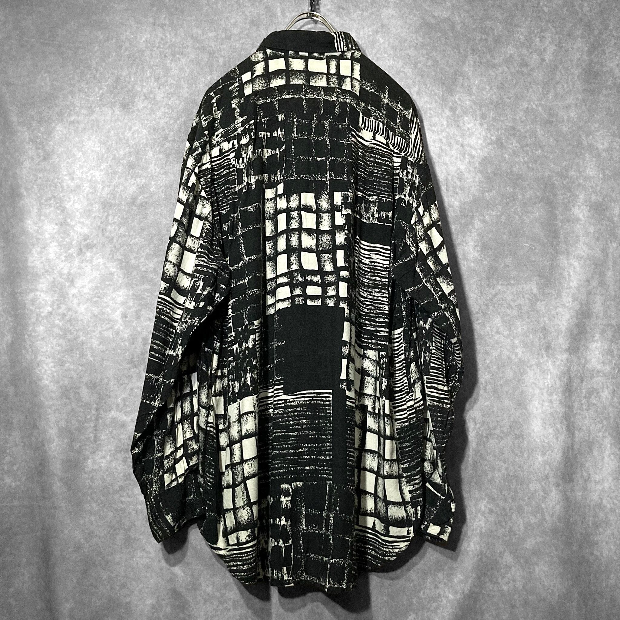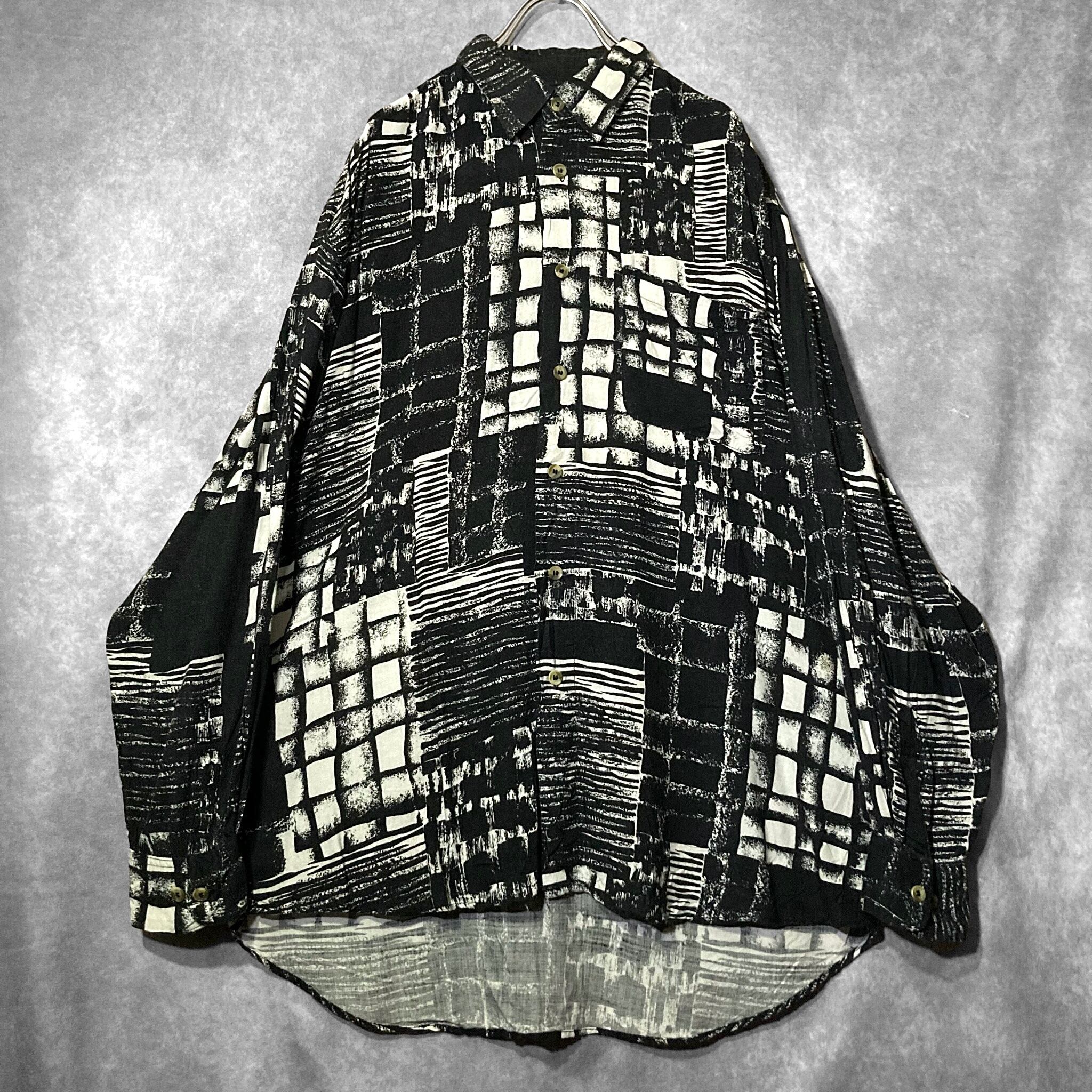 XXL 陰影 Shading all over pattern Monochrome design Over-size L/S shirt
