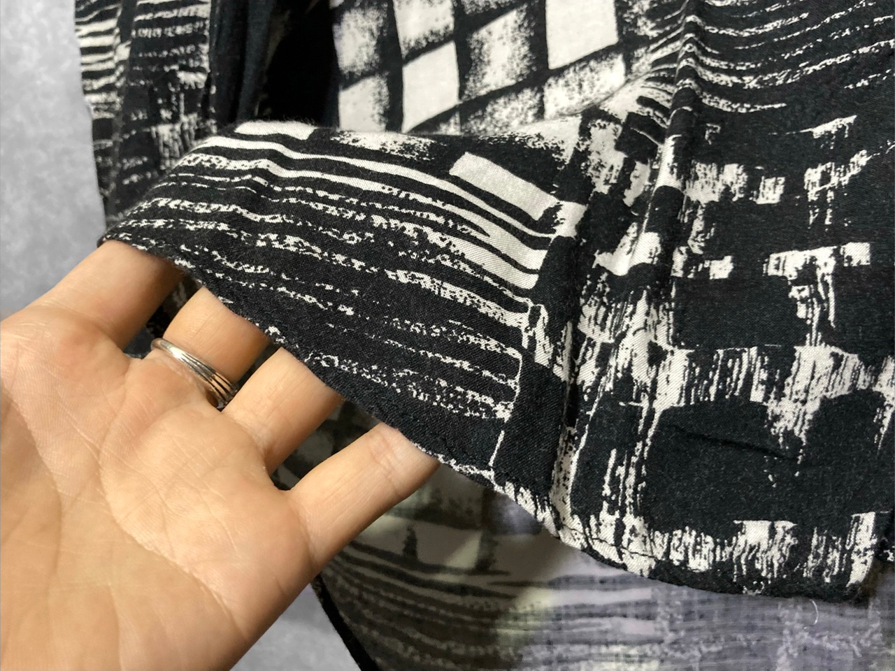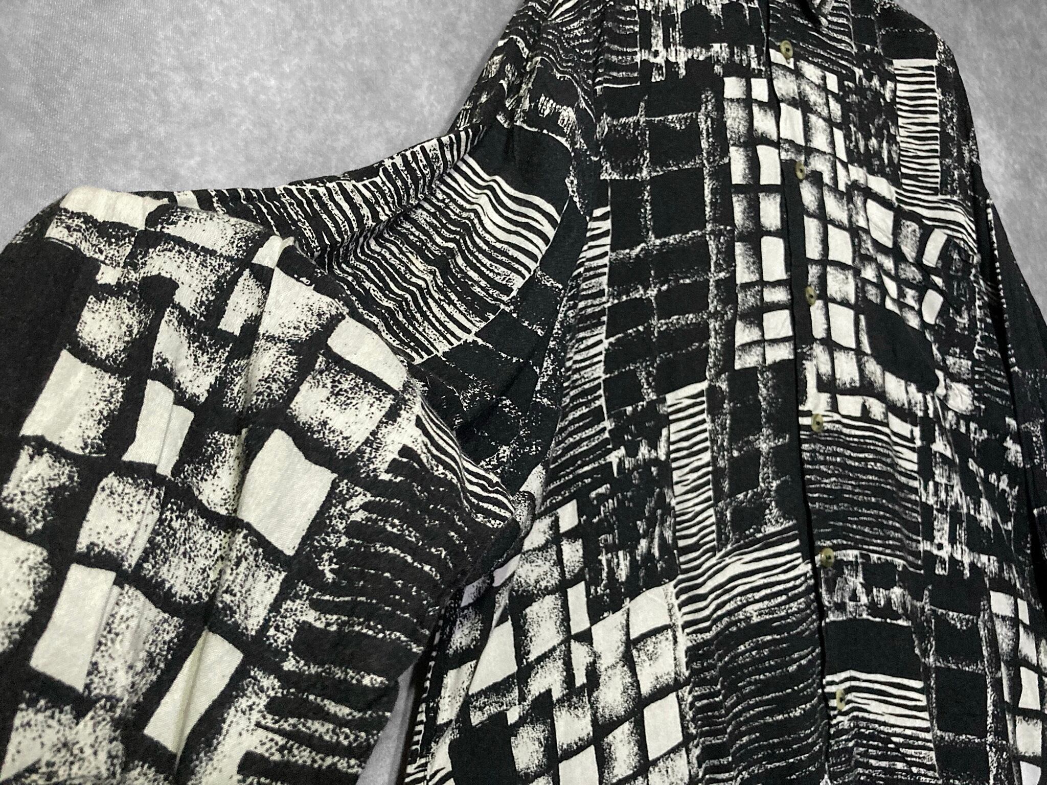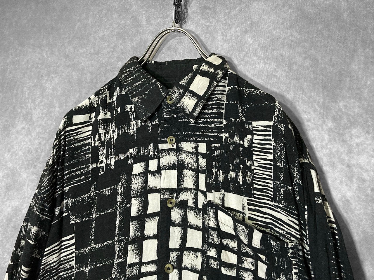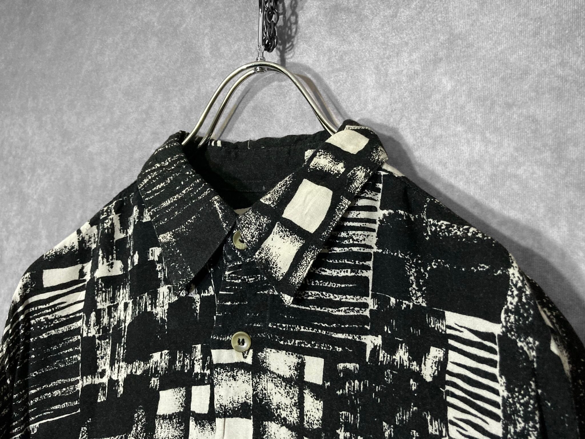 XXL 陰影 Shading all over pattern Monochrome design Over-size L/S shirt