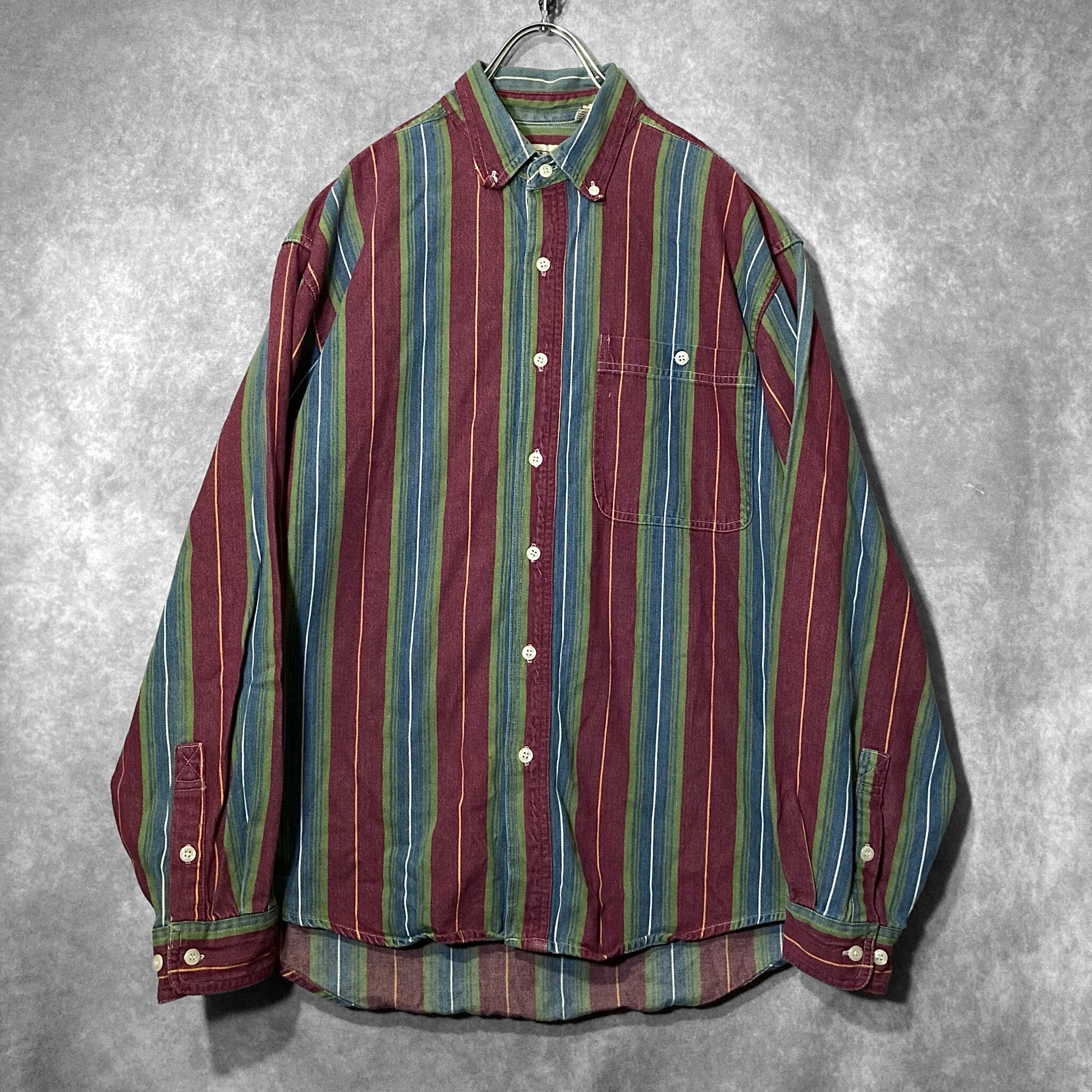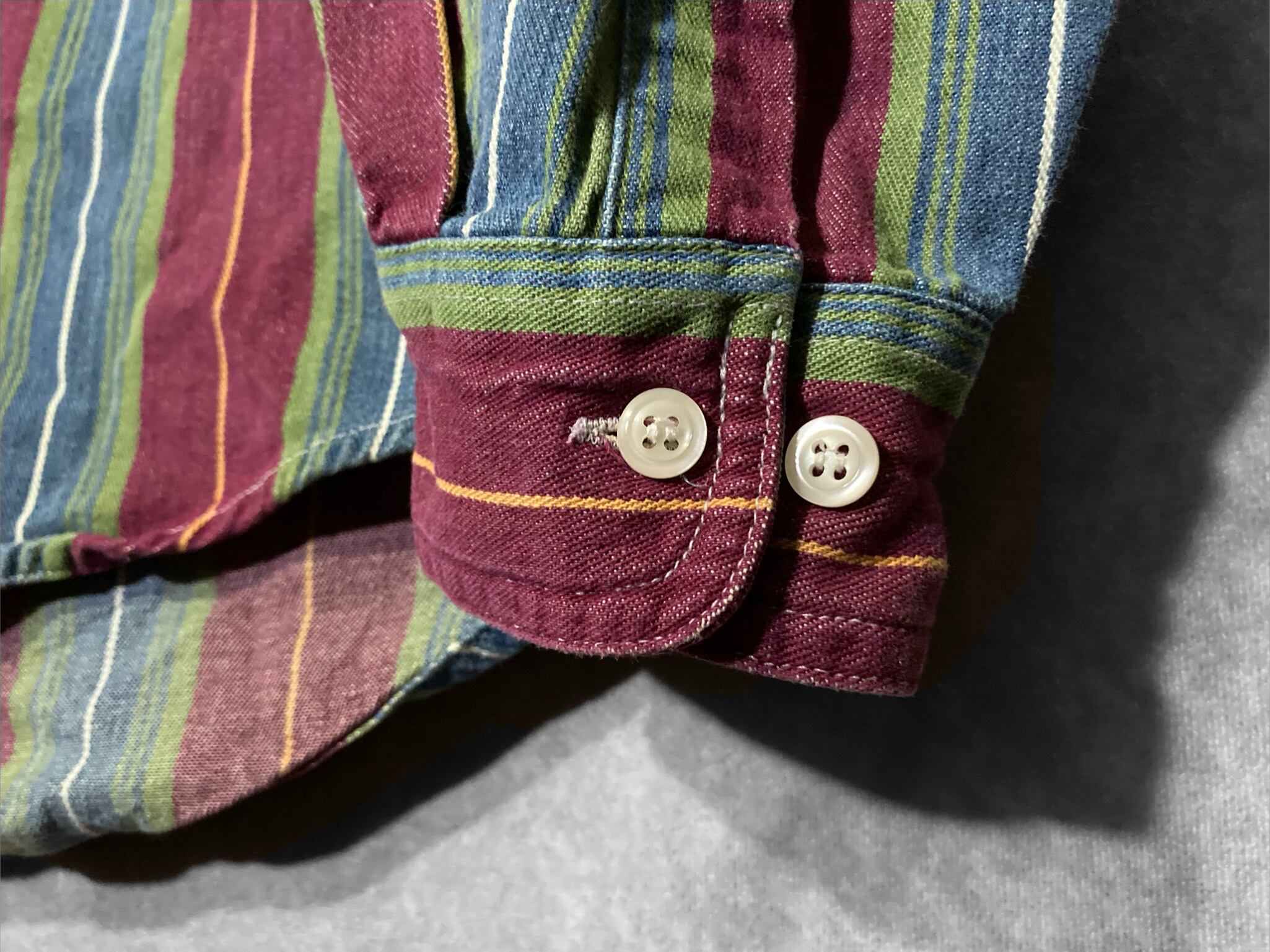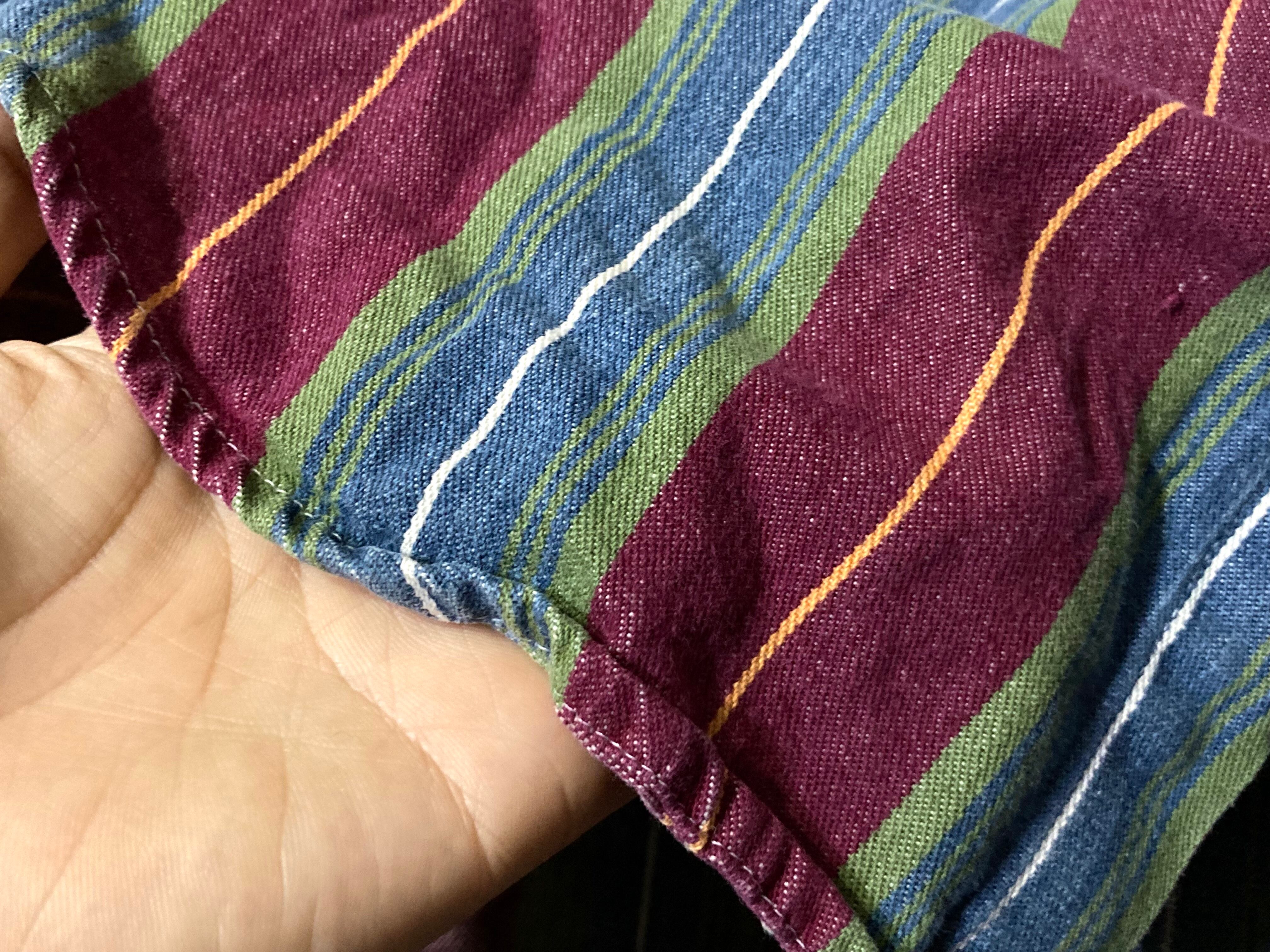 風合いのある生地が見せるレッド、ブルー、グリーンのコントラストによるストライプが大人っぽく見せてくれます。