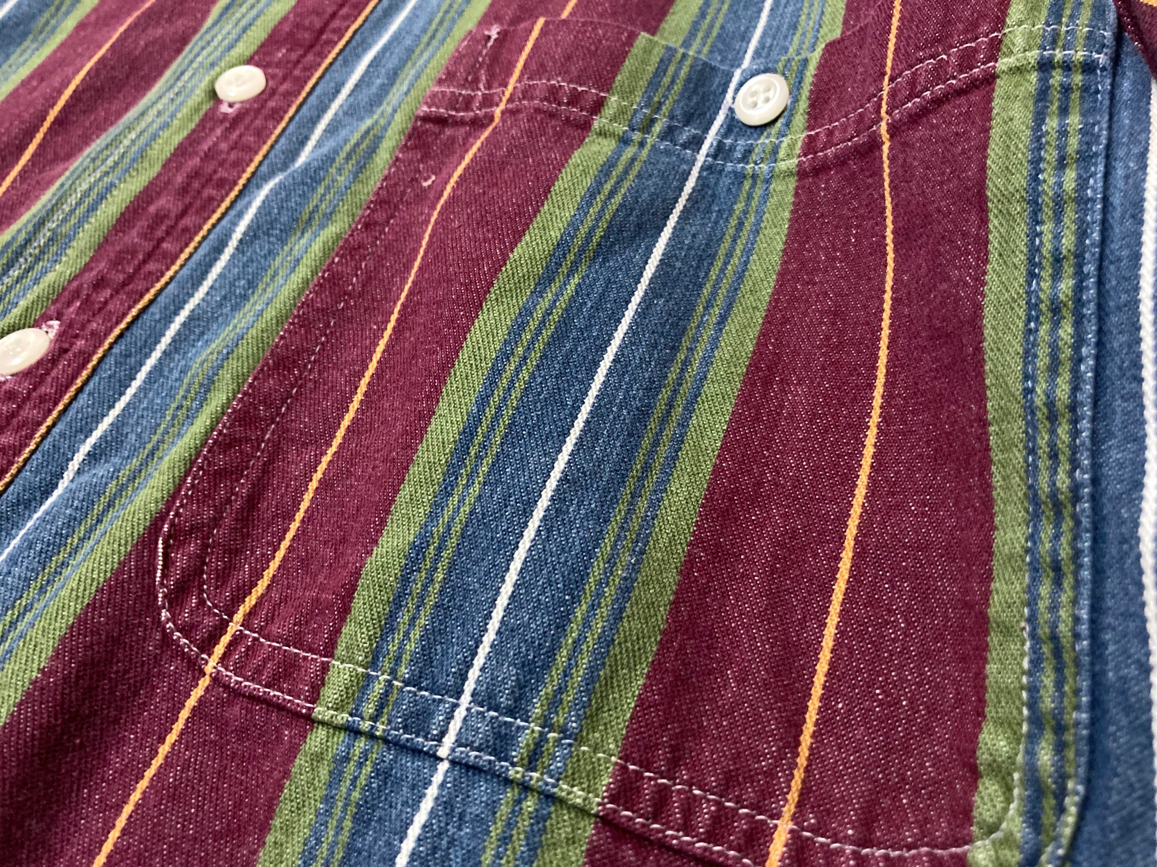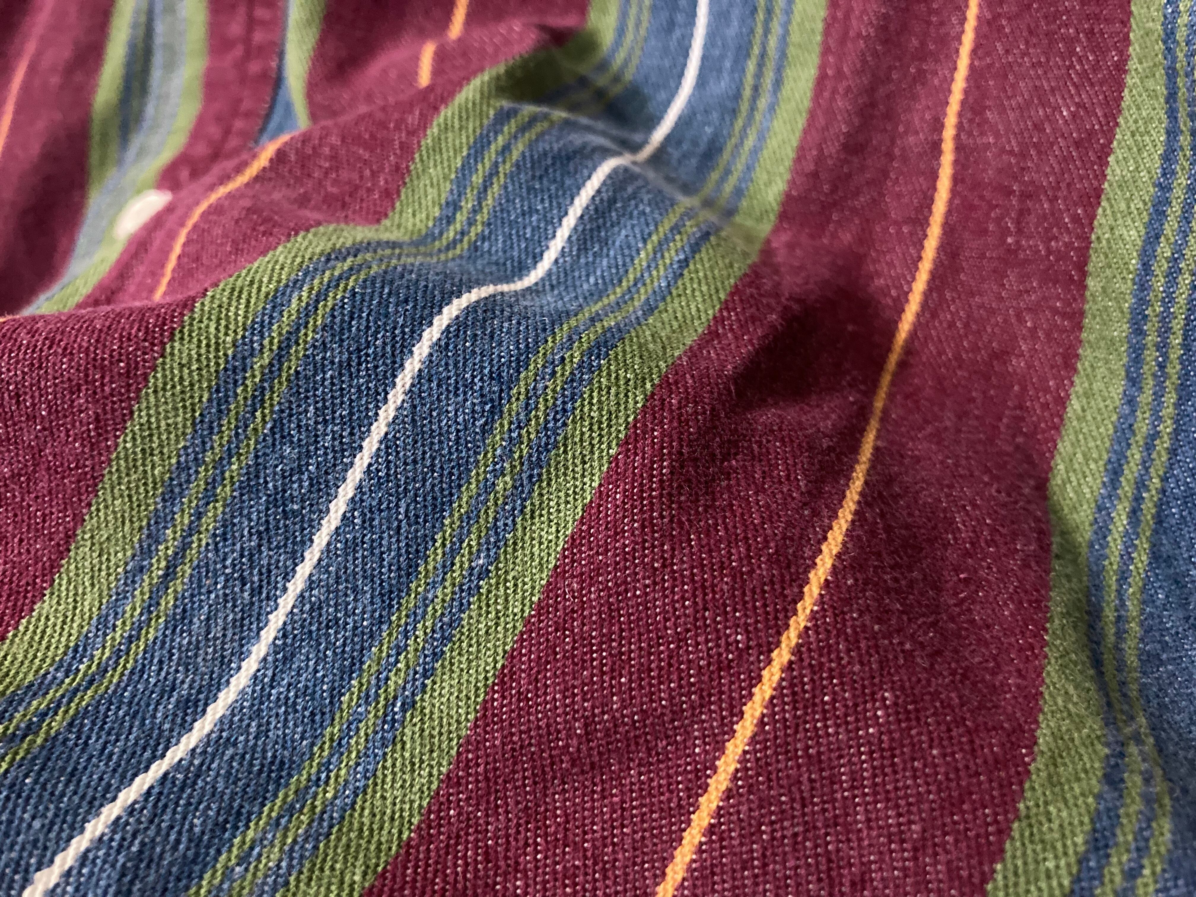 風合いのあるデニム素材の生地のデニムストライプシャツの入荷です。