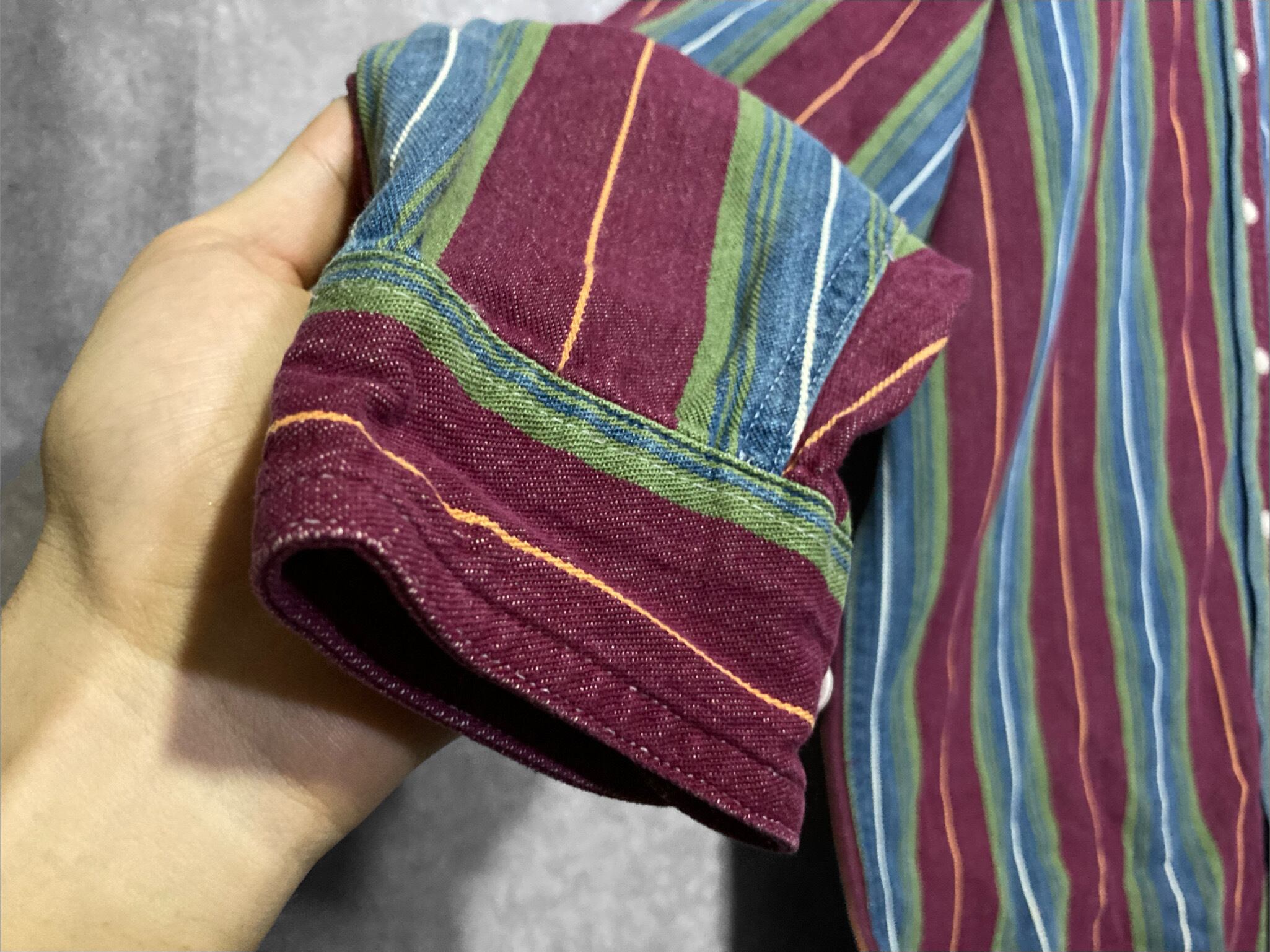 Multi-color stripe pattern Denim fabric design L/S shirt