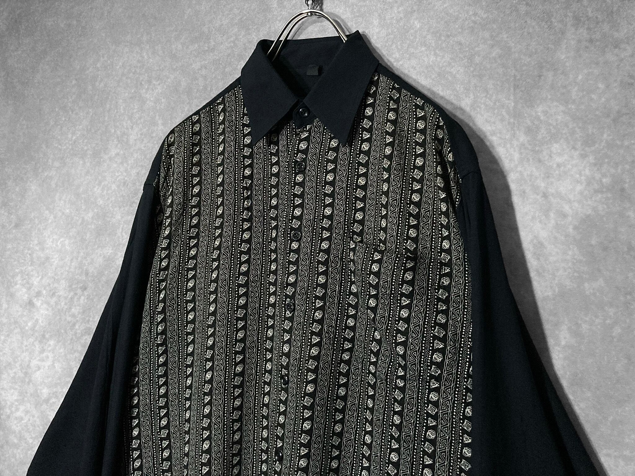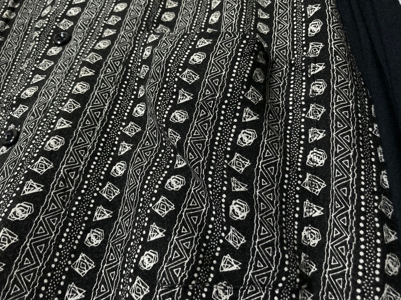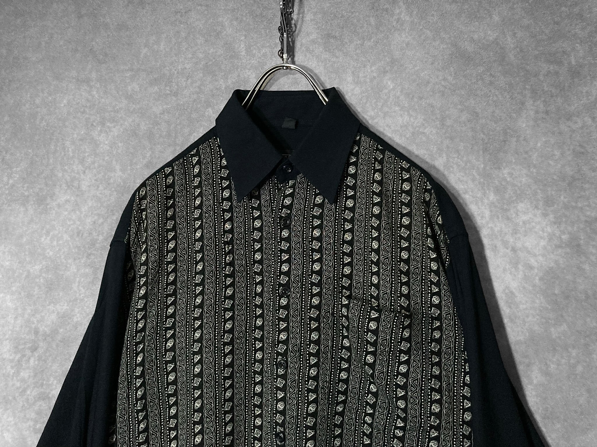 デザイナーズブランドにありそうなモードな雰囲気ムンムンの総柄シャツ。