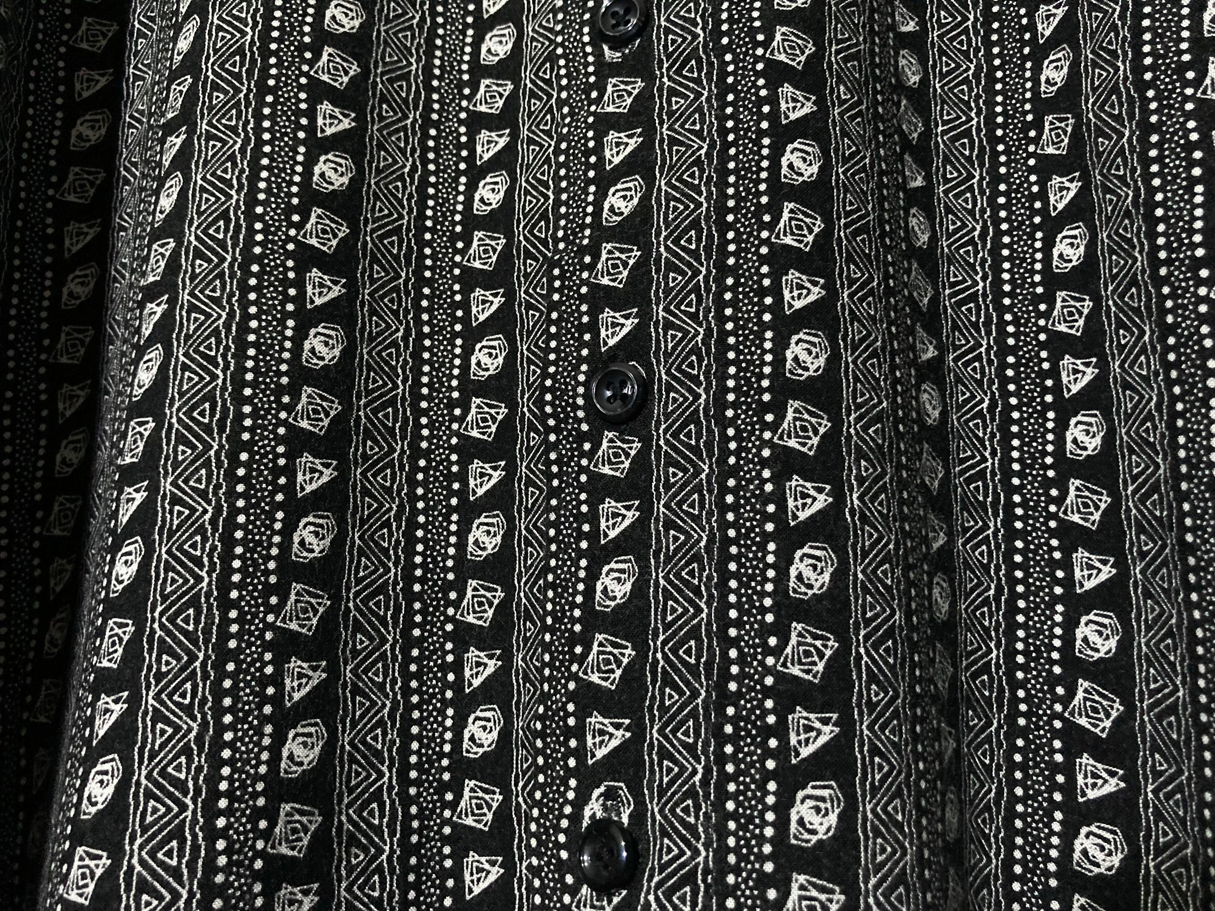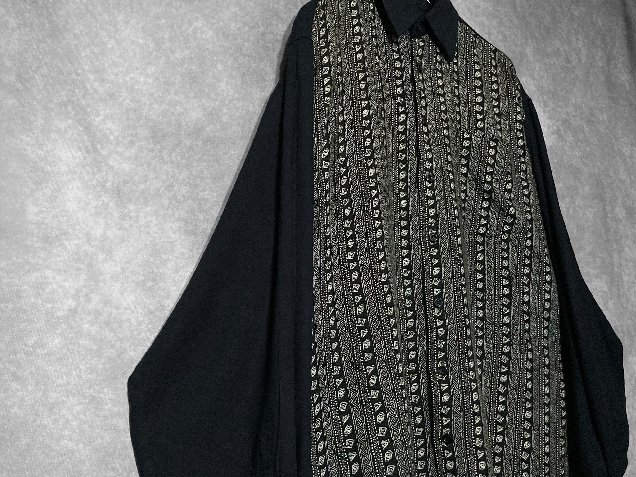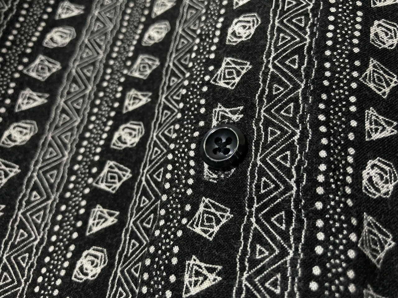 デザイナーズブランドにありそうなモードな雰囲気ムンムンの総柄シャツ。