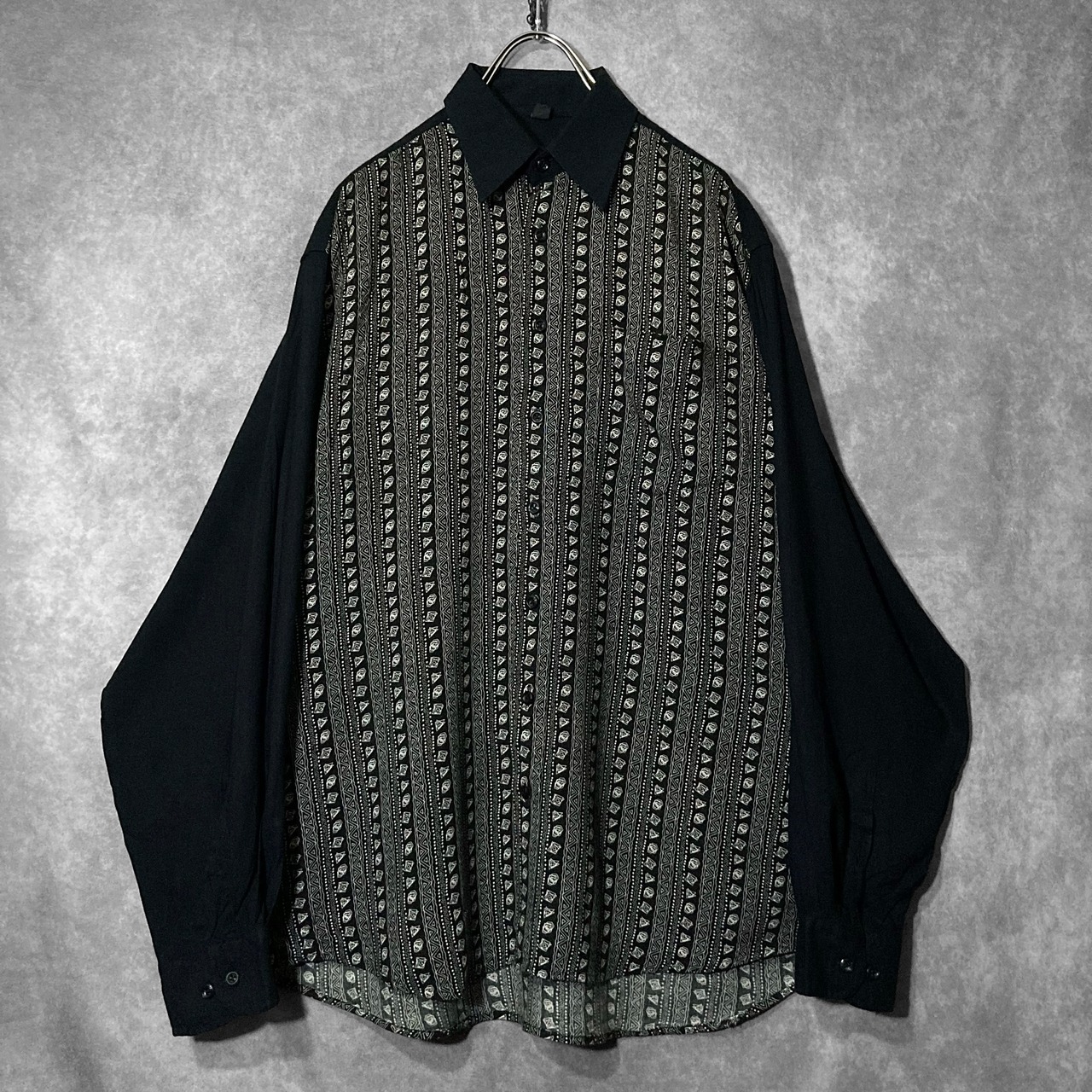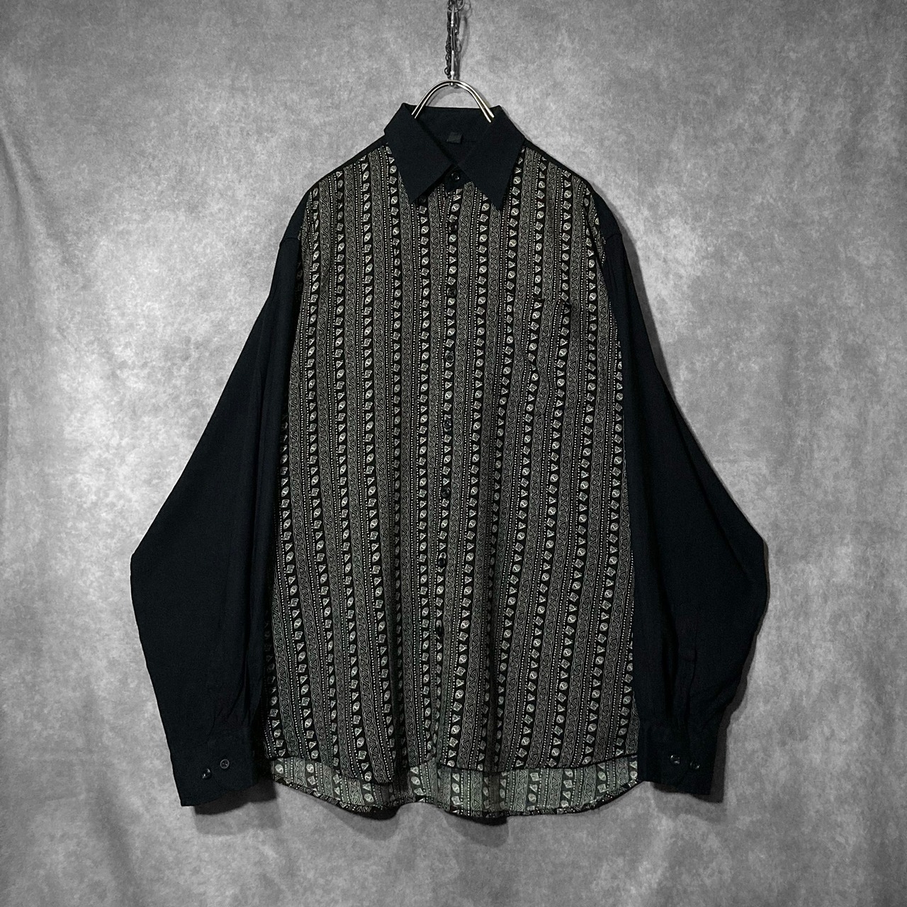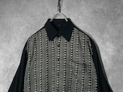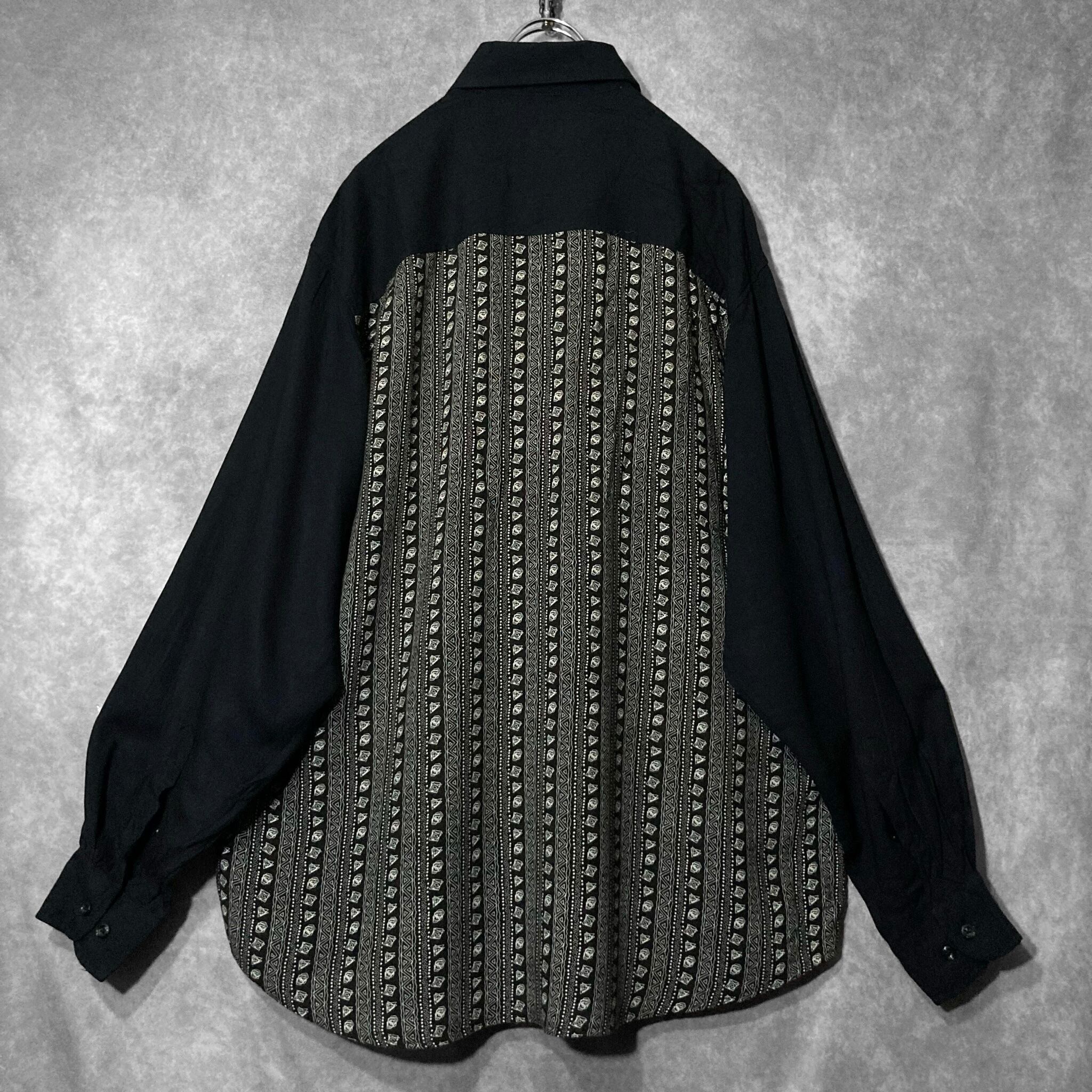 XL Hand drawn Geometric art stripe pattern × Switching design L/S shirt