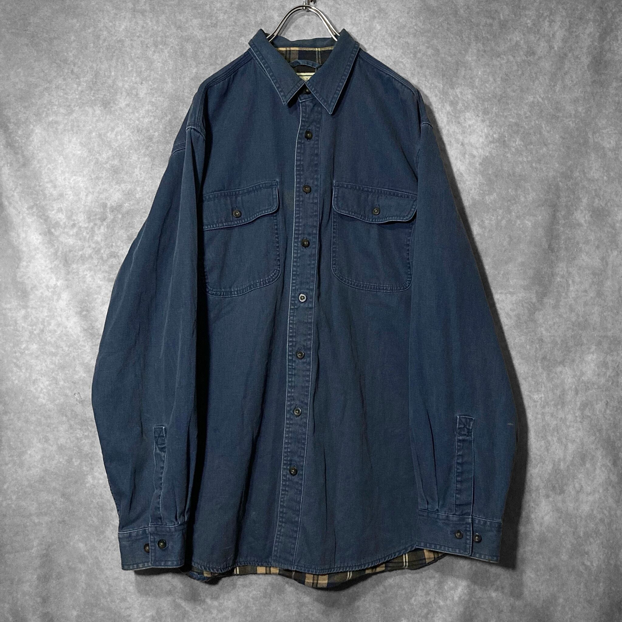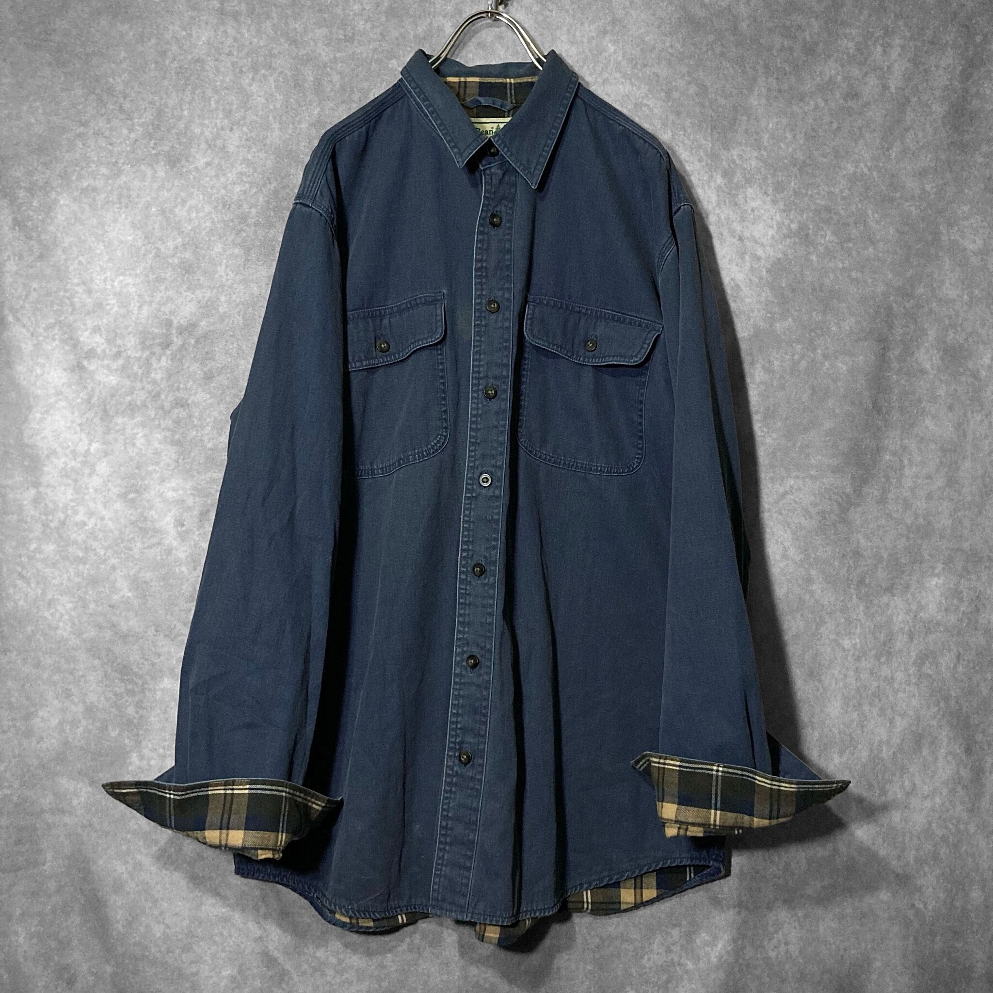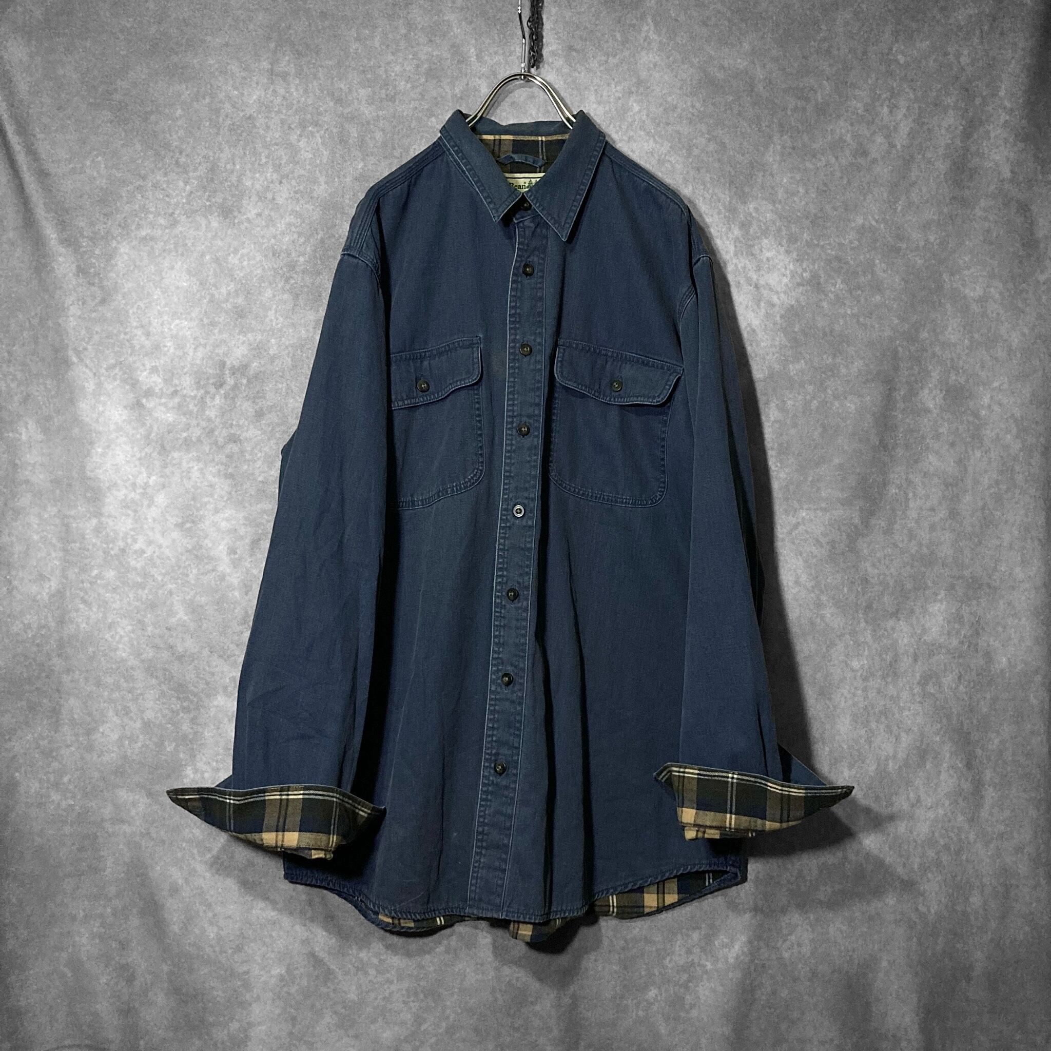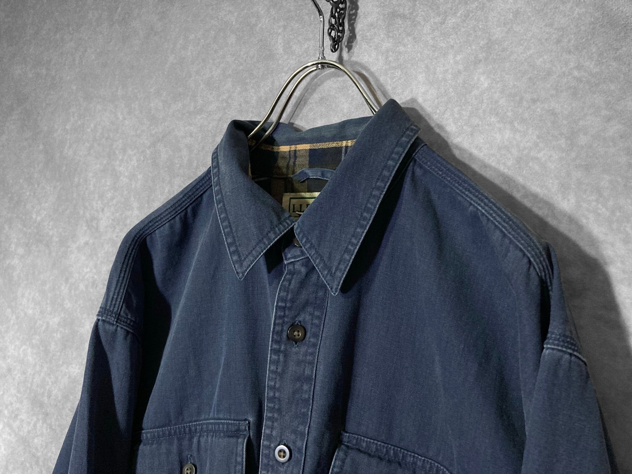 XXXL L.L.Bean Denim fabric and flannel check pattern design L/S shirt
