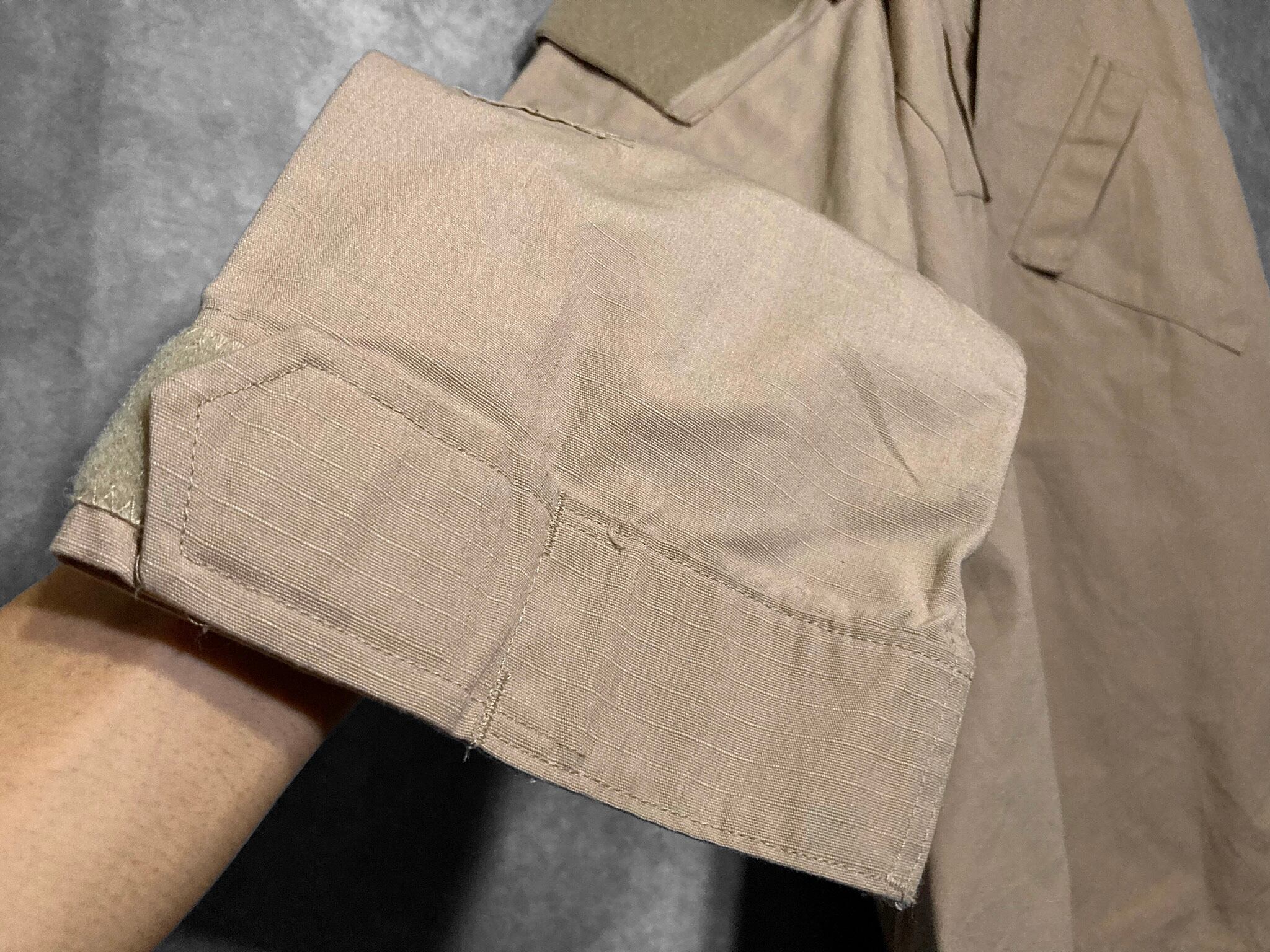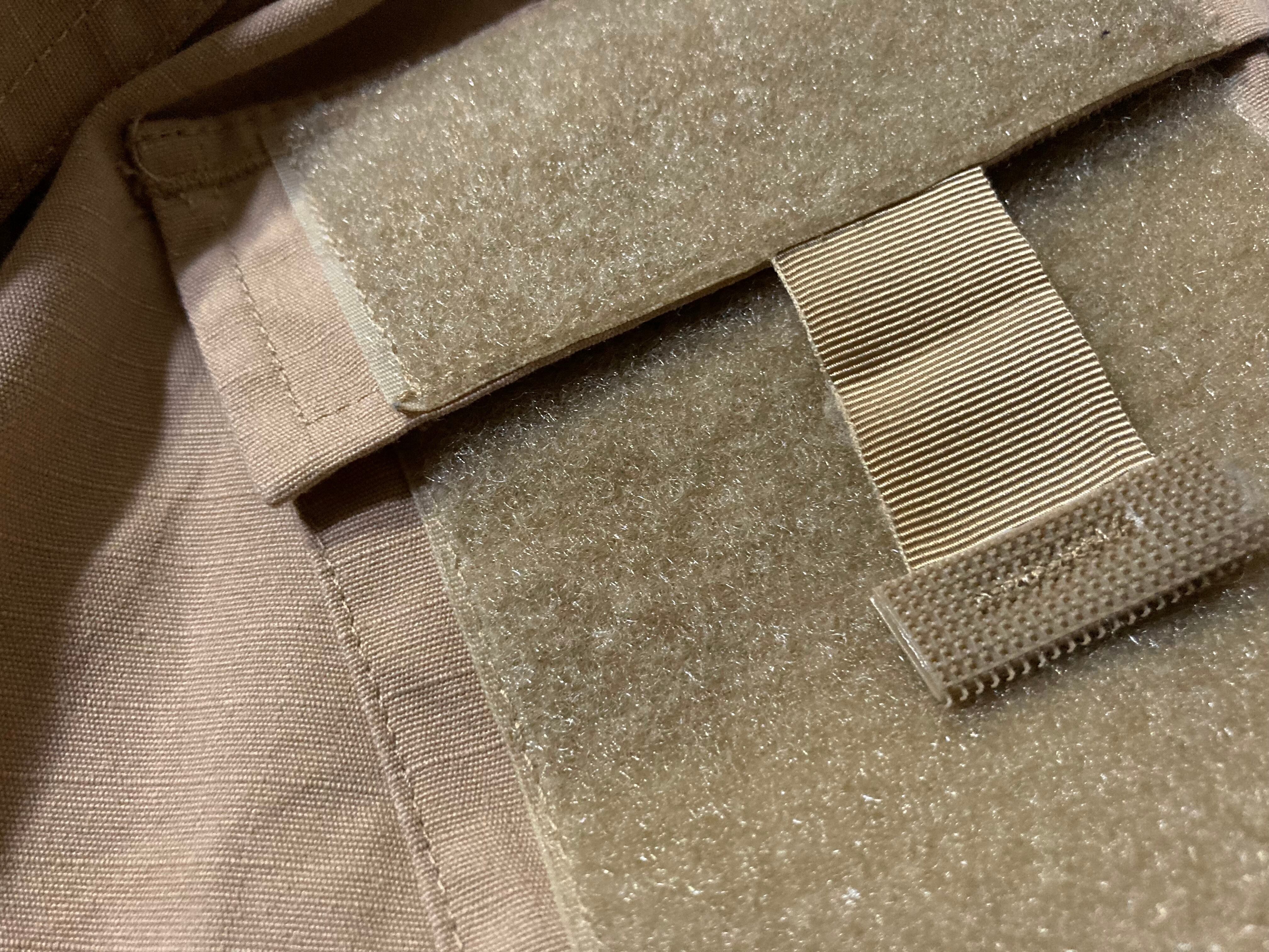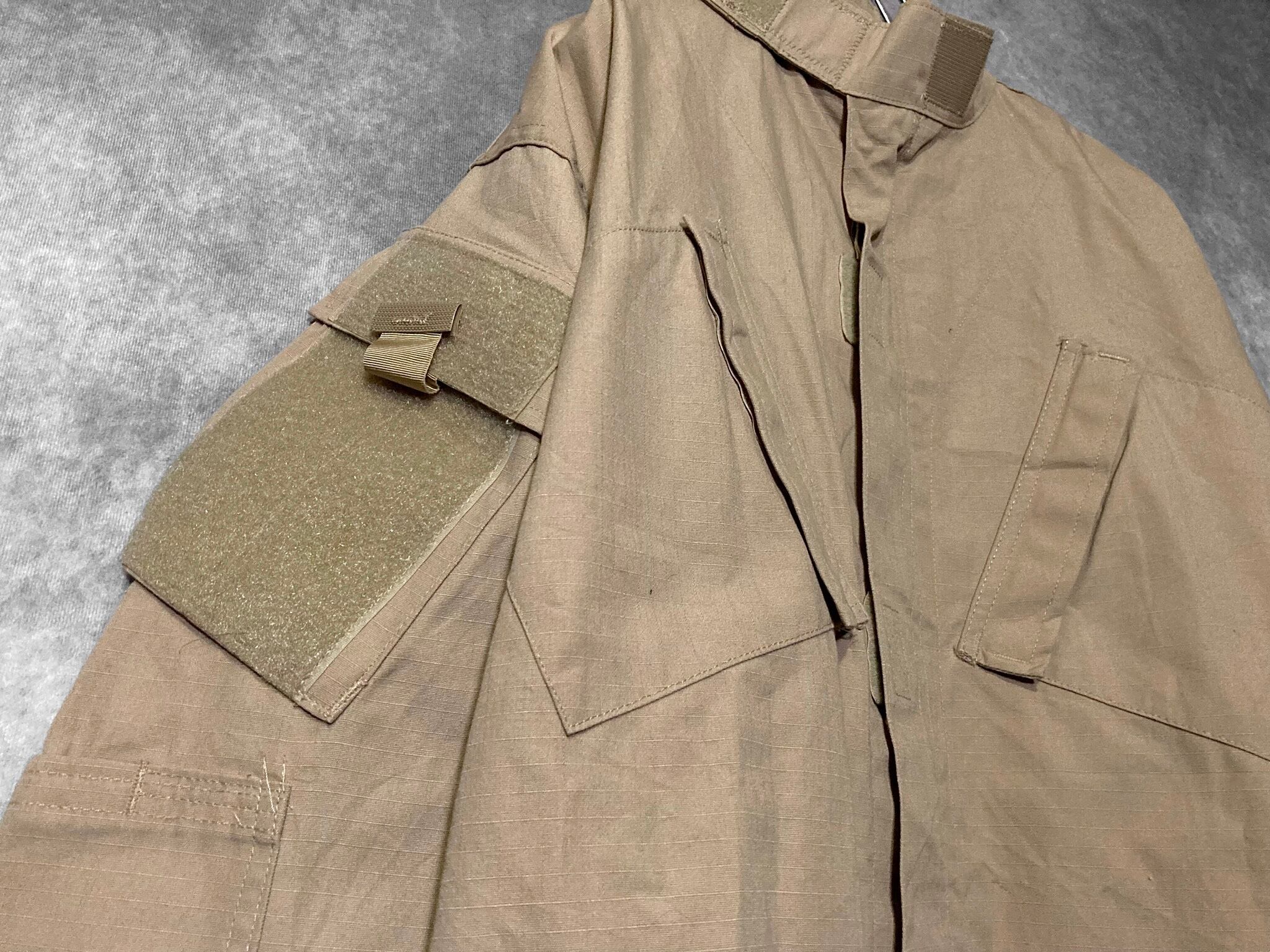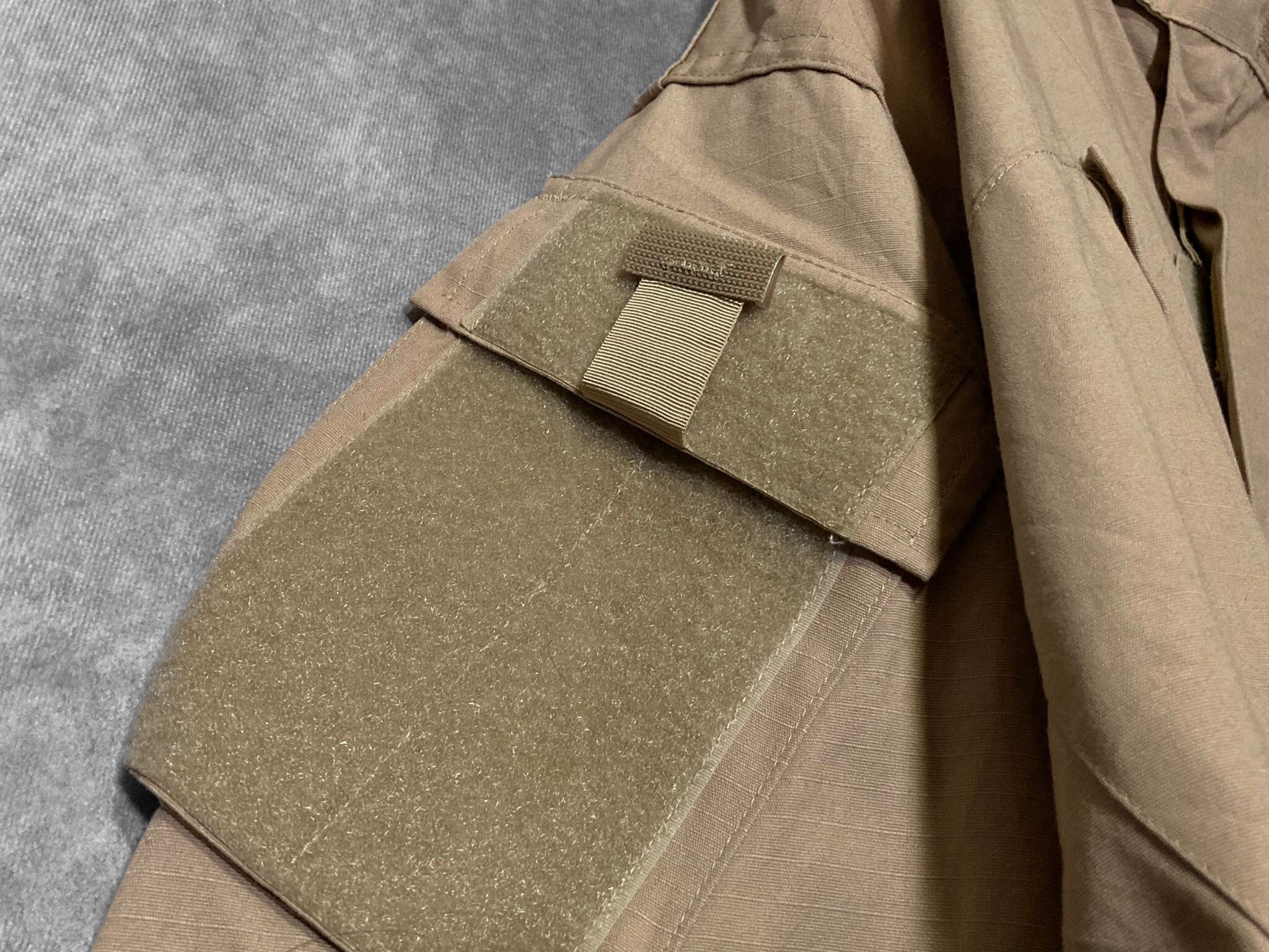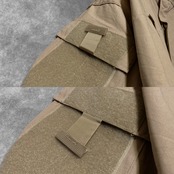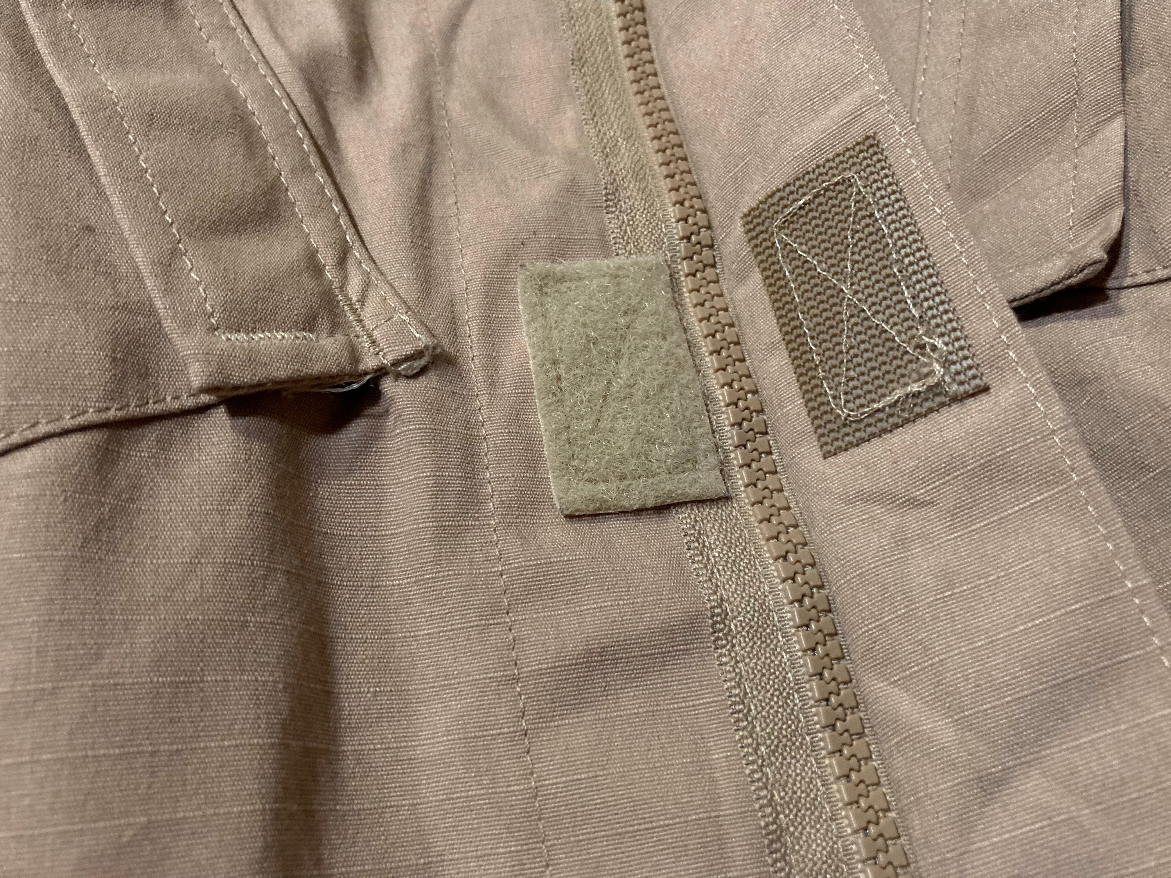 首元、シガレットポケット、フロントポケットフロントジップ、袖口全てにマジックテープが配されたディテール。