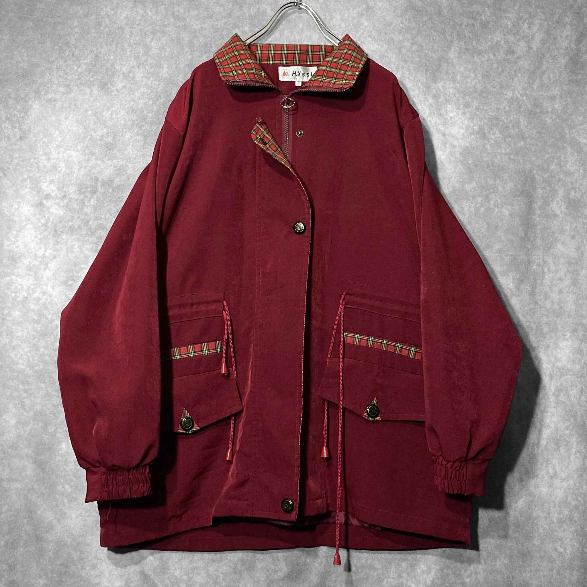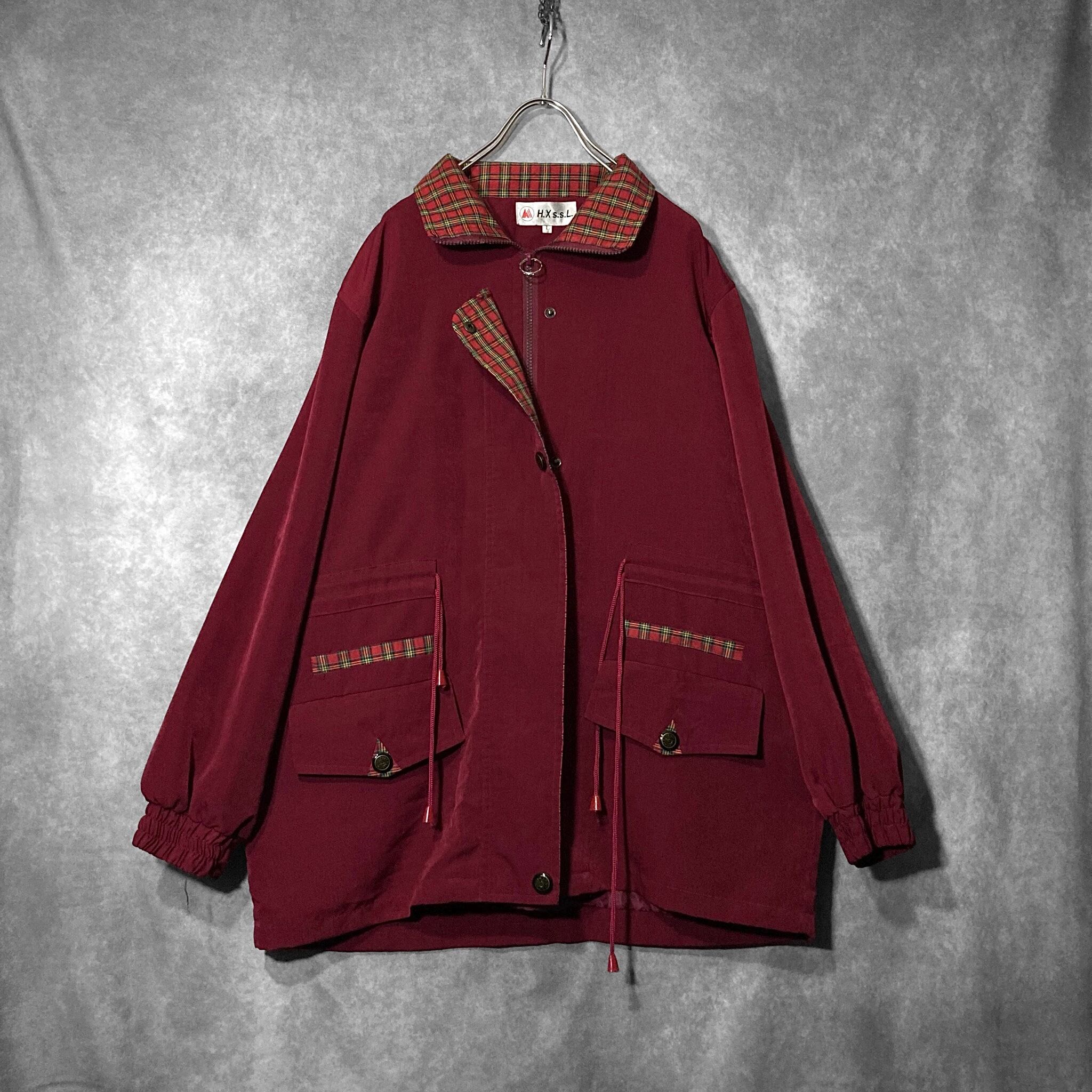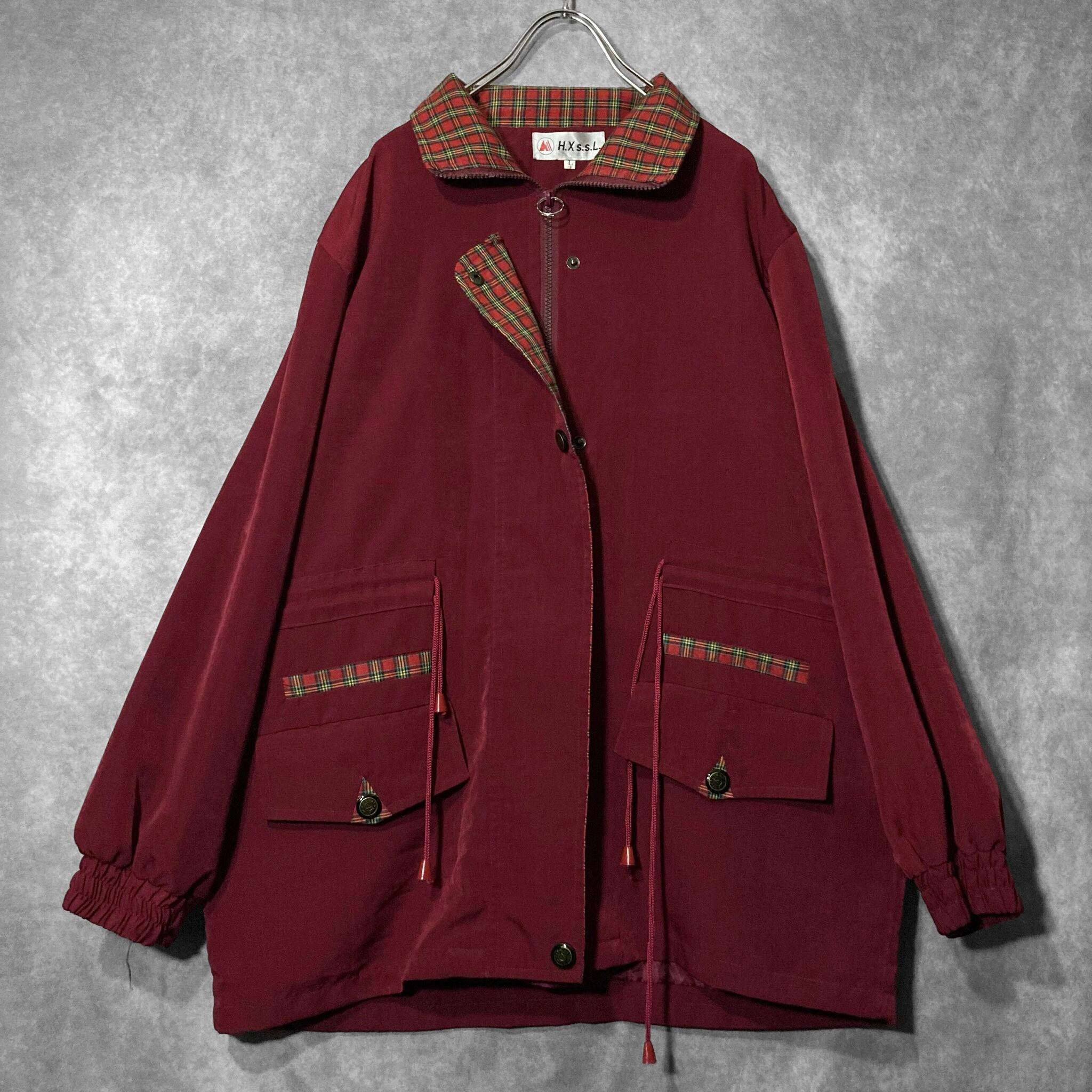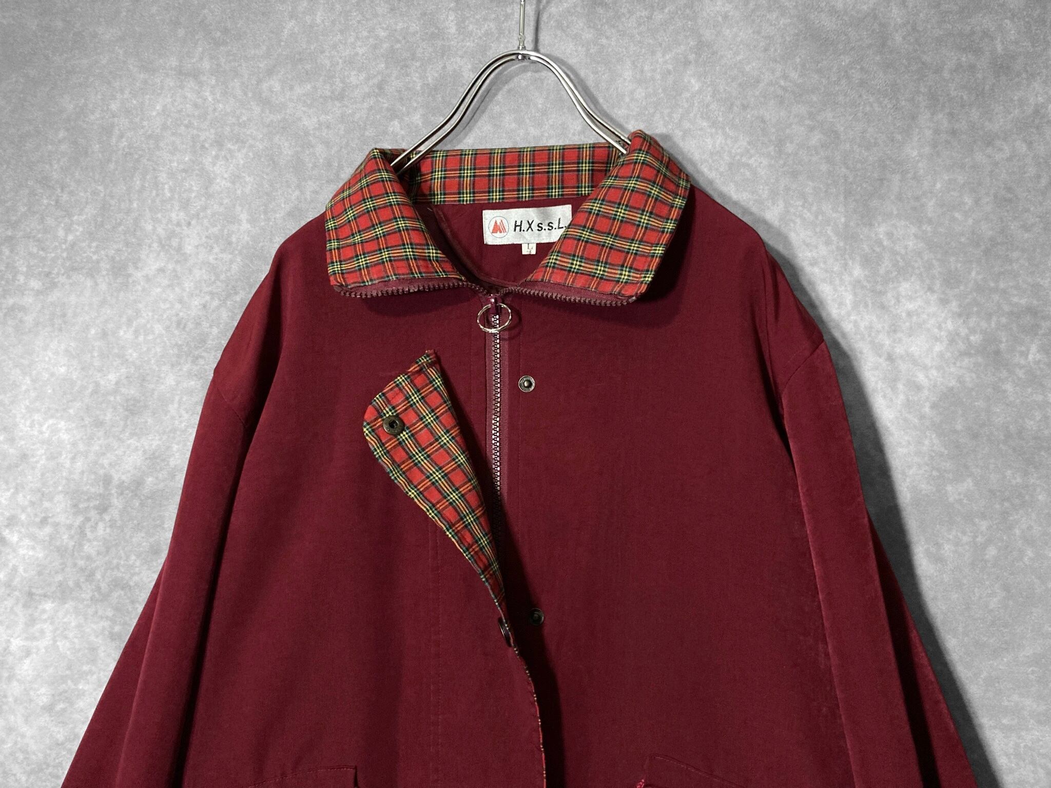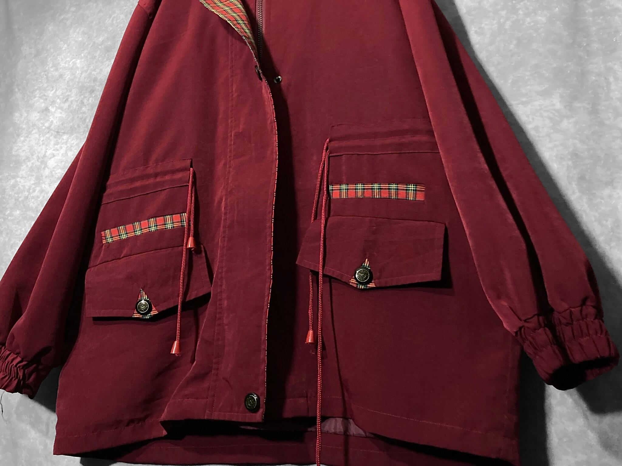 XXL Bordeaux color × Tartan check pattern combination Switching design full-zip Cover-all jacket