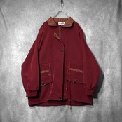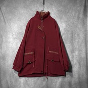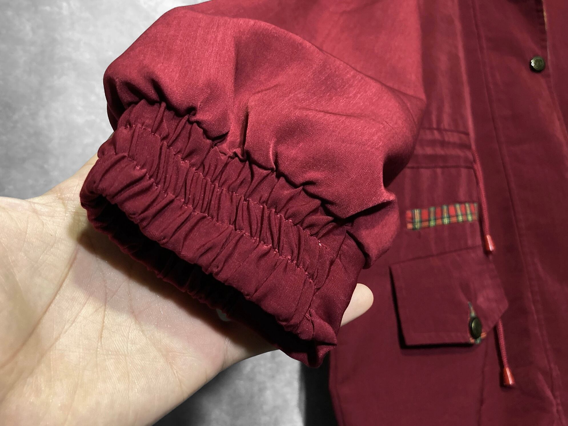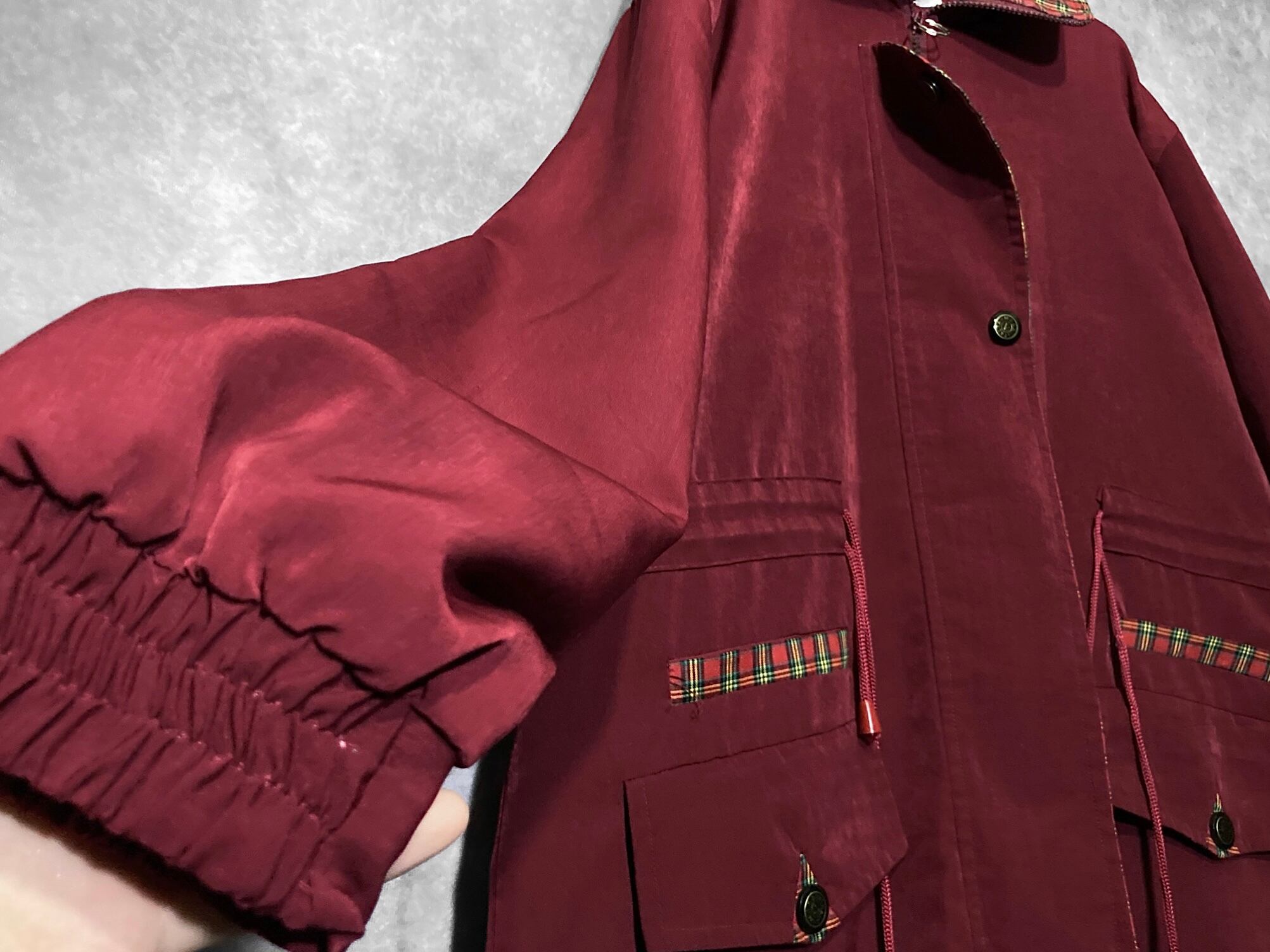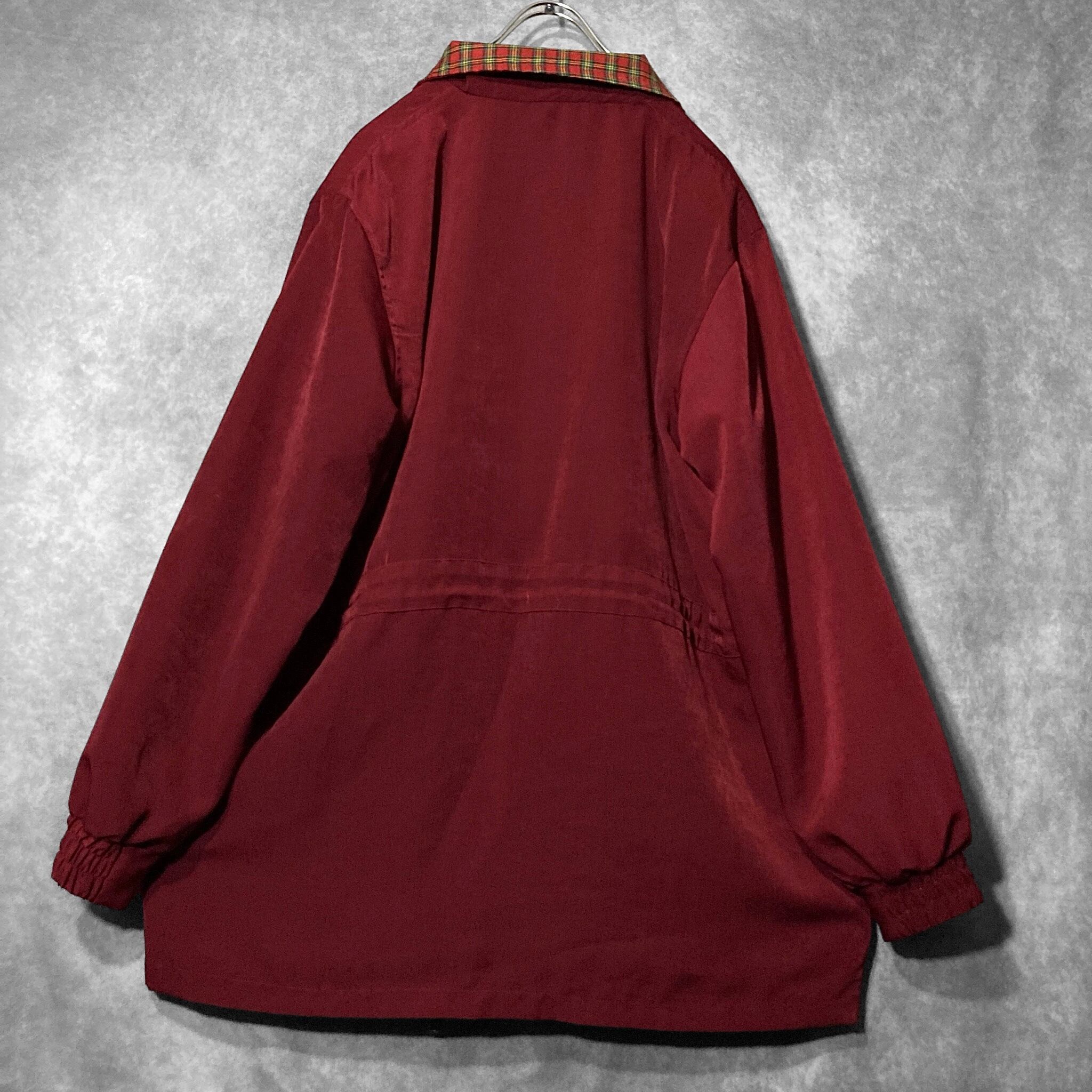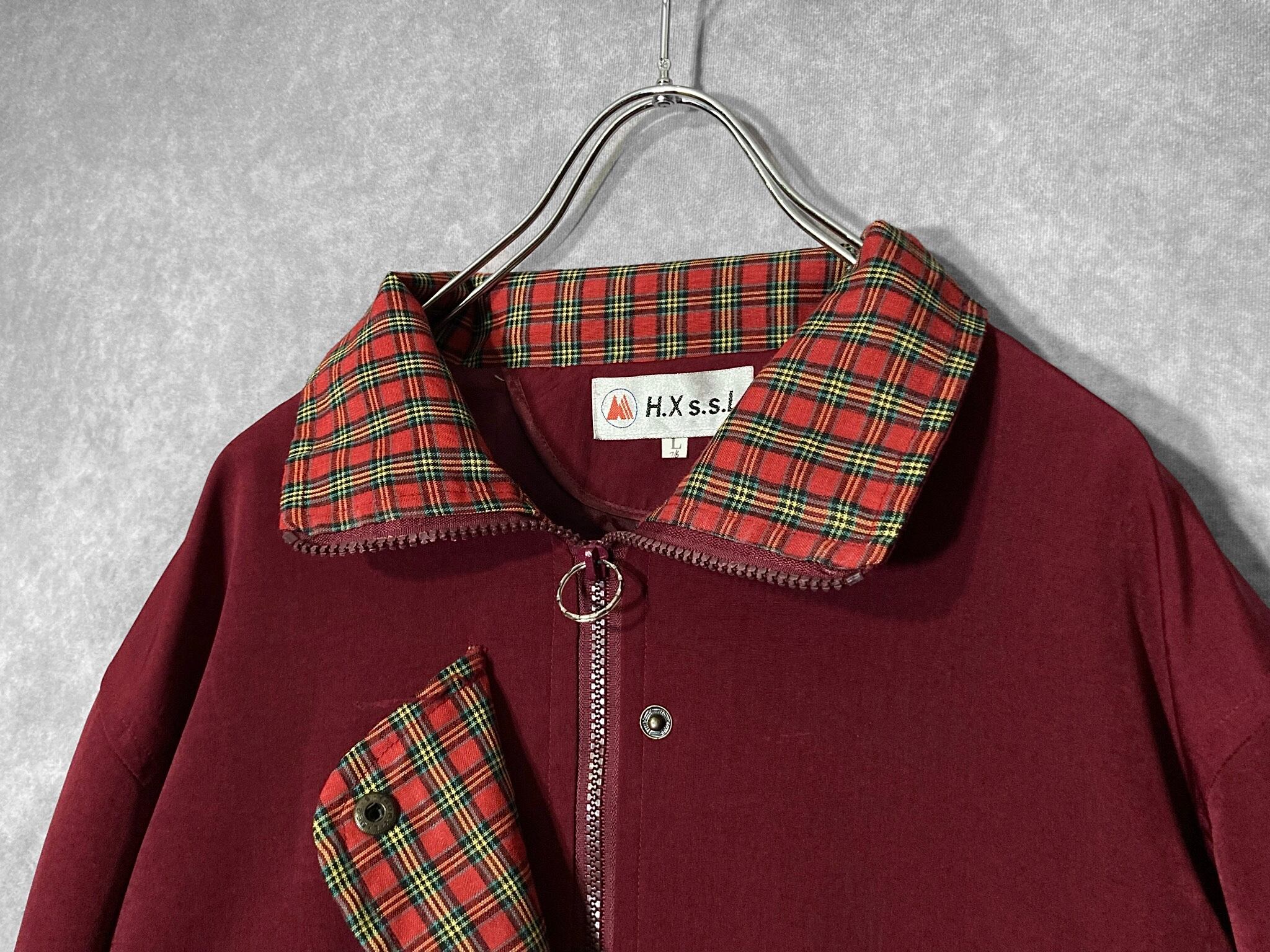 XXL Bordeaux color × Tartan check pattern combination Switching design full-zip Cover-all jacket