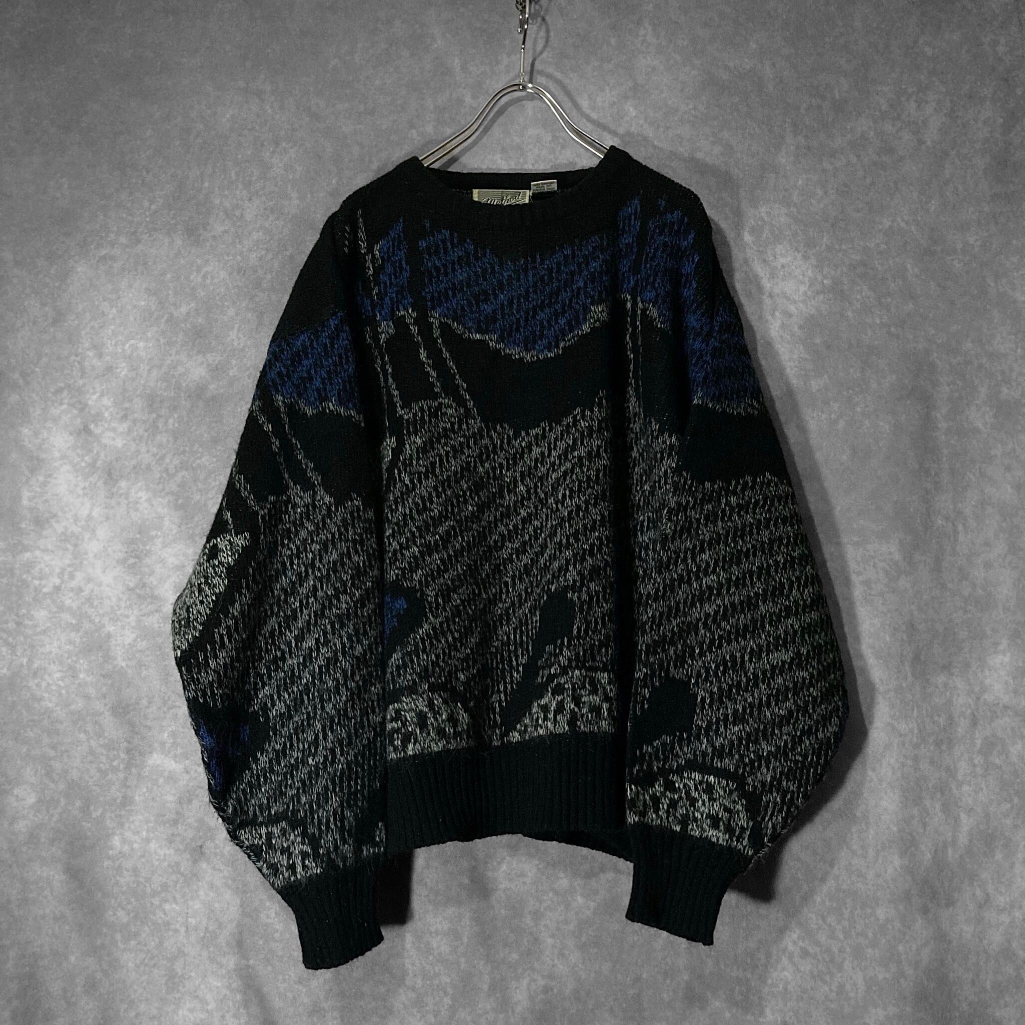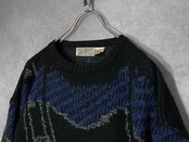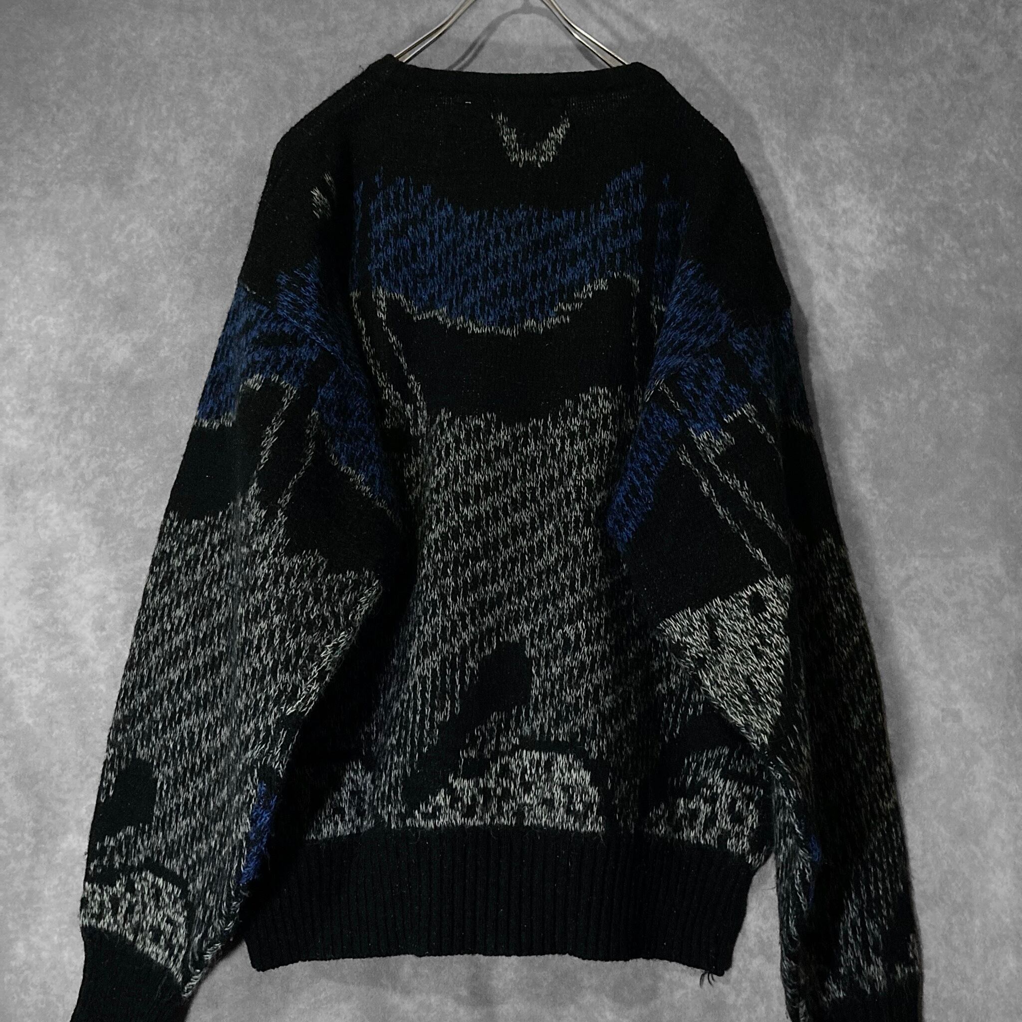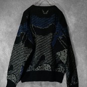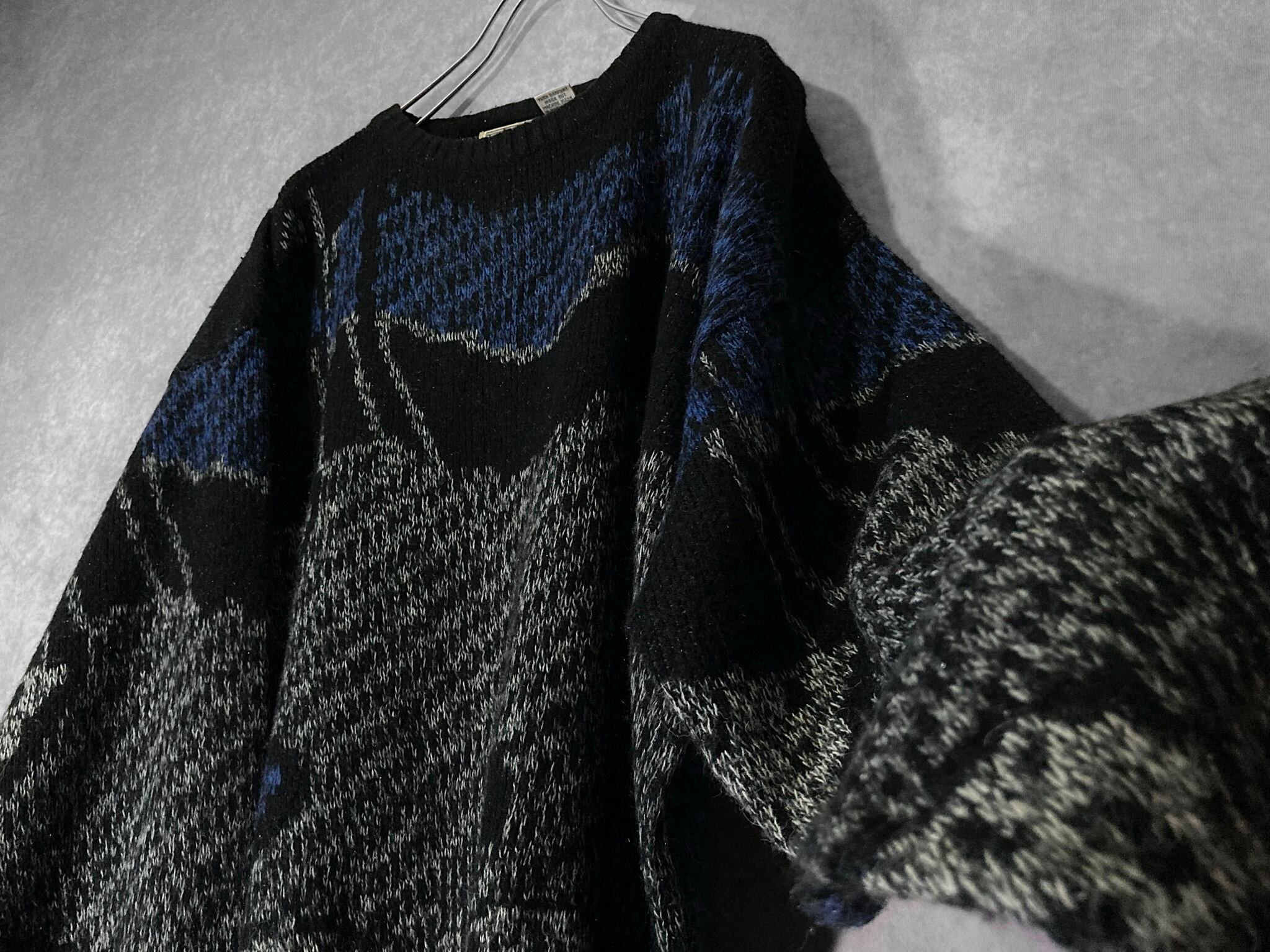made in Korea, Dark blue × Black colored Mysterious all over pattern design knit