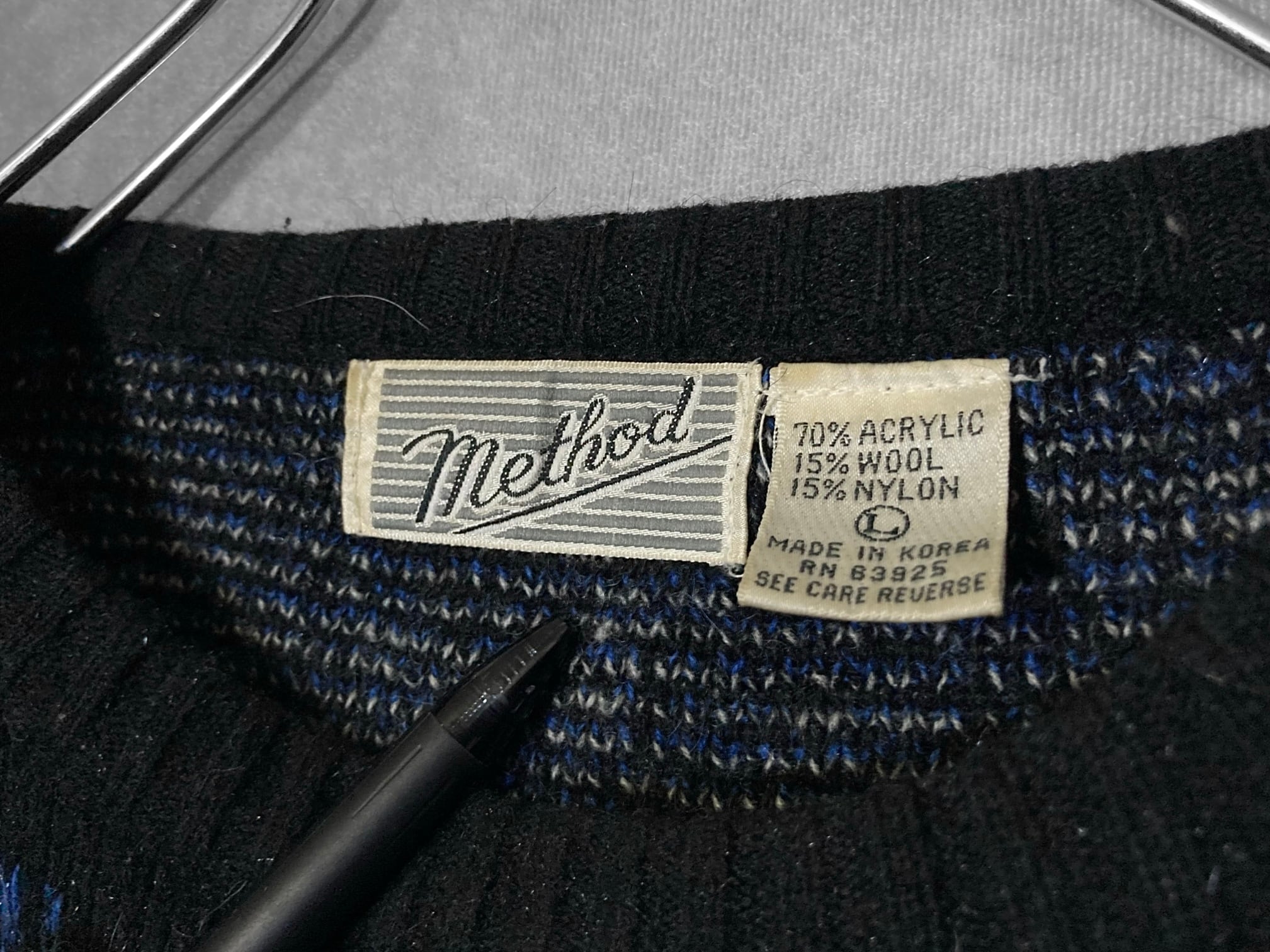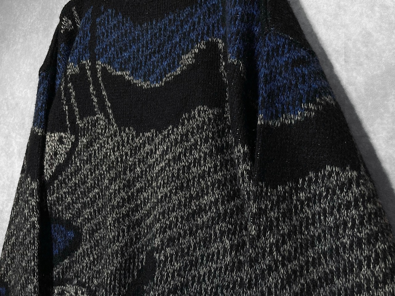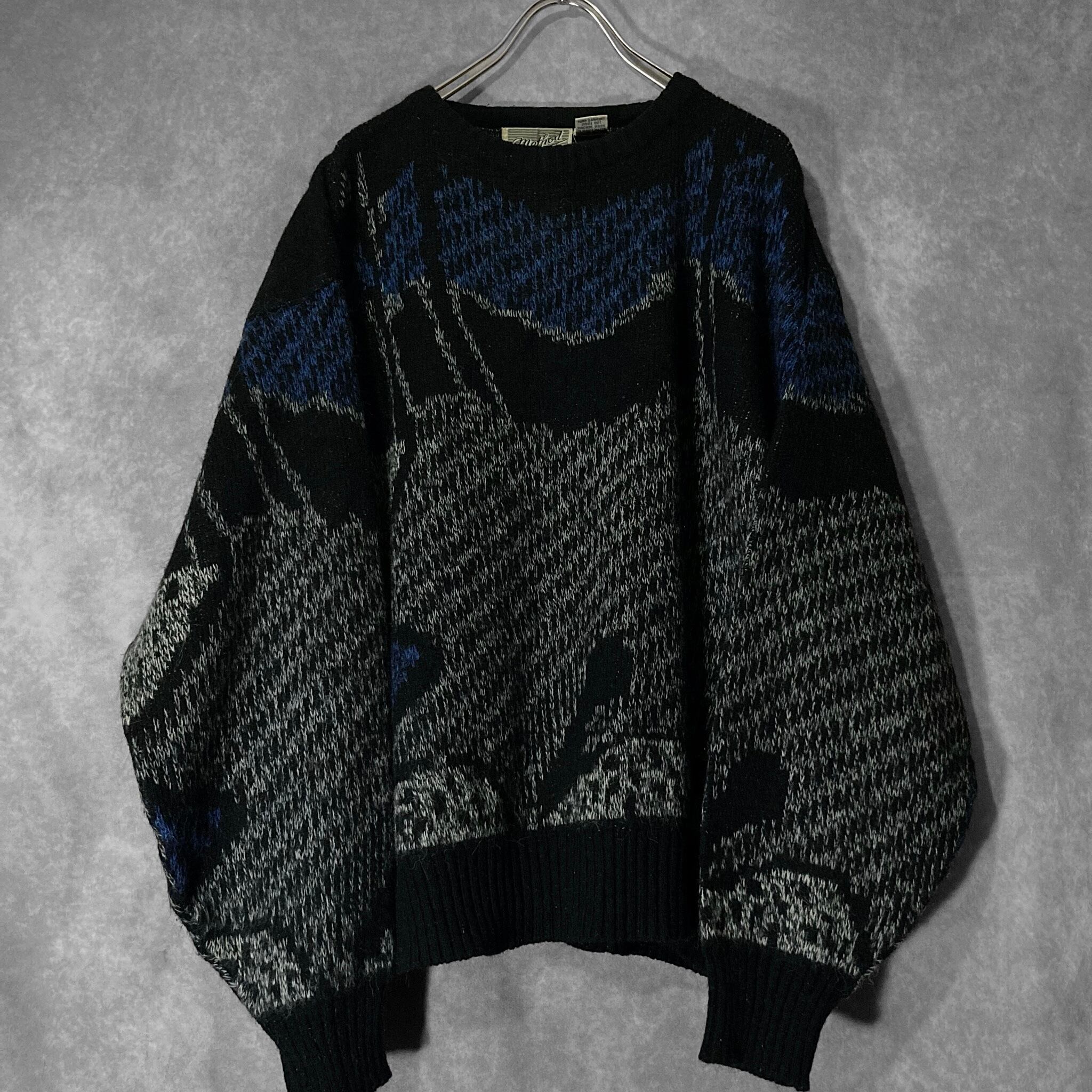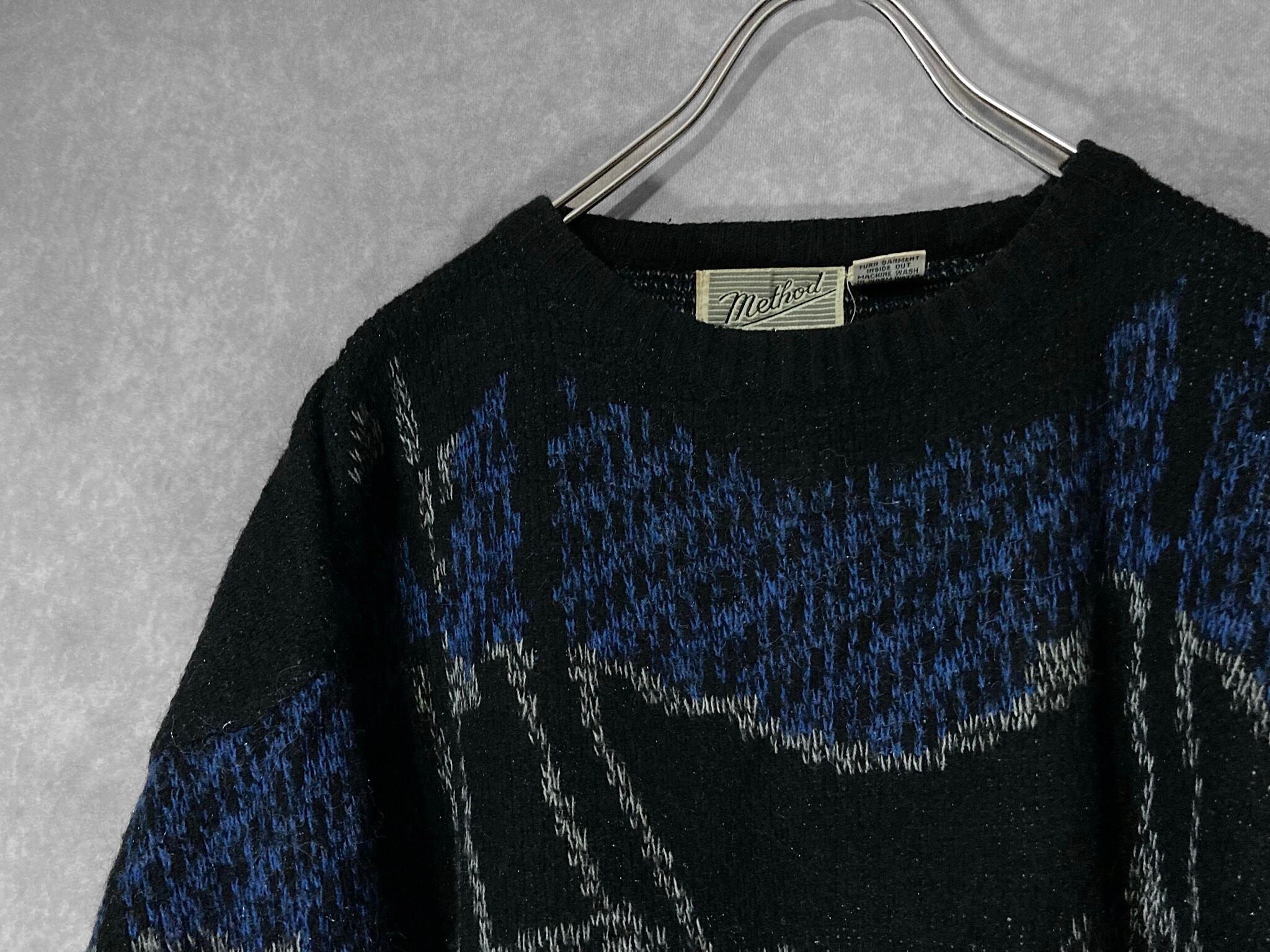 made in Korea, Dark blue × Black colored Mysterious all over pattern design knit