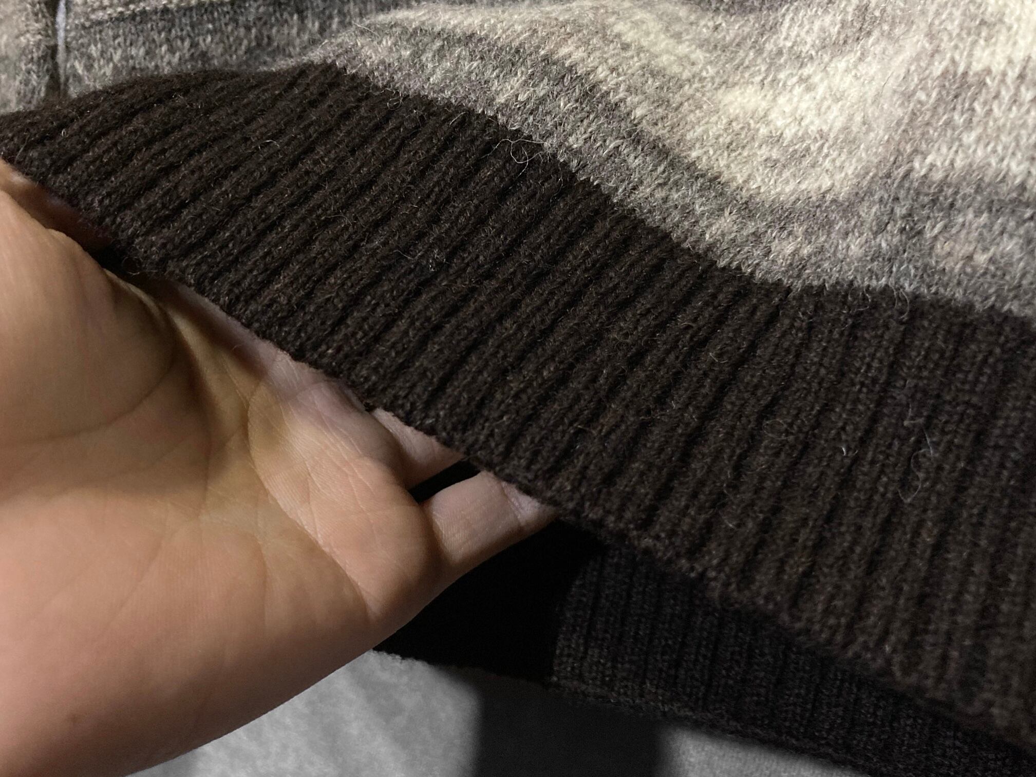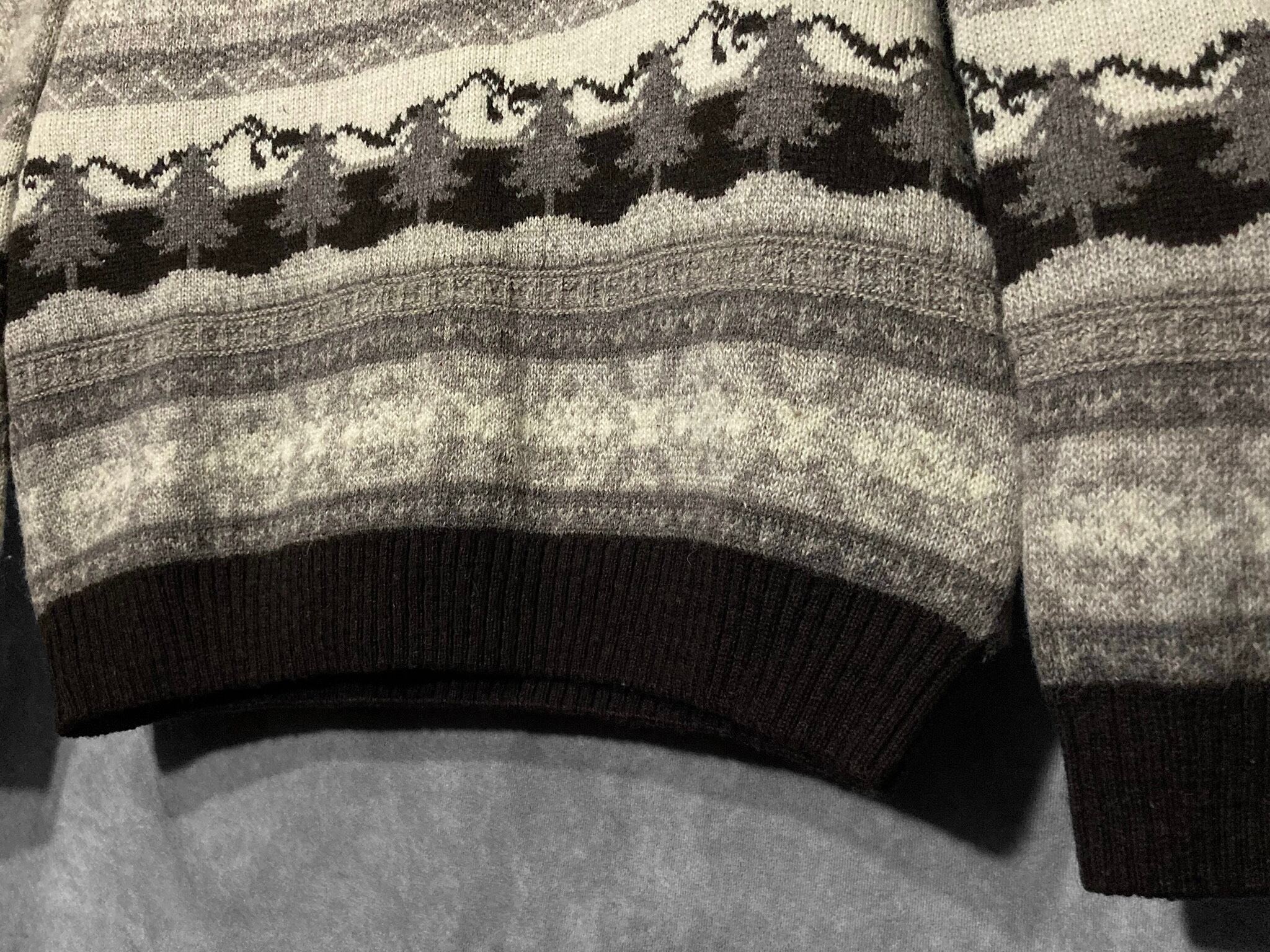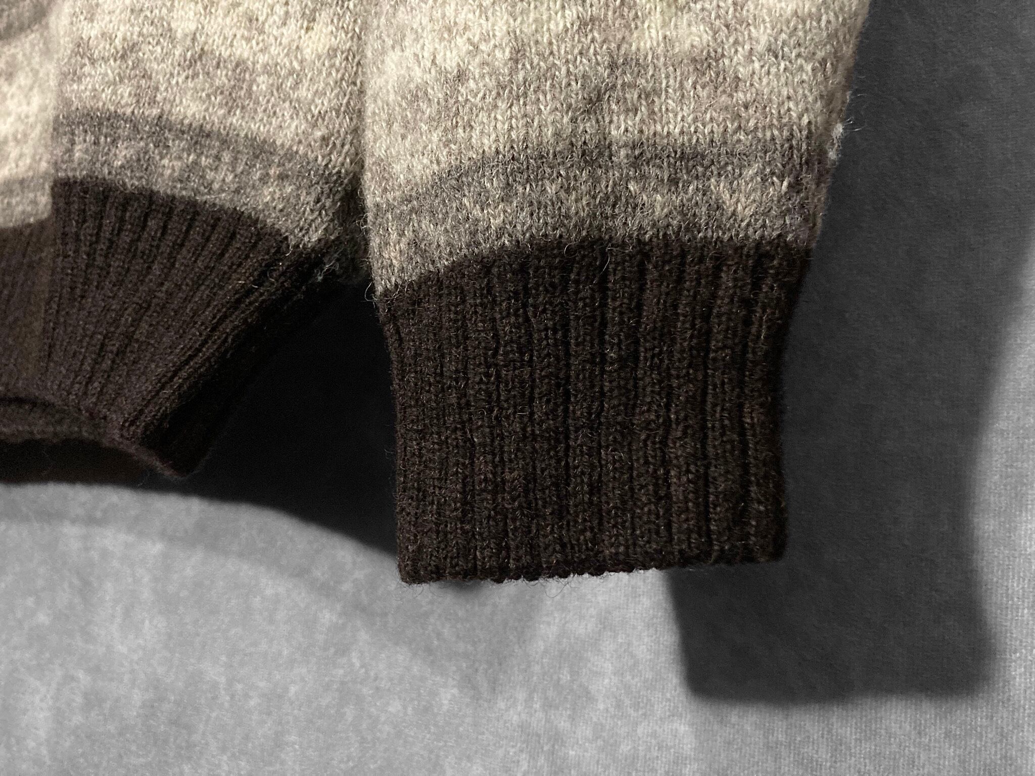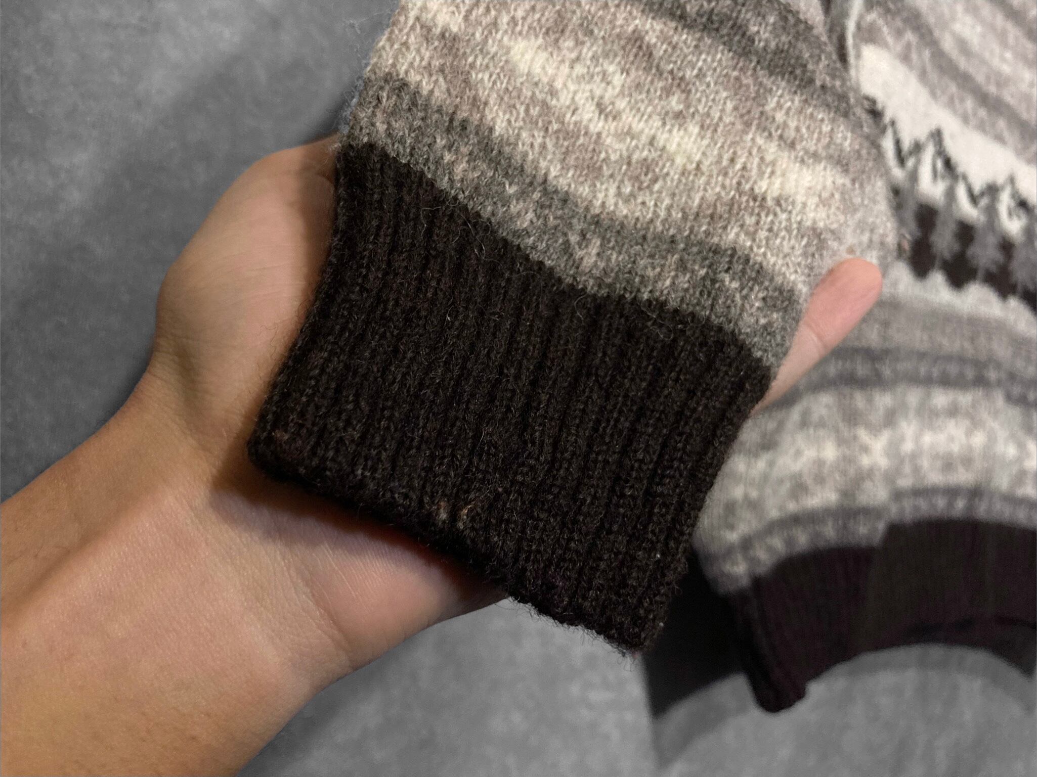 ふわモコの暖かみのあるニットの生地で、首元、袖口、裾のリブの状態が良くトップスの上からガバッと被ってアウターとしてもじゅうぶんに着れる1着。