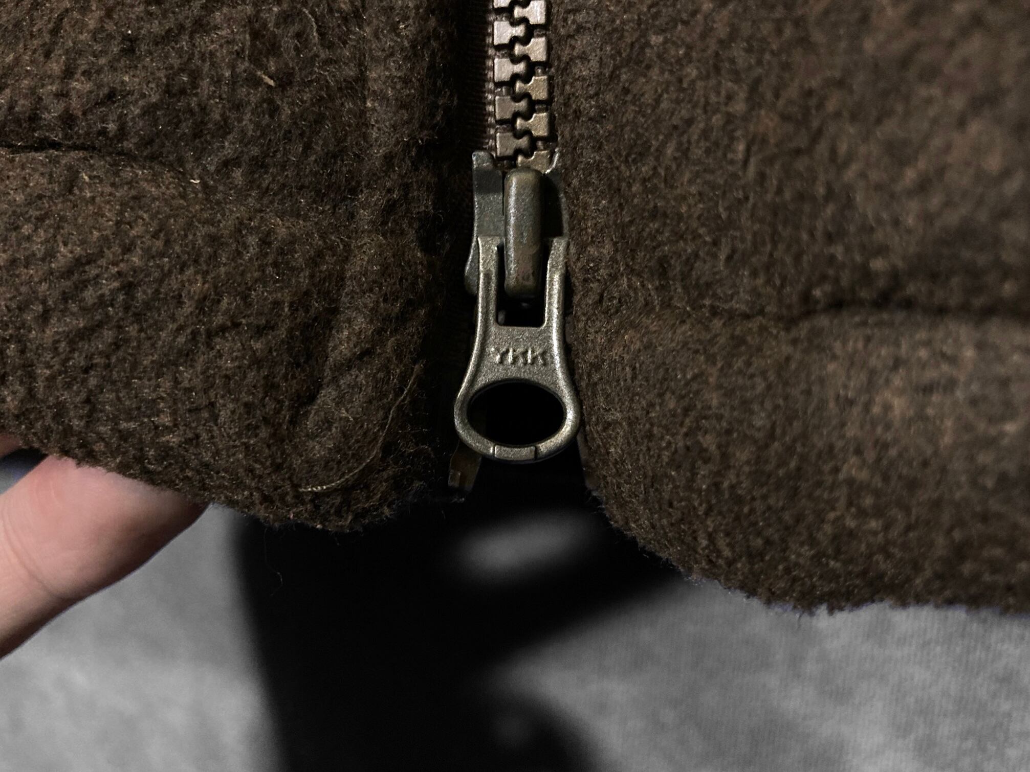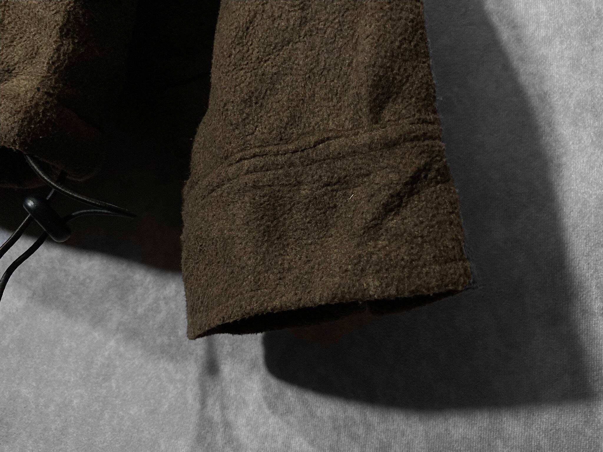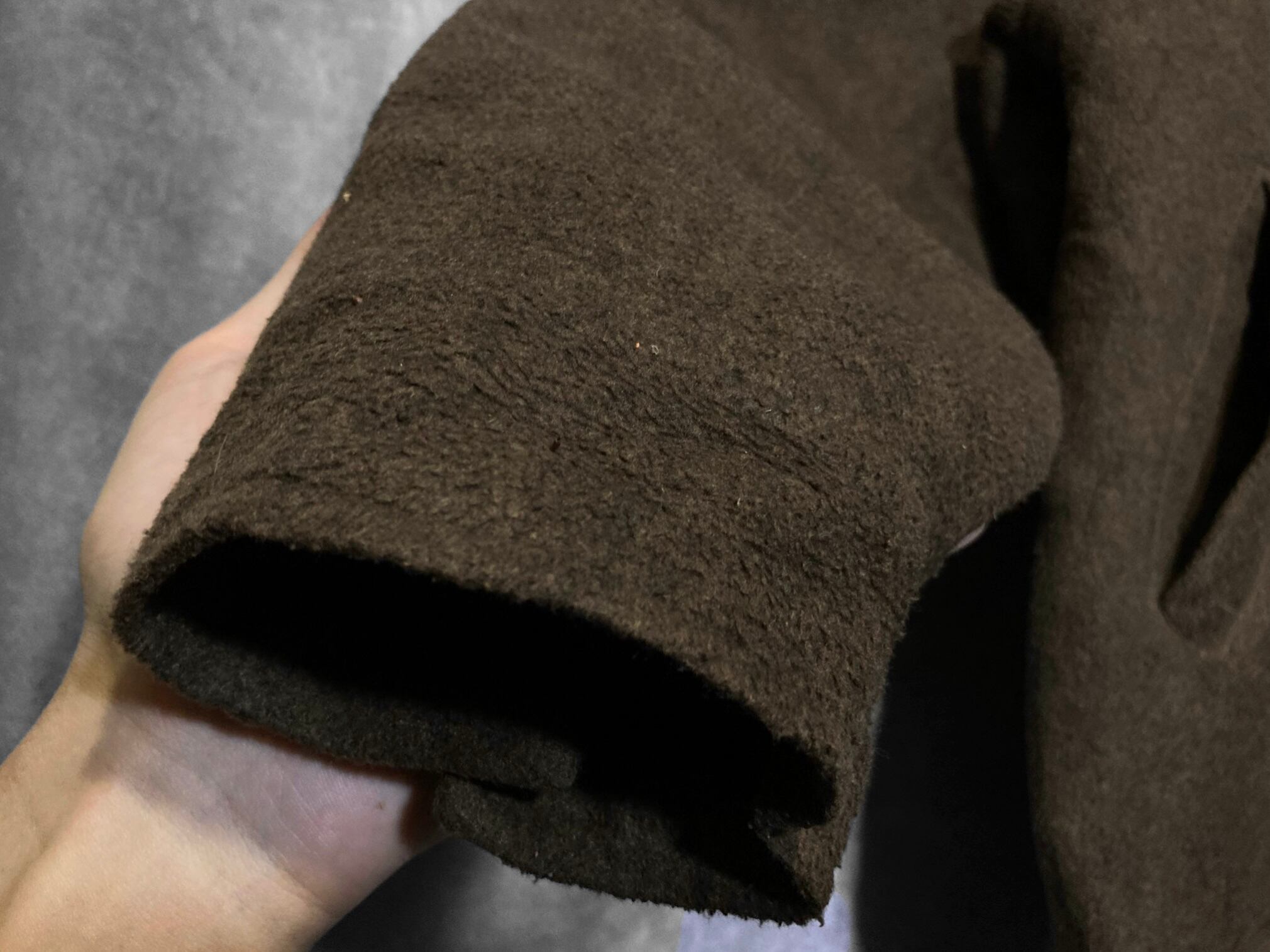 裏地がボア生地になっている為、インナーが薄着でも着れるディテール。