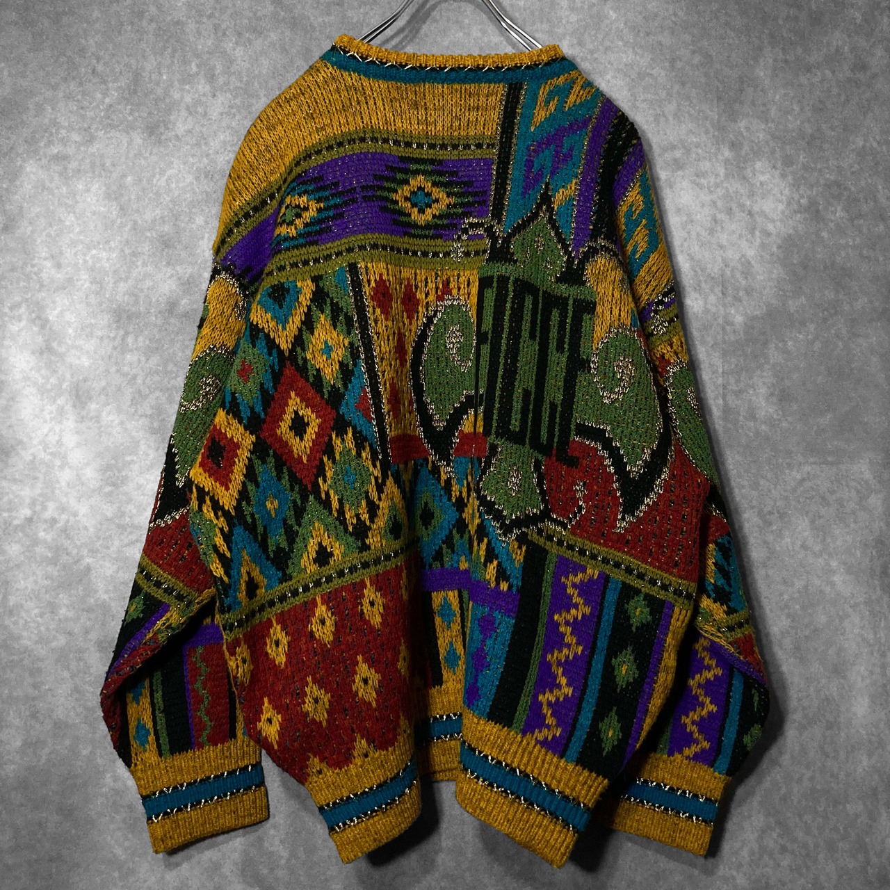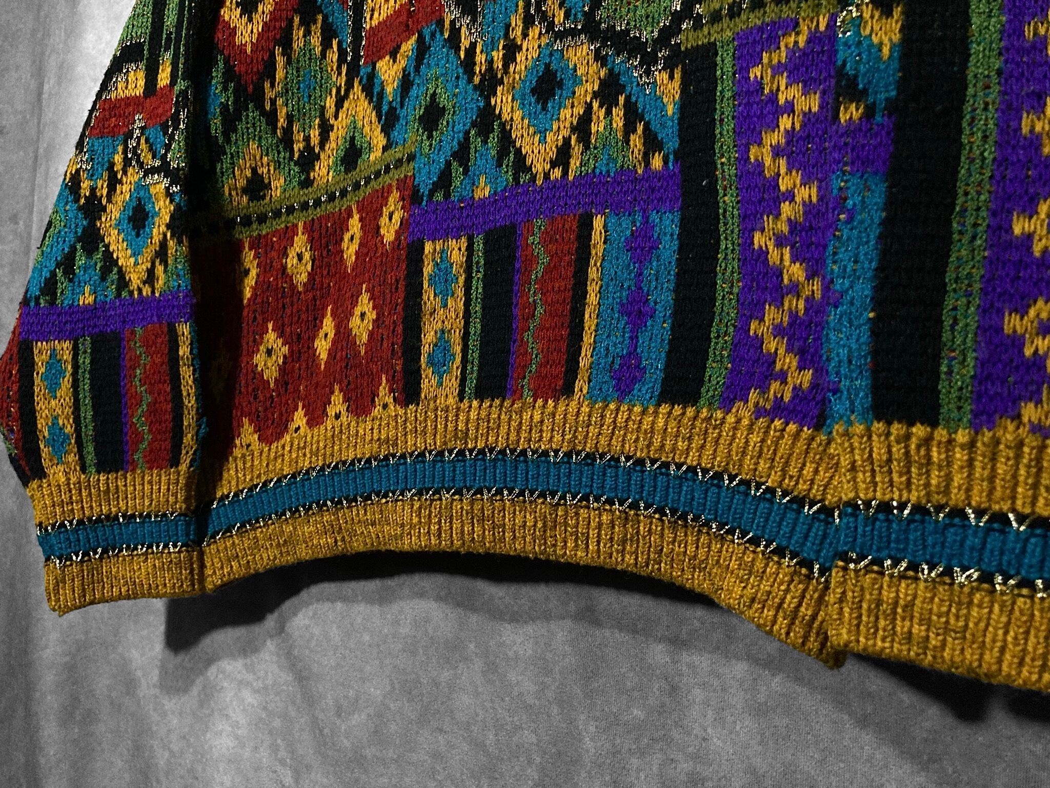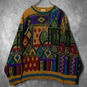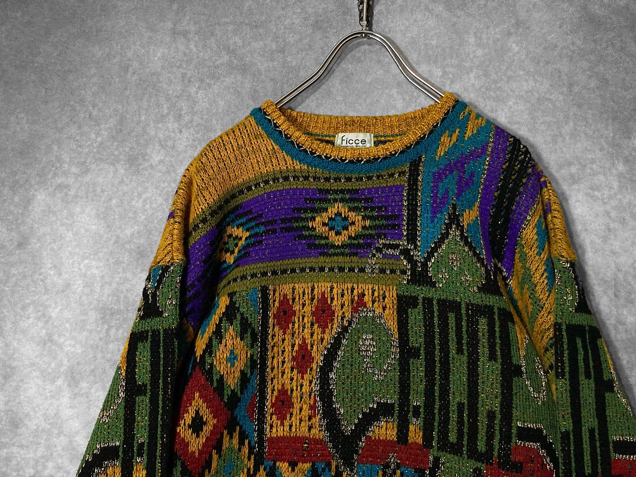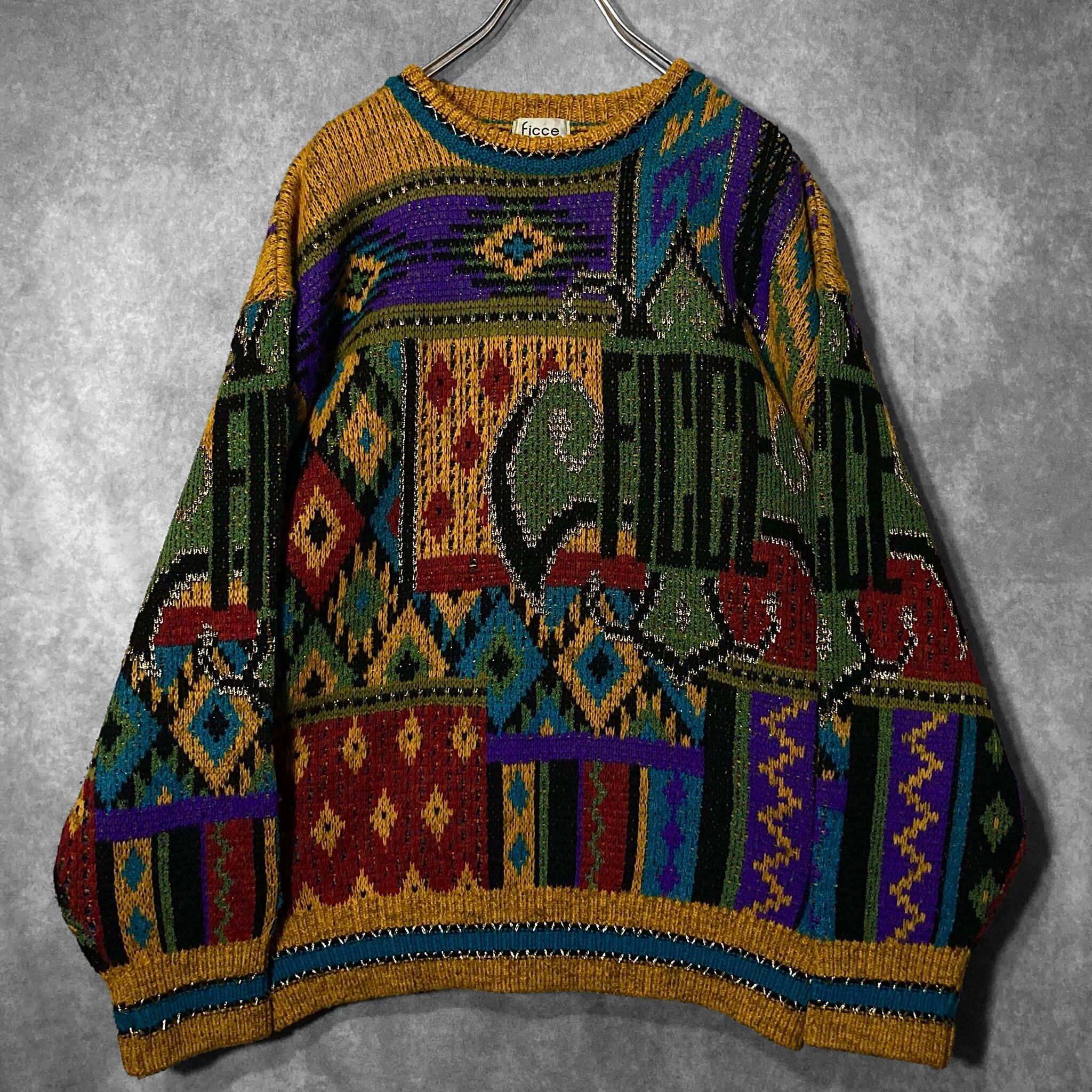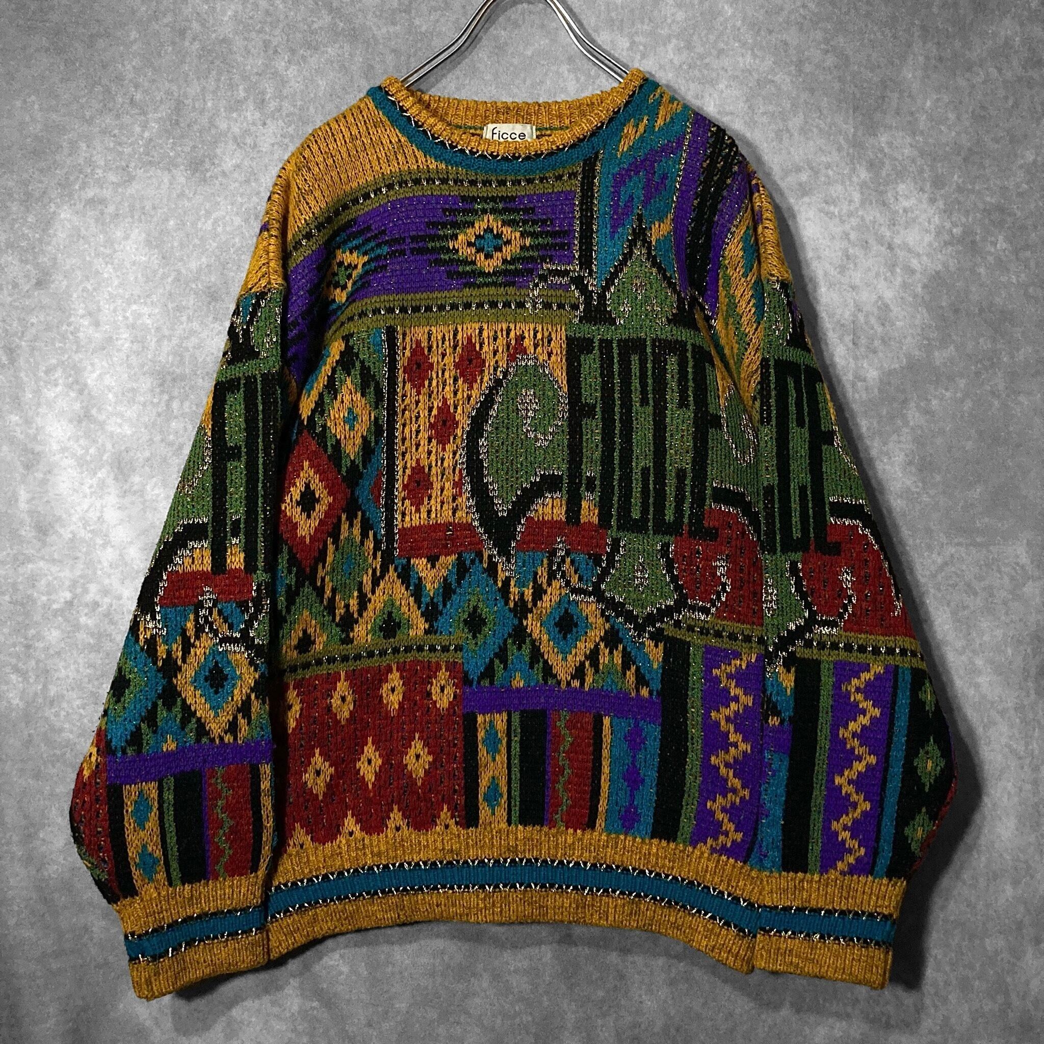 Ficce YOSHIYUKI KONISHI psychedelic art all over pattern × Different knitting yarn combination design knit